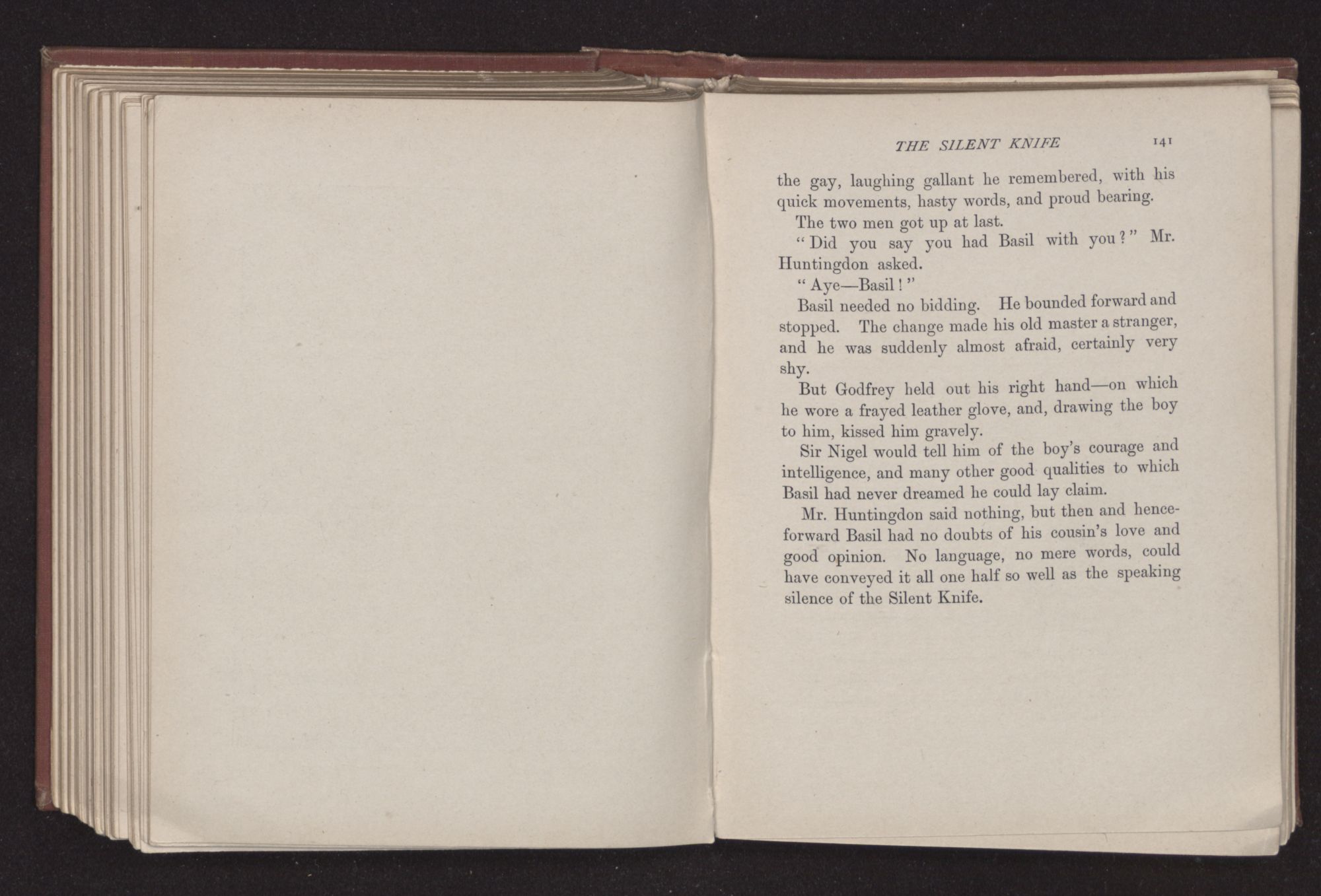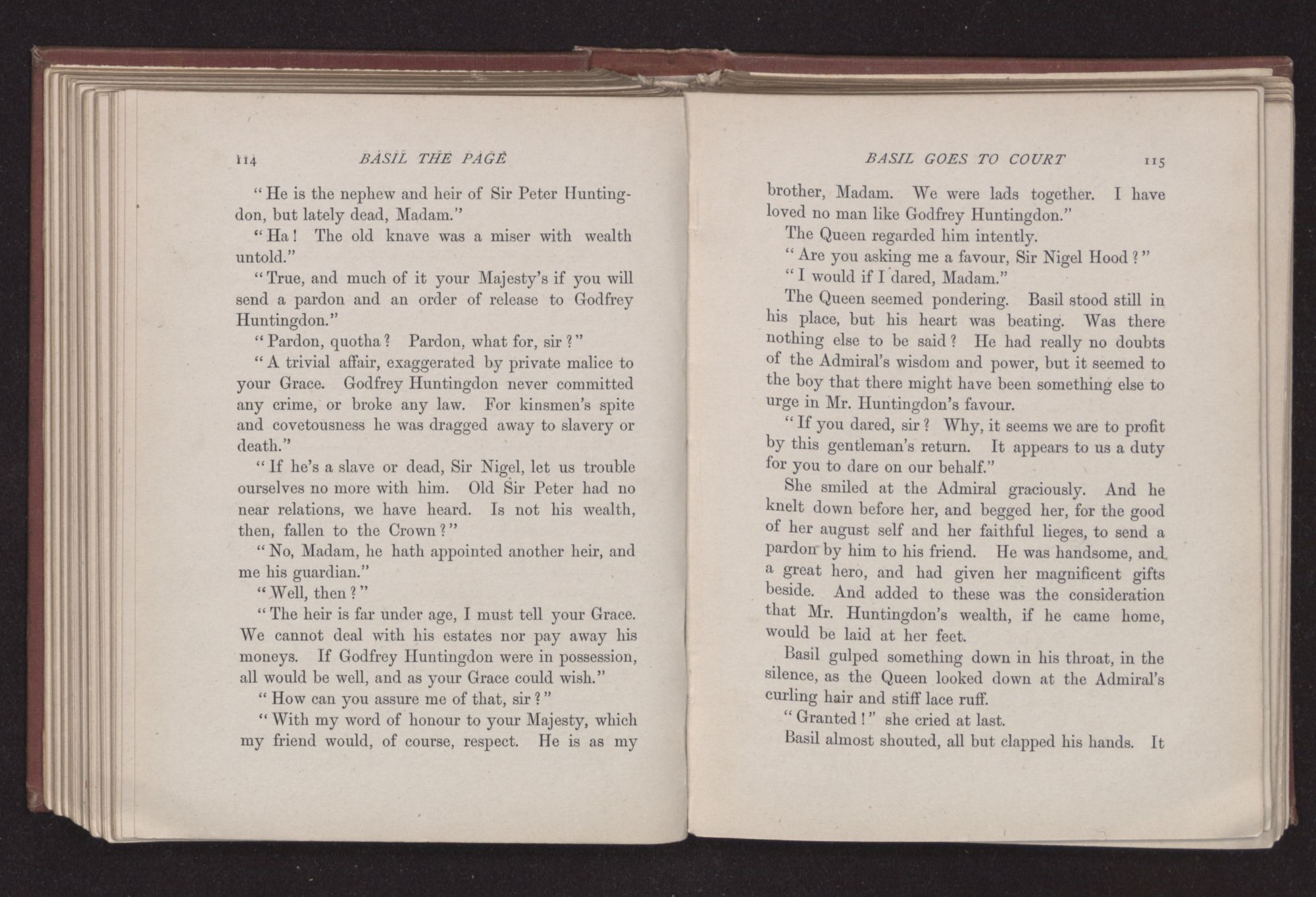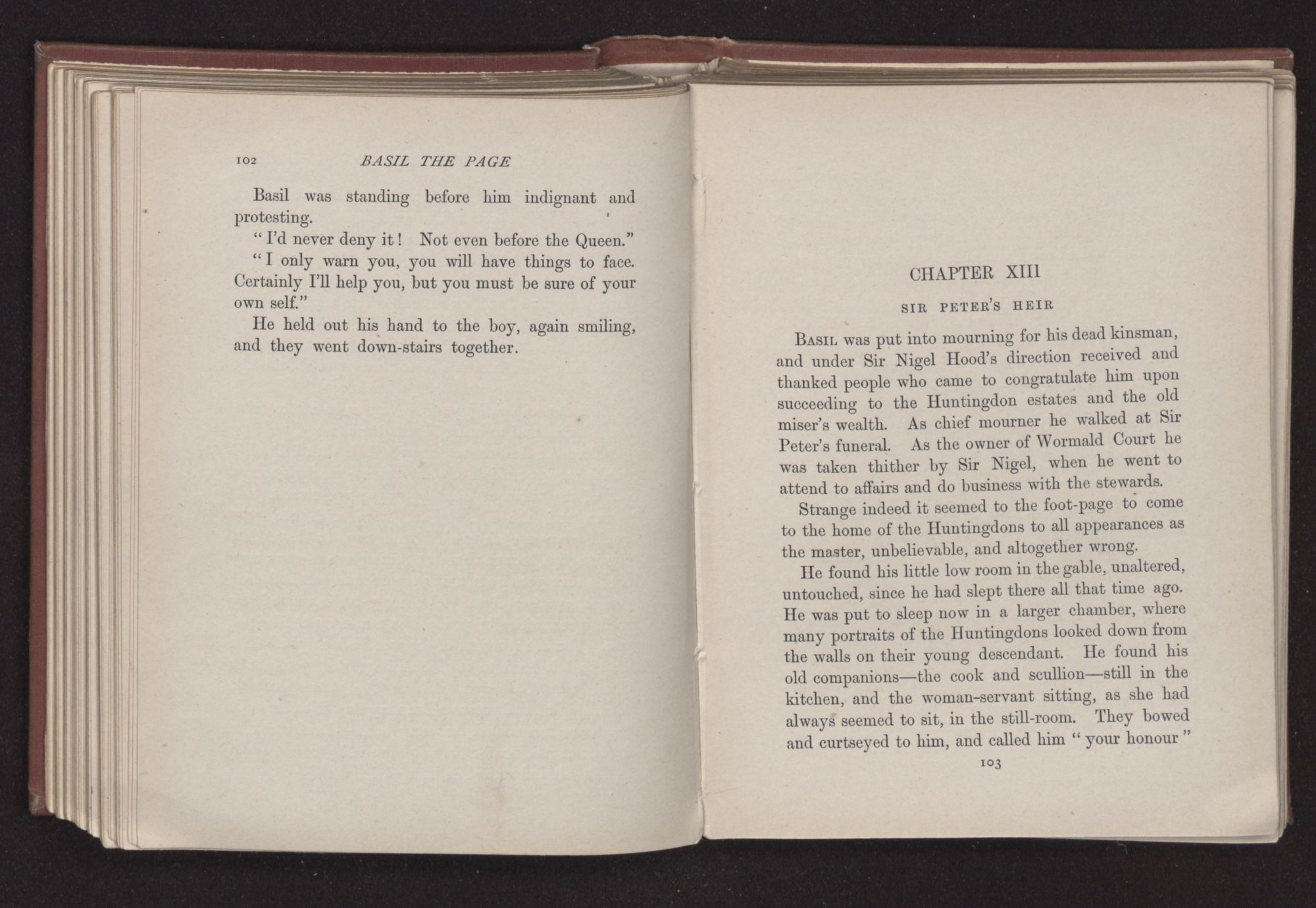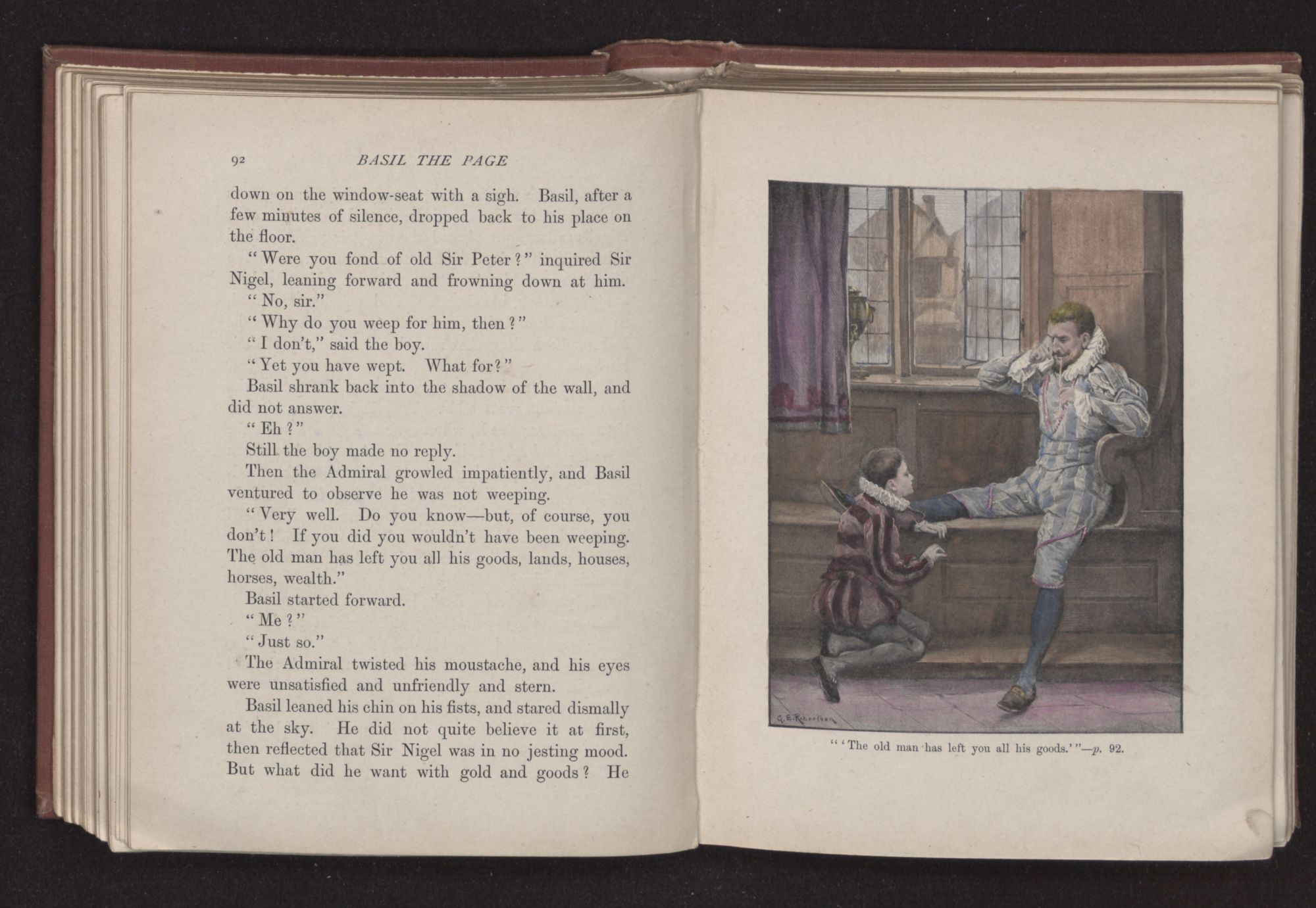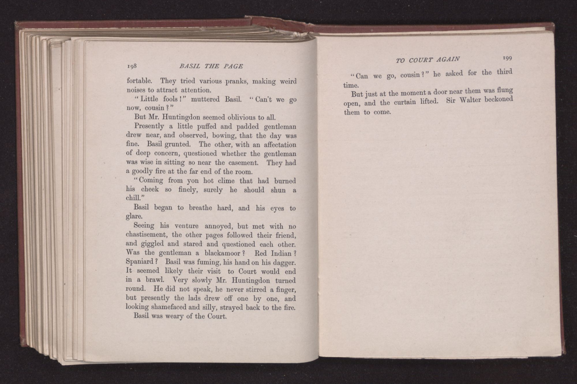 “Basil!” Mr. Huntingdon called, and the boy turned from a game with a deerhound to hear what his kinsman wanted. “I have a thing to tell thee, Basil,” Mr. Huntingdon began, and stopping there, confessed to Sir Nigel's accusation. He did not know how to tell the boy that it was thought well for him to go to school.