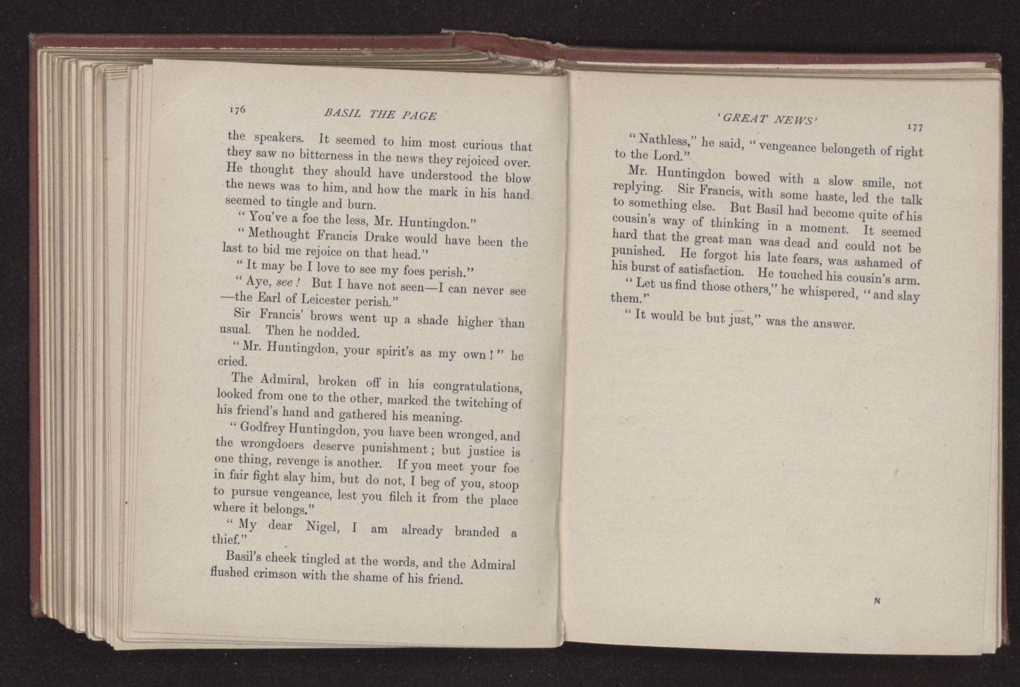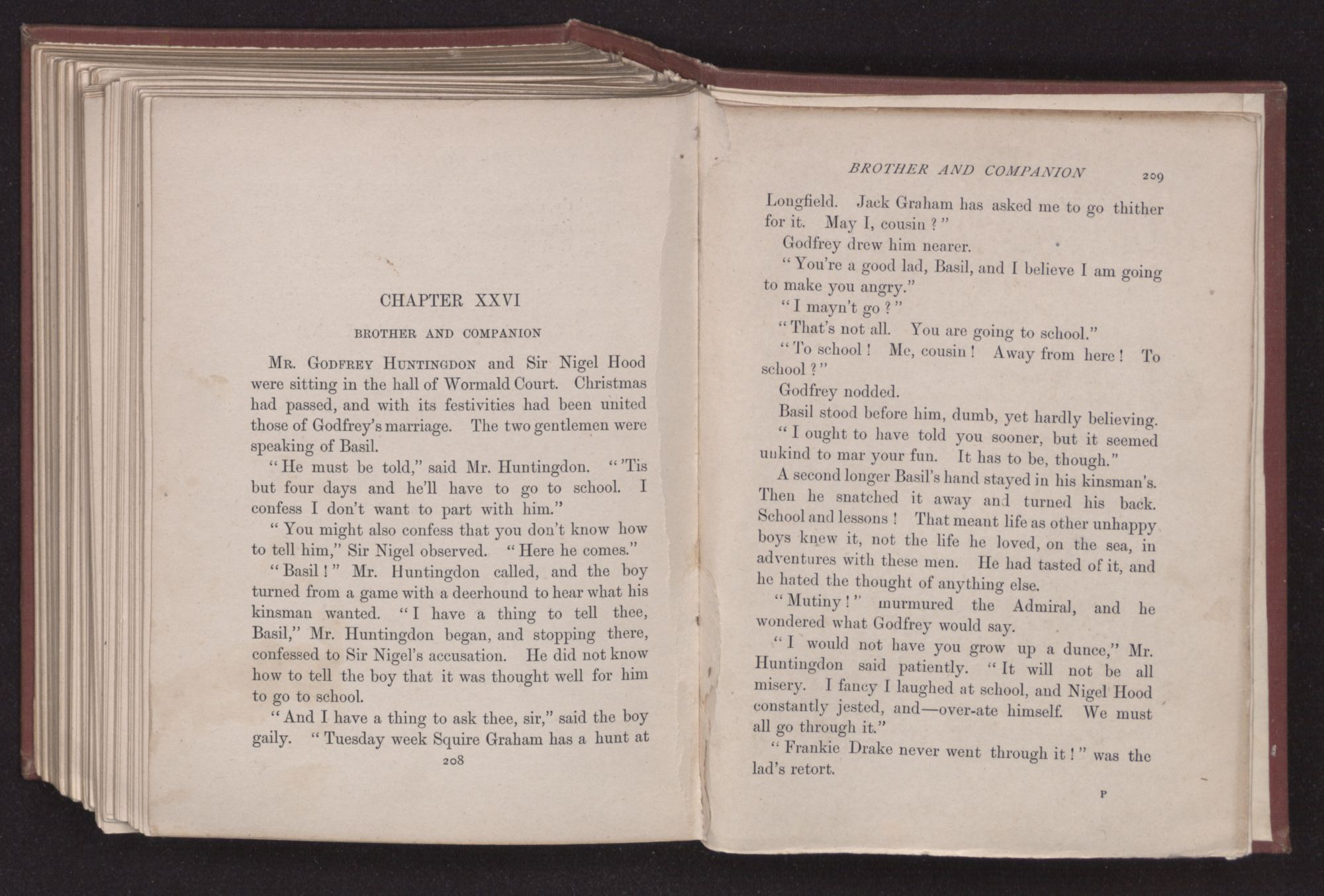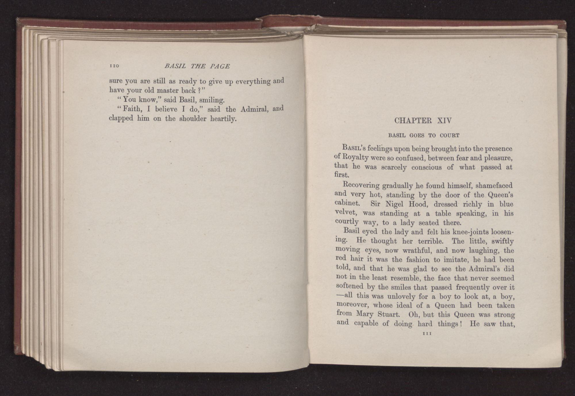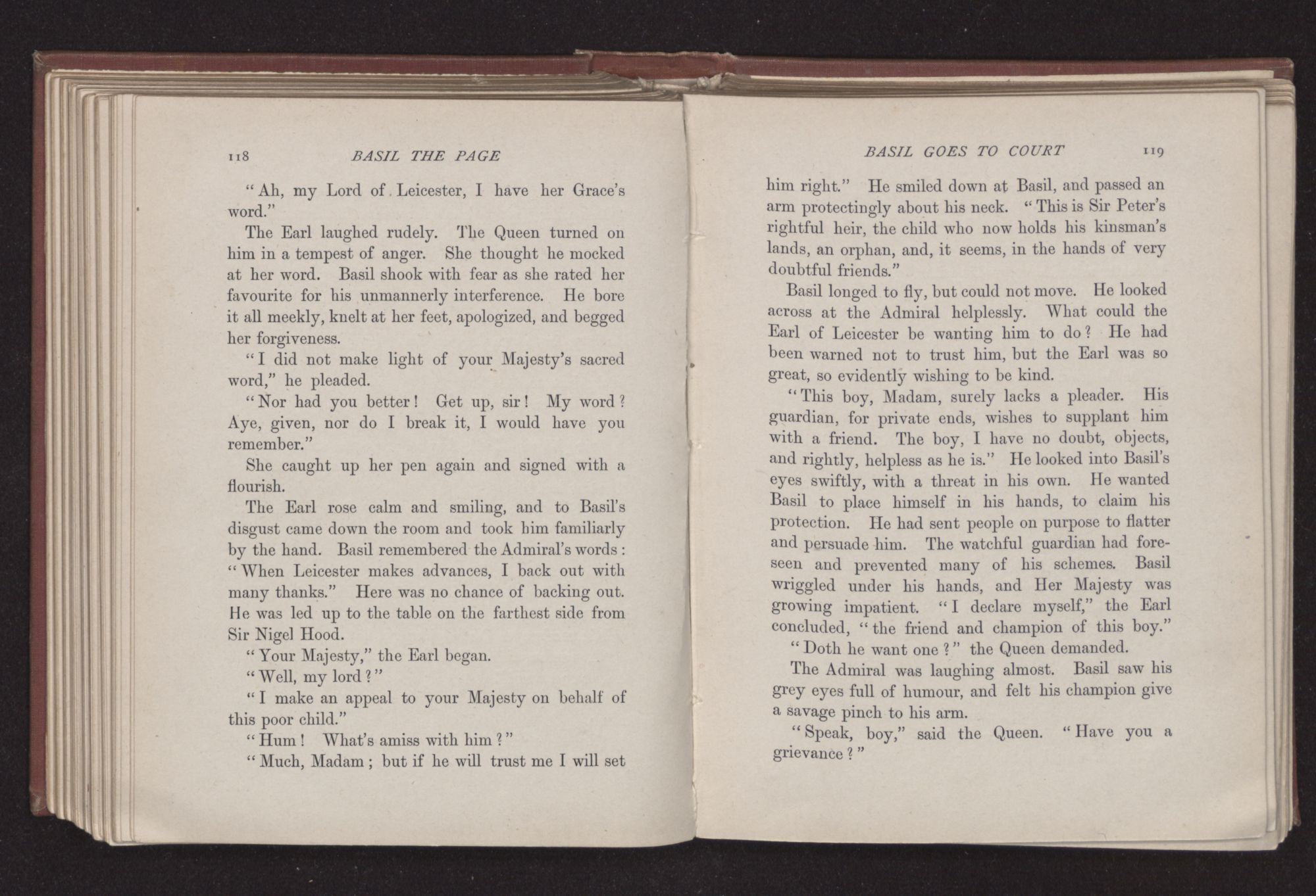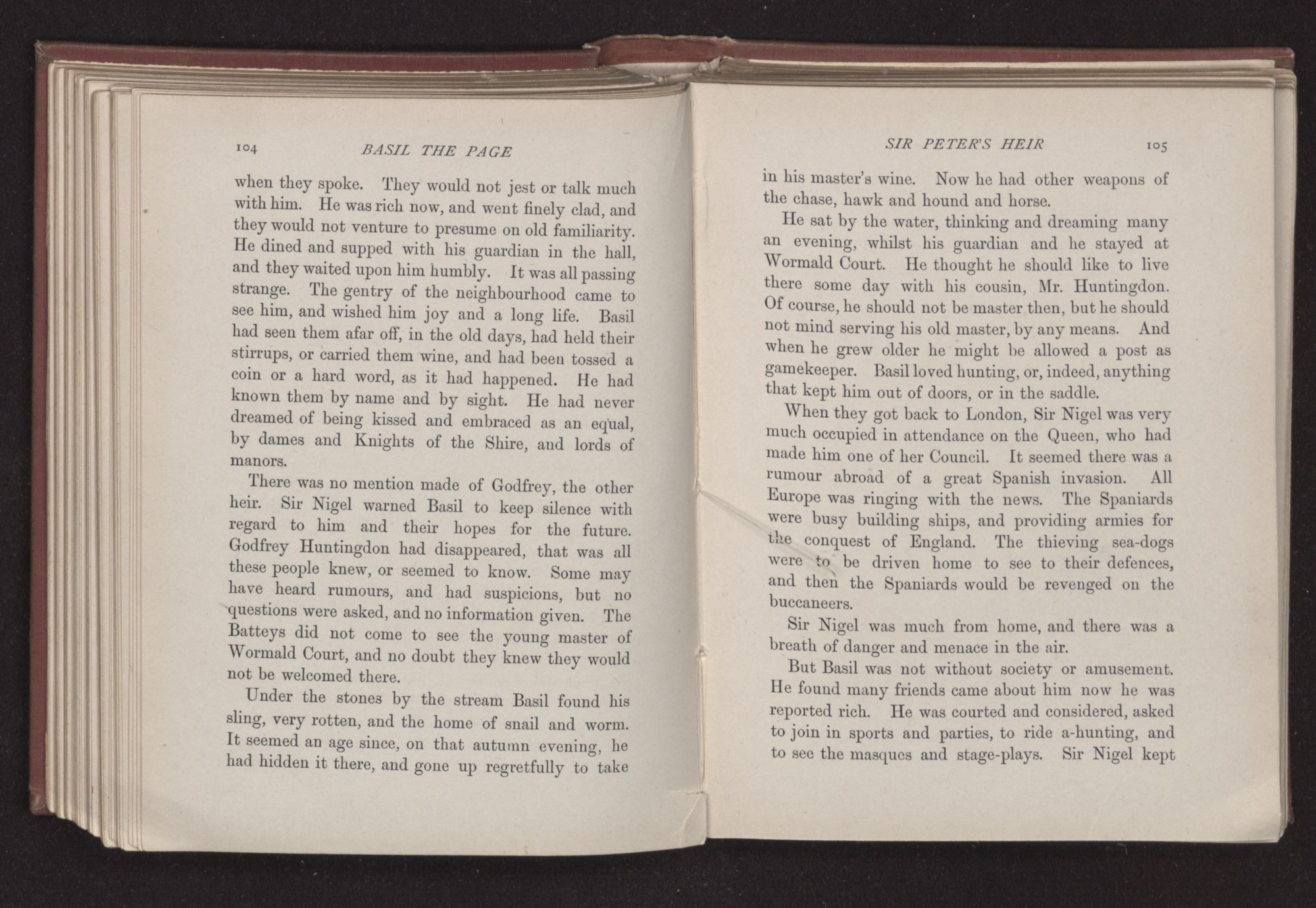 “Basil!” Mr. Huntingdon called, and the boy turned from a game with a deerhound to hear what his kinsman wanted. “I have a thing to tell thee, Basil,” Mr. Huntingdon began, and stopping there, confessed to Sir Nigel's accusation. He did not know how to tell the boy that it was thought well for him to go to school.