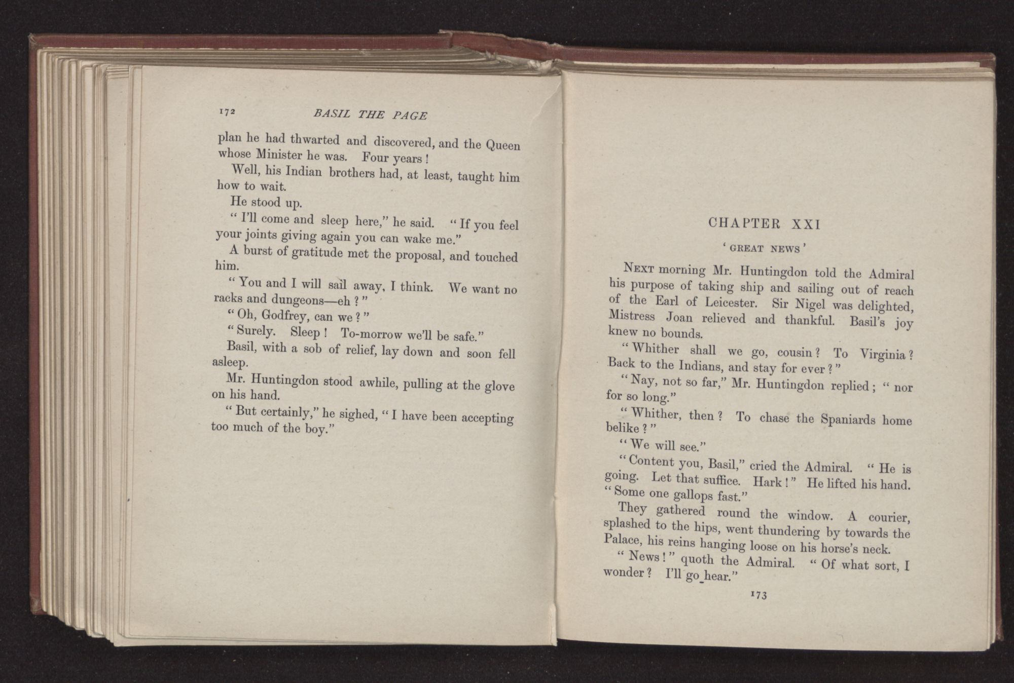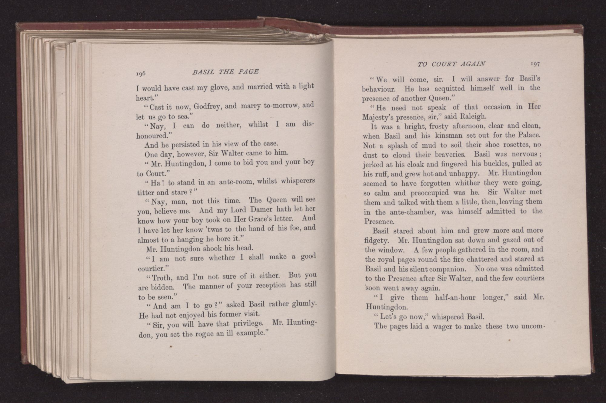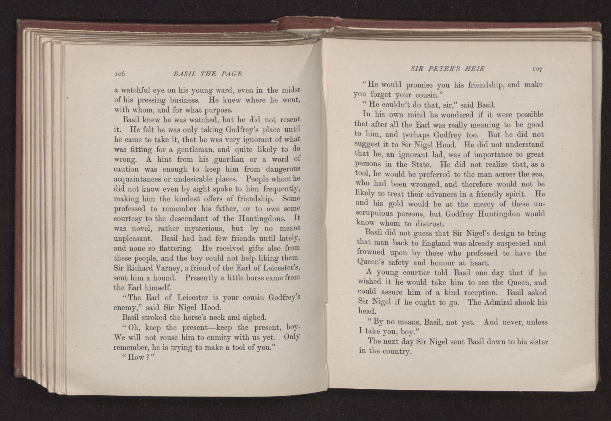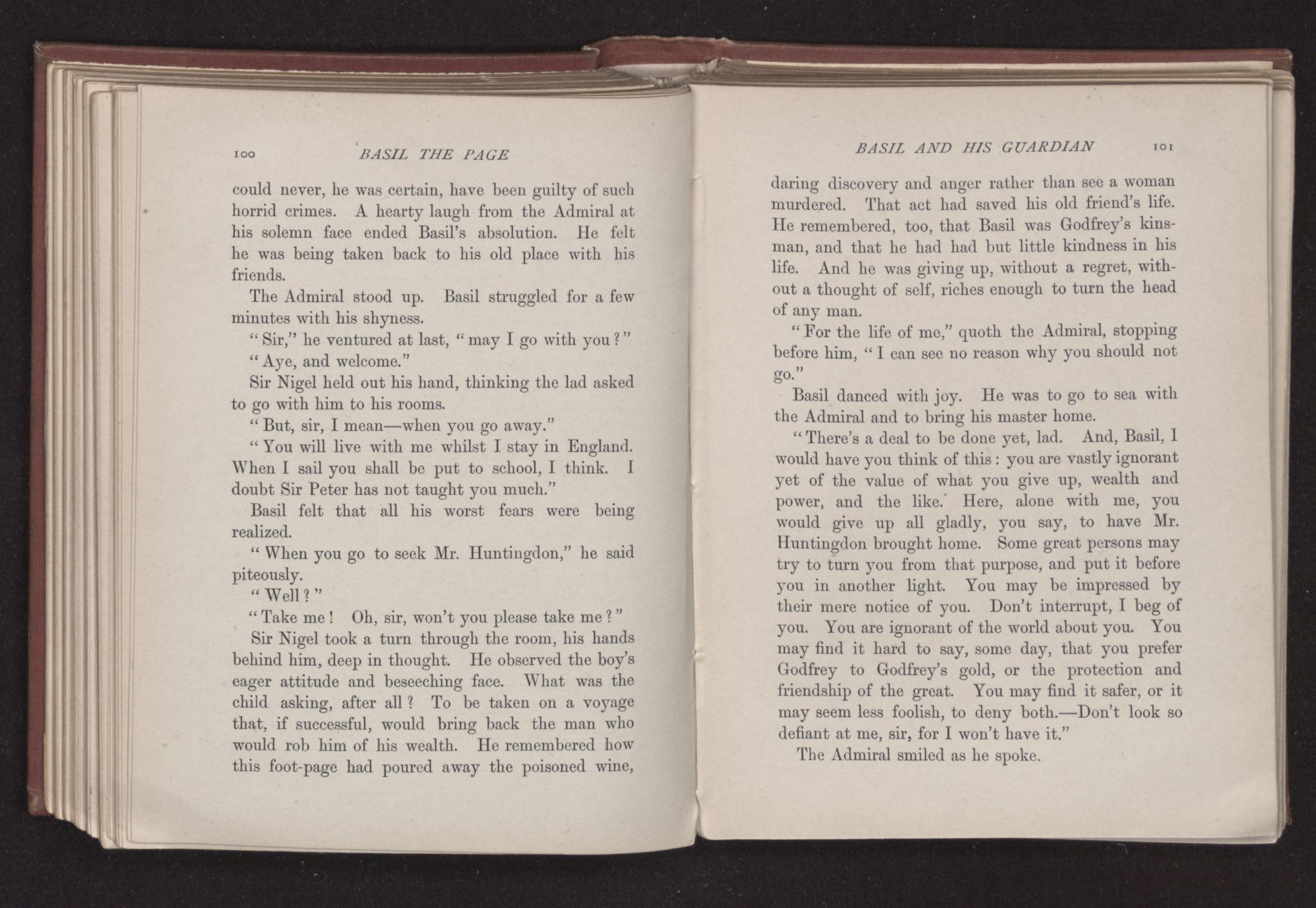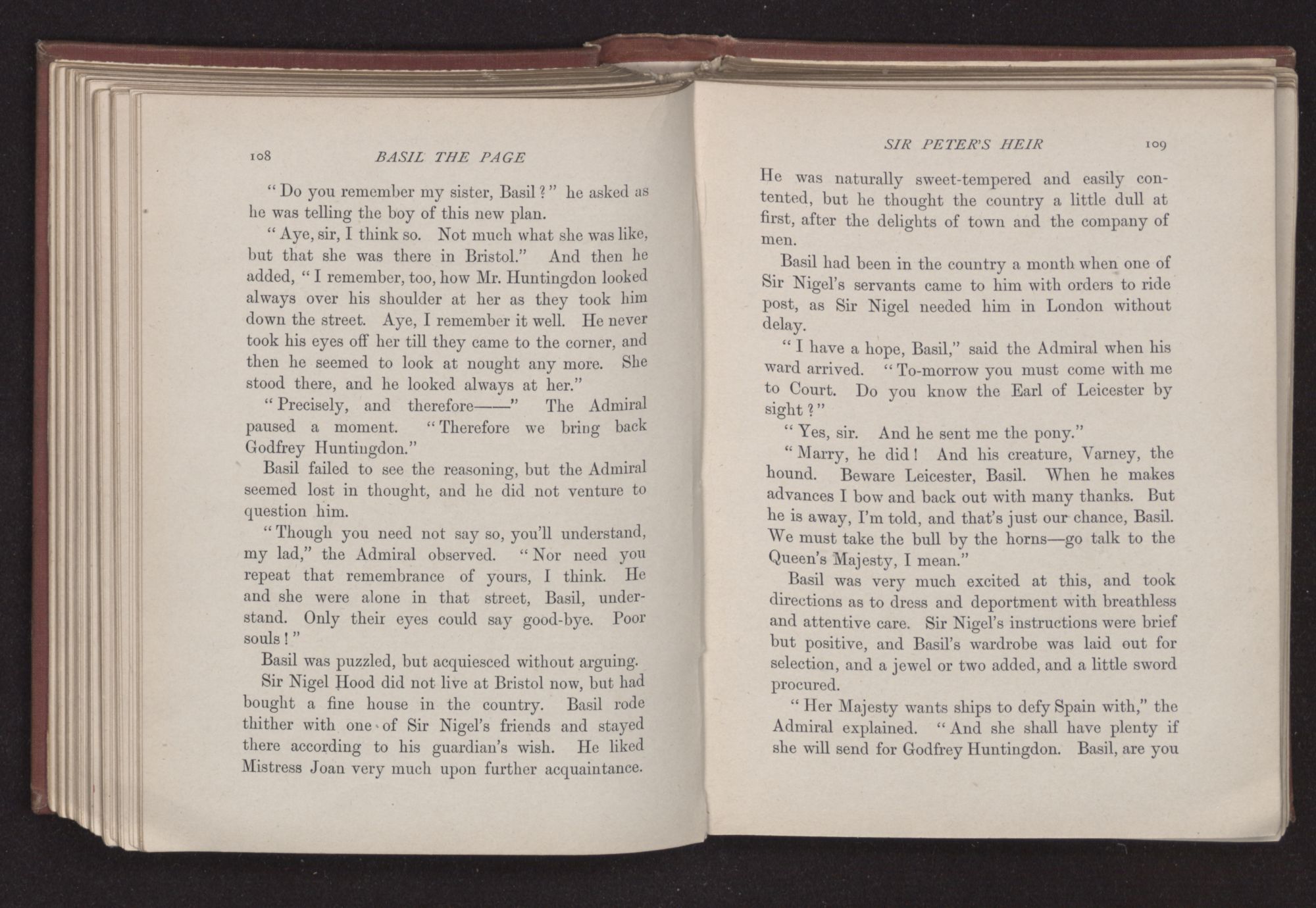 “Basil!” Mr. Huntingdon called, and the boy turned from a game with a deerhound to hear what his kinsman wanted. “I have a thing to tell thee, Basil,” Mr. Huntingdon began, and stopping there, confessed to Sir Nigel's accusation. He did not know how to tell the boy that it was thought well for him to go to school.