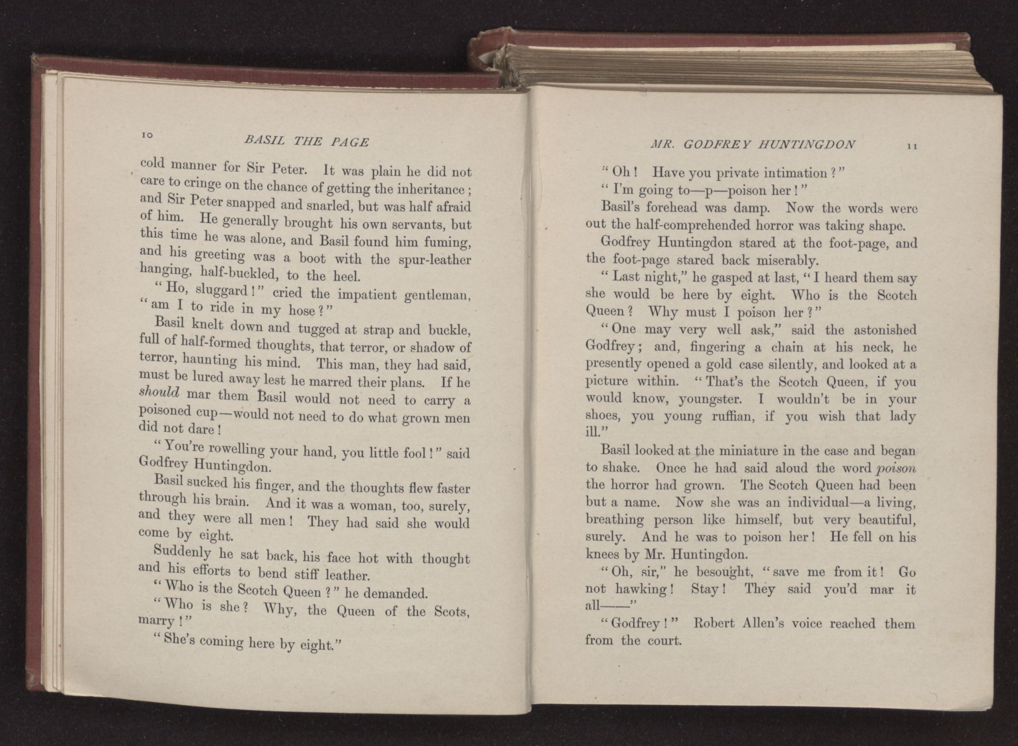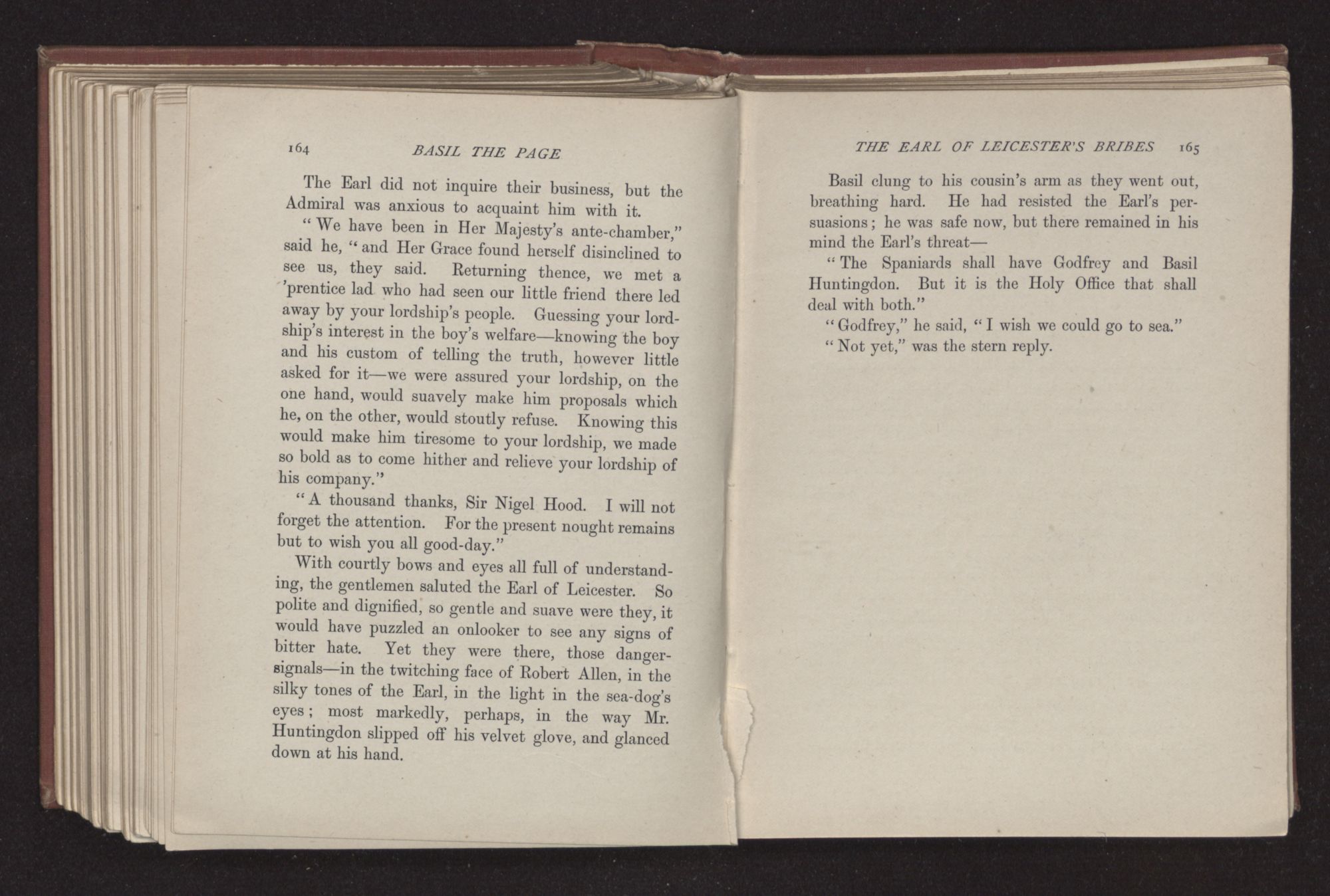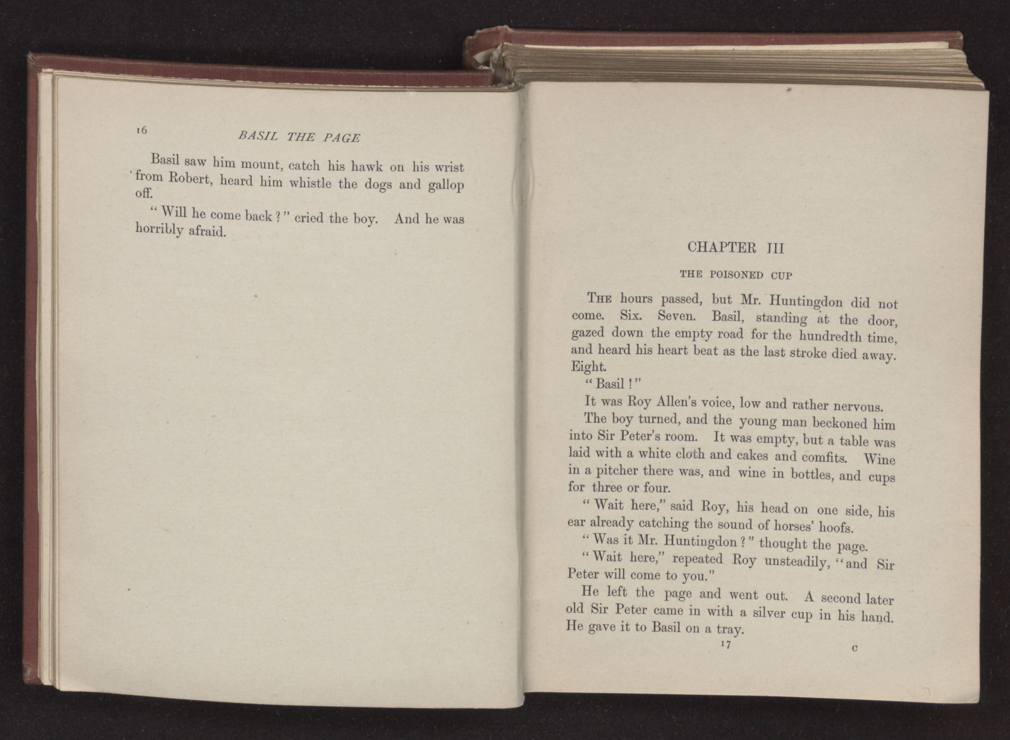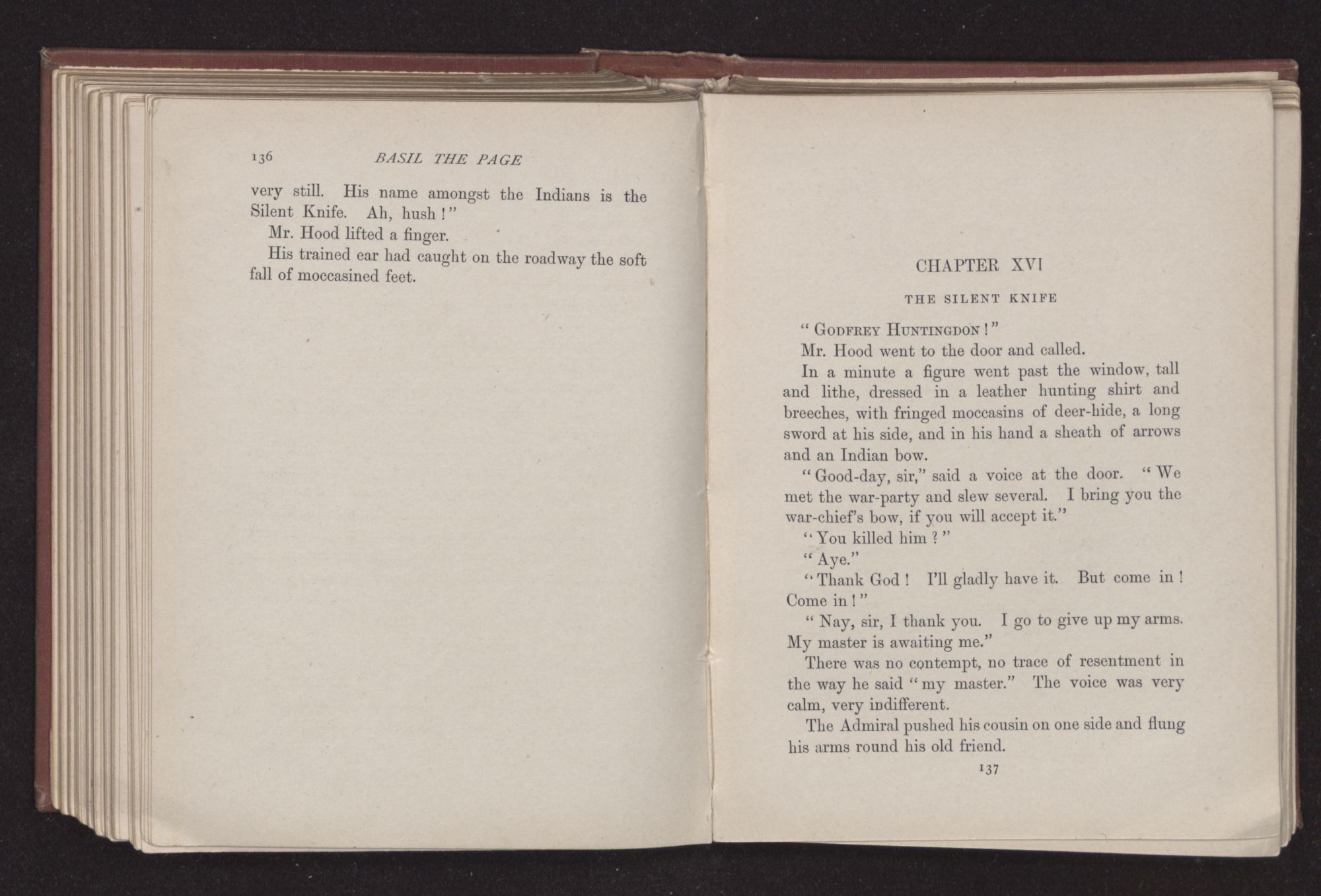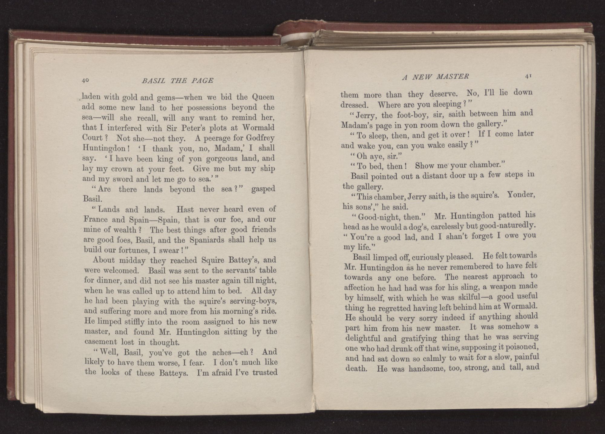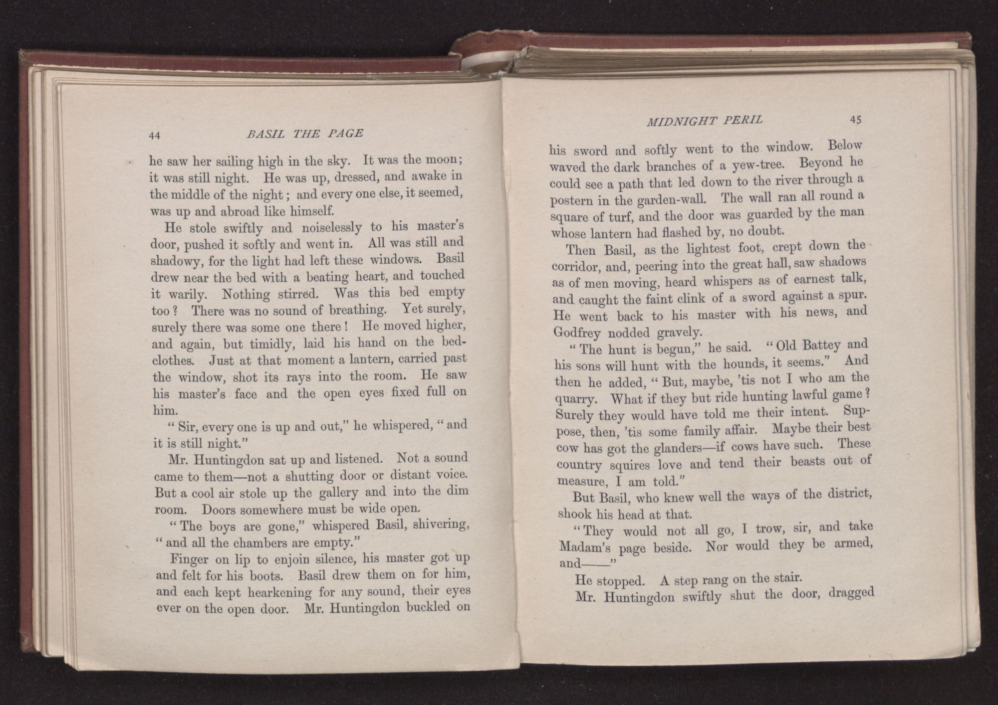 “Basil!” Mr. Huntingdon called, and the boy turned from a game with a deerhound to hear what his kinsman wanted. “I have a thing to tell thee, Basil,” Mr. Huntingdon began, and stopping there, confessed to Sir Nigel's accusation. He did not know how to tell the boy that it was thought well for him to go to school.