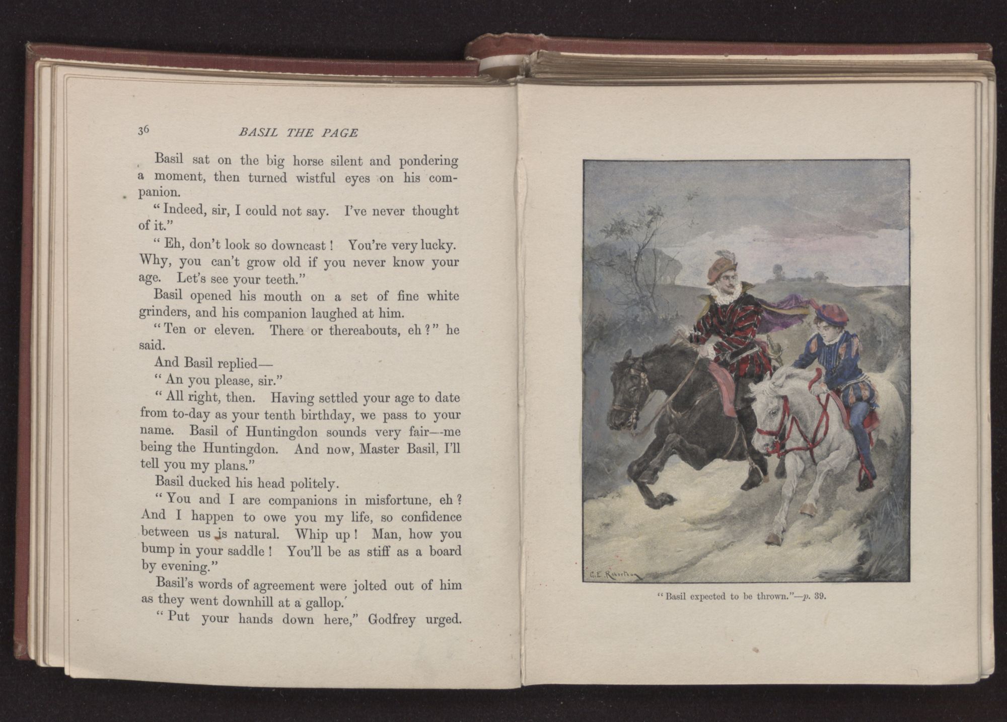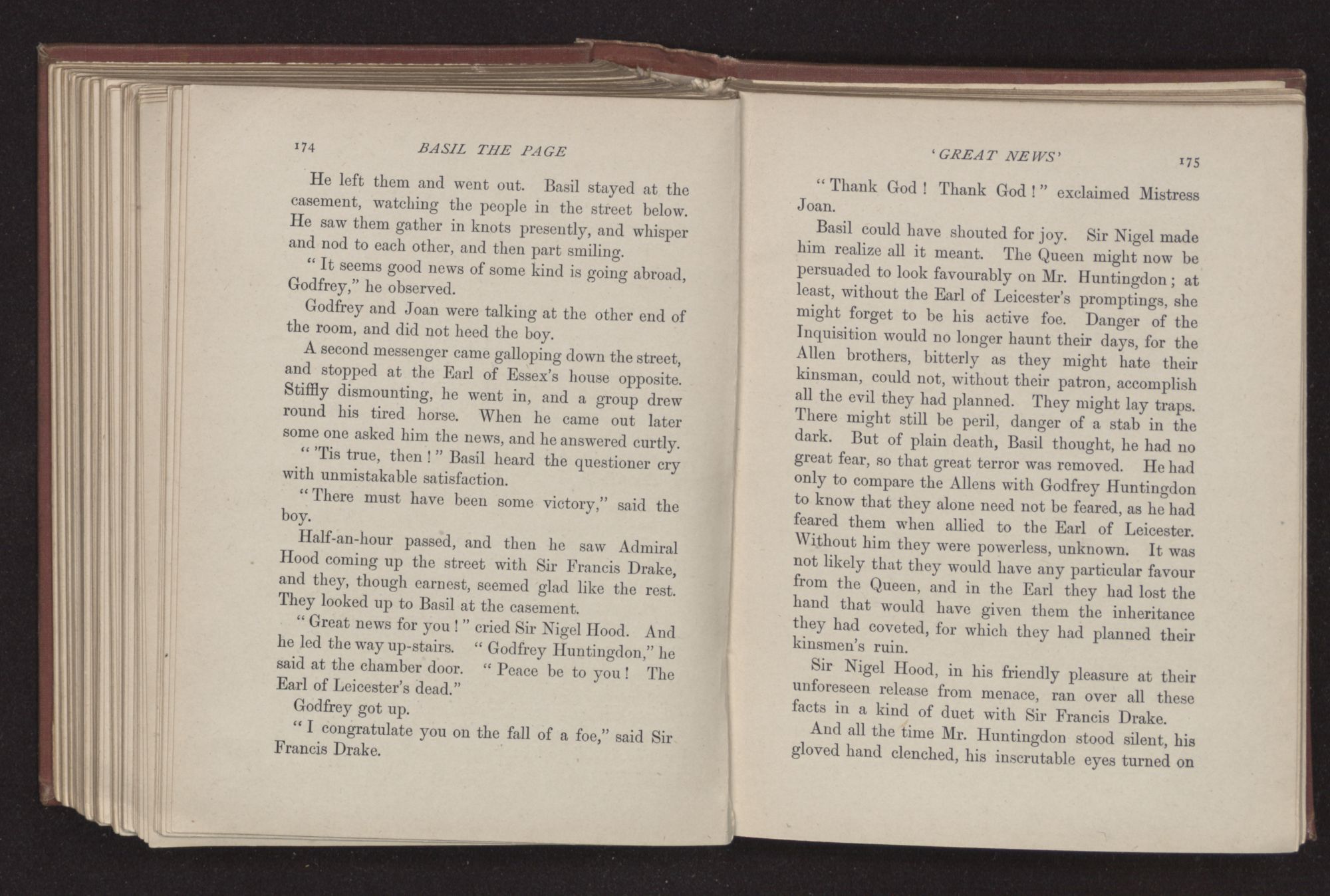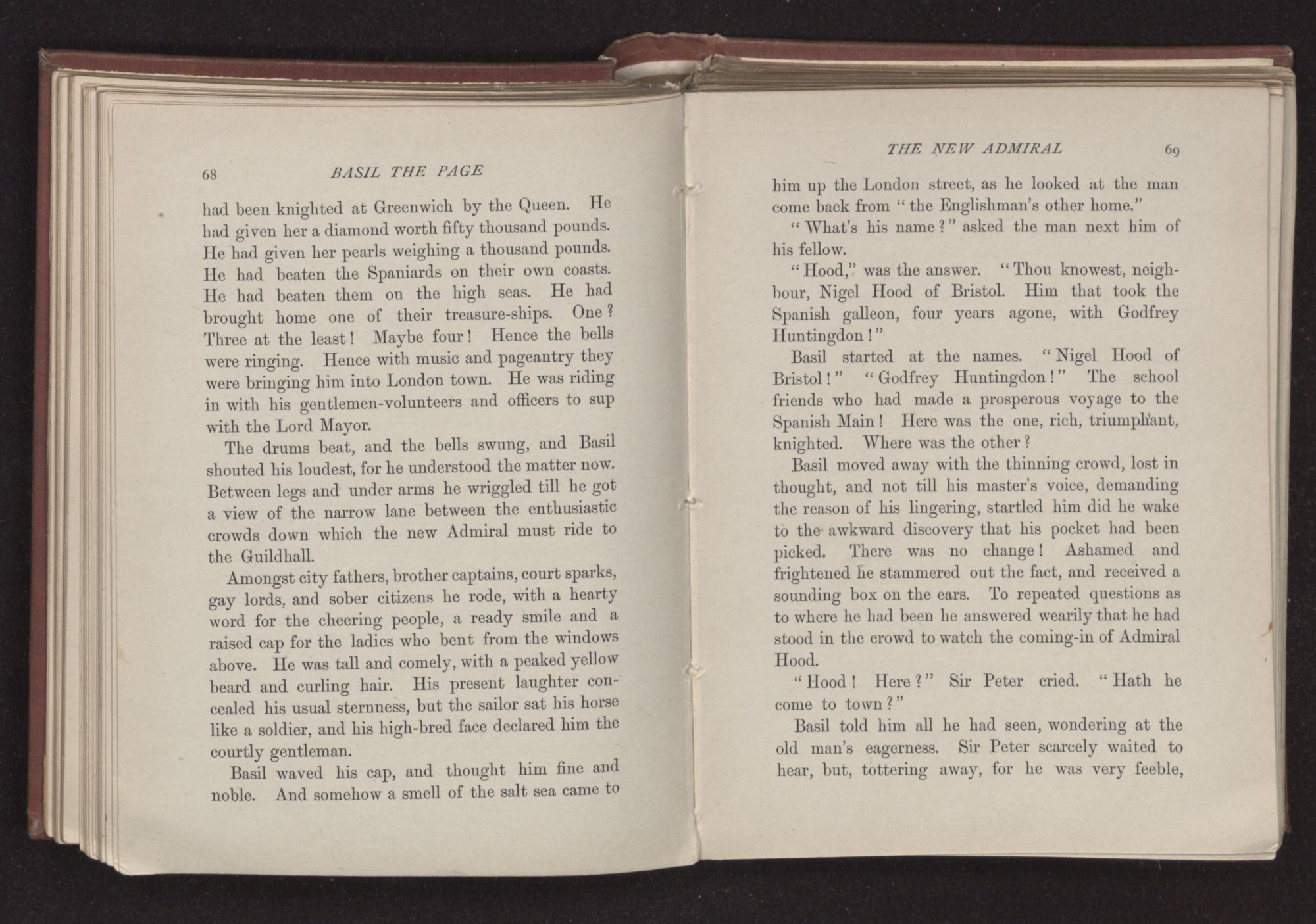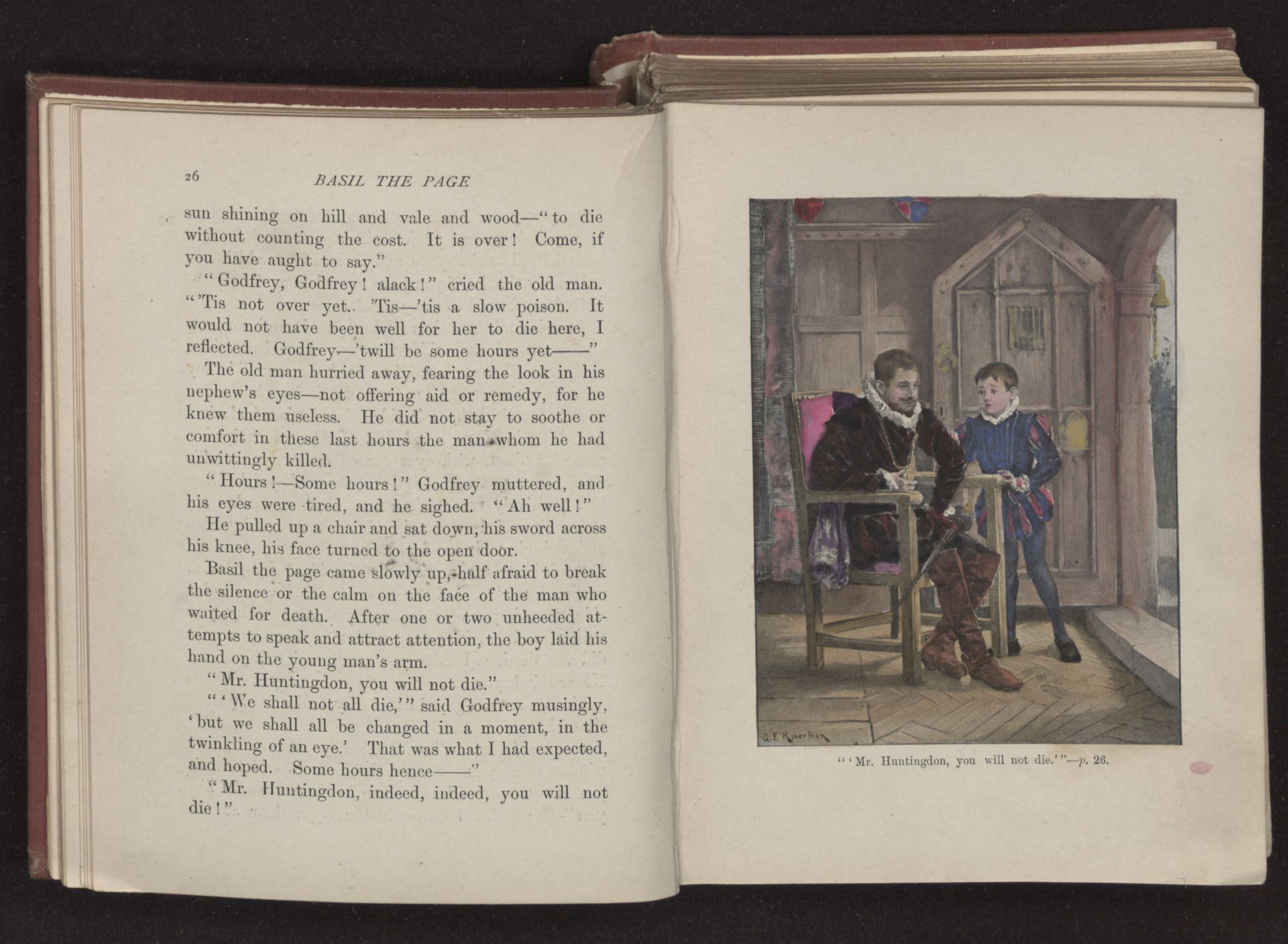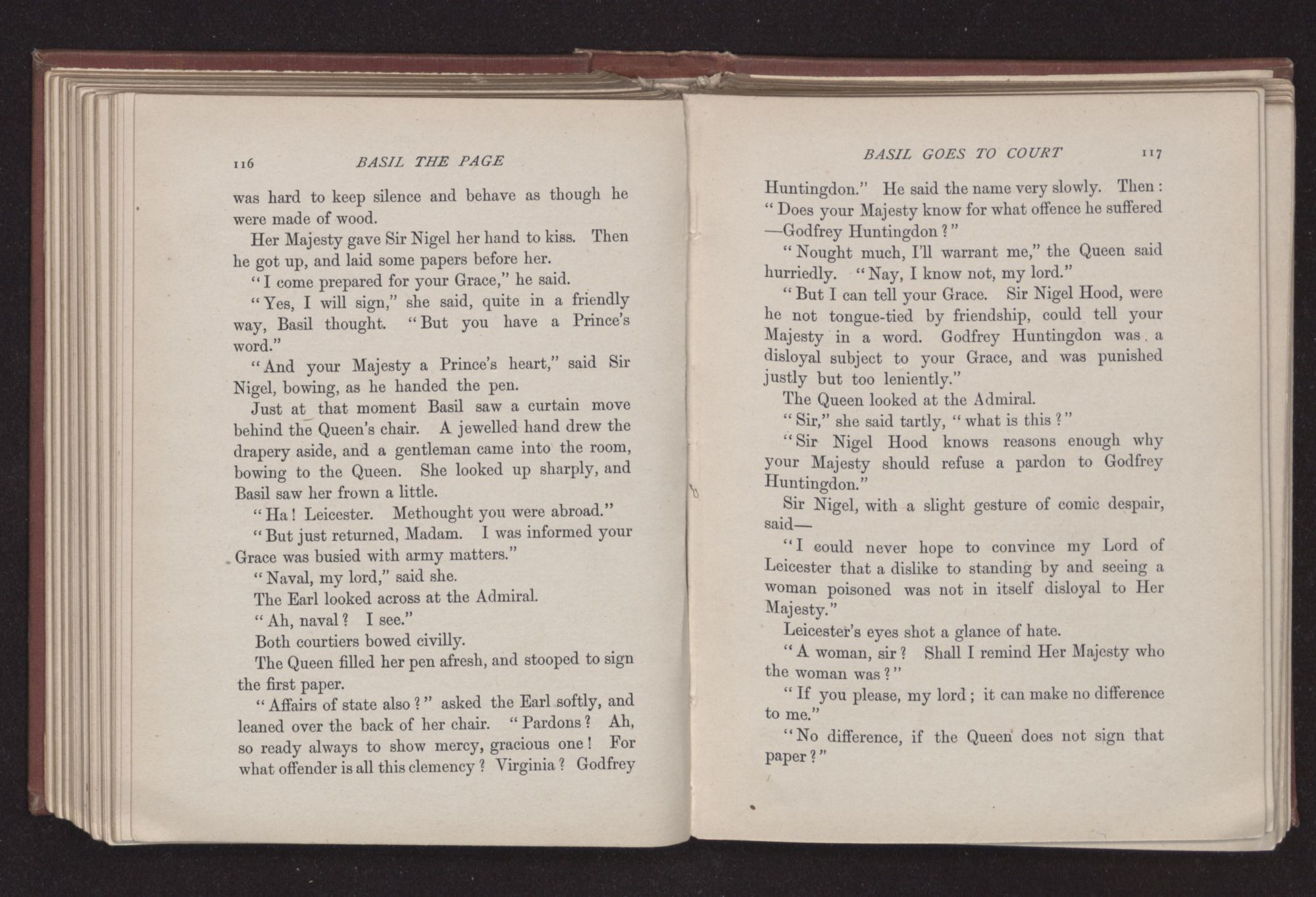 “Basil!” Mr. Huntingdon called, and the boy turned from a game with a deerhound to hear what his kinsman wanted. “I have a thing to tell thee, Basil,” Mr. Huntingdon began, and stopping there, confessed to Sir Nigel's accusation. He did not know how to tell the boy that it was thought well for him to go to school.