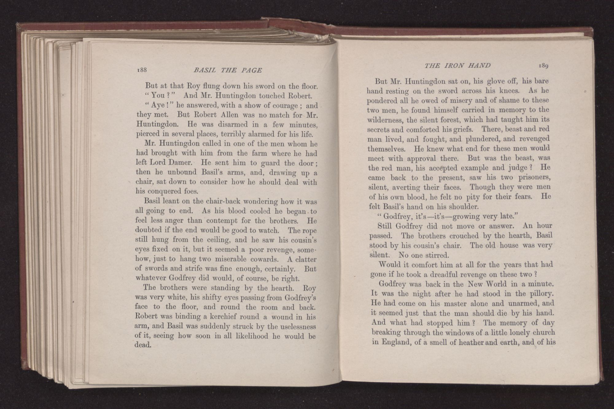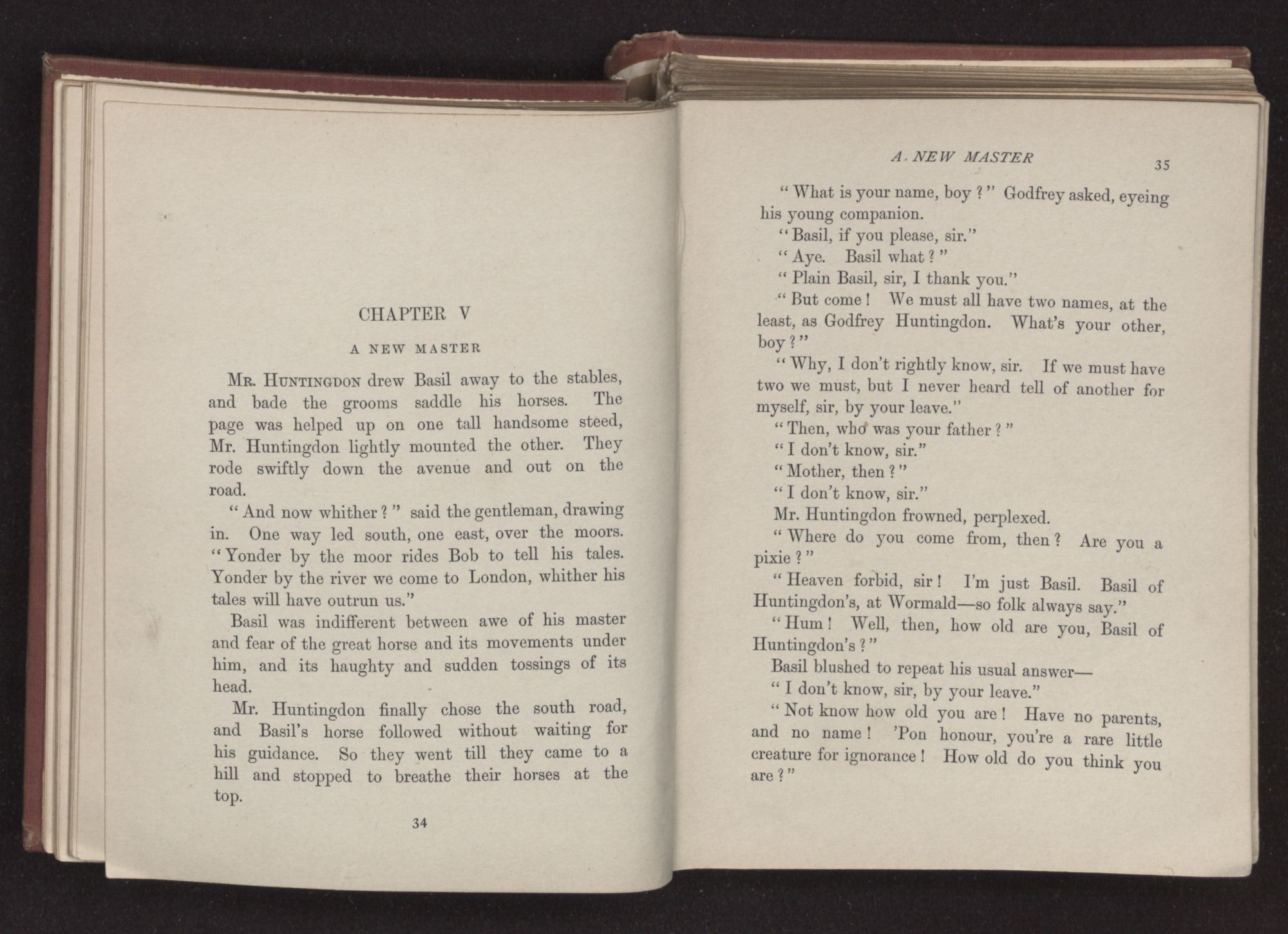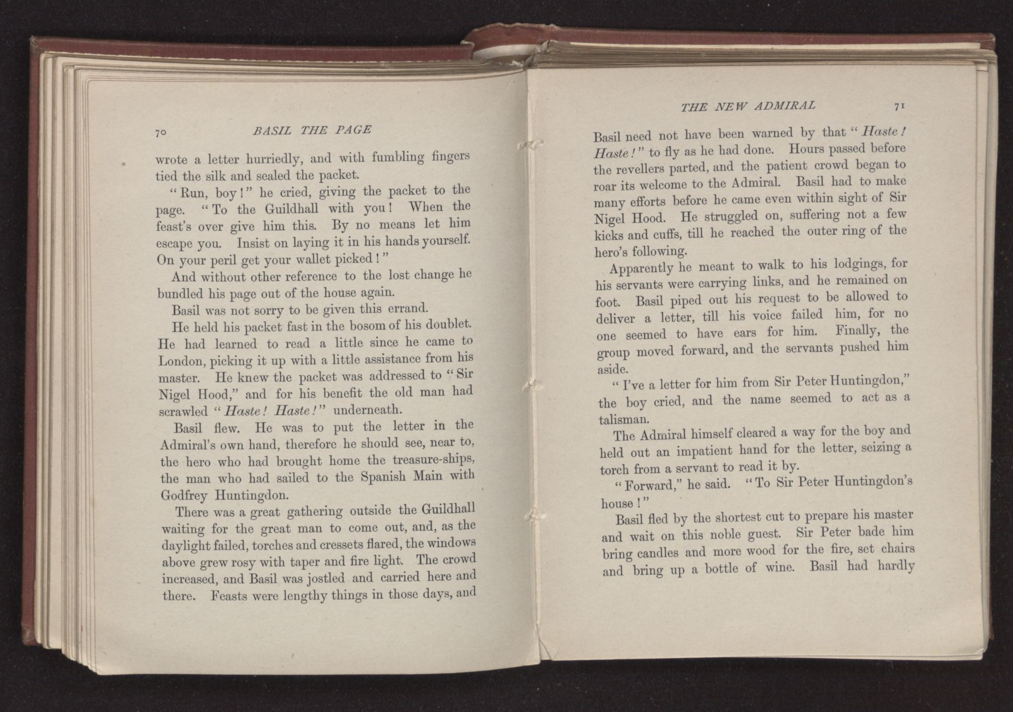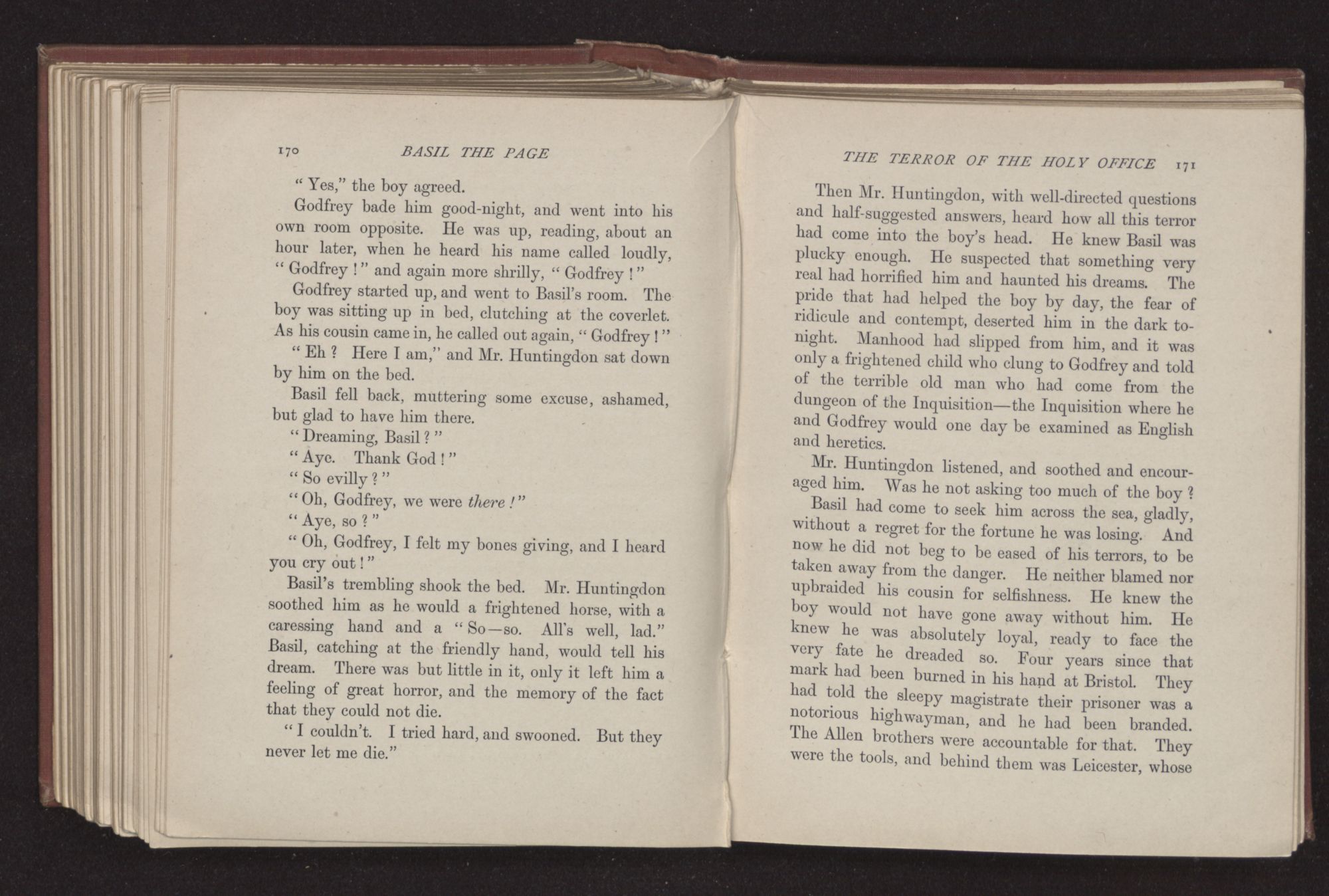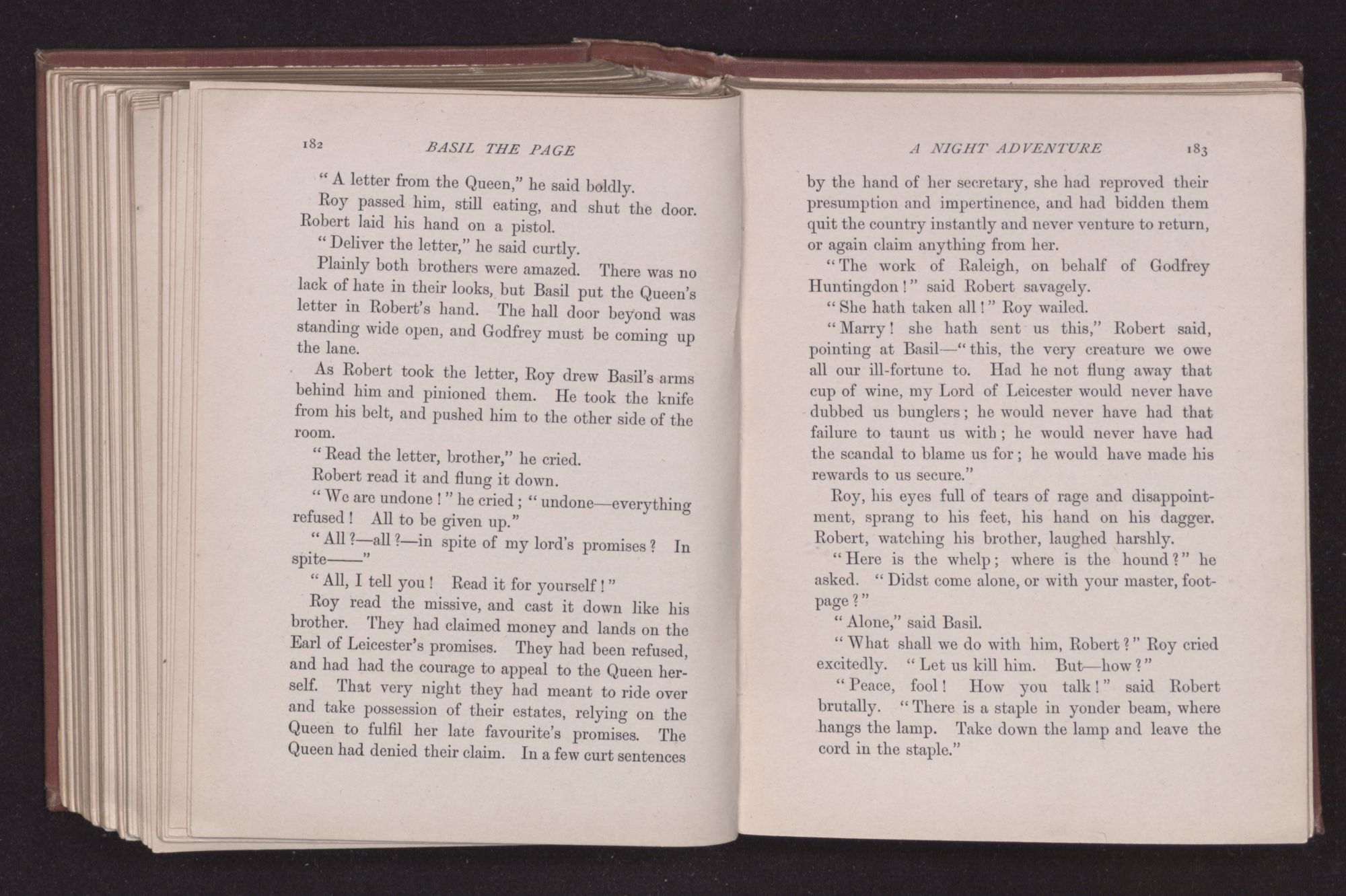 “Basil!” Mr. Huntingdon called, and the boy turned from a game with a deerhound to hear what his kinsman wanted. “I have a thing to tell thee, Basil,” Mr. Huntingdon began, and stopping there, confessed to Sir Nigel's accusation. He did not know how to tell the boy that it was thought well for him to go to school.