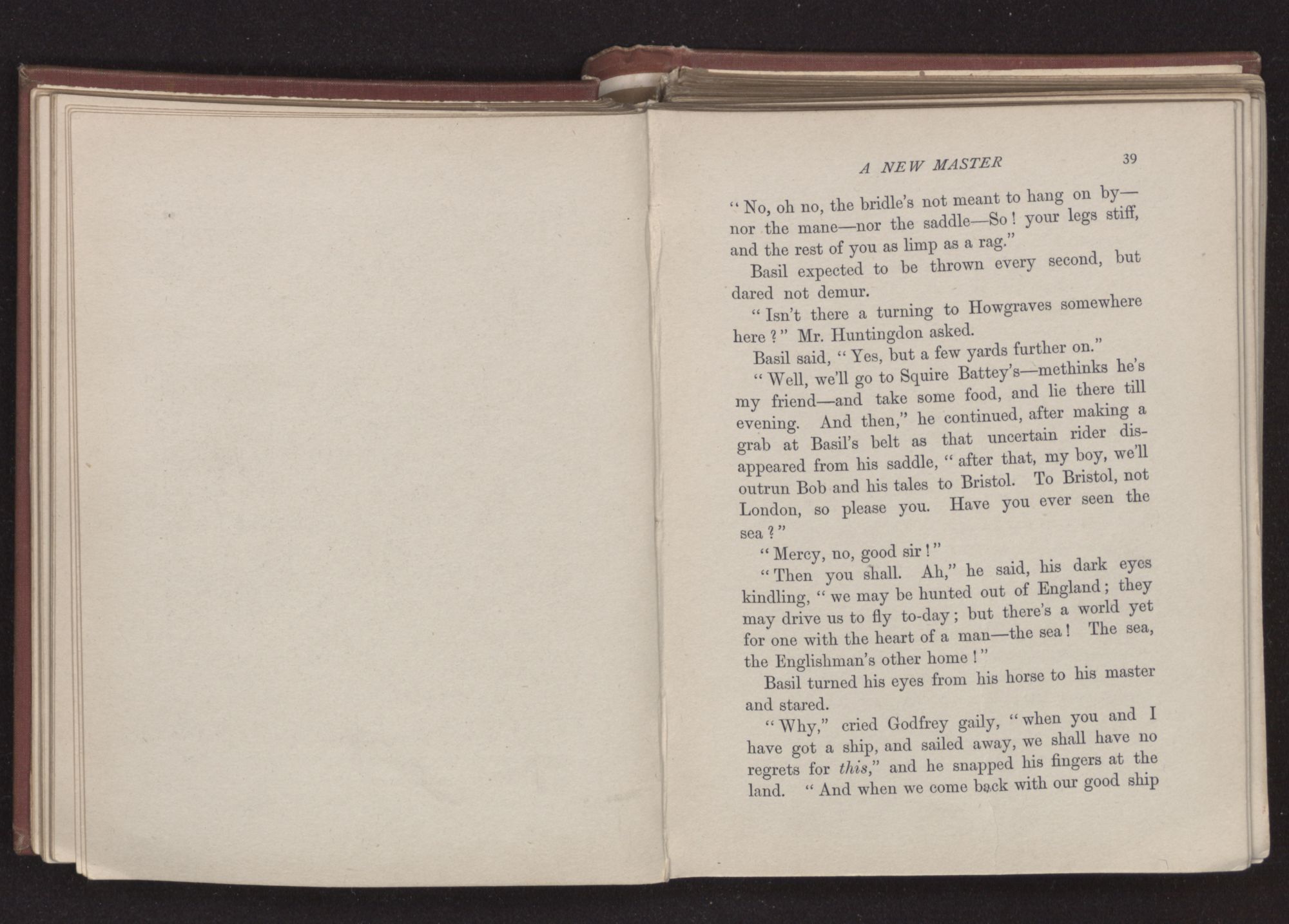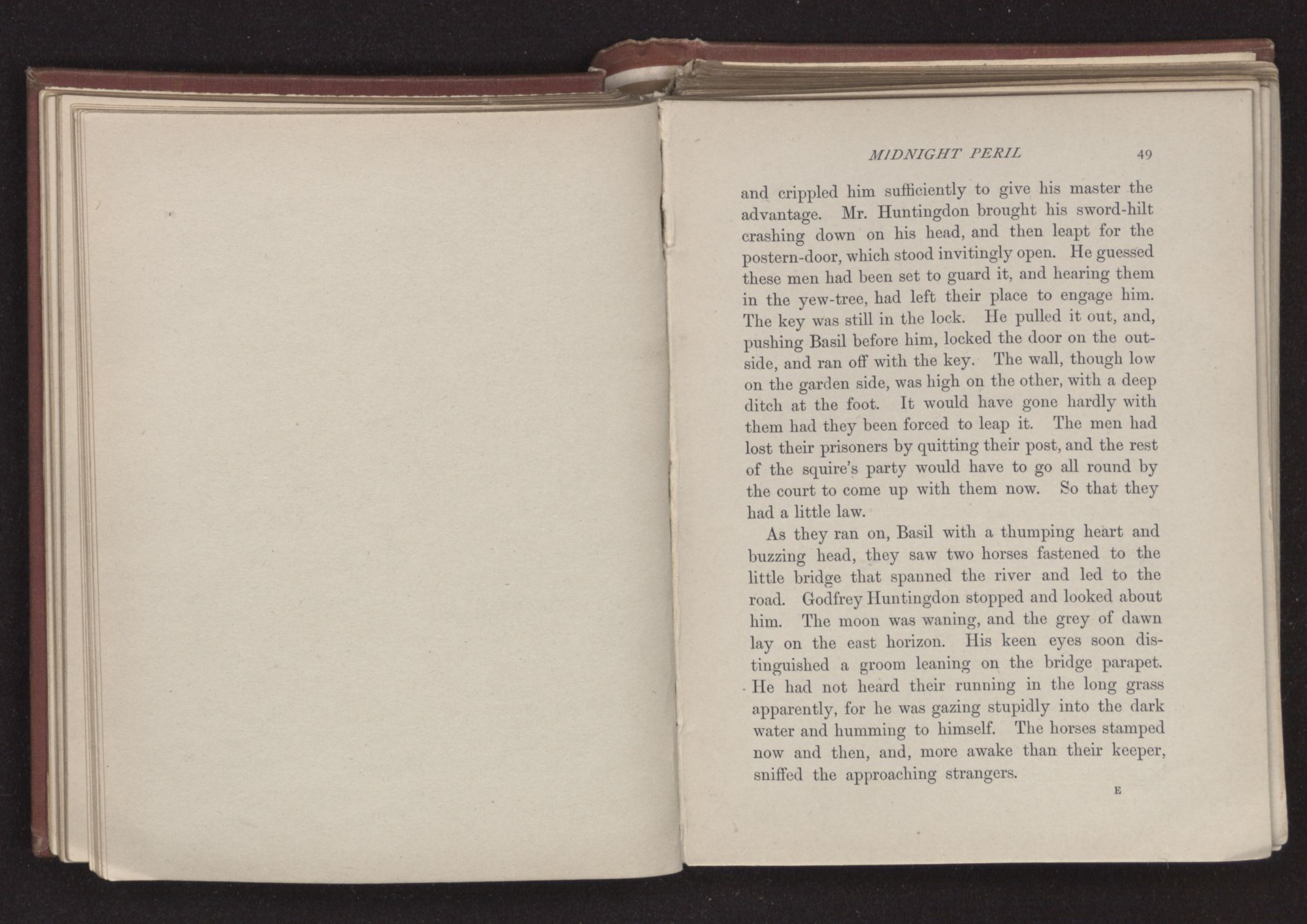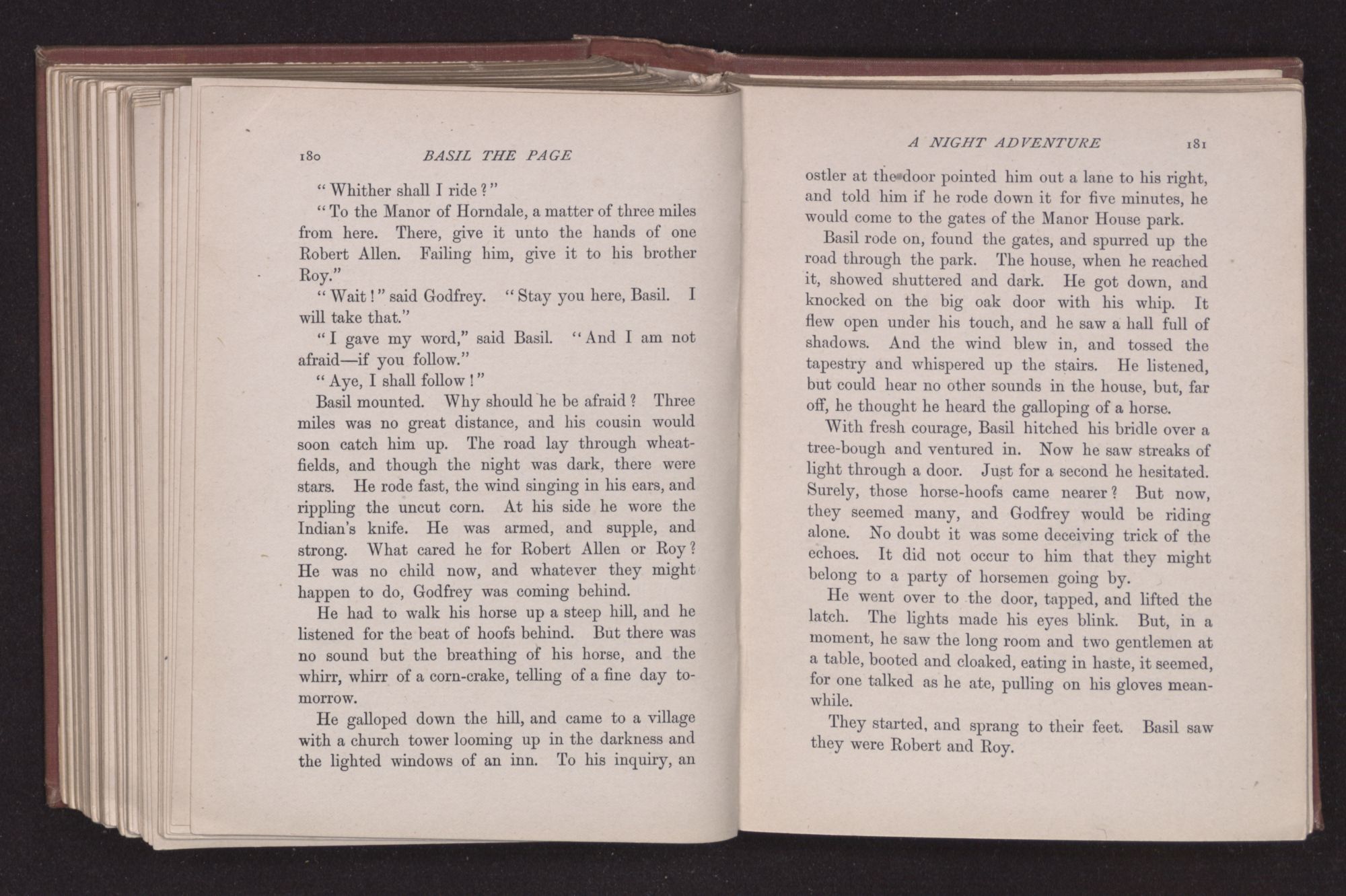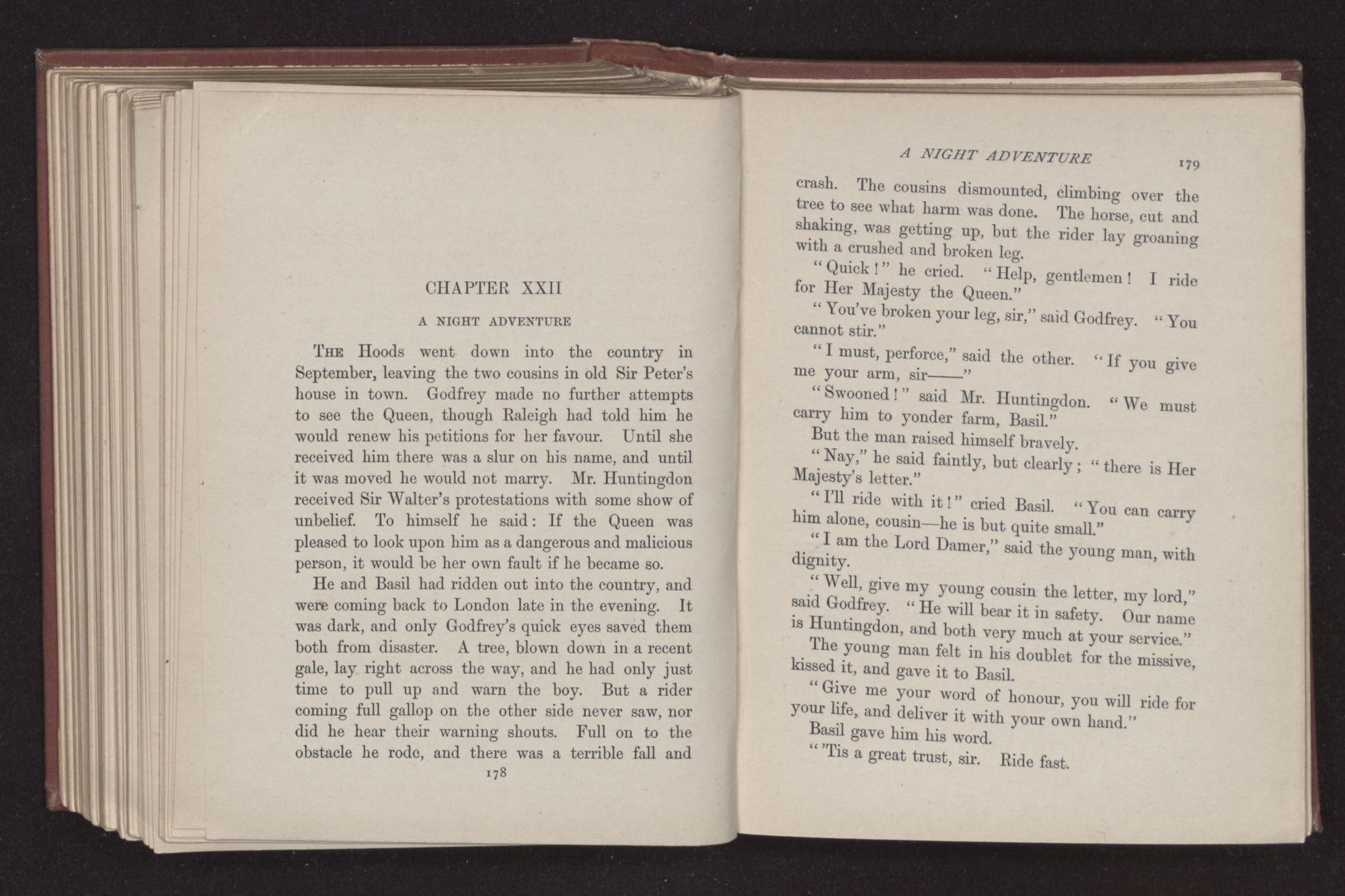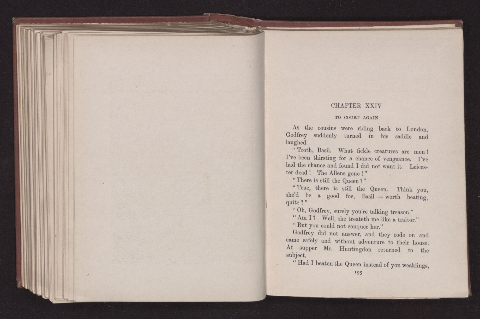“Basil!” Mr. Huntingdon called, and the boy turned from a game with a deerhound to hear what his kinsman wanted. “I have a thing to tell thee, Basil,” Mr. Huntingdon began, and stopping there, confessed to Sir Nigel's accusation. He did not know how to tell the boy that it was thought well for him to go to school.
