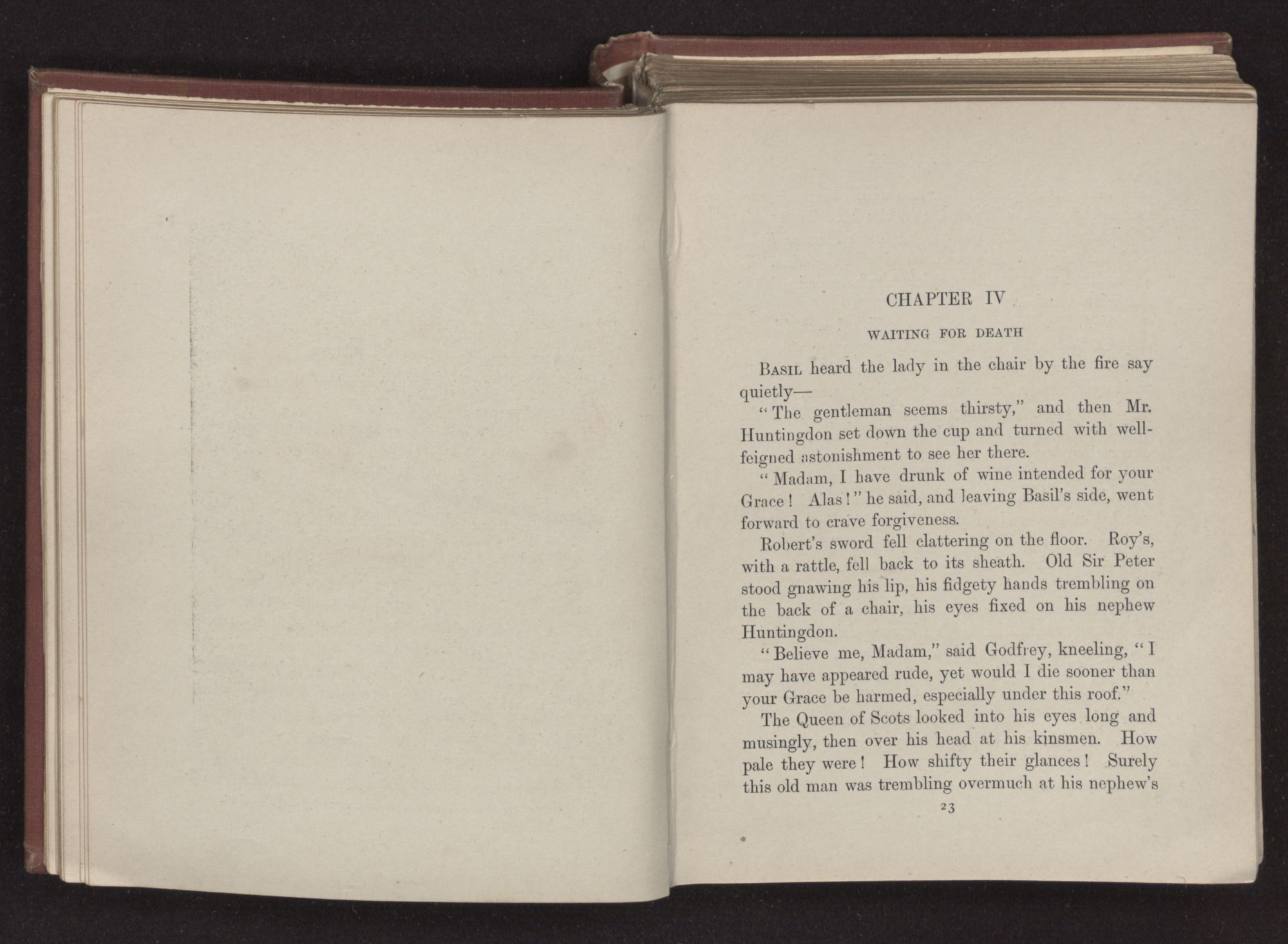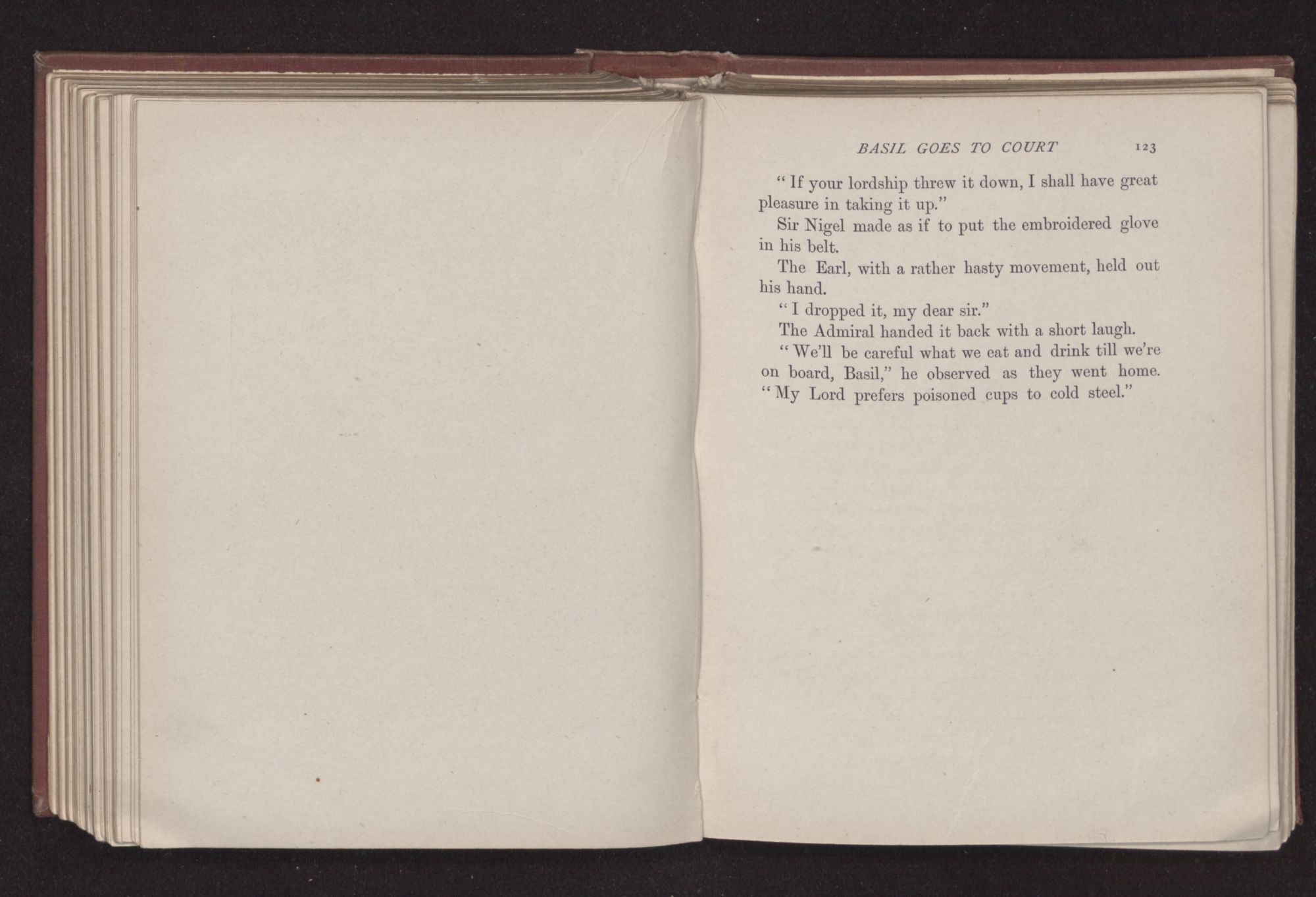 “Basil shall carry the cup to her, Bob. Plainly, I dare not. It works so sudden, that poison! Man, before I could turn she'd be dead!”
