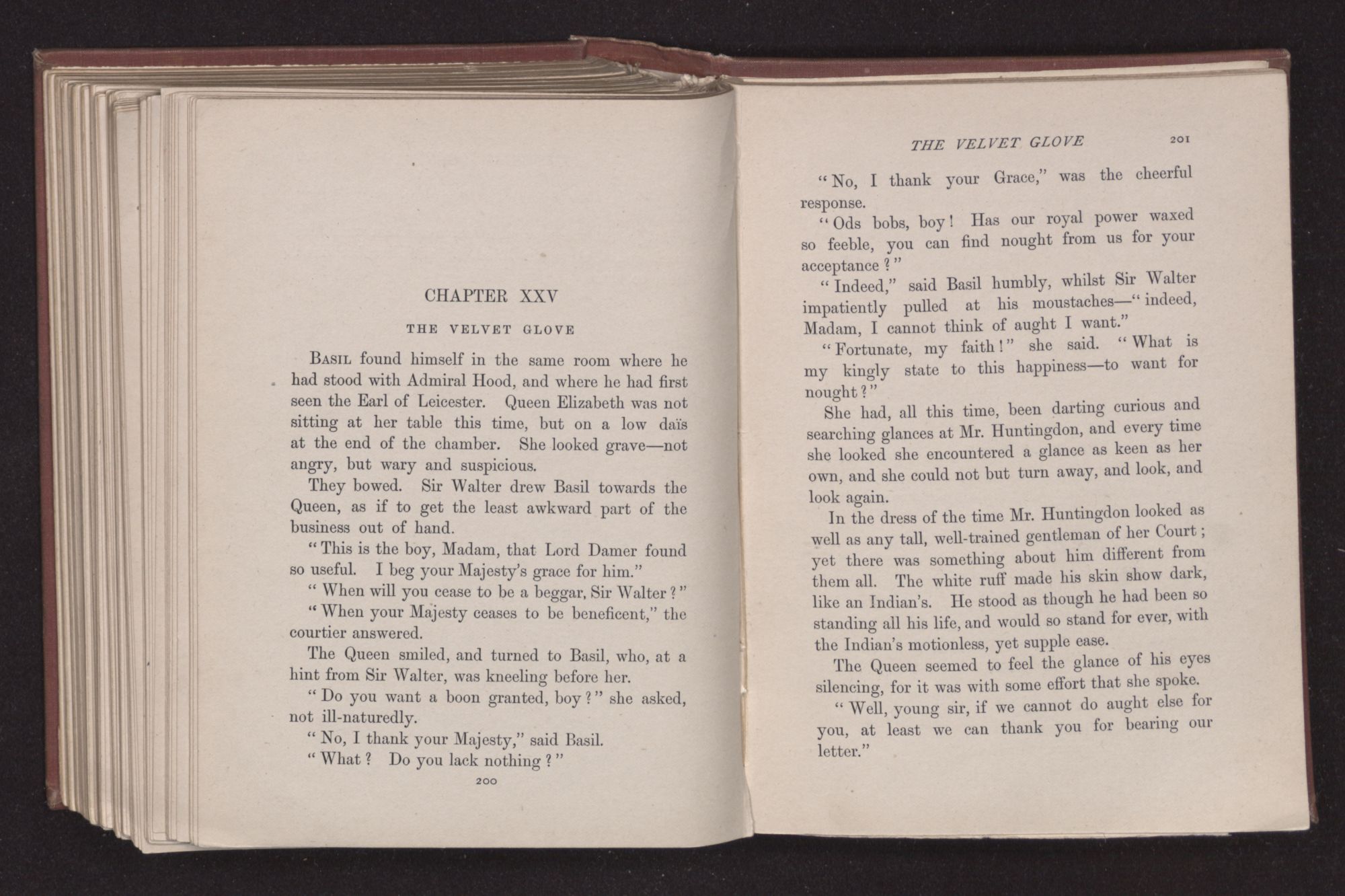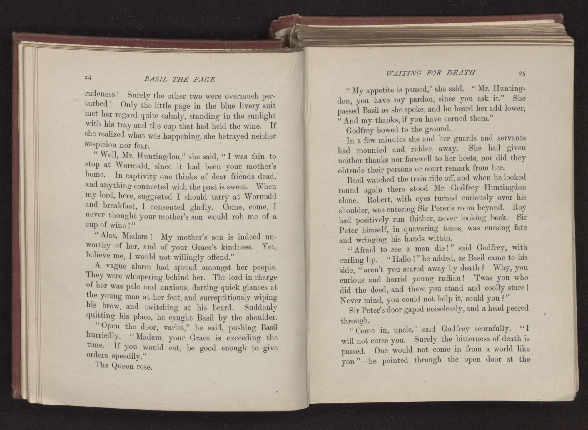 “Indeed,” said Basil humbly, whilst Sir Walter impatiently pulled at his moustaches—“indeed, Madam, I cannot think of aught I want.”