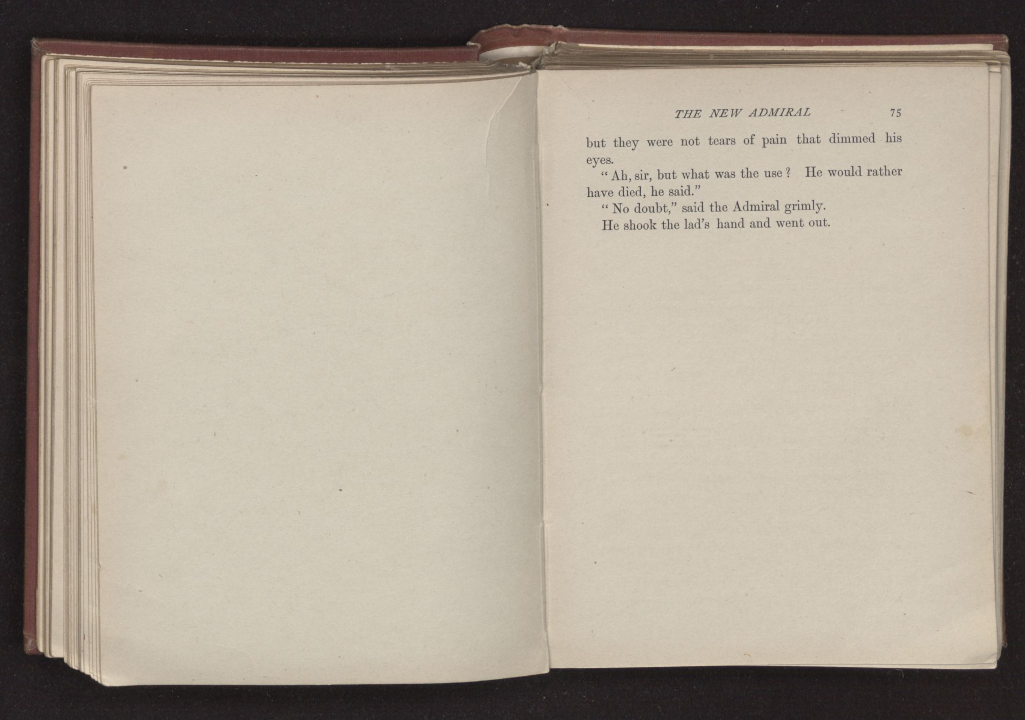 The Admiral watched them till he saw the boy scrub away his tears and say bravely but with a catchy breath—