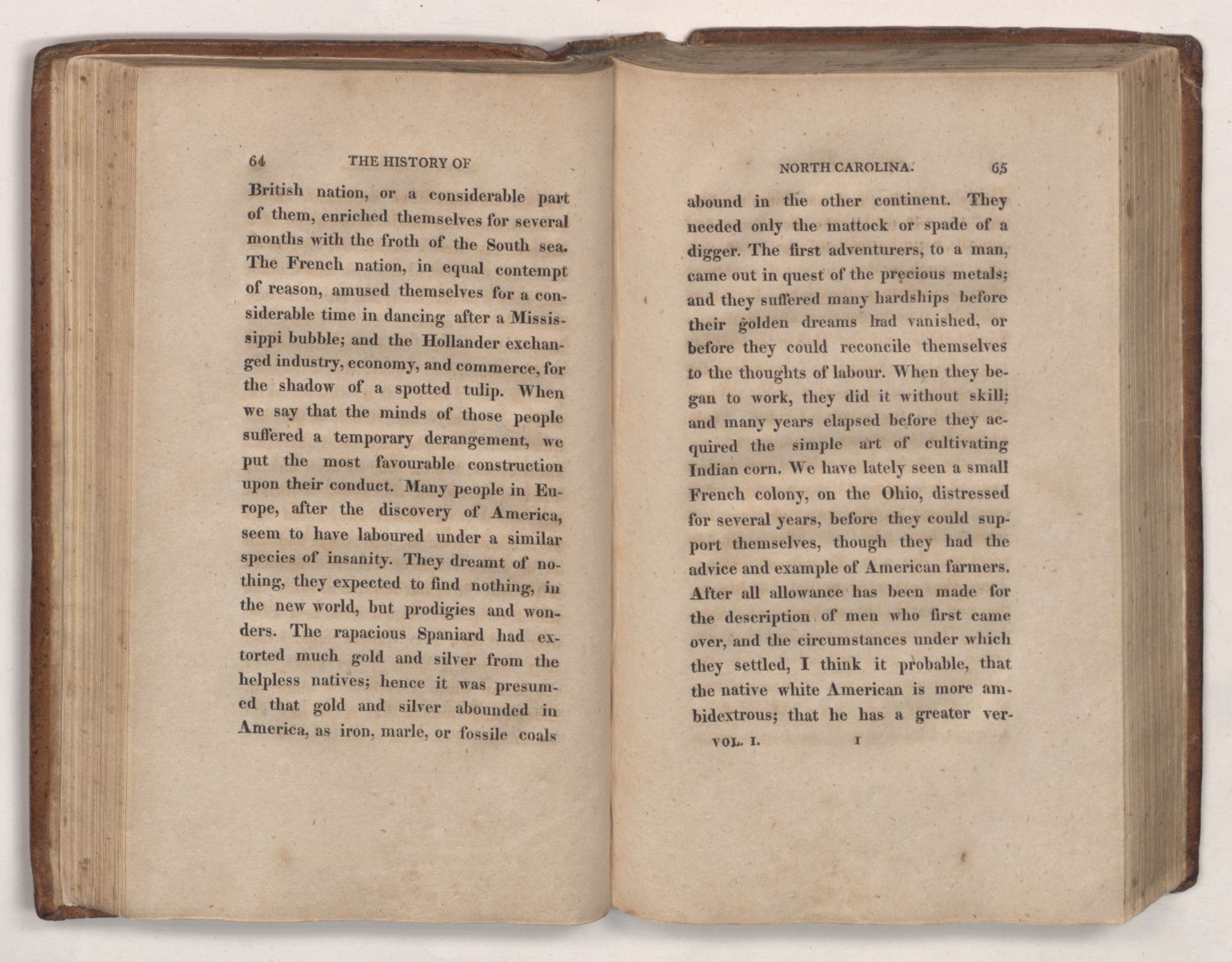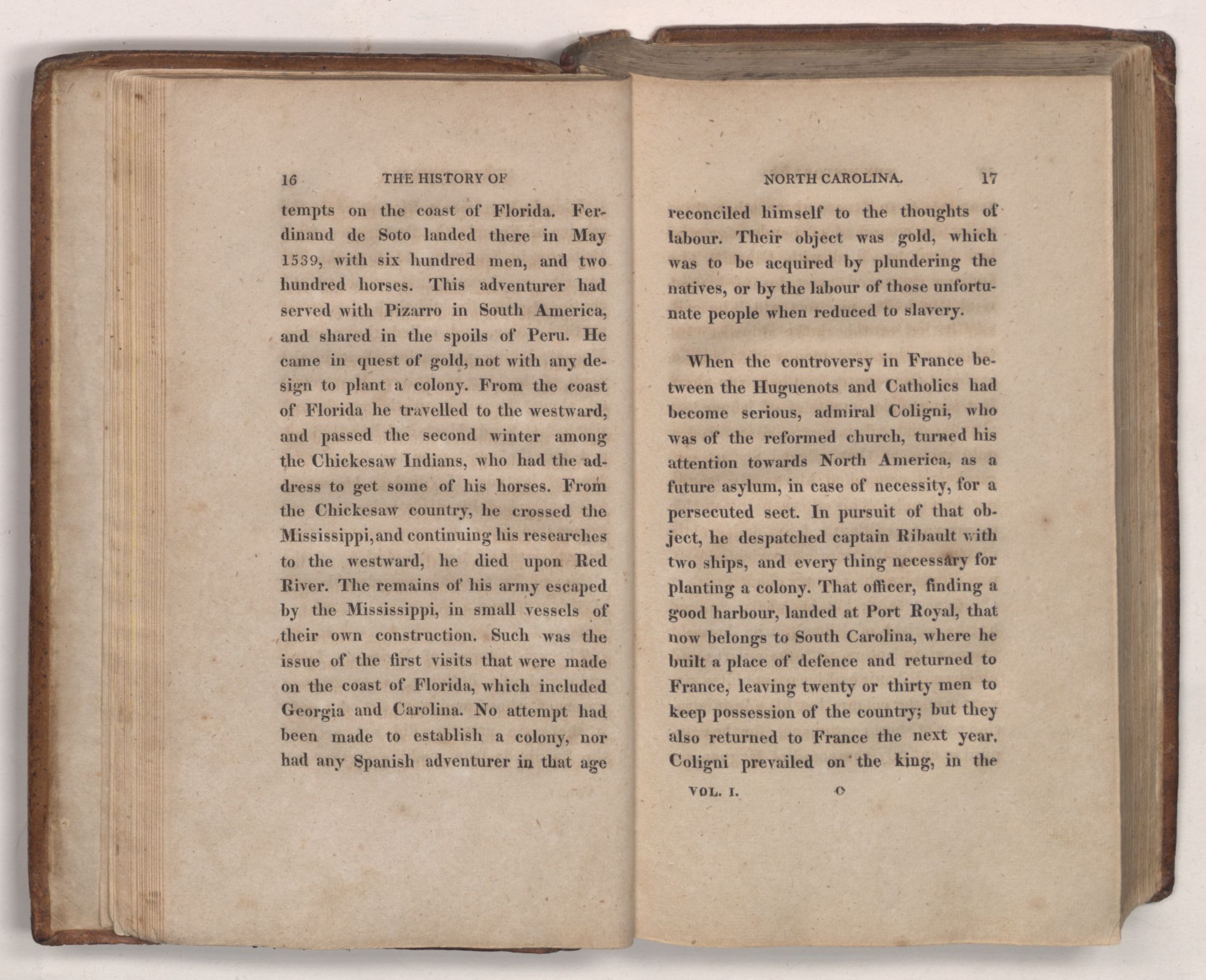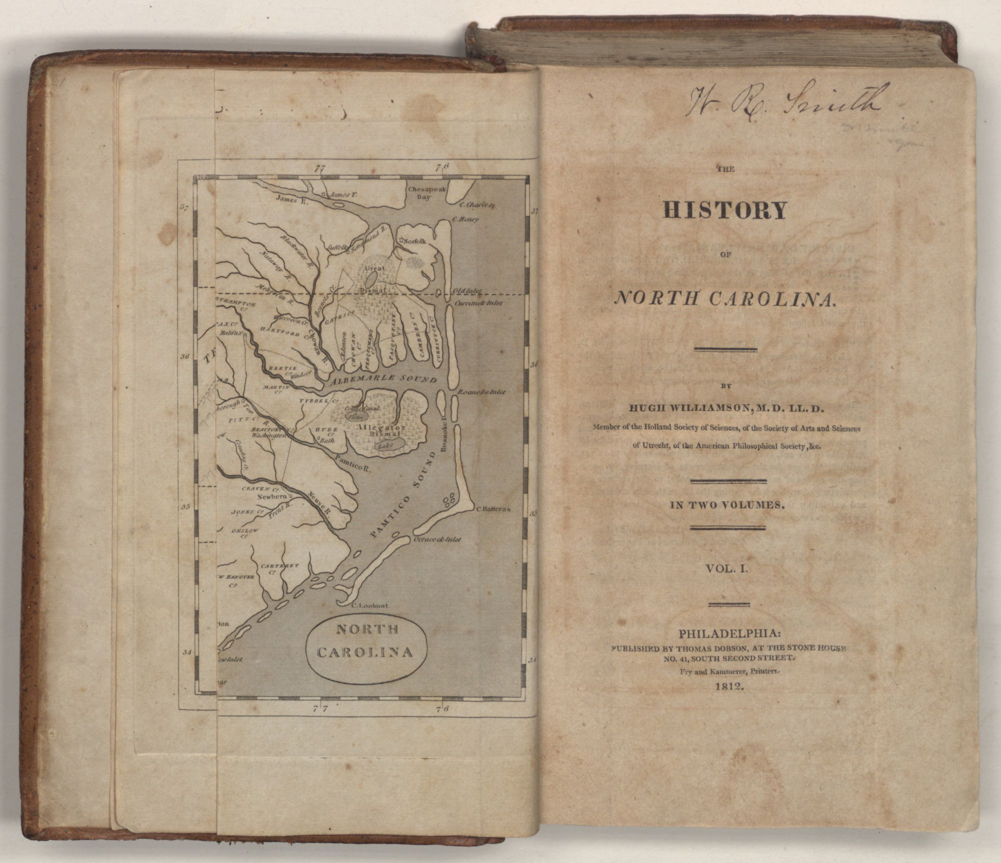 “The History of North Carolina. By Hugh Williamson, M. D. LL. D. Member of the Holland Society of Sciences, of the Society of Arts and Sciences of Utrecht, of the American Philosophical Society, &c. In two volumes. Vol. I.”