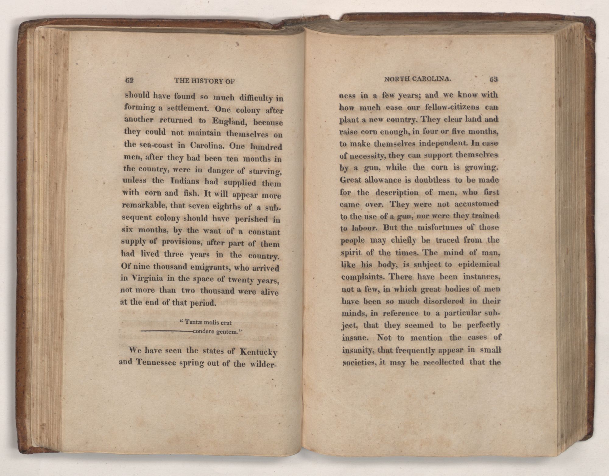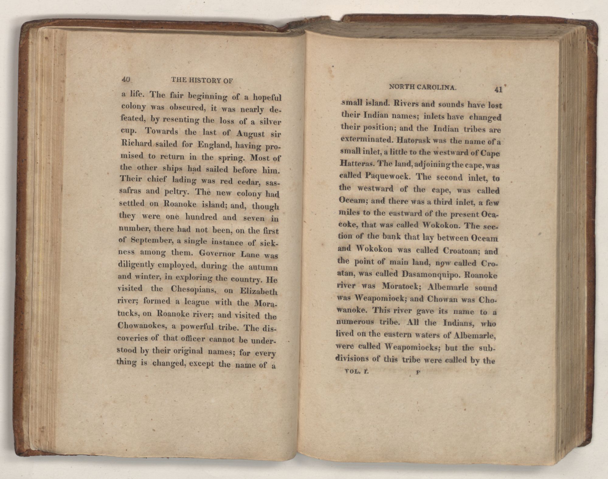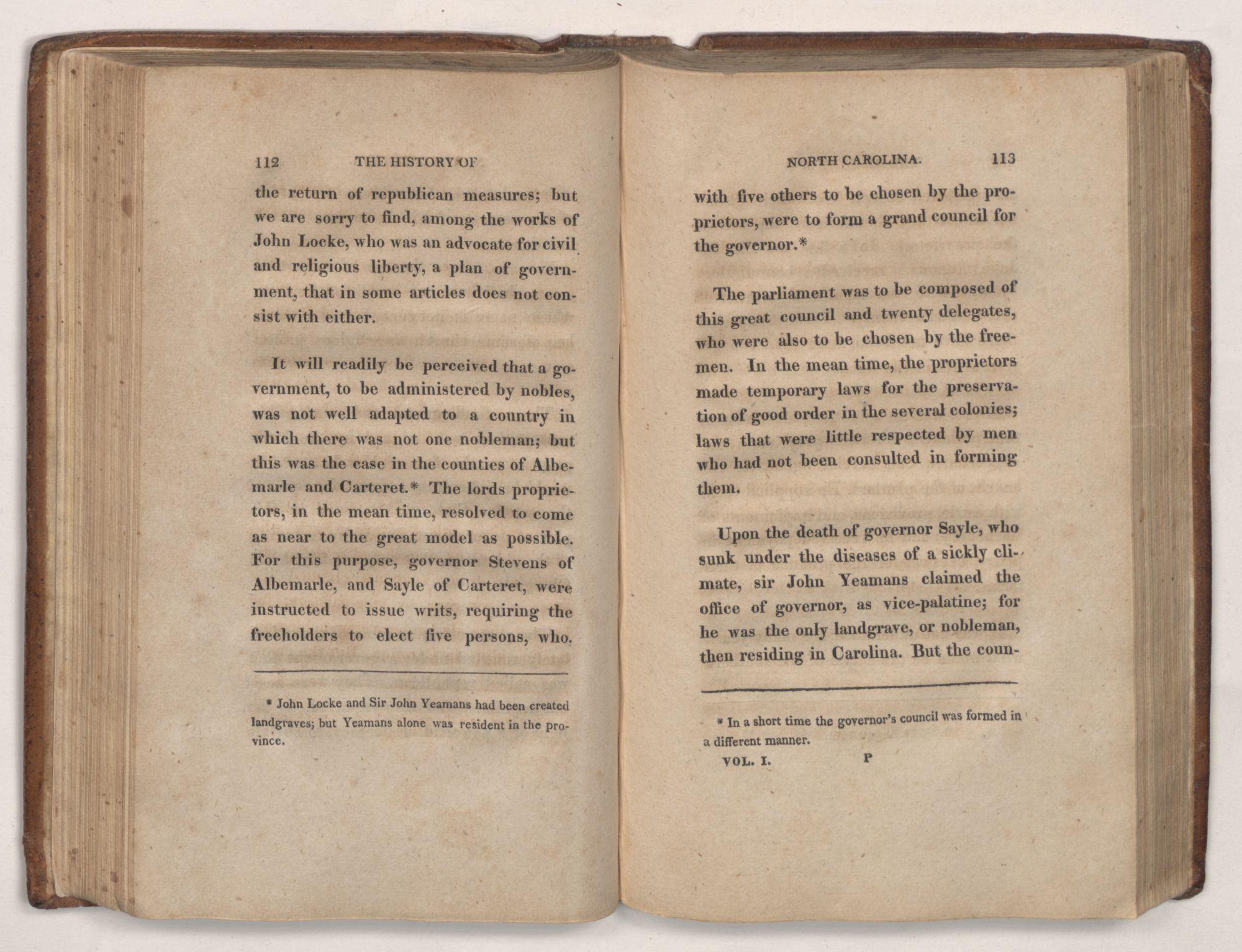 “The History of North Carolina. By Hugh Williamson, M. D. LL. D. Member of the Holland Society of Sciences, of the Society of Arts and Sciences of Utrecht, of the American Philosophical Society, &c. In two volumes. Vol. I.”