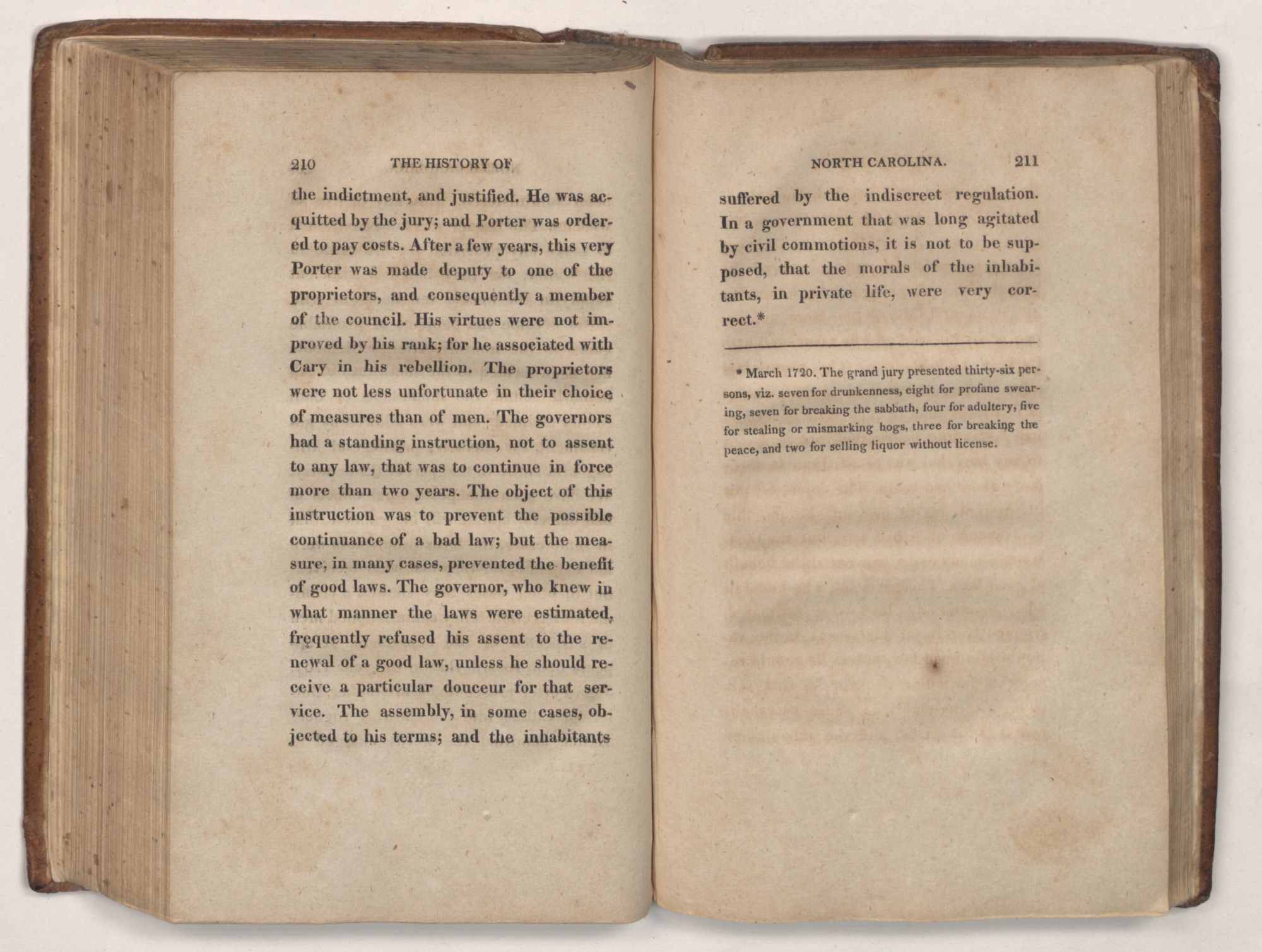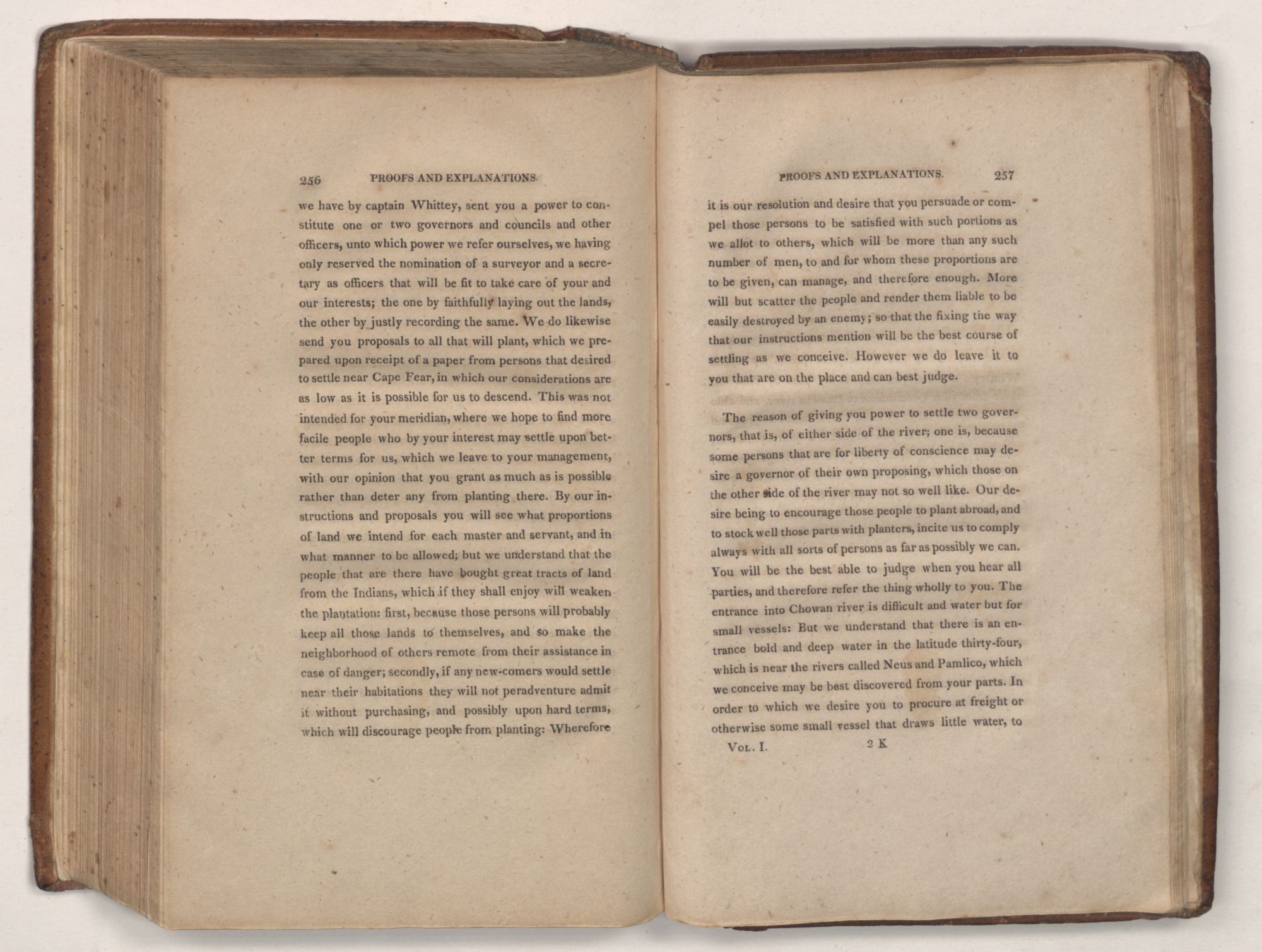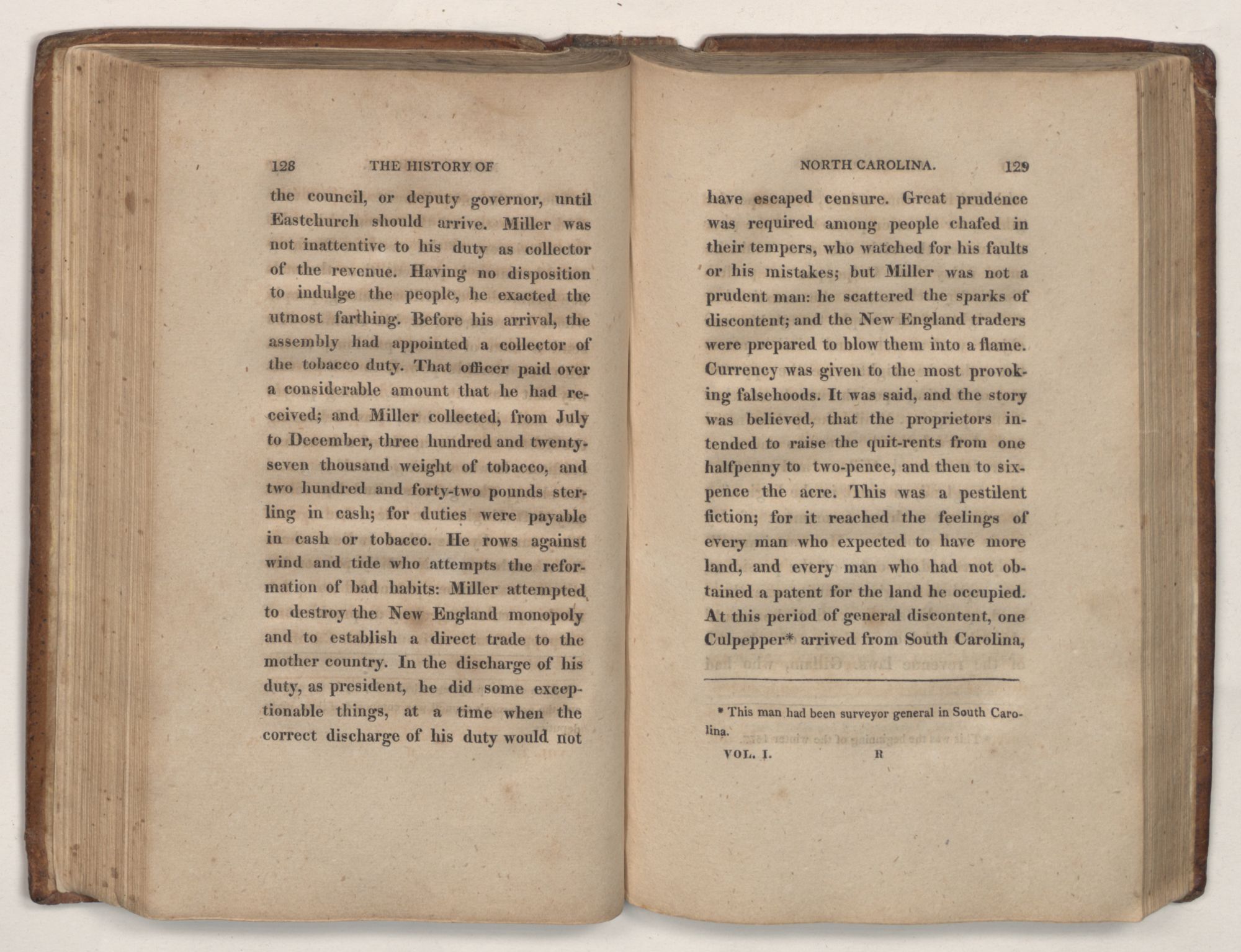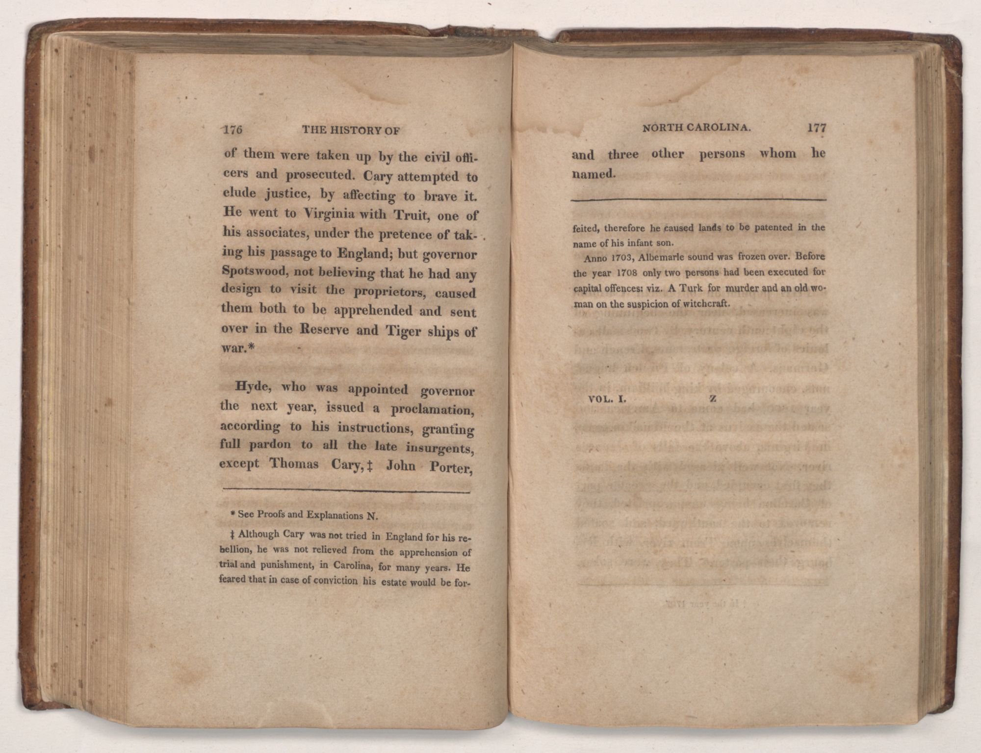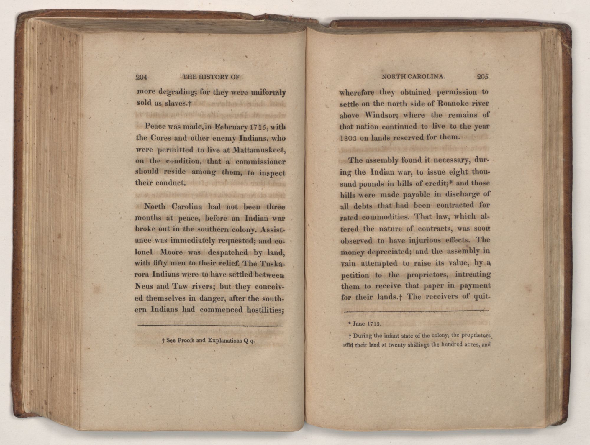 PREFACE.IN collecting materials for the history of North Carolina, little information could be obtained from any accounts that have been published, of the British colonies, or either of them. Hackluyt, Purchass, and other ancient writers, have been sufficiently minute in describing the first discoveries, and the attempts that were made to form settlements on different parts of the continent: but no writer has treated, with any attention, of the progress of colonization or the civil history of North Carolina, from the time in which the first permanent settlements were formed in that country. Wynn, Oldmixon, and others, who wrote of Carolina, have done little more than name the northern province: their attention was chiefly engaged