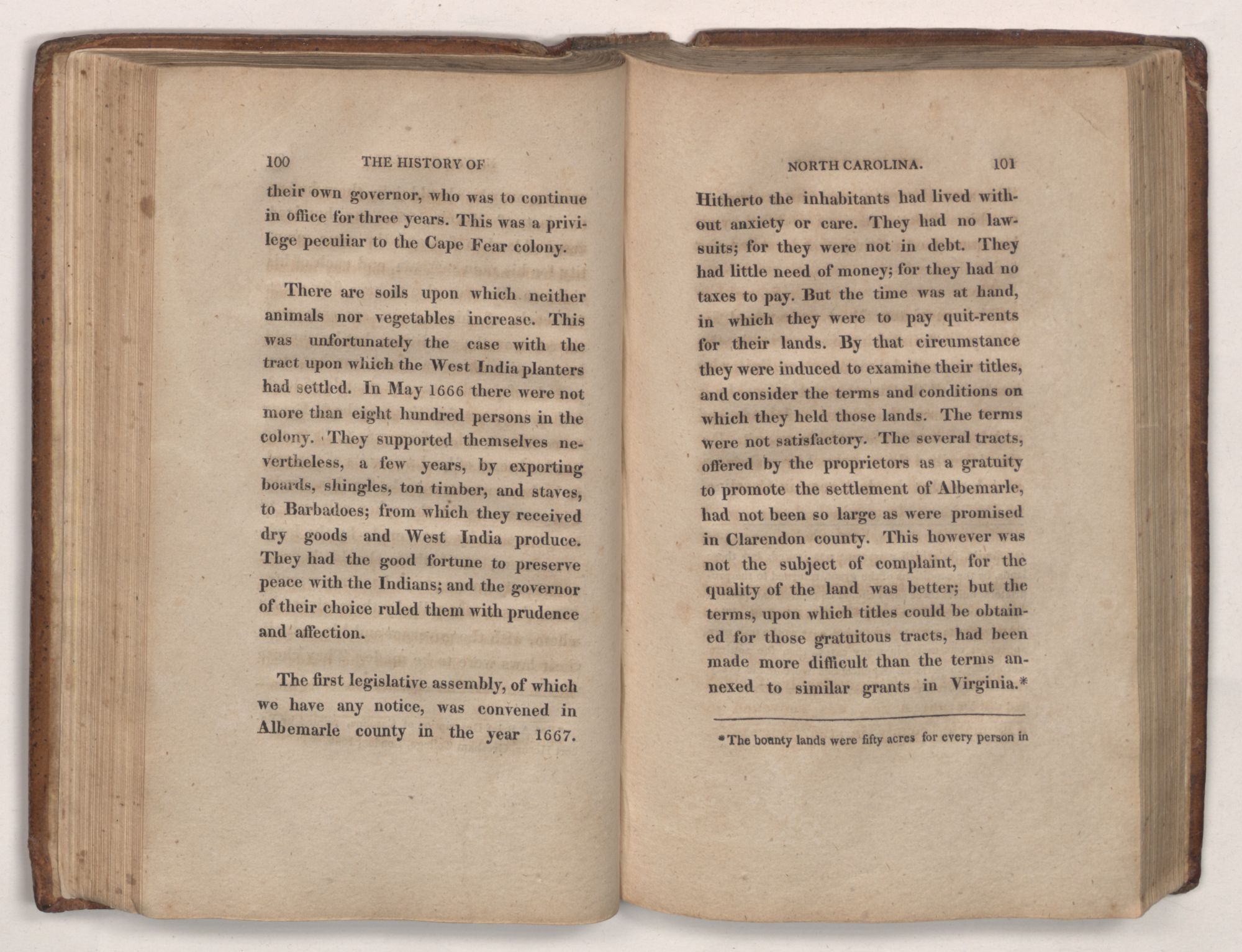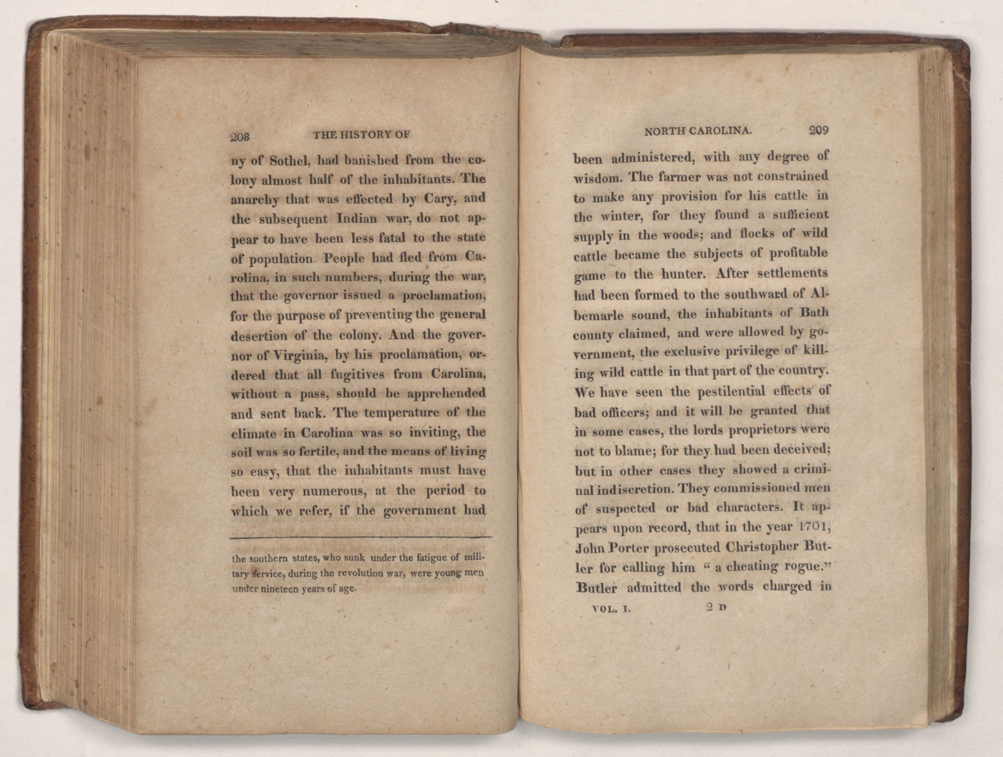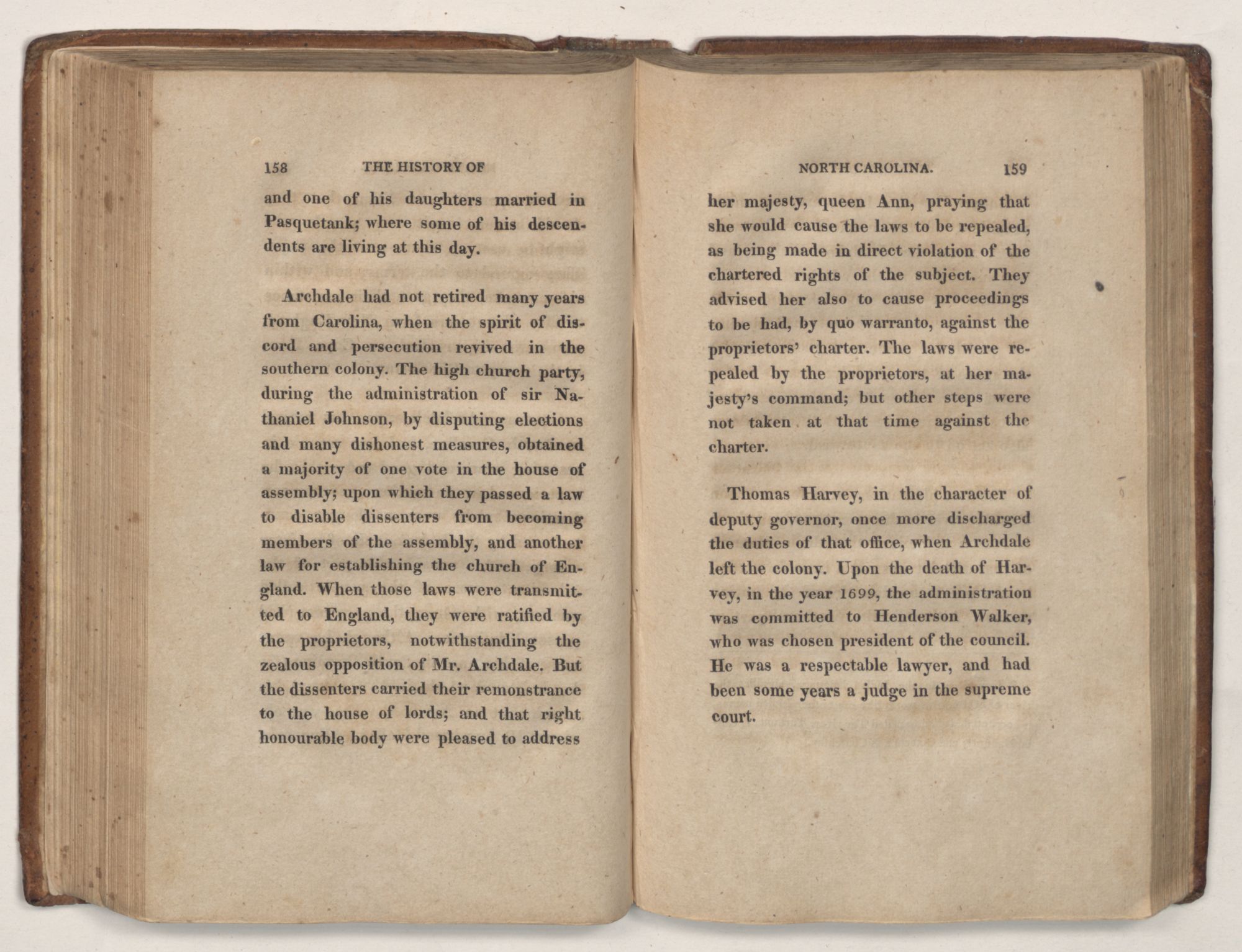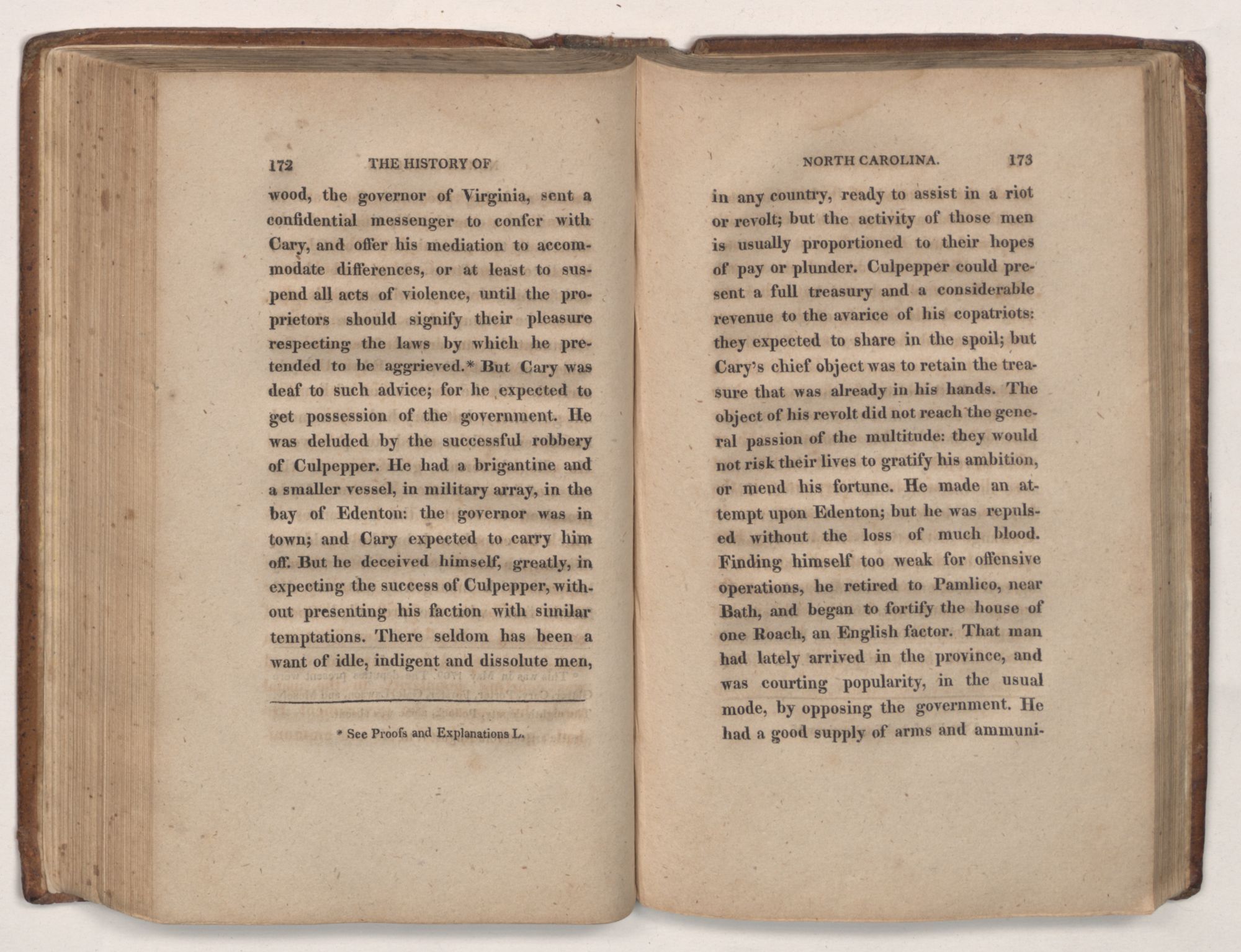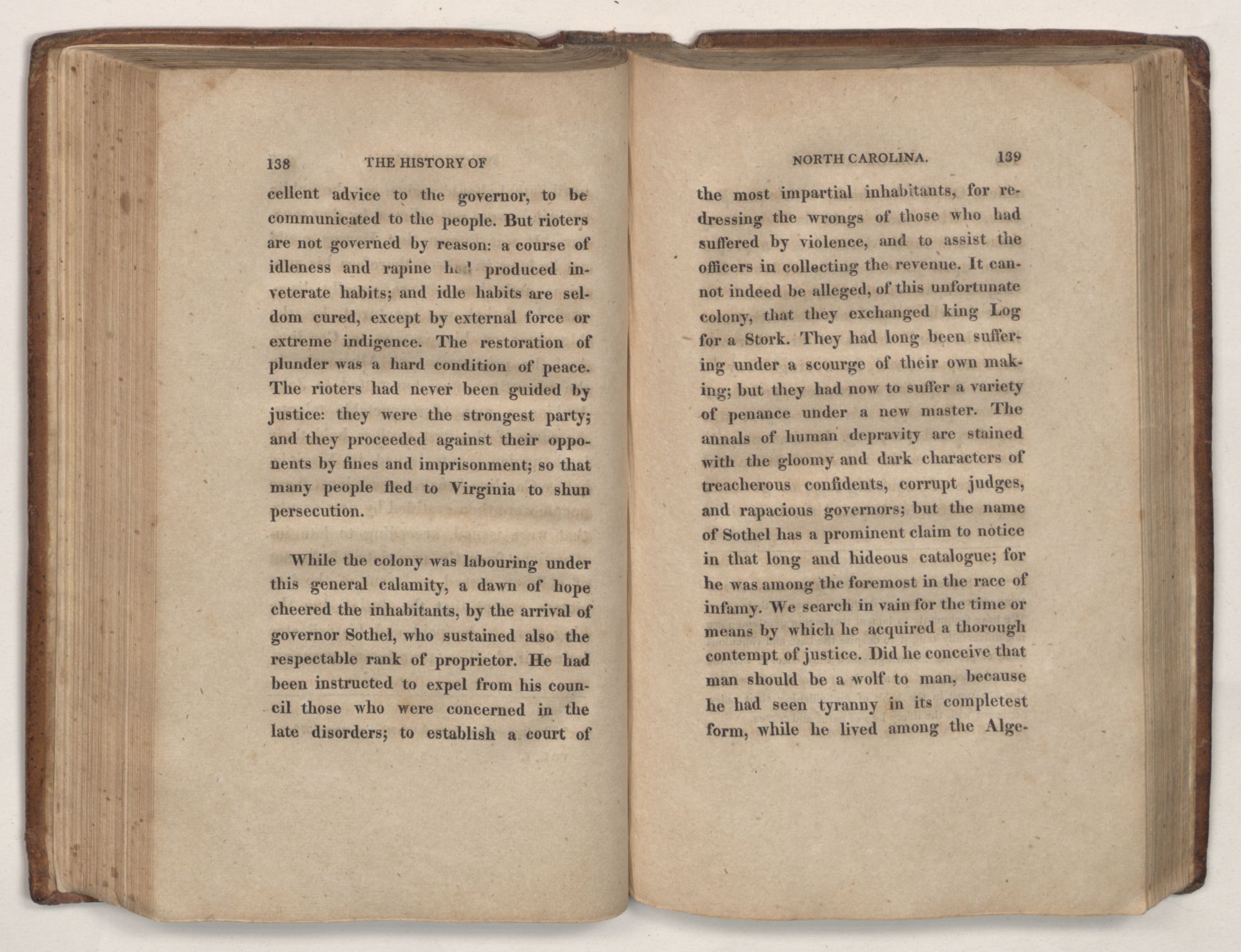 PREFACE.IN collecting materials for the history of North Carolina, little information could be obtained from any accounts that have been published, of the British colonies, or either of them. Hackluyt, Purchass, and other ancient writers, have been sufficiently minute in describing the first discoveries, and the attempts that were made to form settlements on different parts of the continent: but no writer has treated, with any attention, of the progress of colonization or the civil history of North Carolina, from the time in which the first permanent settlements were formed in that country. Wynn, Oldmixon, and others, who wrote of Carolina, have done little more than name the northern province: their attention was chiefly engaged