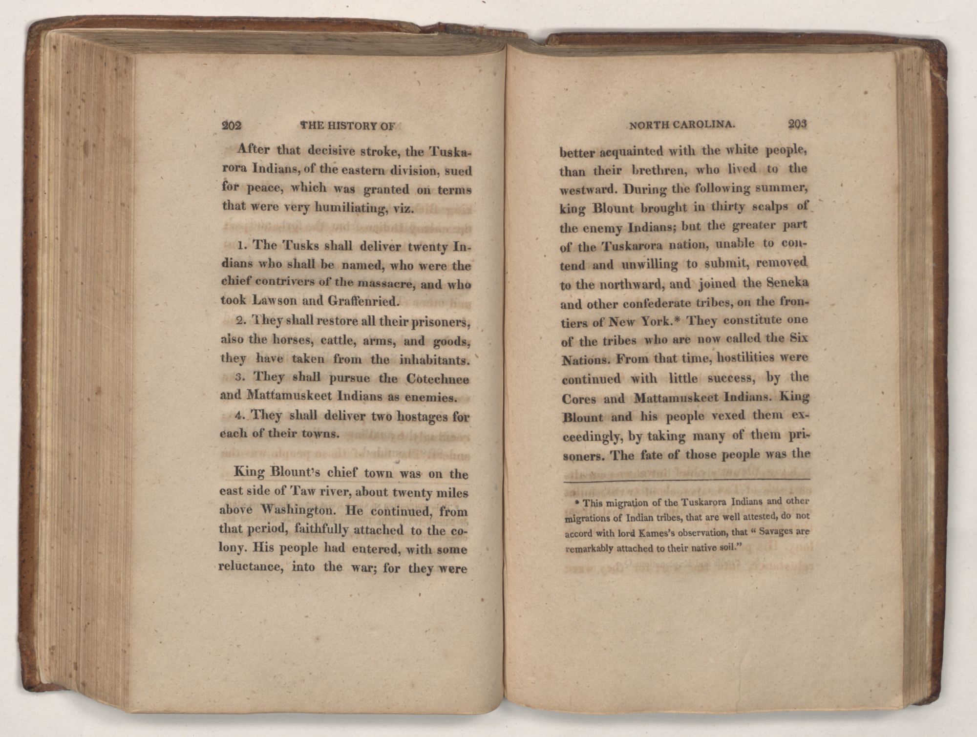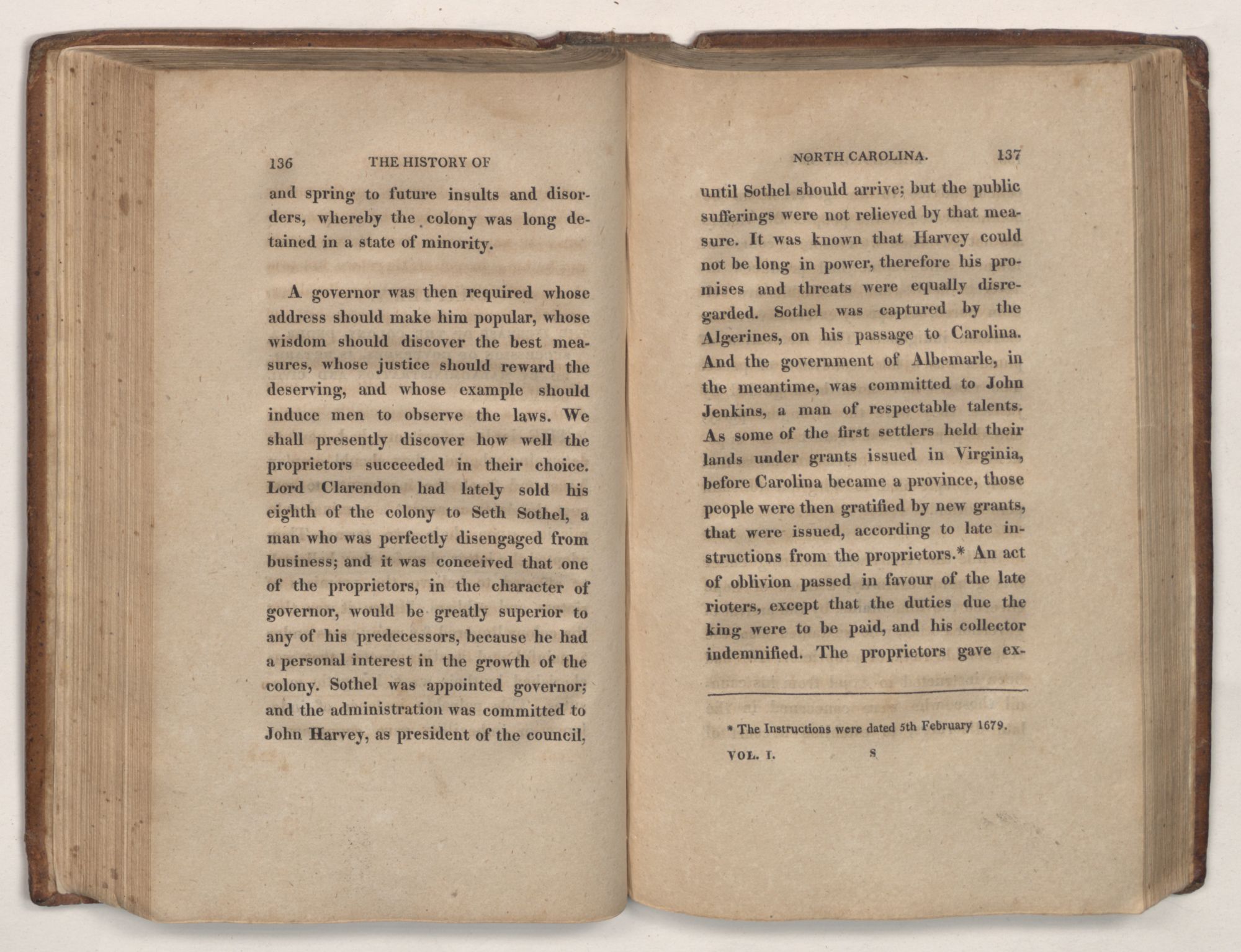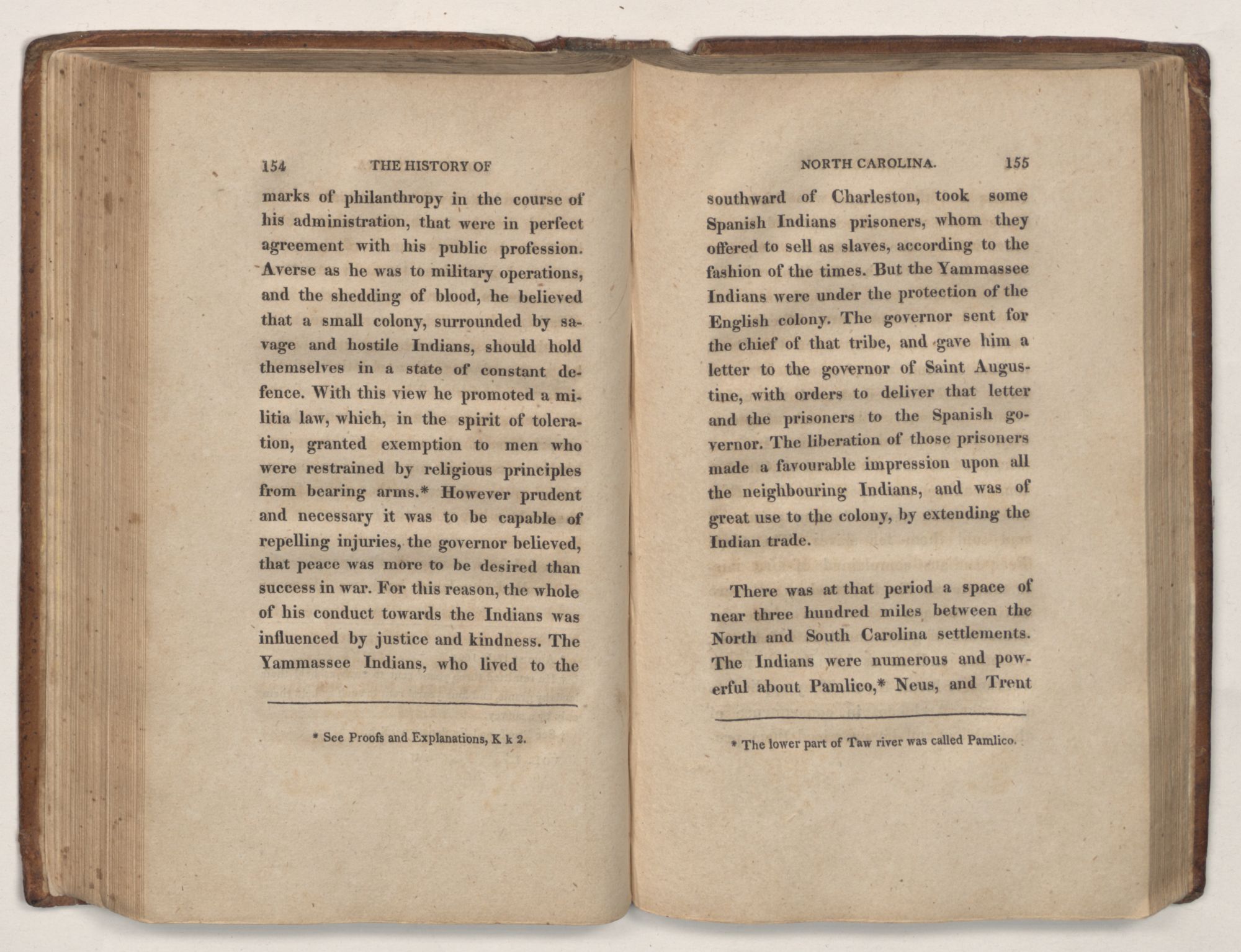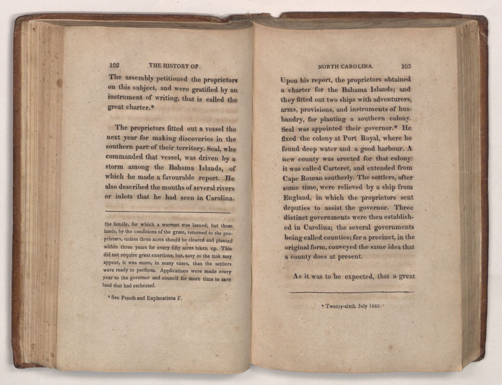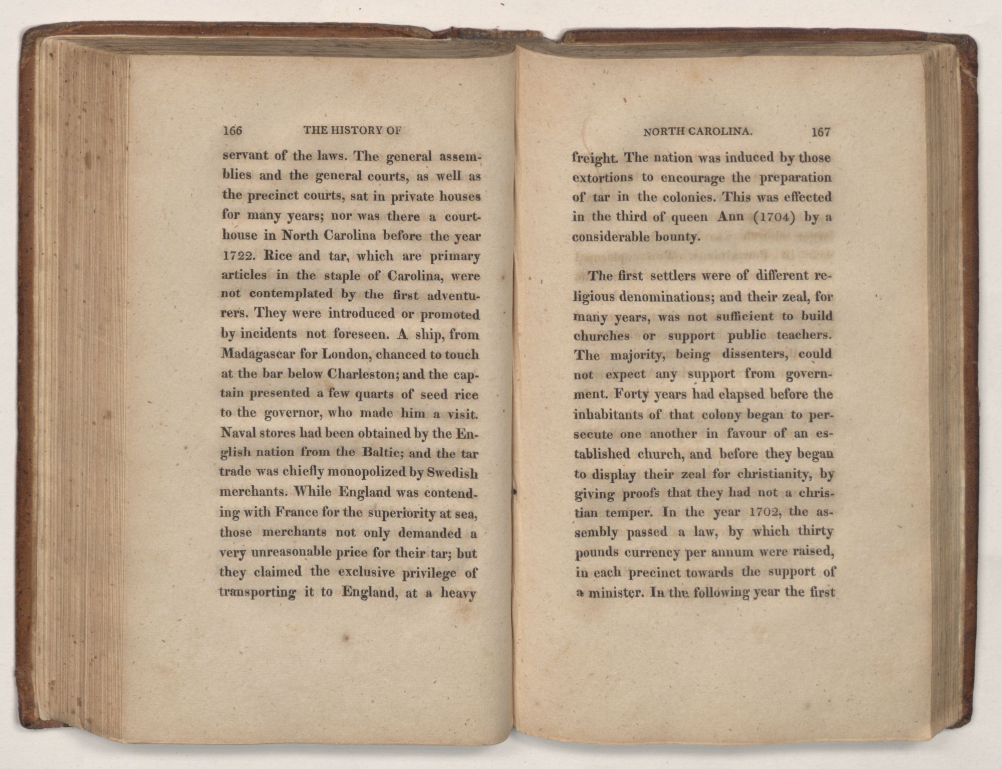 PREFACE.IN collecting materials for the history of North Carolina, little information could be obtained from any accounts that have been published, of the British colonies, or either of them. Hackluyt, Purchass, and other ancient writers, have been sufficiently minute in describing the first discoveries, and the attempts that were made to form settlements on different parts of the continent: but no writer has treated, with any attention, of the progress of colonization or the civil history of North Carolina, from the time in which the first permanent settlements were formed in that country. Wynn, Oldmixon, and others, who wrote of Carolina, have done little more than name the northern province: their attention was chiefly engaged