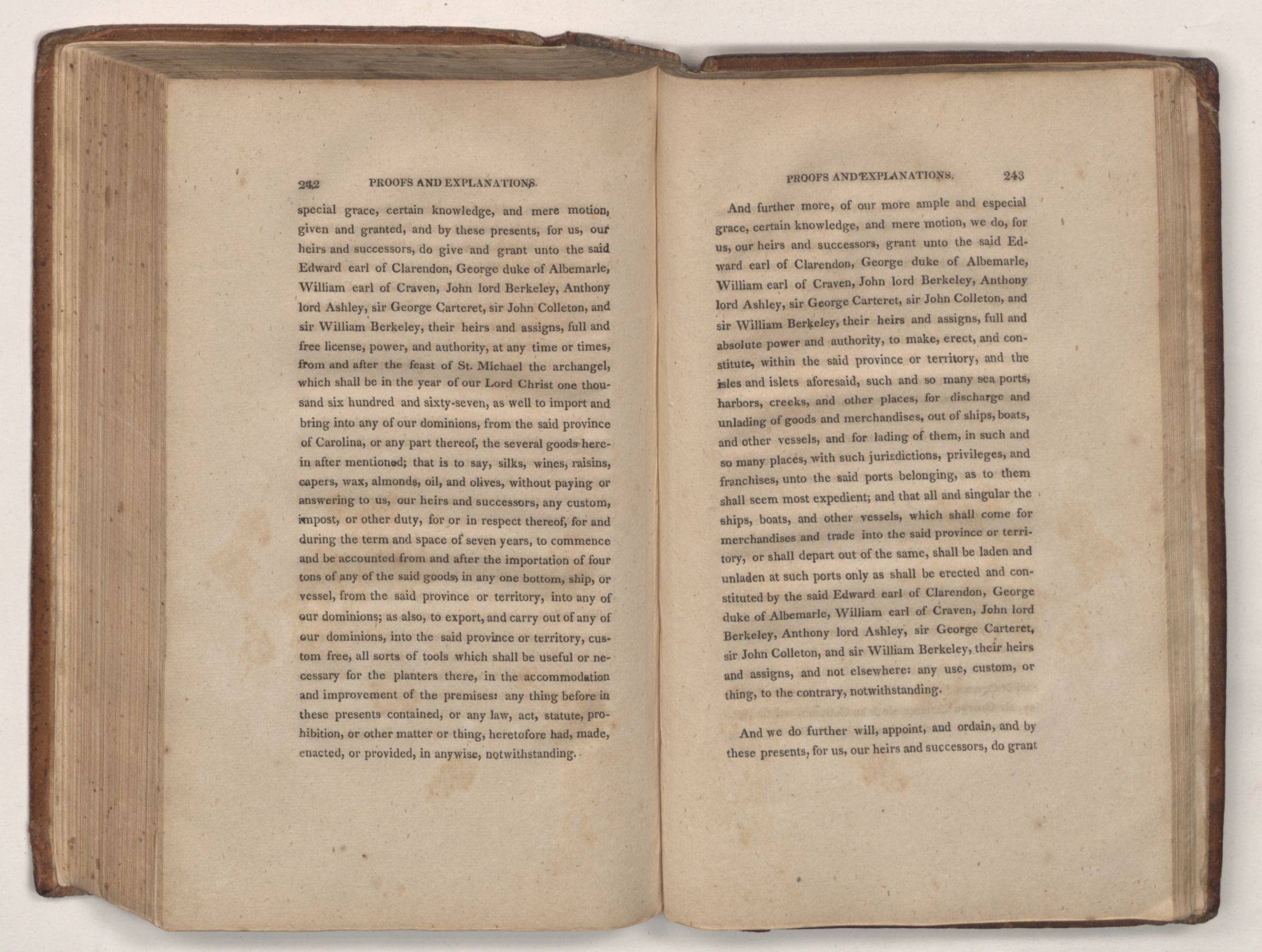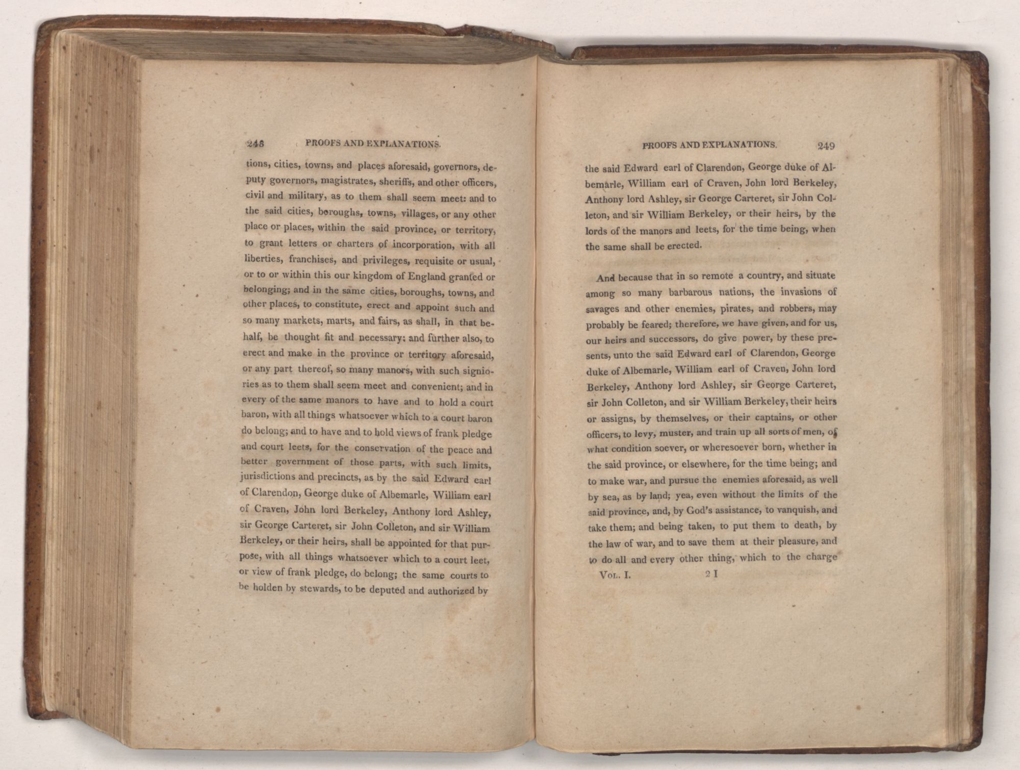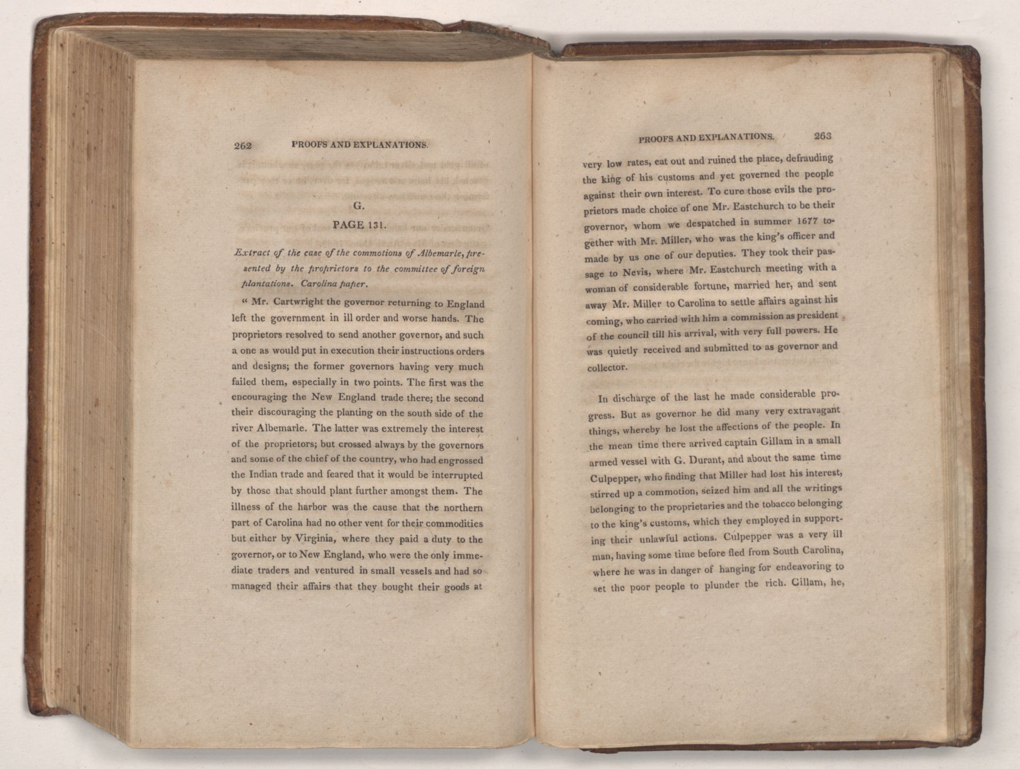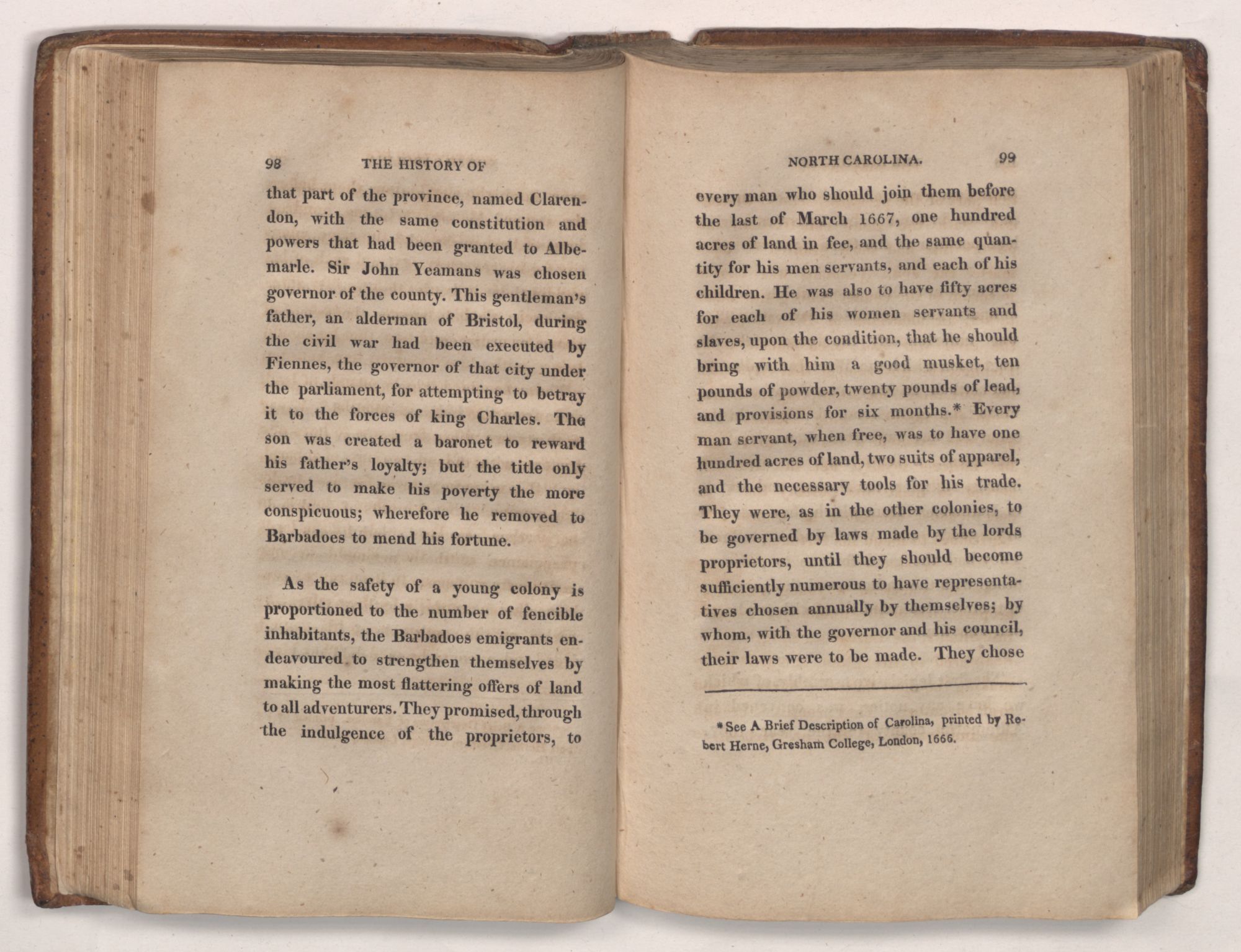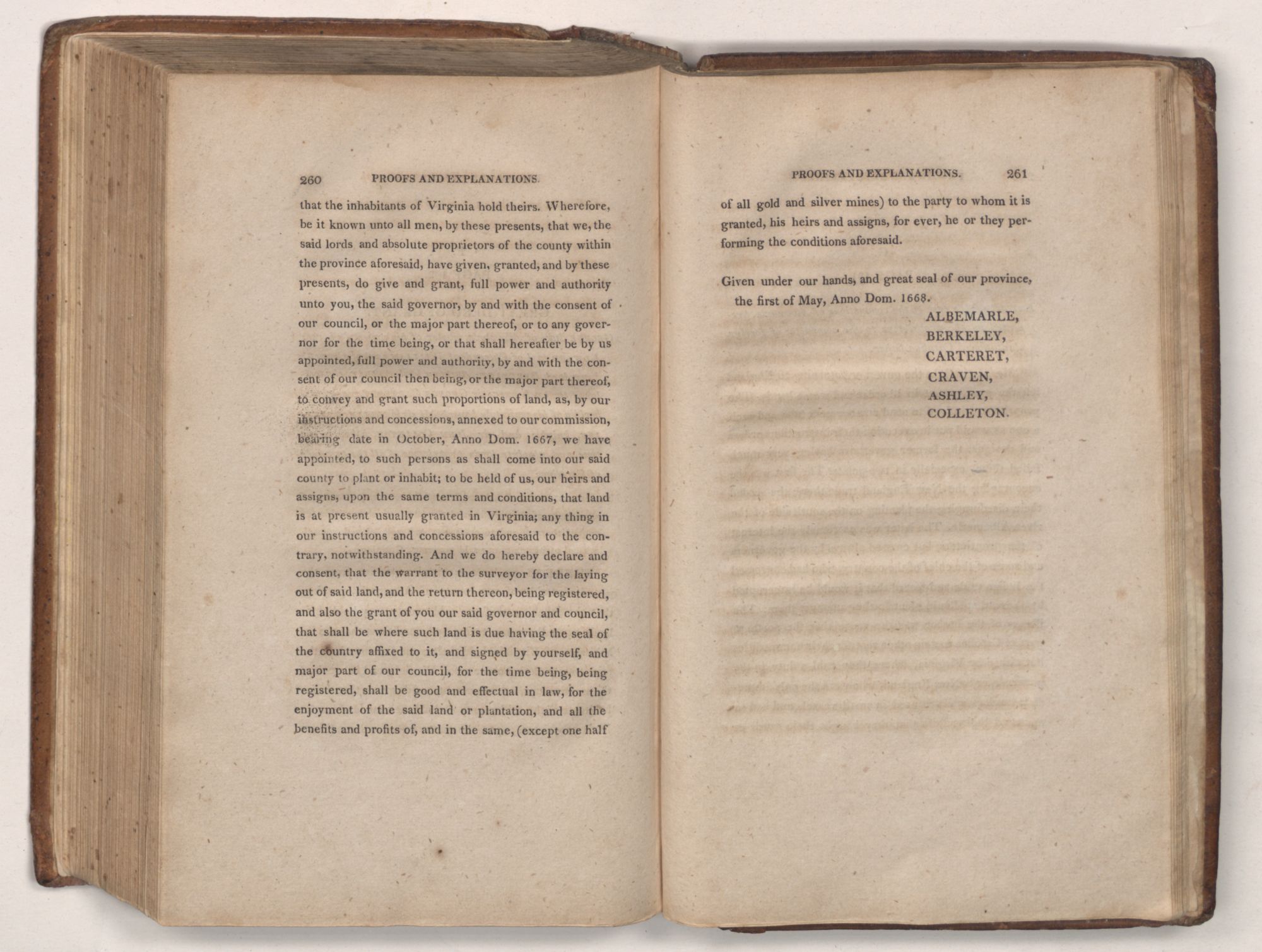 is not to be purchased in London. A gentleman who had formed a library, consisting of every publication respecting American affairs, or visits made by British subjects to other parts of the world, gave that library to “the Society for propagating the gospel in foreign parts.” The library, to save storage, was removed to Gresham college; but the librarian died and the books were dispersed. Mr. Archdale's work, and sundry other publications of that period, are only to be found at present in the British museum. Doctor Romayne, who ten years ago was in London, in the most obliging manner caused copies to be made of all the valuable information, that is contained in Mr. Archdale's work, or in two other small books, respecting North Carolina, that were published about the end of the seventeenth century. Those copies he sent me.