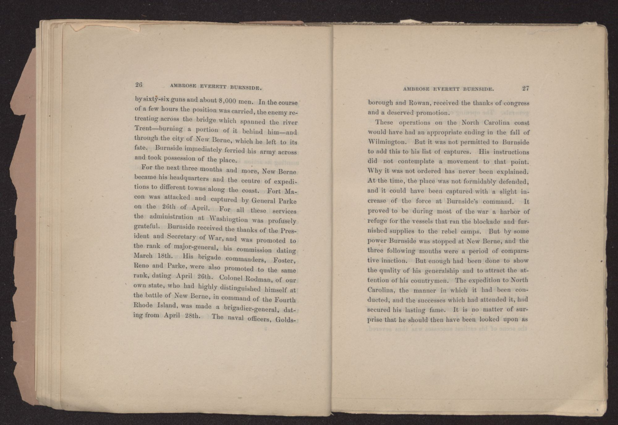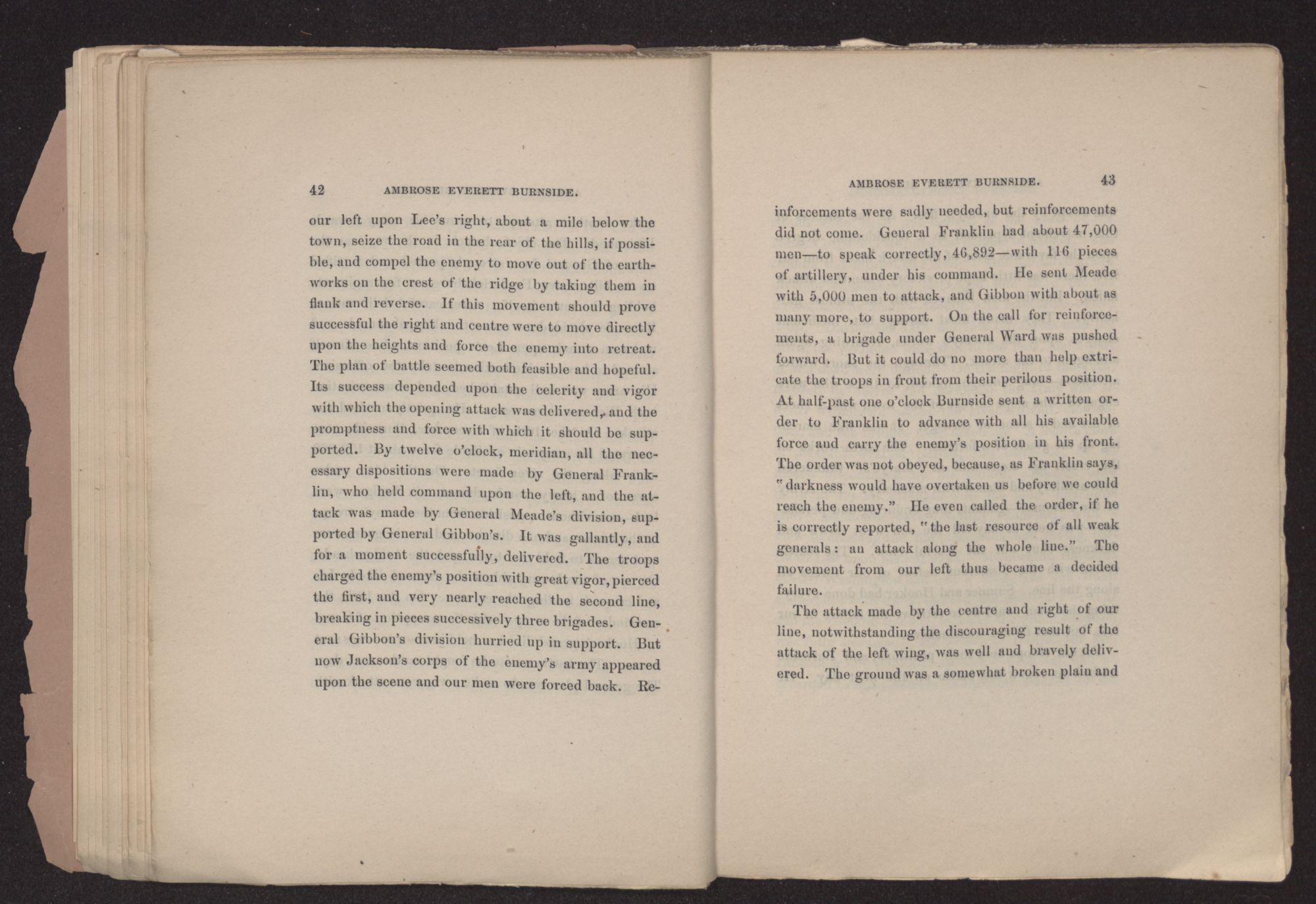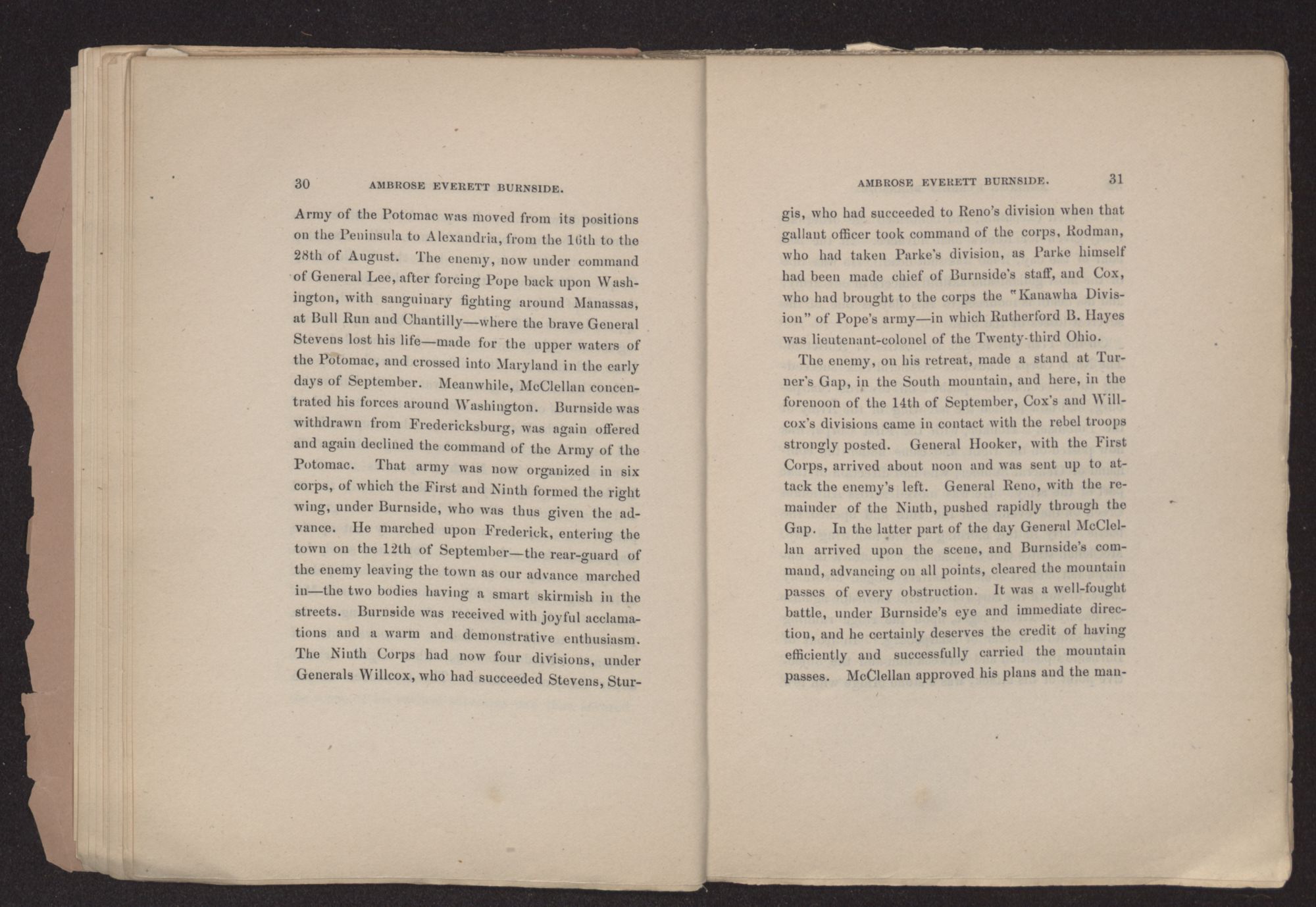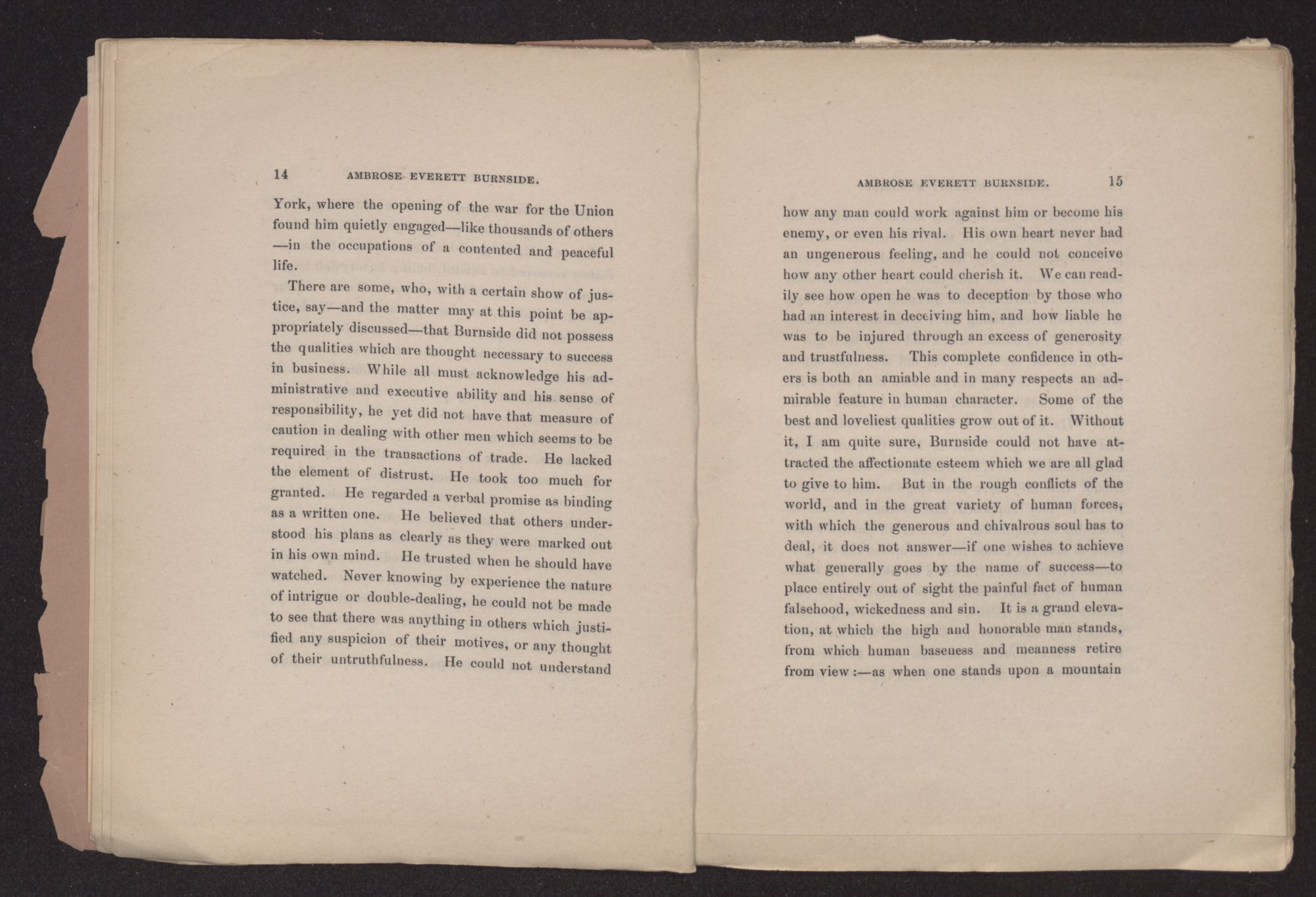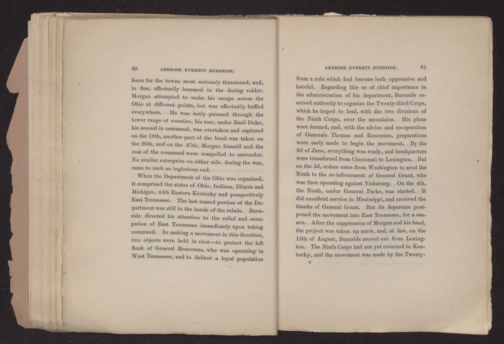Ambrose Everett Burnside was born in Liberty, Indiana, May 23, 1824, and died in Bristol, Rhode Island, September 13, 1881. The interval between these two dates was filled with the events of a busy and useful life. It was also a life which attracted an unwonted measure of honor, esteem and affection. In public, it was spent in patriotic service. In private, it was the object of a devoted and fervent love. It exhibited and illustrated some of the best qualities of manhood. It is very fitting that it should be set forth before those who shared the perils of its career, and who, in the spirit of a generous comradeship, have rejoiced in the honors which marked its course. It is also fitting