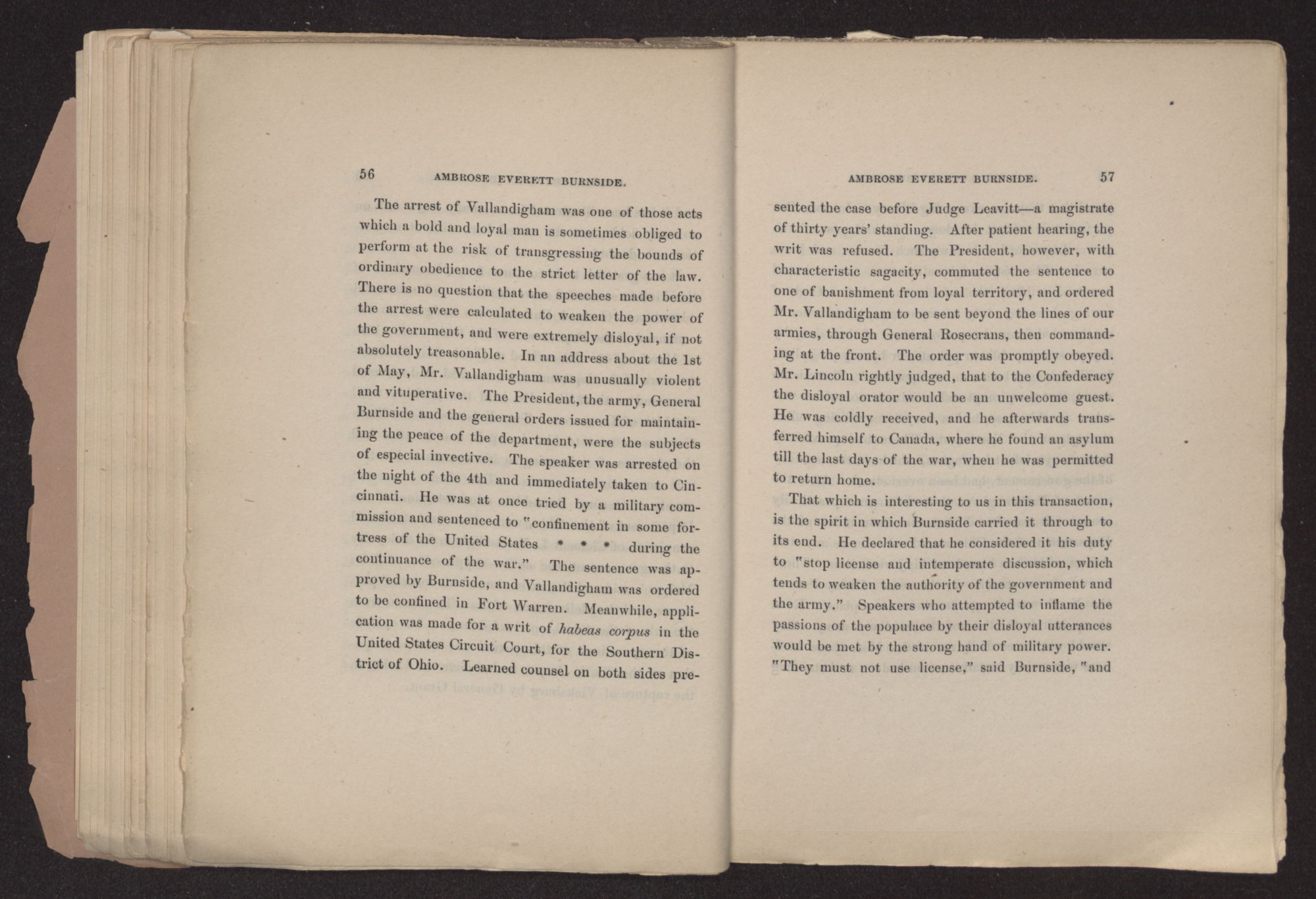 That which is interesting to us in this transaction, is the spirit in which Burnside carried it through to its end. He declared that he considered it his duty to “stop license and intemperate discussion, which tends to weaken the authority of the government and the army.” Speakers who attempted to inflame the passions of the populace by their disloyal utterances would be met by the strong hand of military power. “They must not use license,” said Burnside, “and