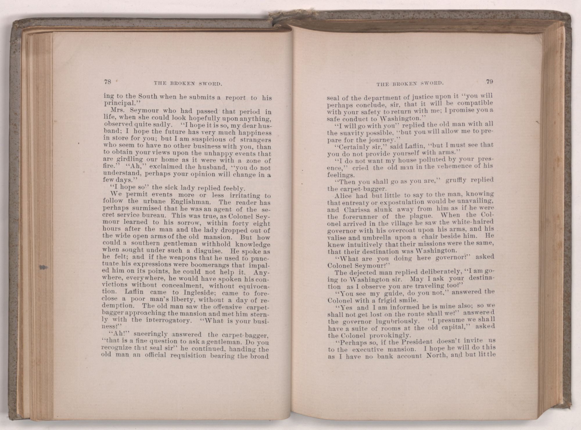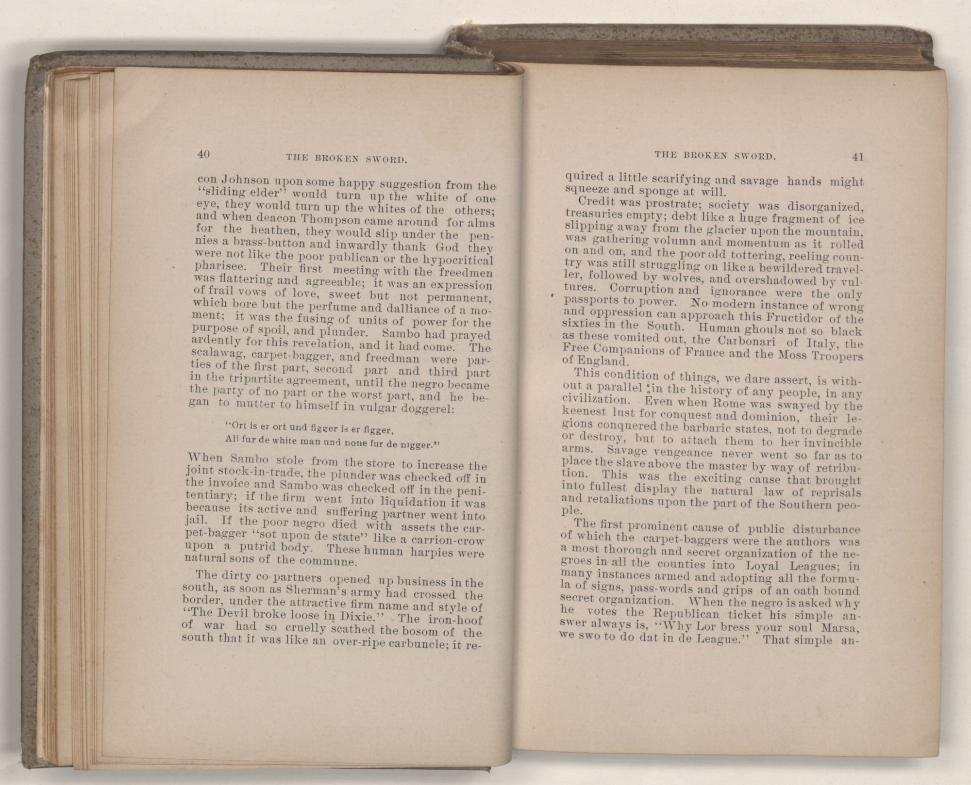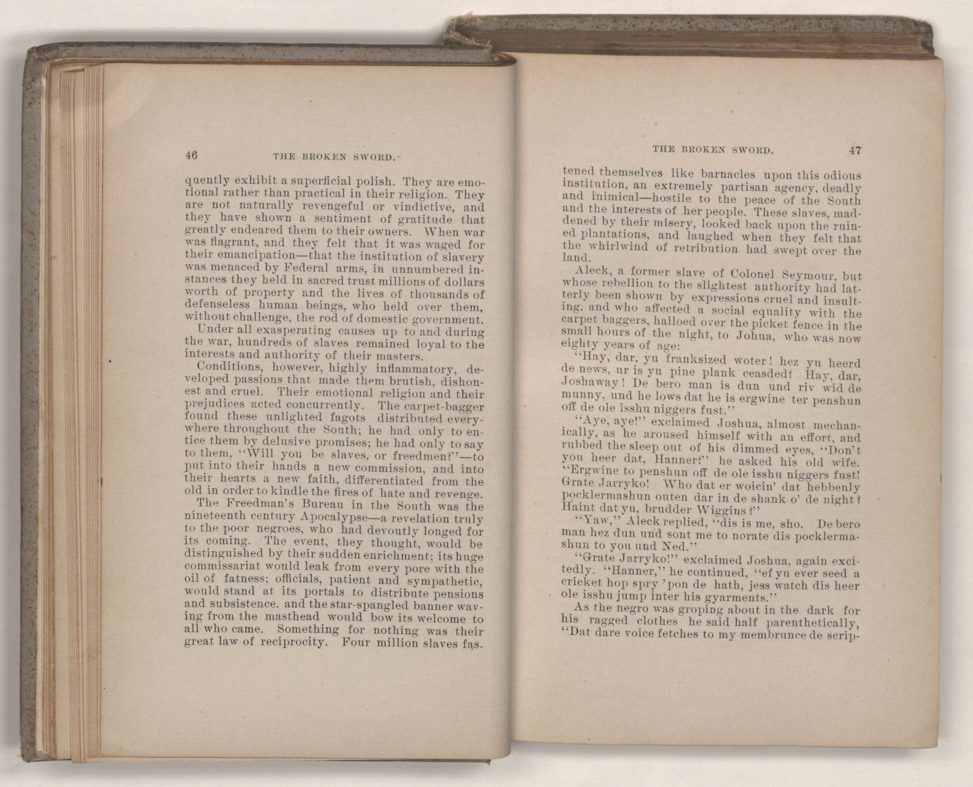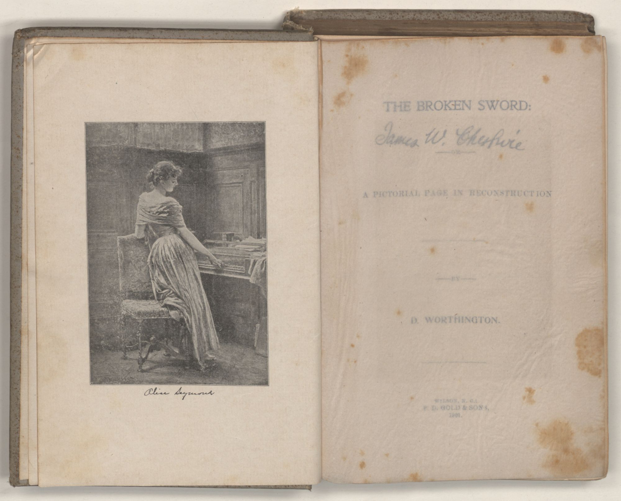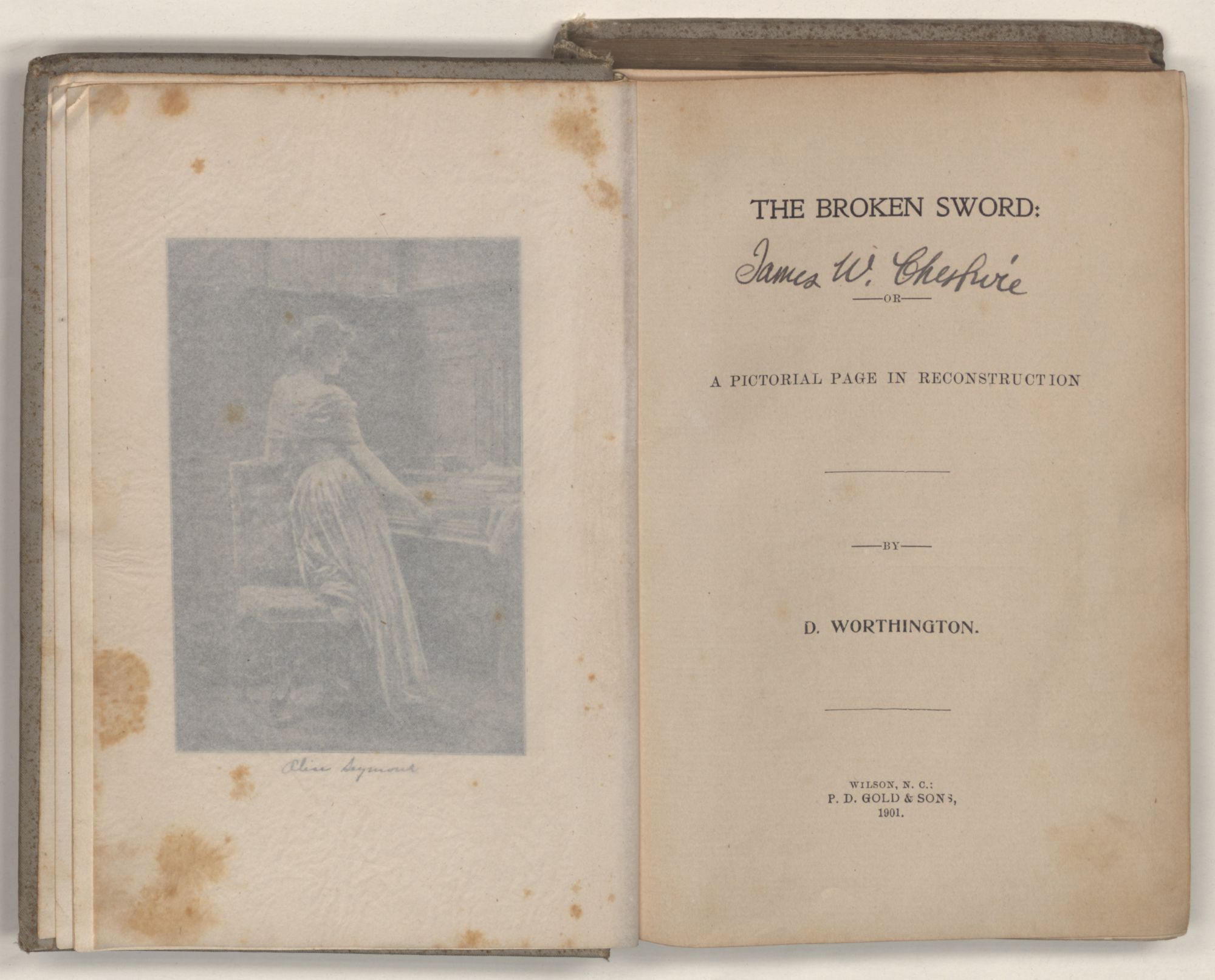 THE BROKEN SWORD:—OR—A PICTORIAL PAGE IN RECONSTRUCTION—BY—D. WORTHINGTON.WILSON, N. C.:P. D. GOLD & SONS,1901.