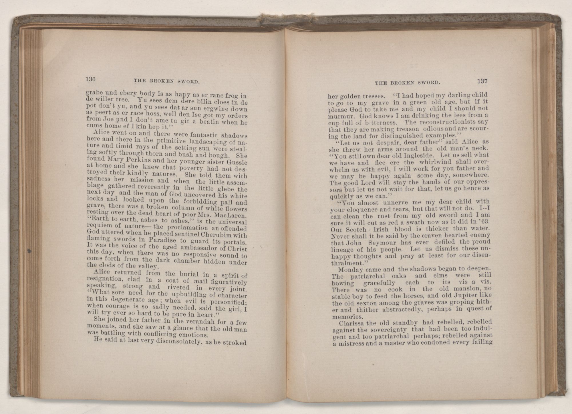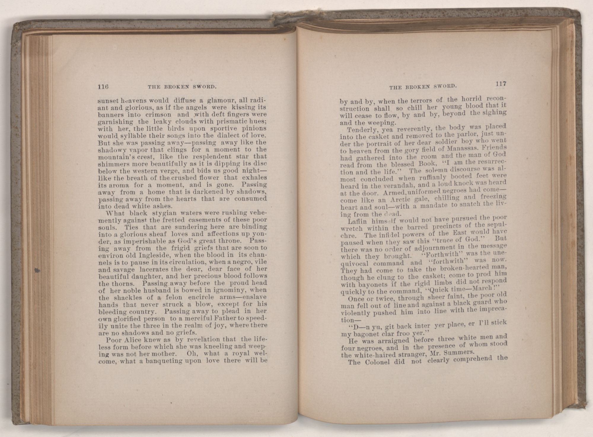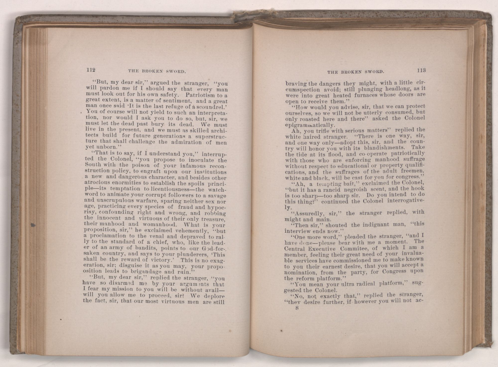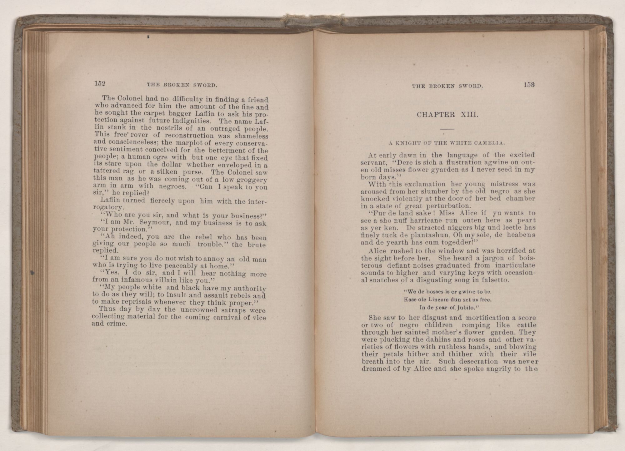 THE BROKEN SWORD:—OR—A PICTORIAL PAGE IN RECONSTRUCTION—BY—D. WORTHINGTON.WILSON, N. C.:P. D. GOLD & SONS,1901.