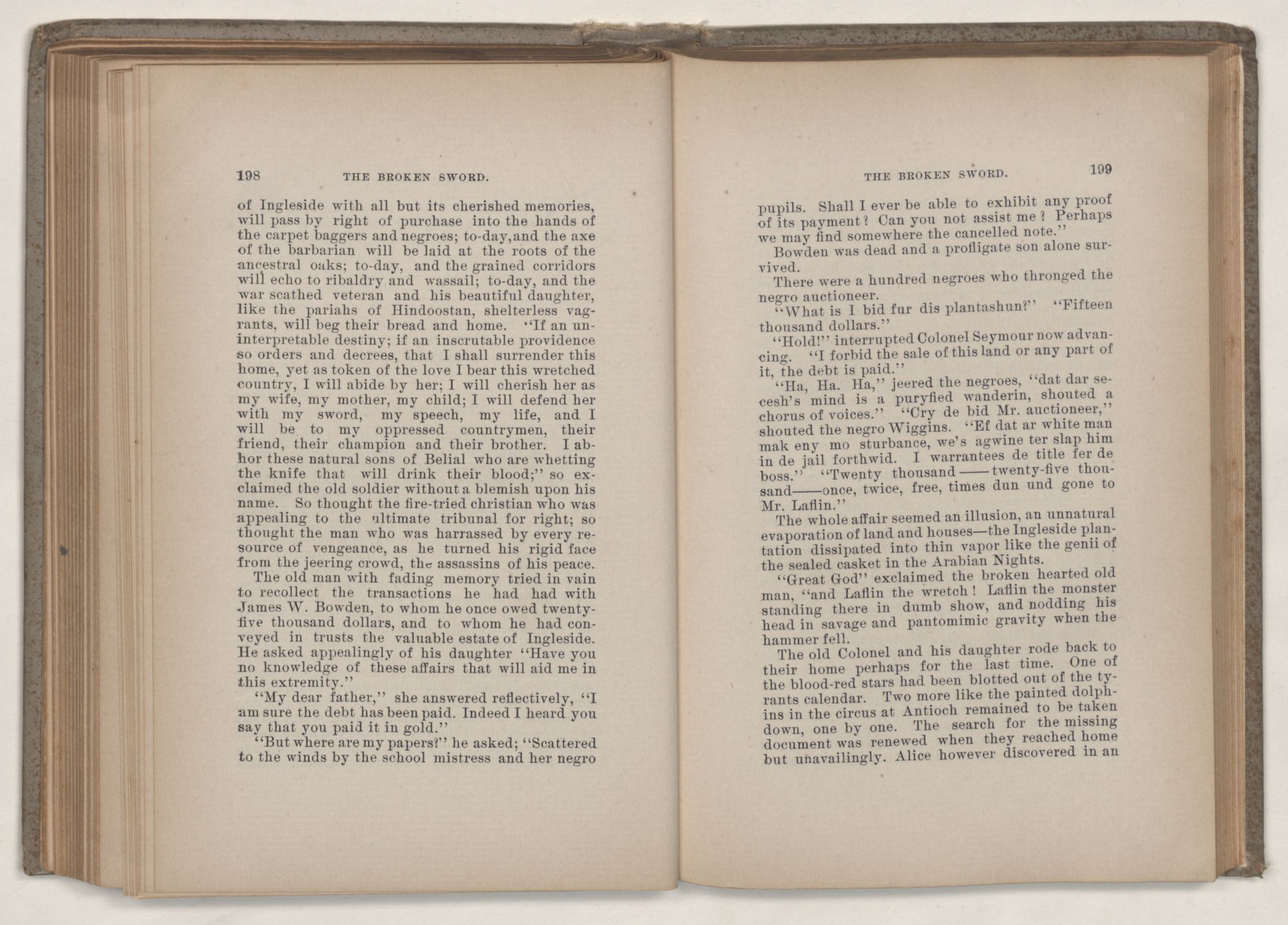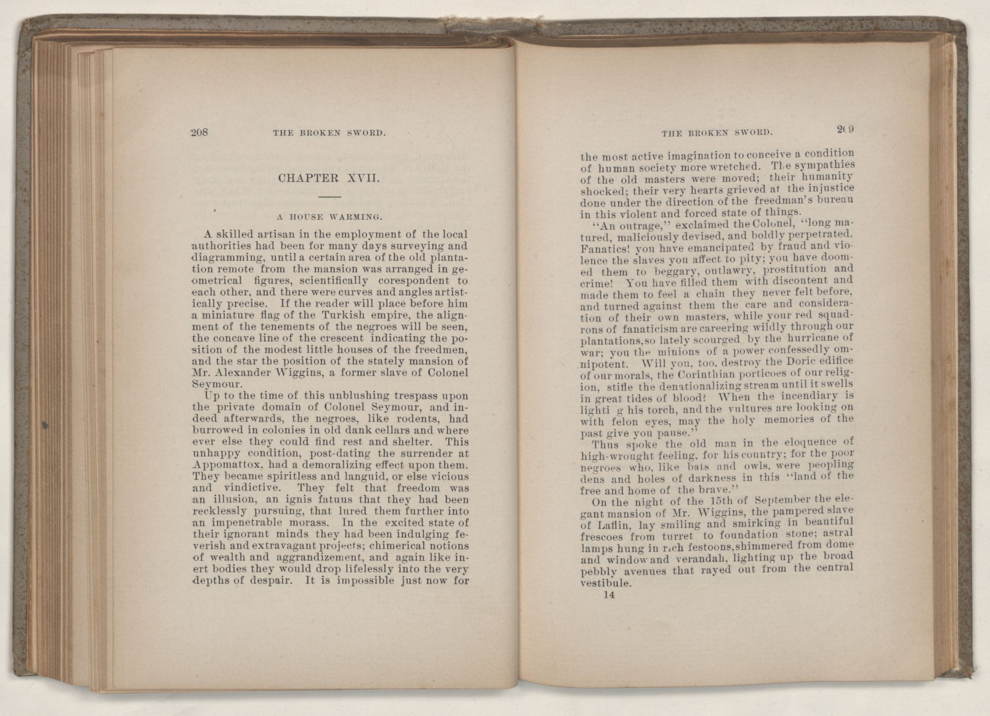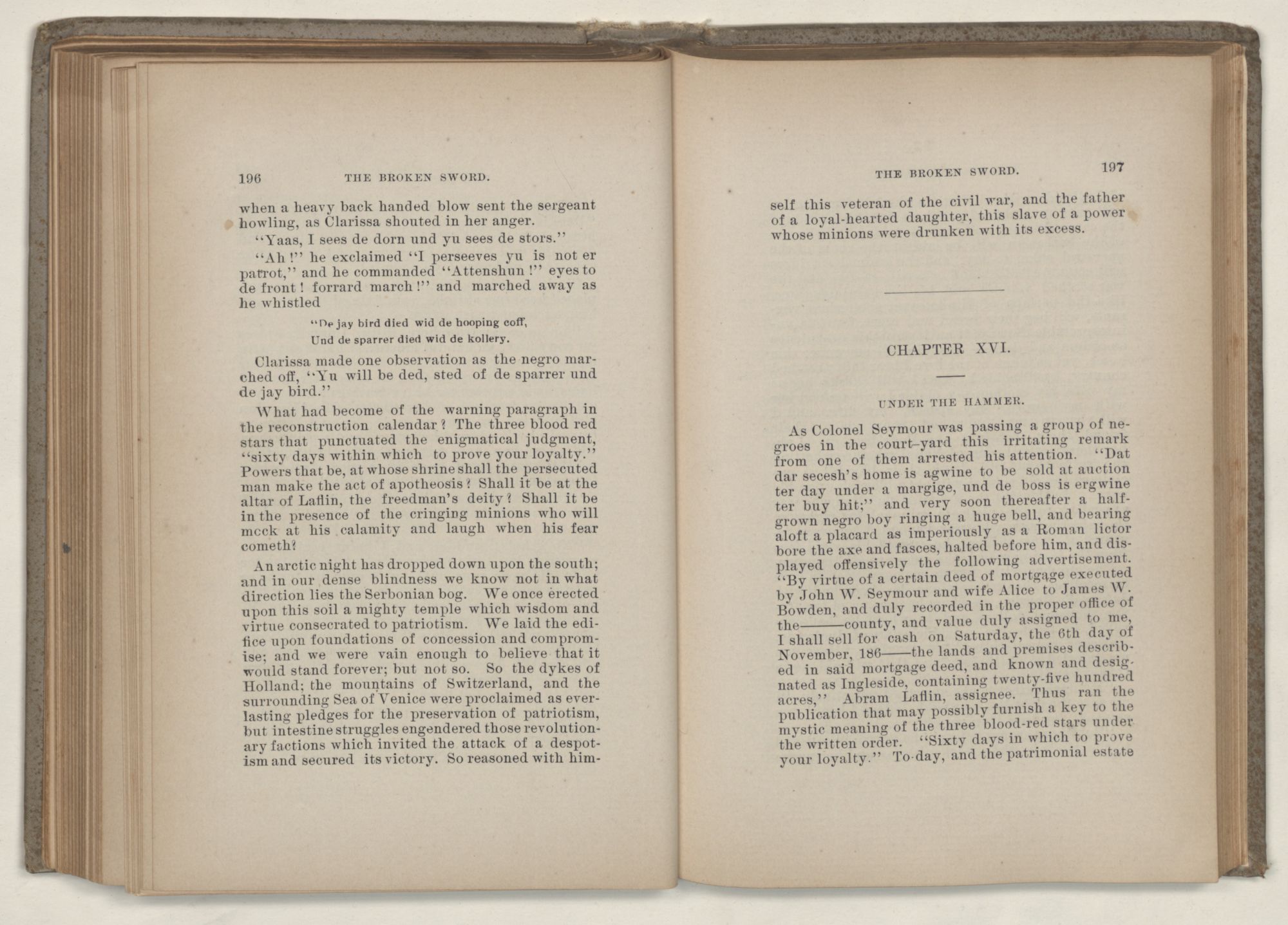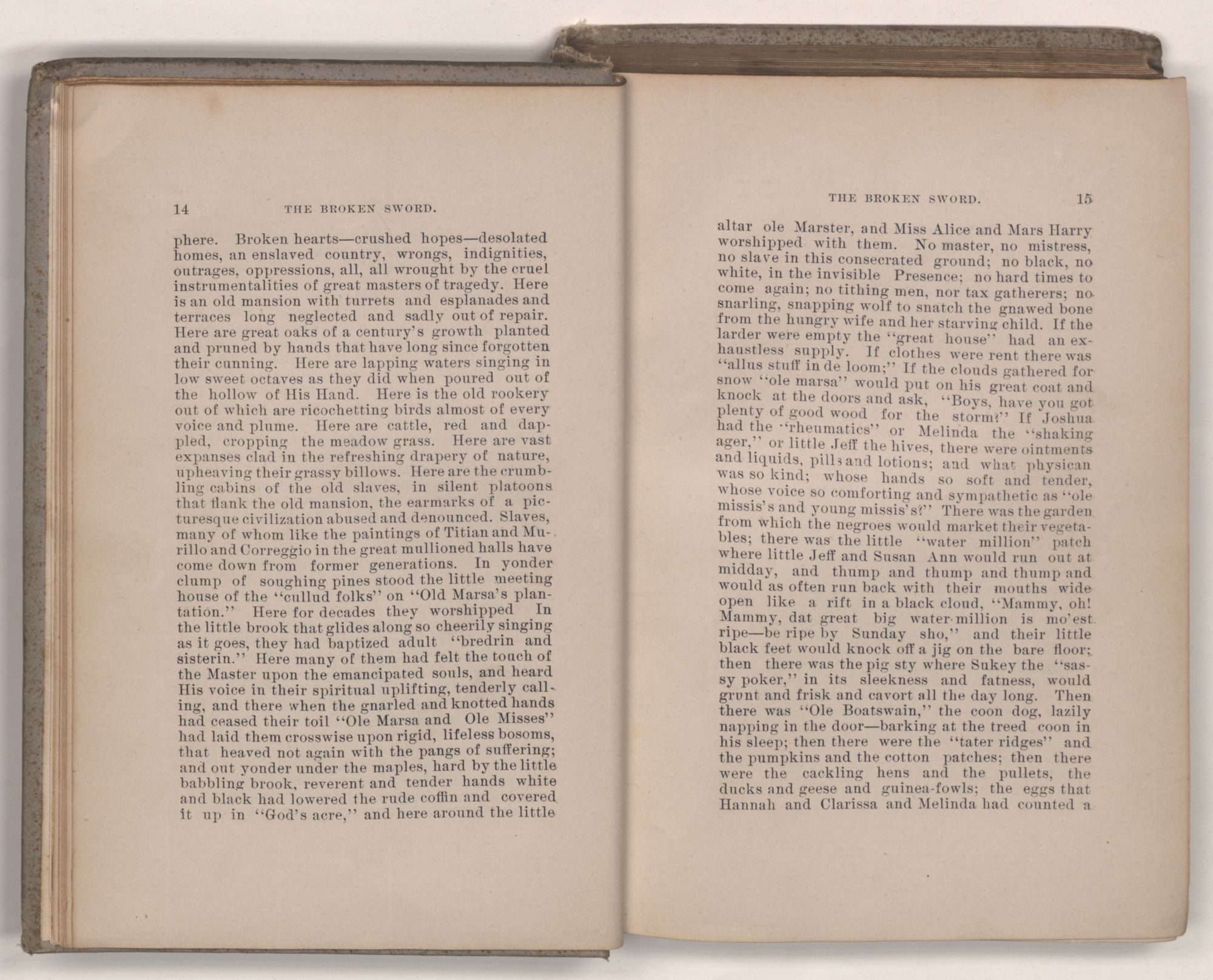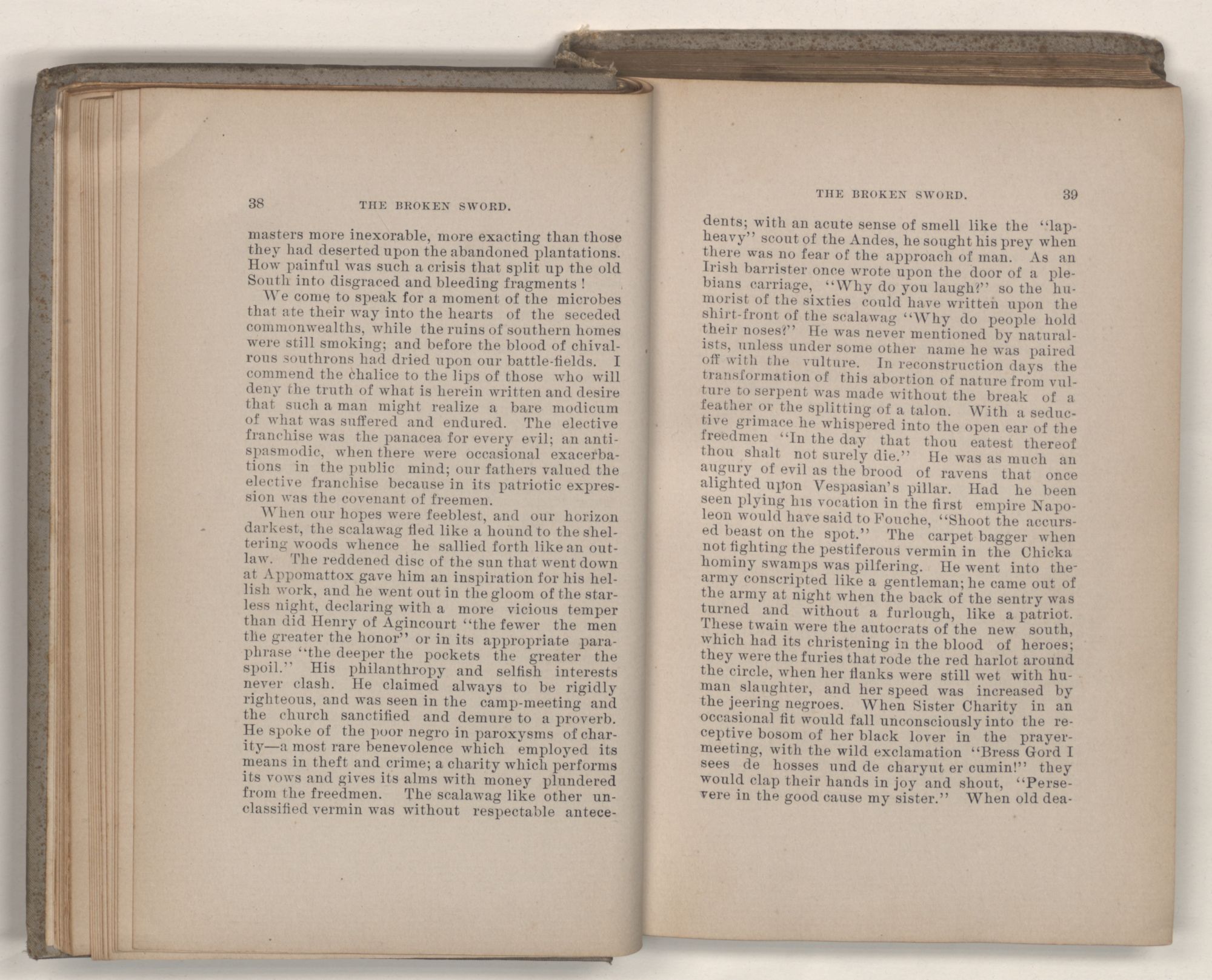 THE BROKEN SWORD:—OR—A PICTORIAL PAGE IN RECONSTRUCTION—BY—D. WORTHINGTON.WILSON, N. C.:P. D. GOLD & SONS,1901.