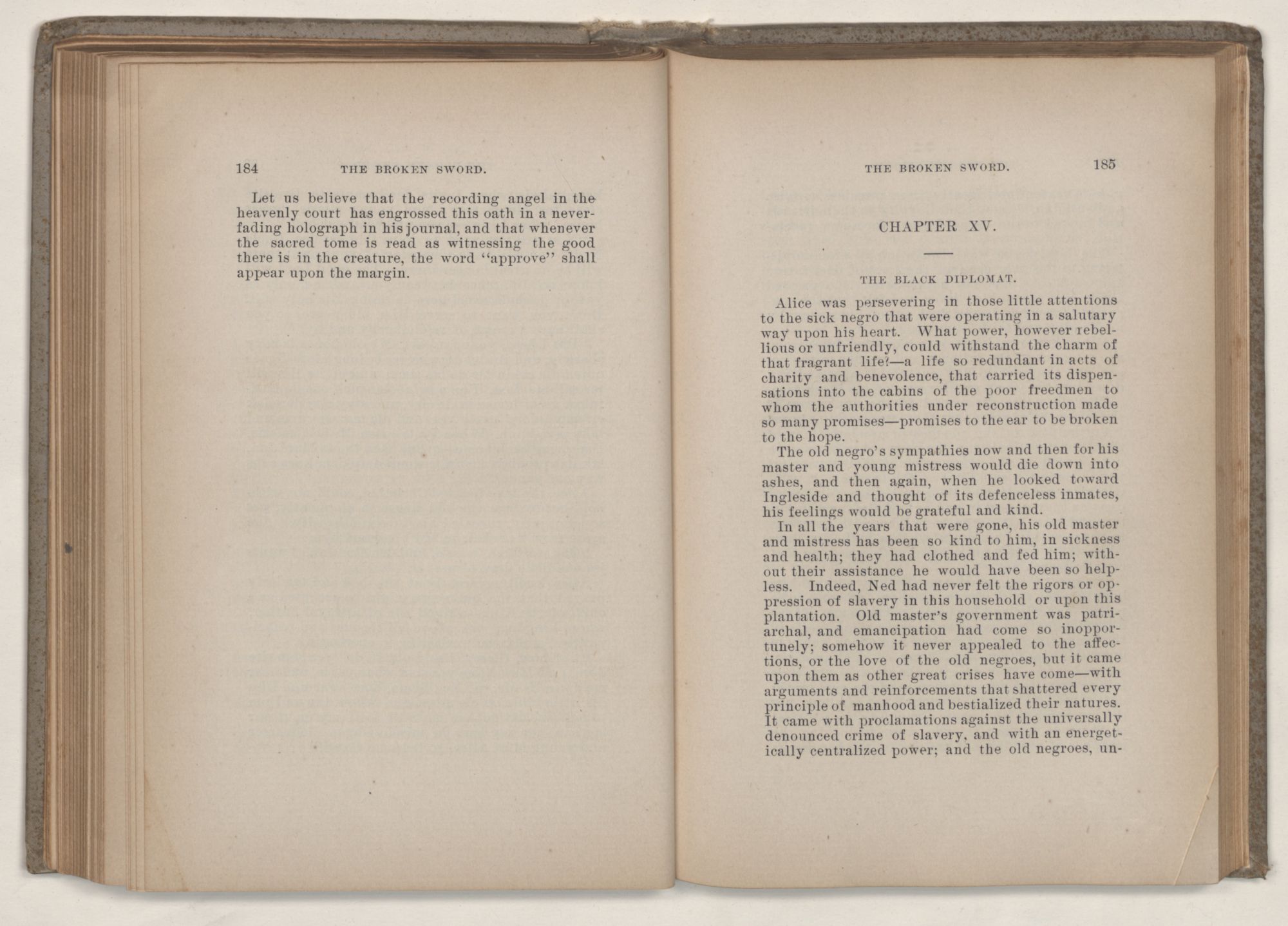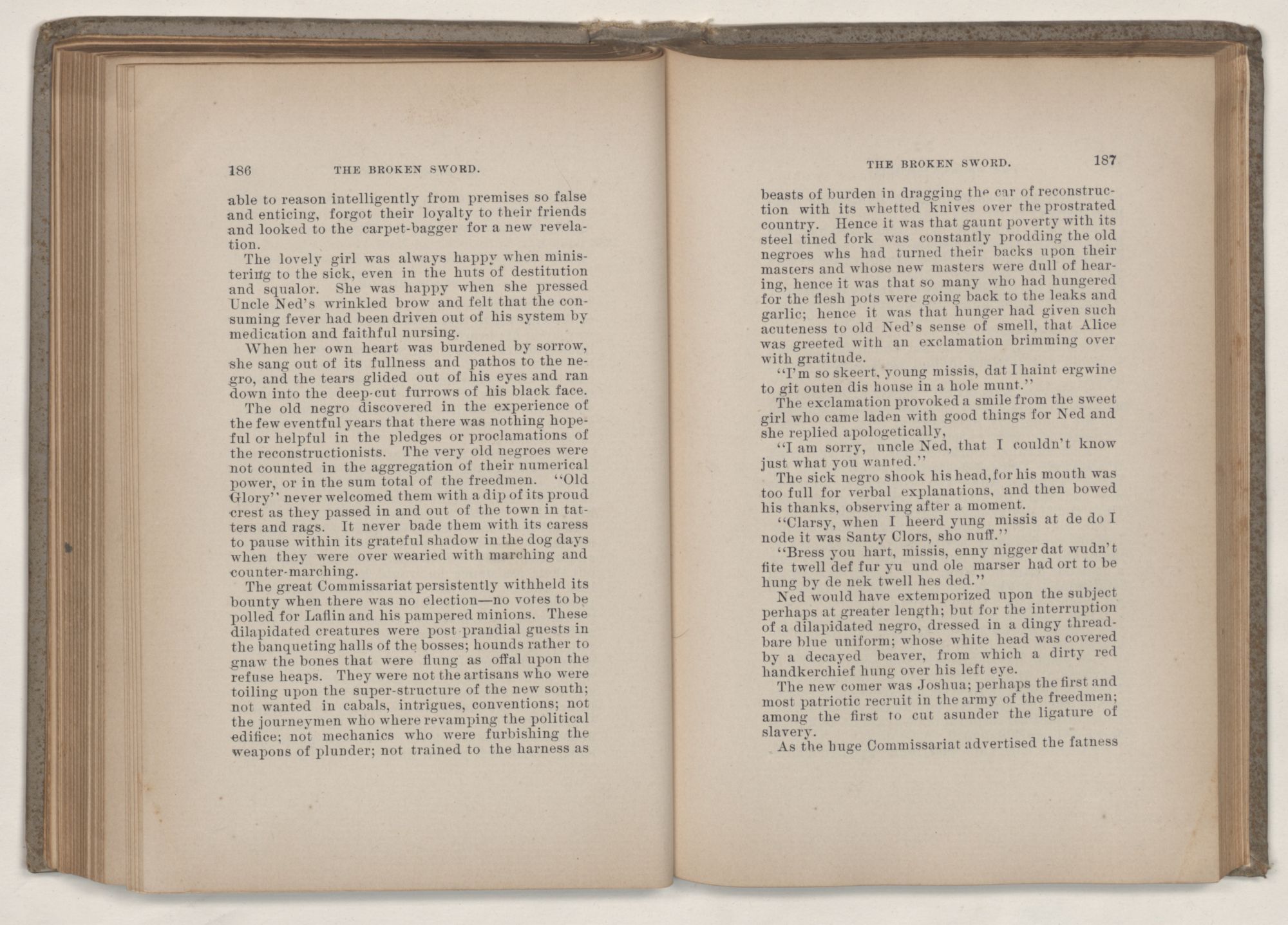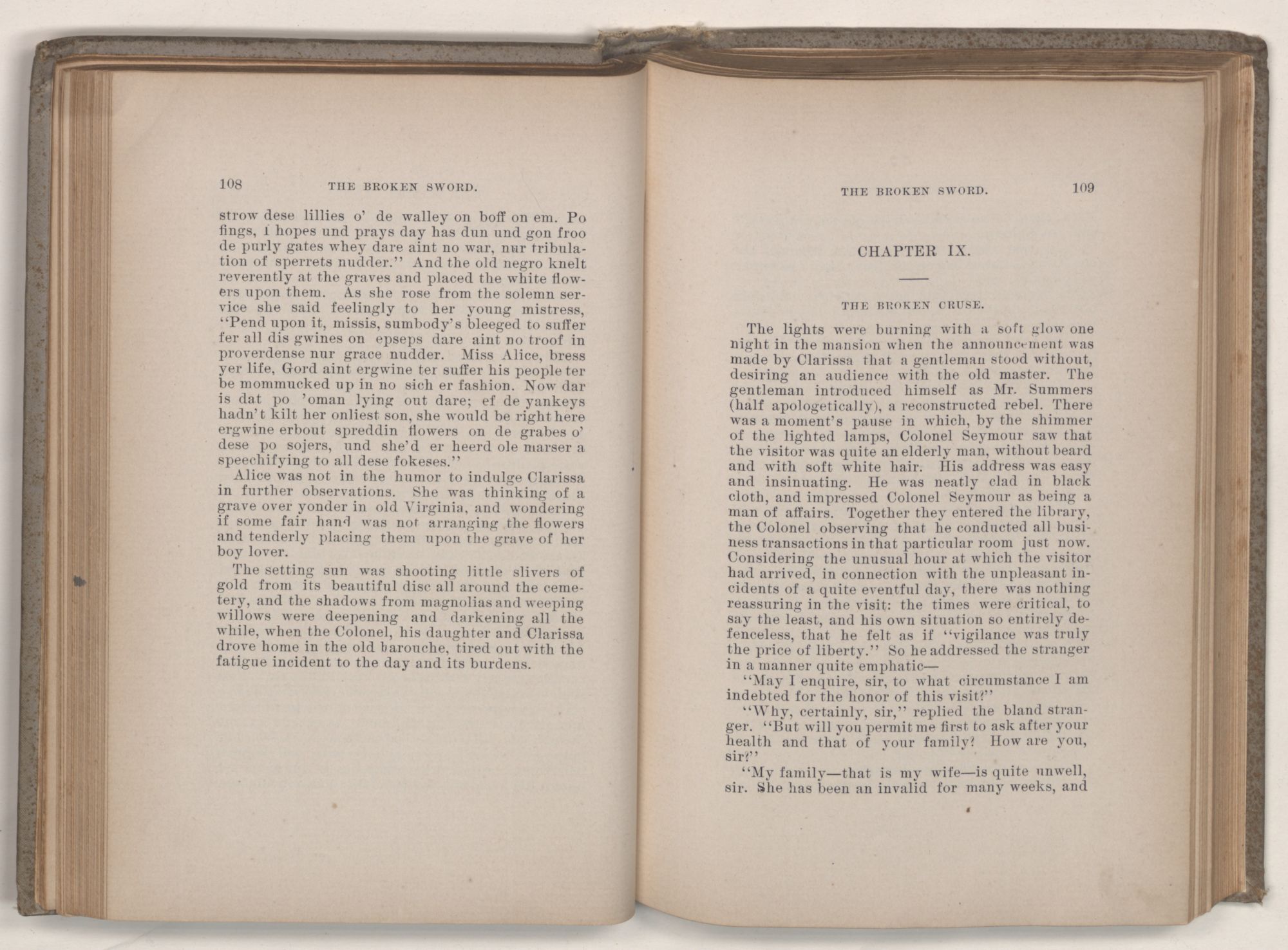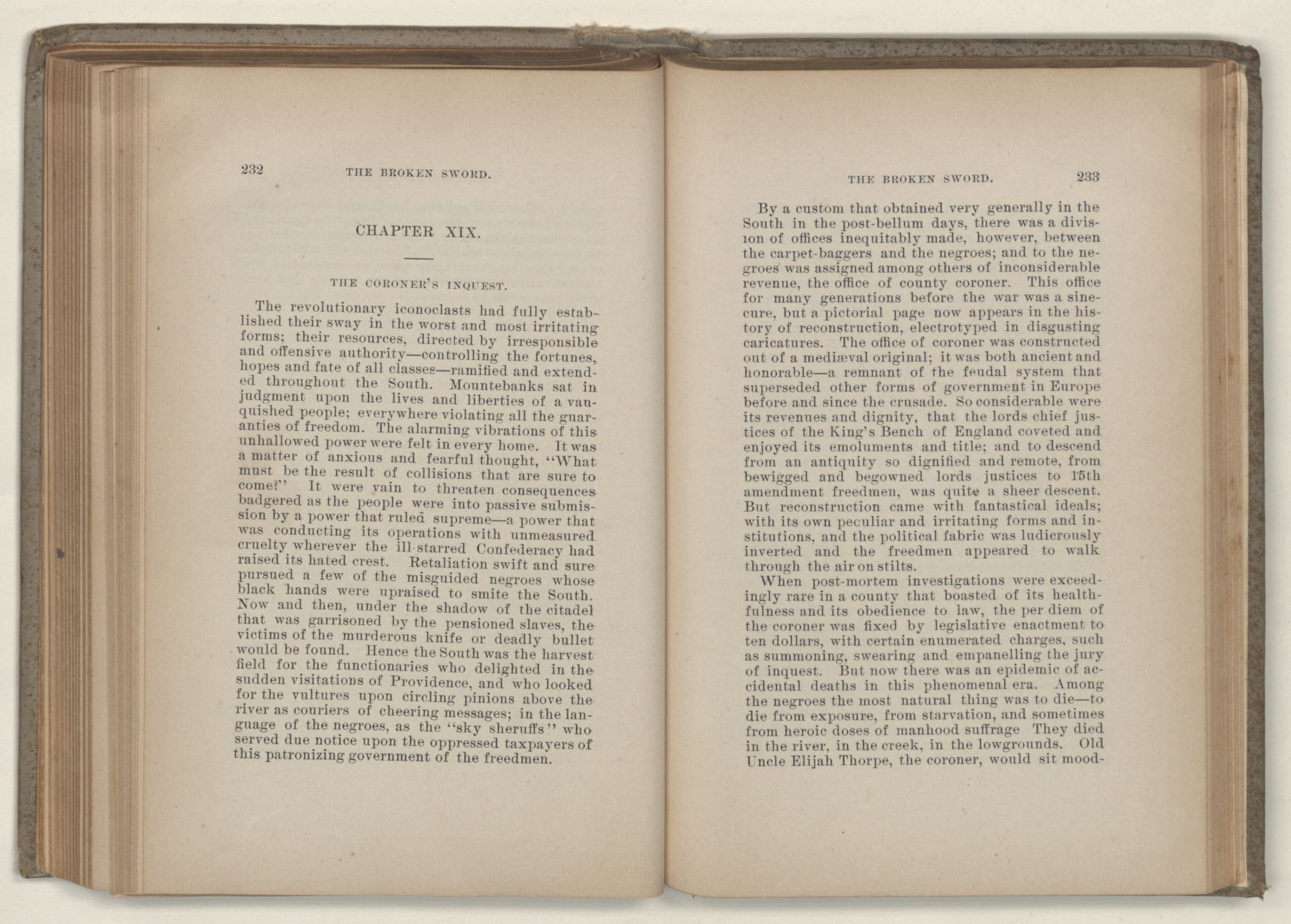 THE BROKEN SWORD:—OR—A PICTORIAL PAGE IN RECONSTRUCTION—BY—D. WORTHINGTON.WILSON, N. C.:P. D. GOLD & SONS,1901.