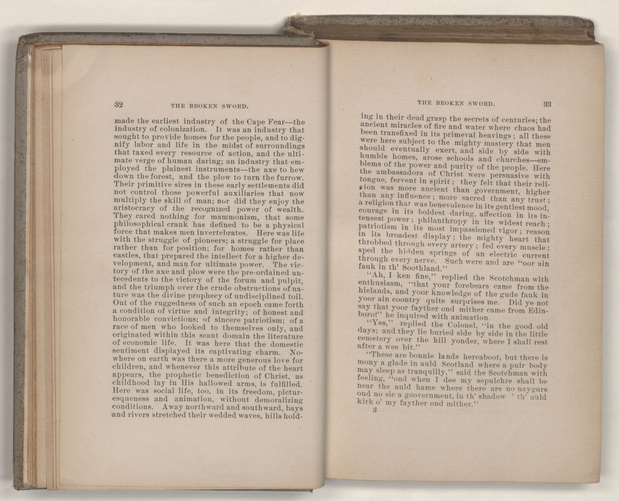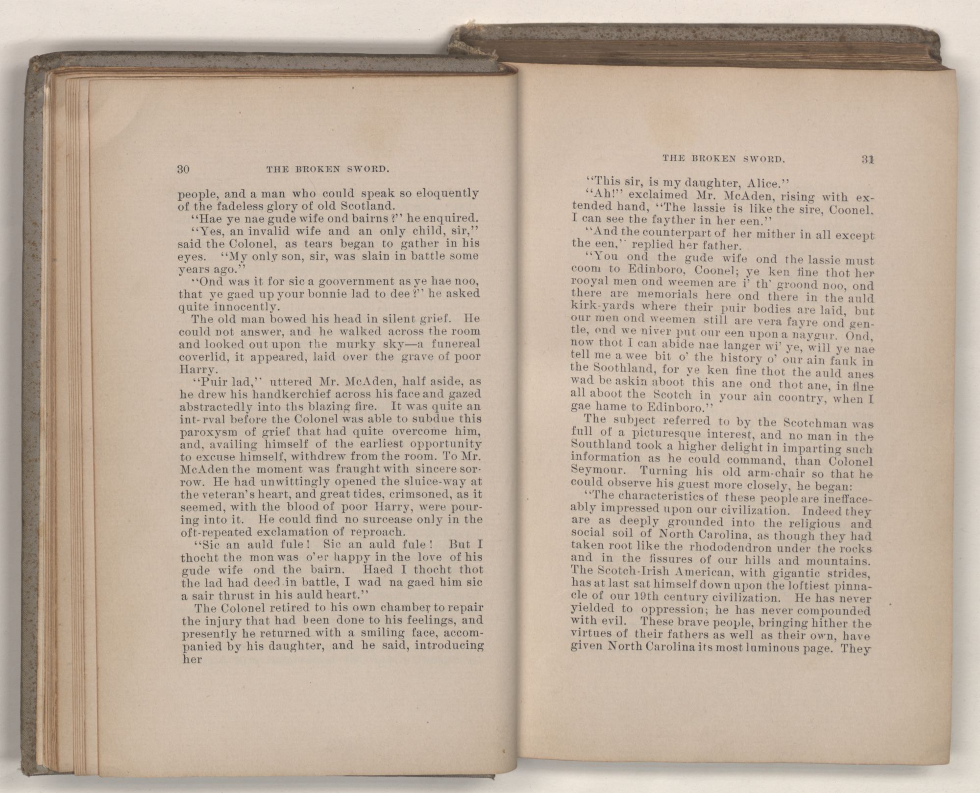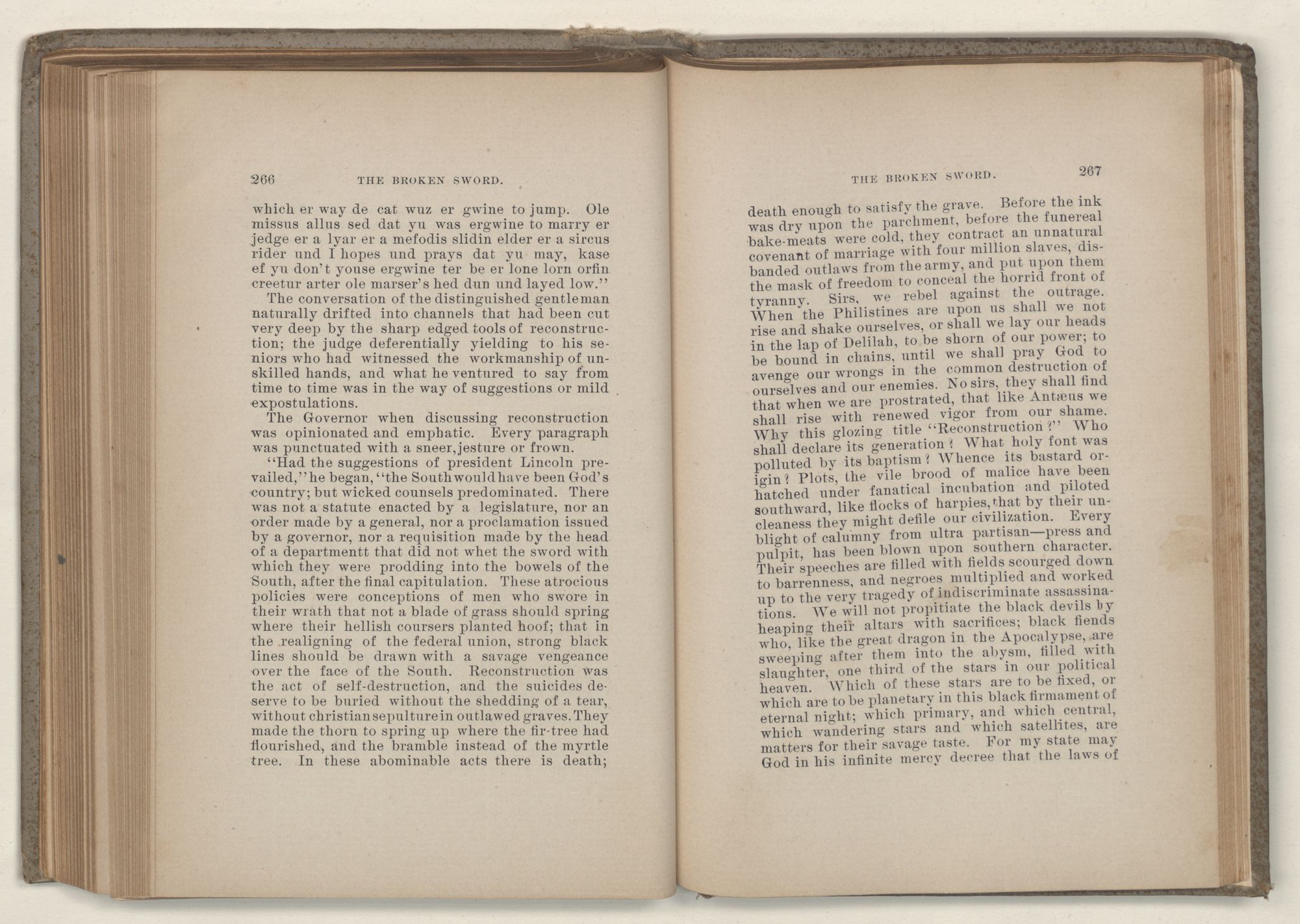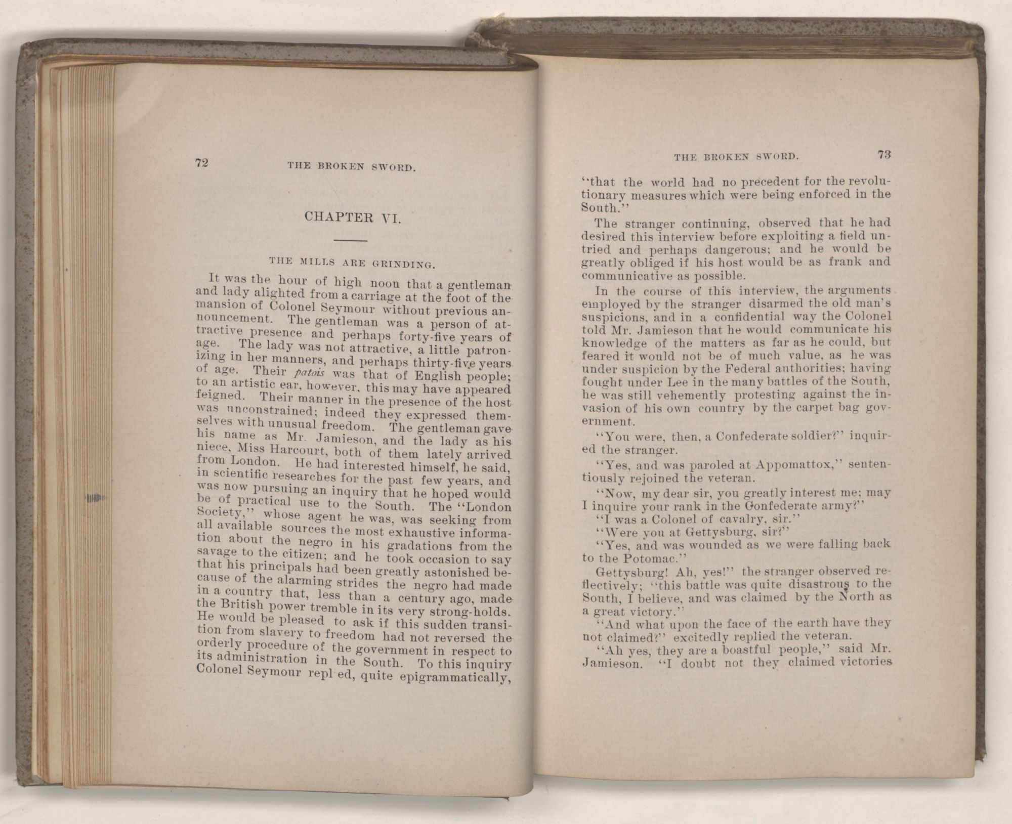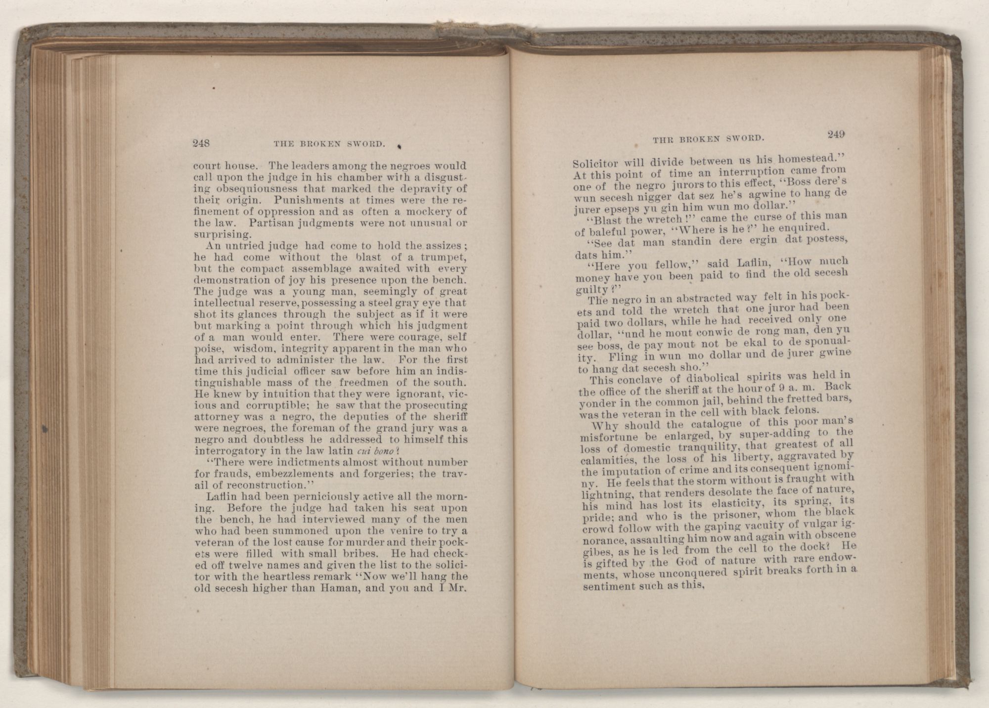 THE BROKEN SWORD:—OR—A PICTORIAL PAGE IN RECONSTRUCTION—BY—D. WORTHINGTON.WILSON, N. C.:P. D. GOLD & SONS,1901.