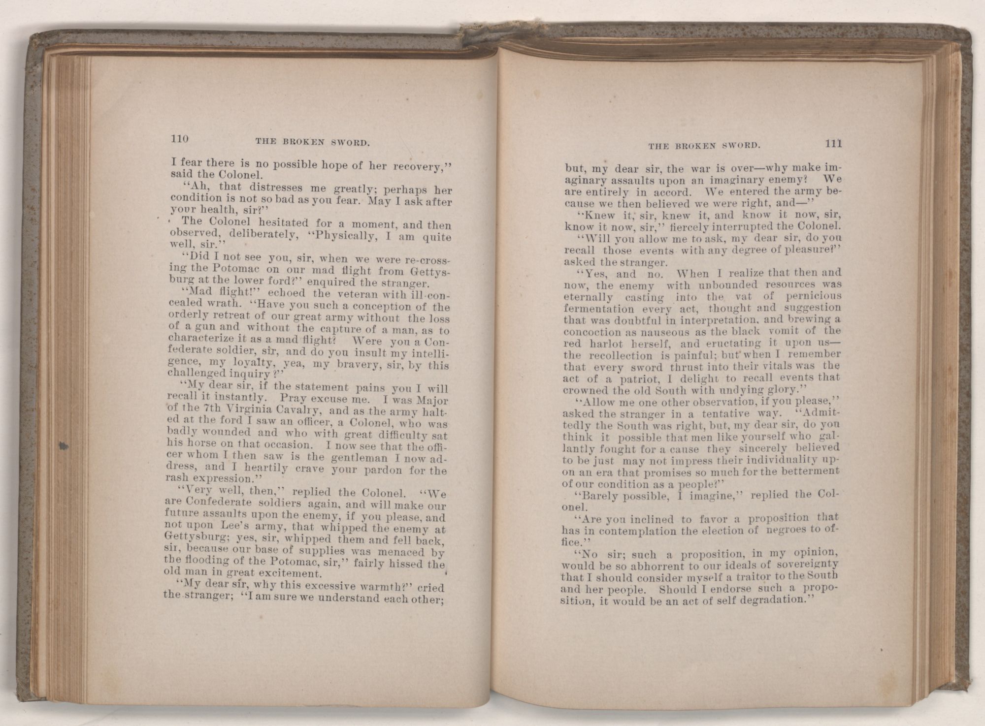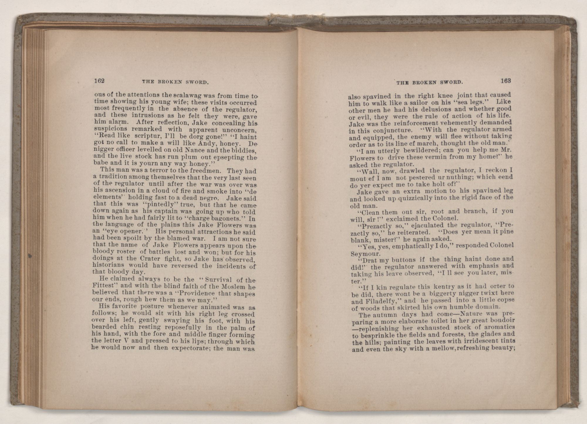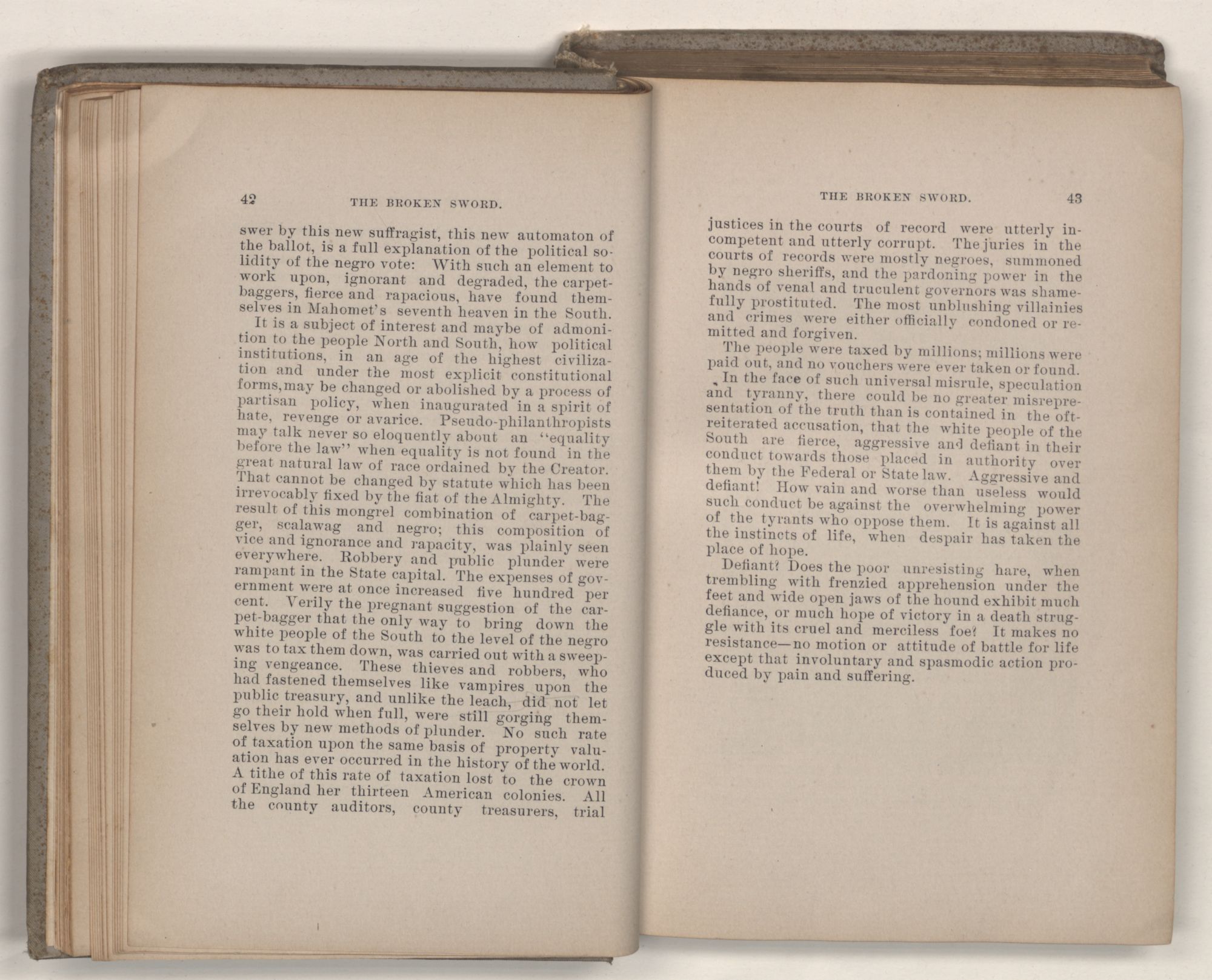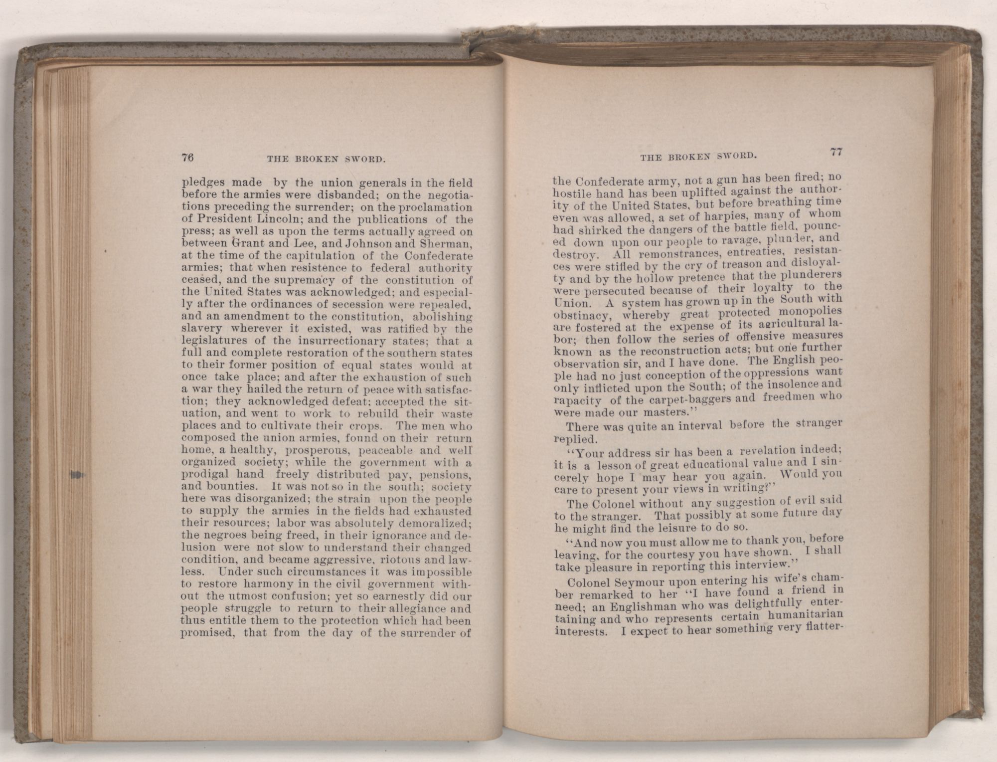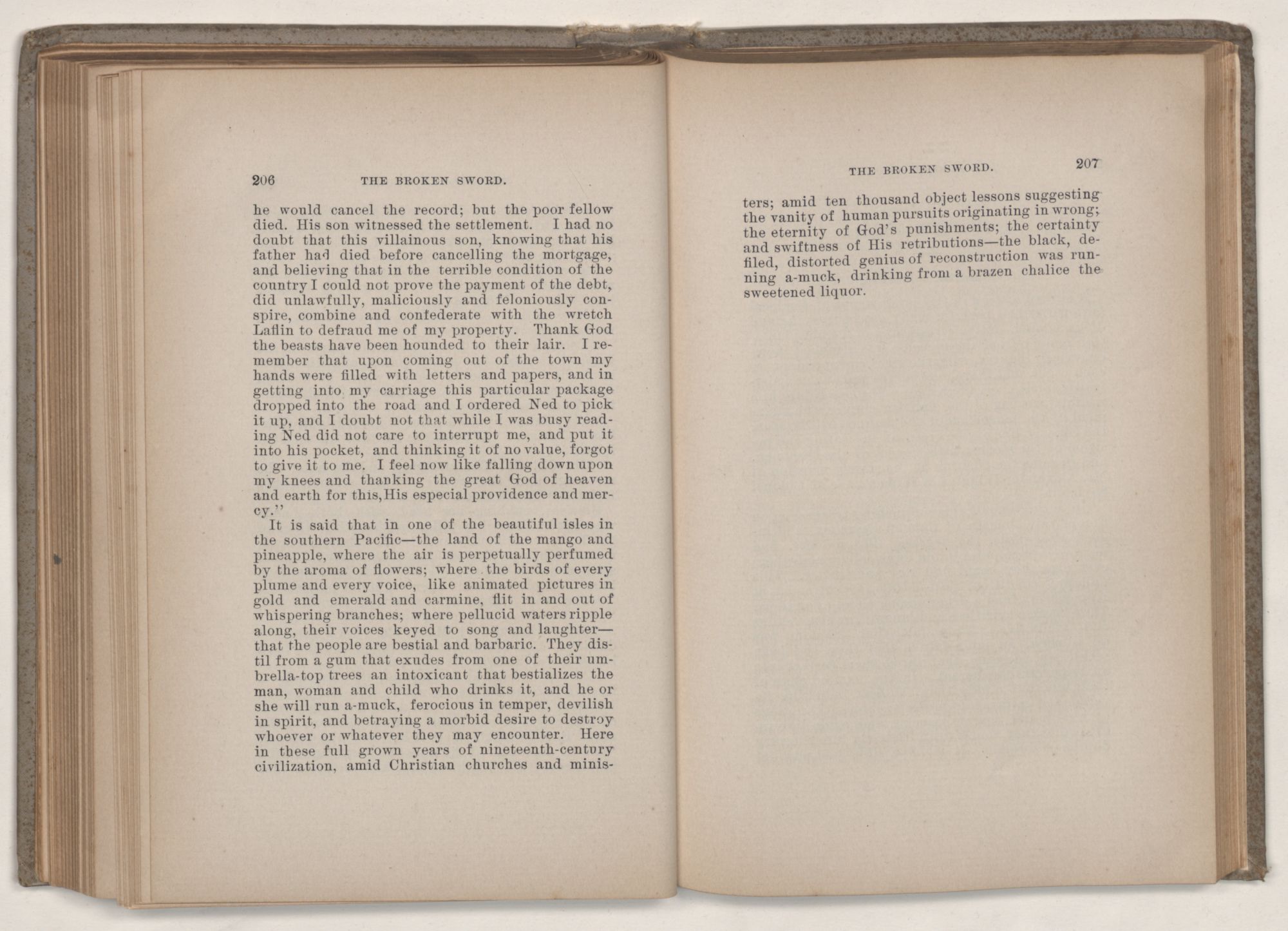 THE BROKEN SWORD:—OR—A PICTORIAL PAGE IN RECONSTRUCTION—BY—D. WORTHINGTON.WILSON, N. C.:P. D. GOLD & SONS,1901.