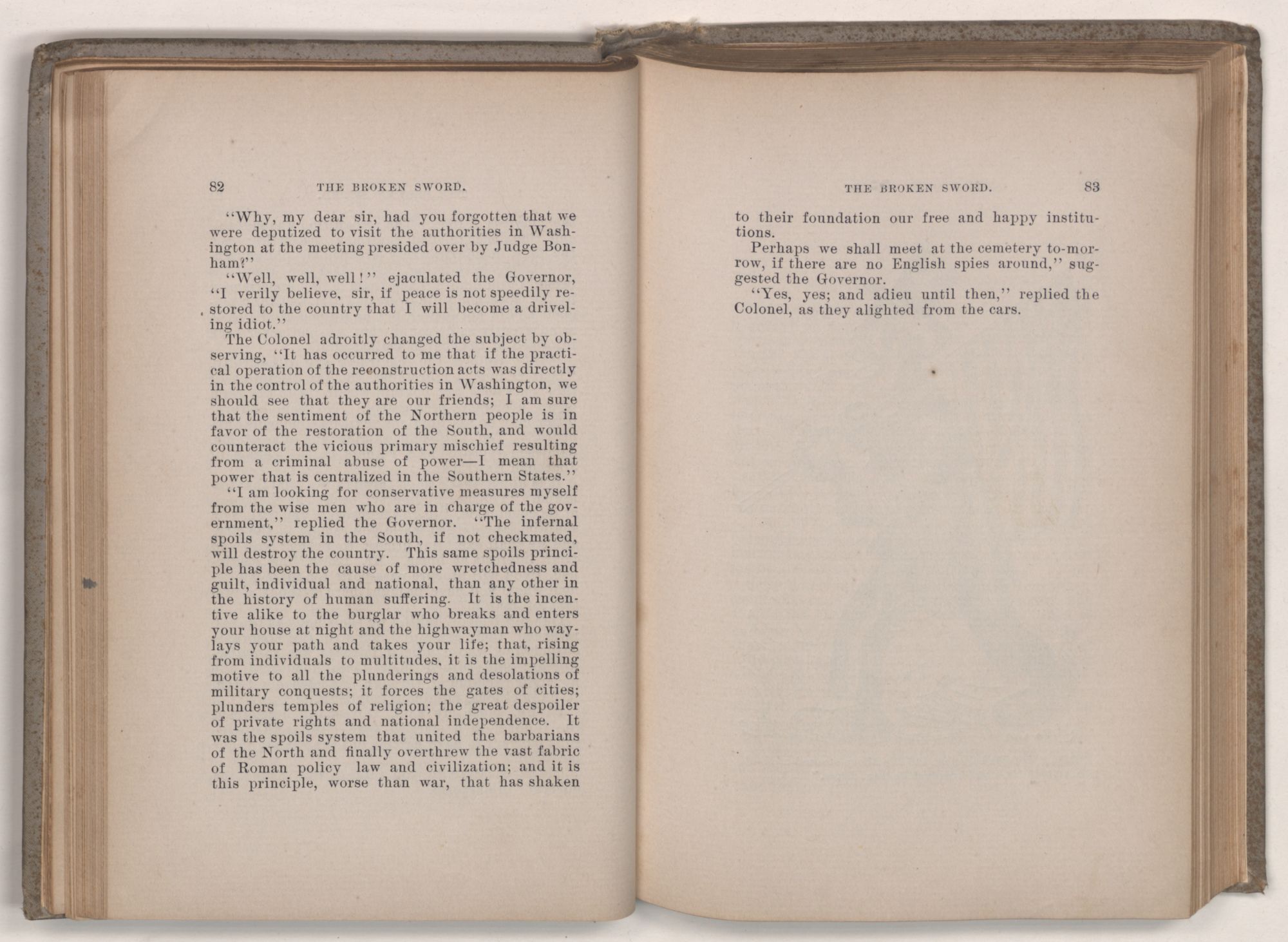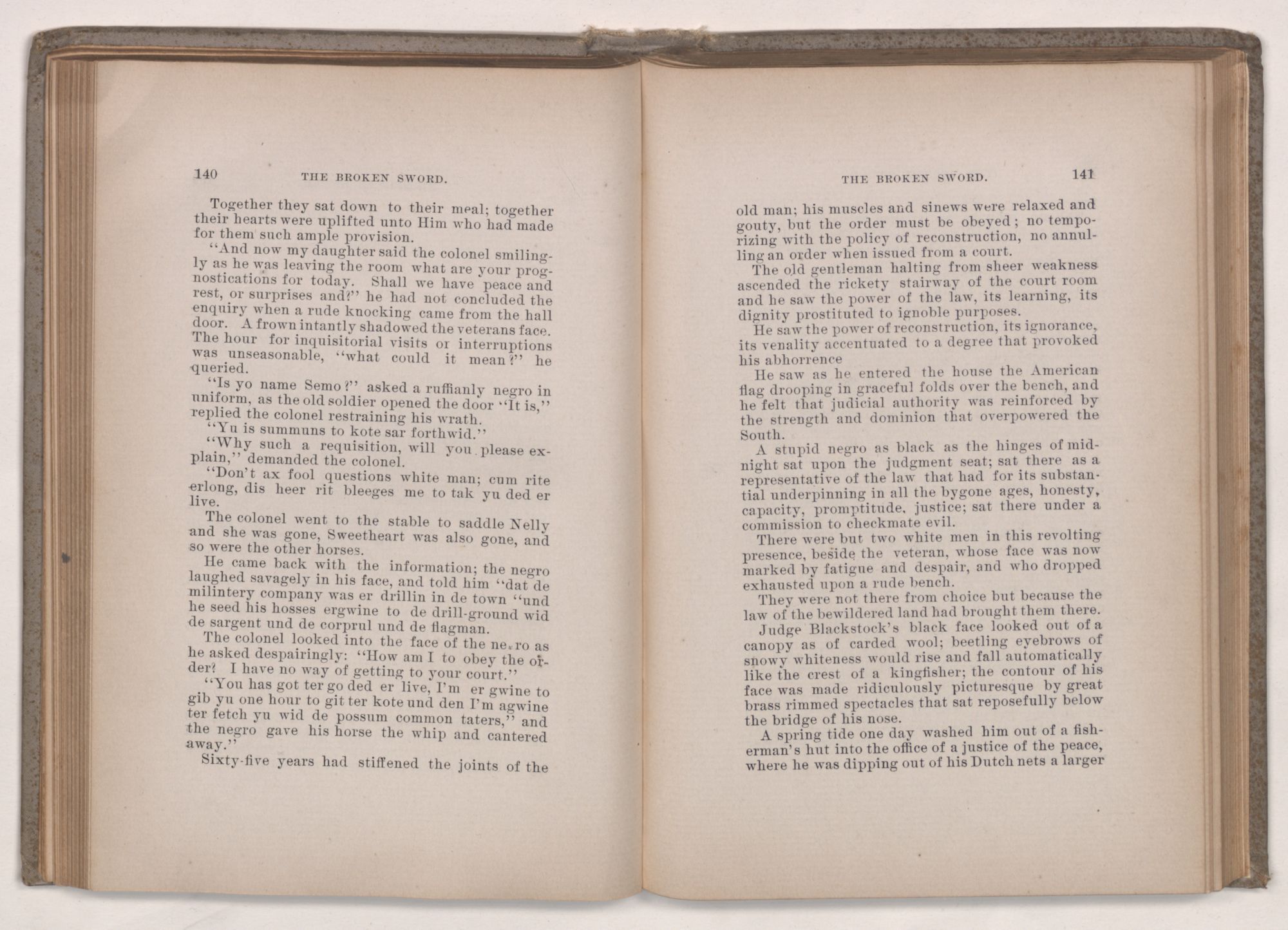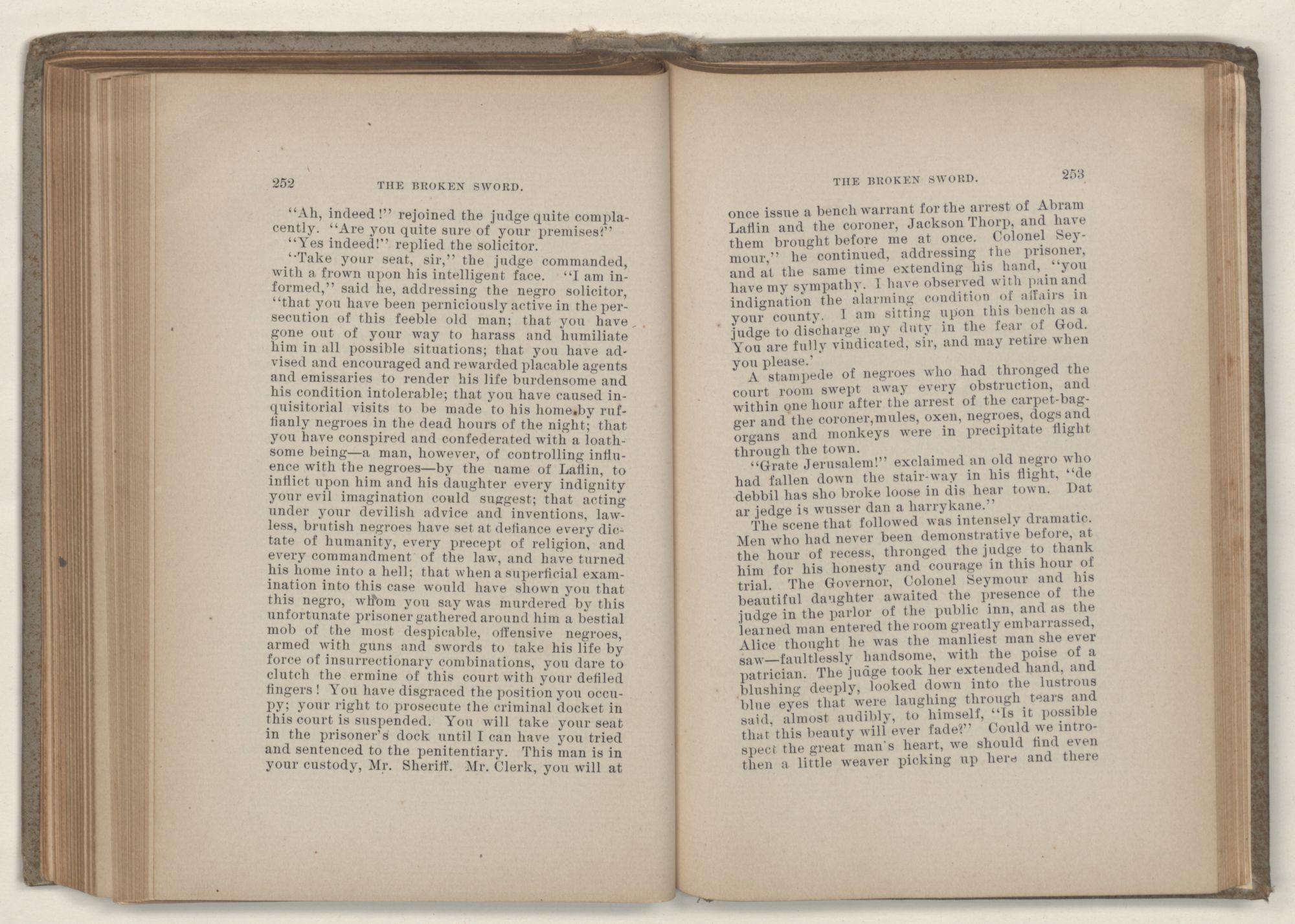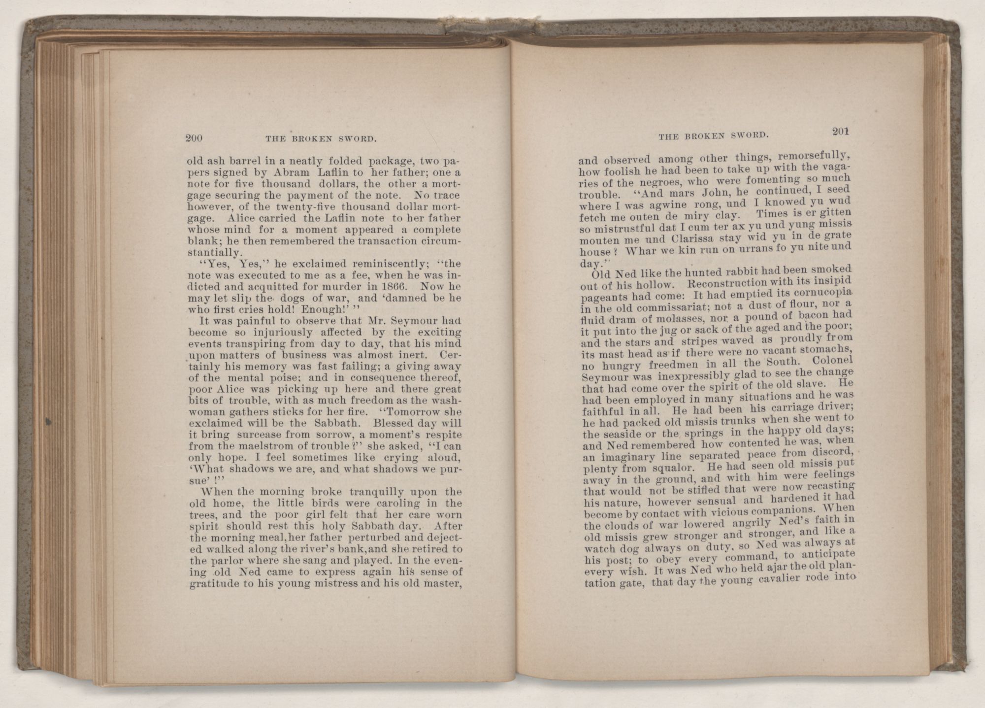 THE BROKEN SWORD:—OR—A PICTORIAL PAGE IN RECONSTRUCTION—BY—D. WORTHINGTON.WILSON, N. C.:P. D. GOLD & SONS,1901.