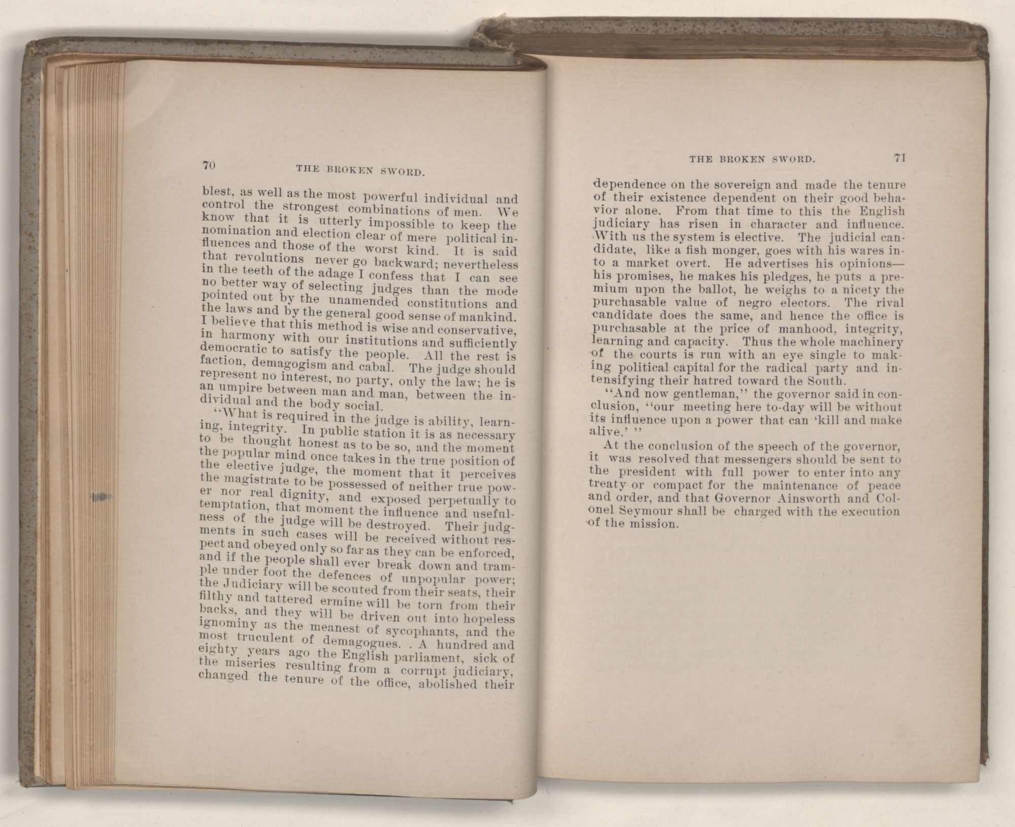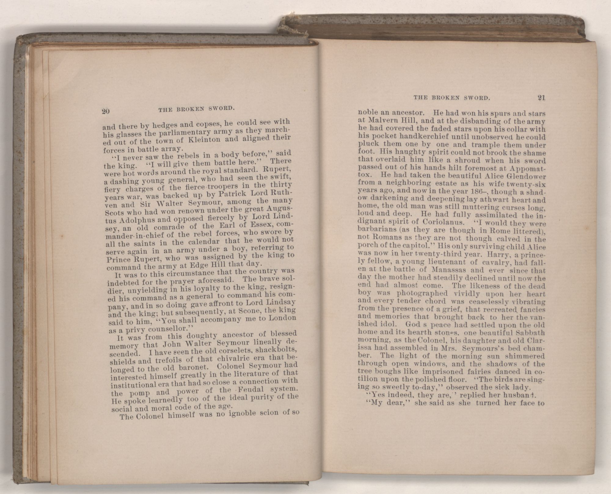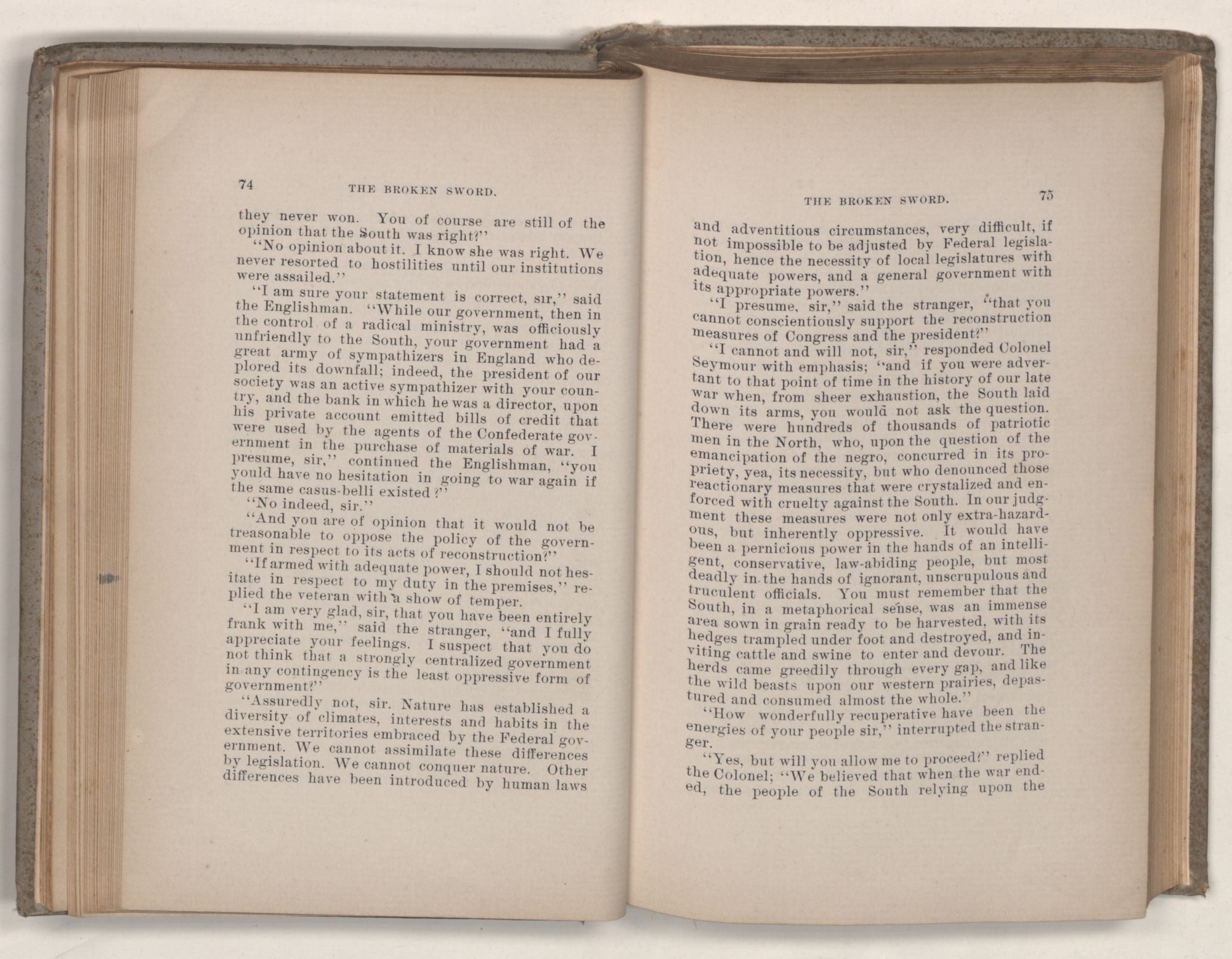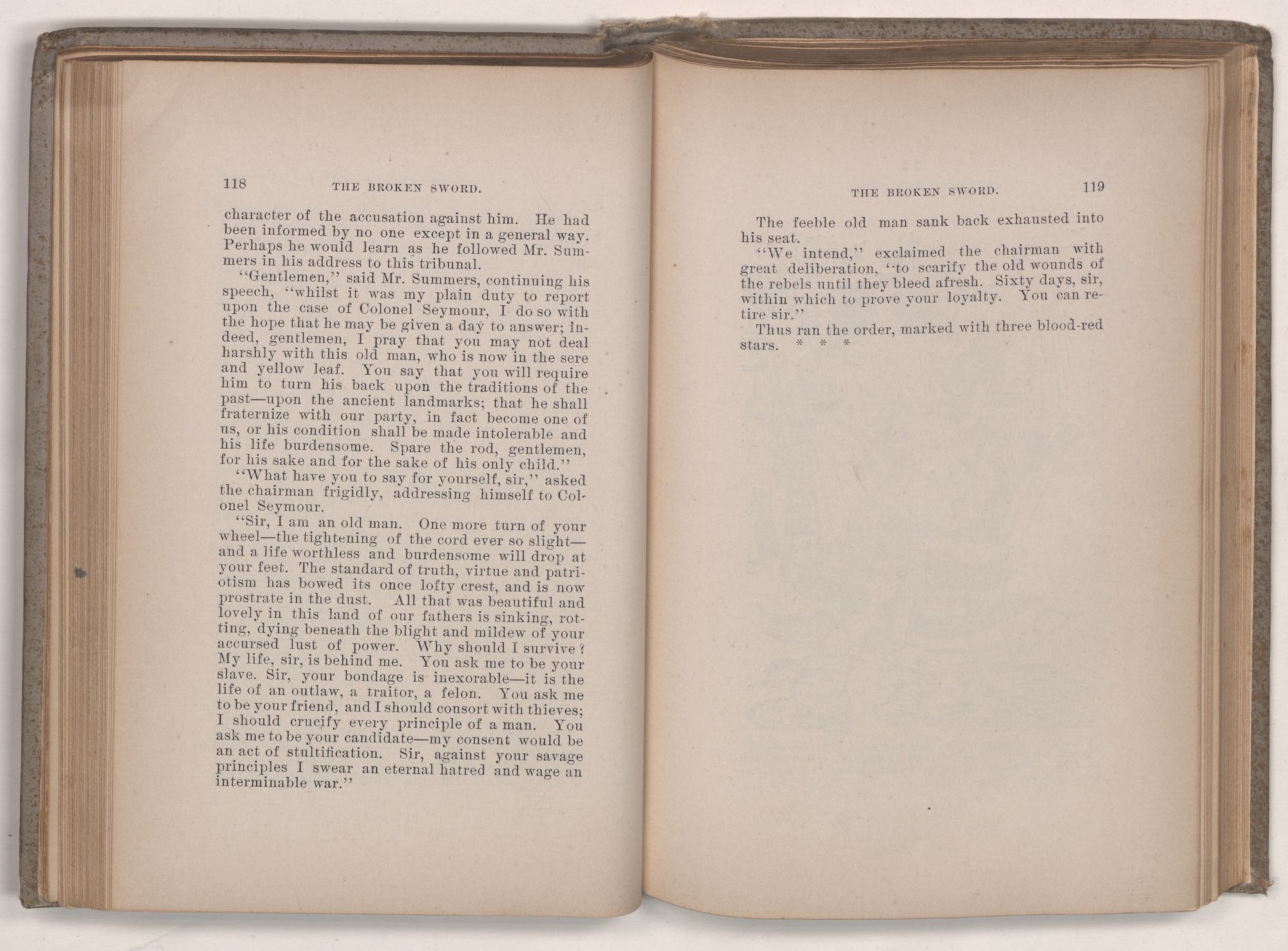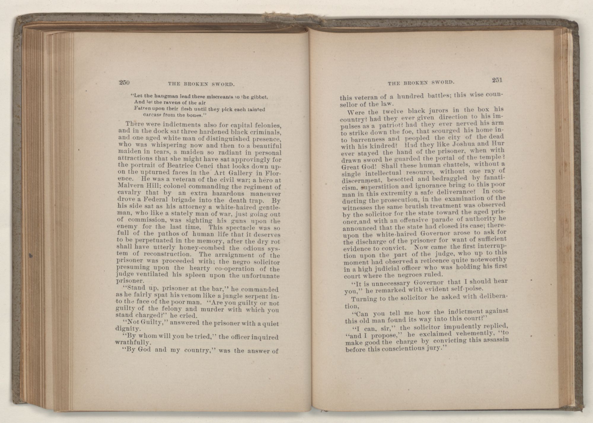 THE BROKEN SWORD:—OR—A PICTORIAL PAGE IN RECONSTRUCTION—BY—D. WORTHINGTON.WILSON, N. C.:P. D. GOLD & SONS,1901.