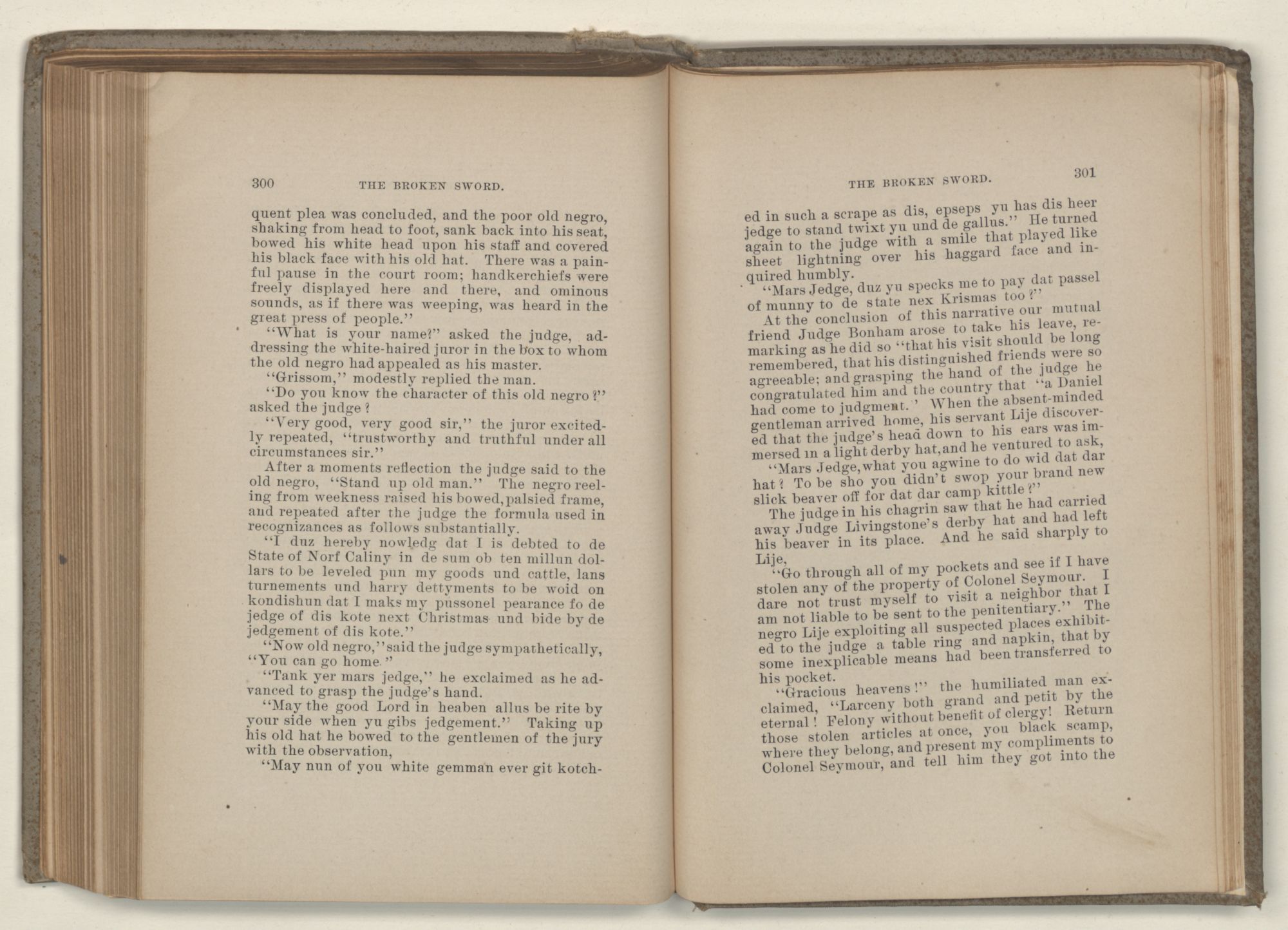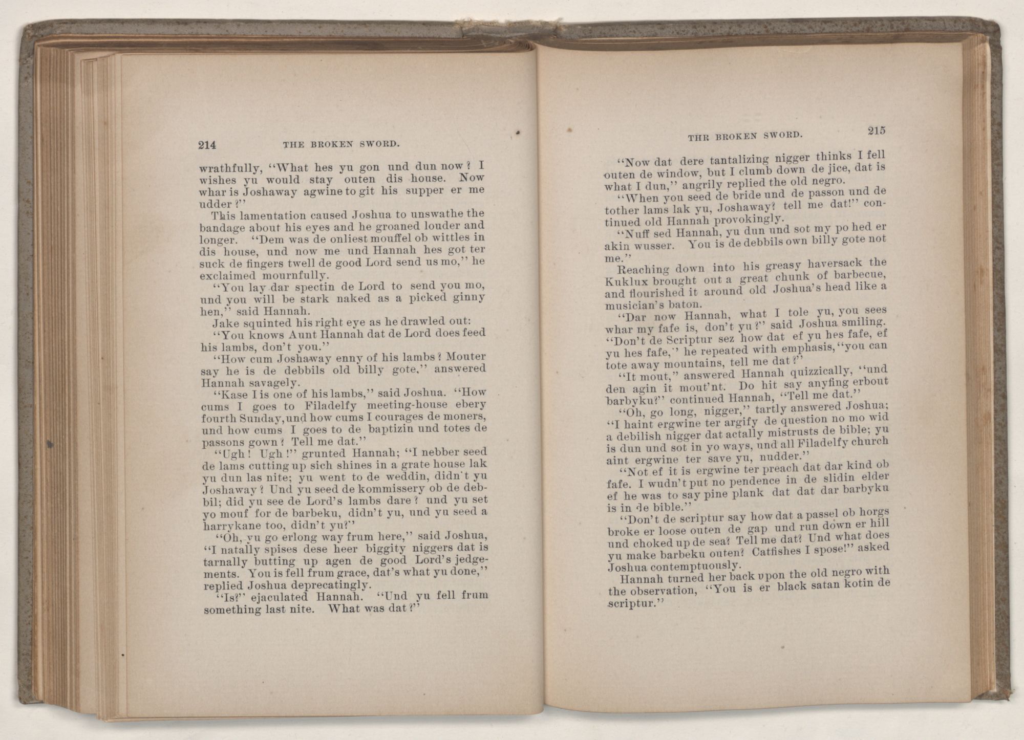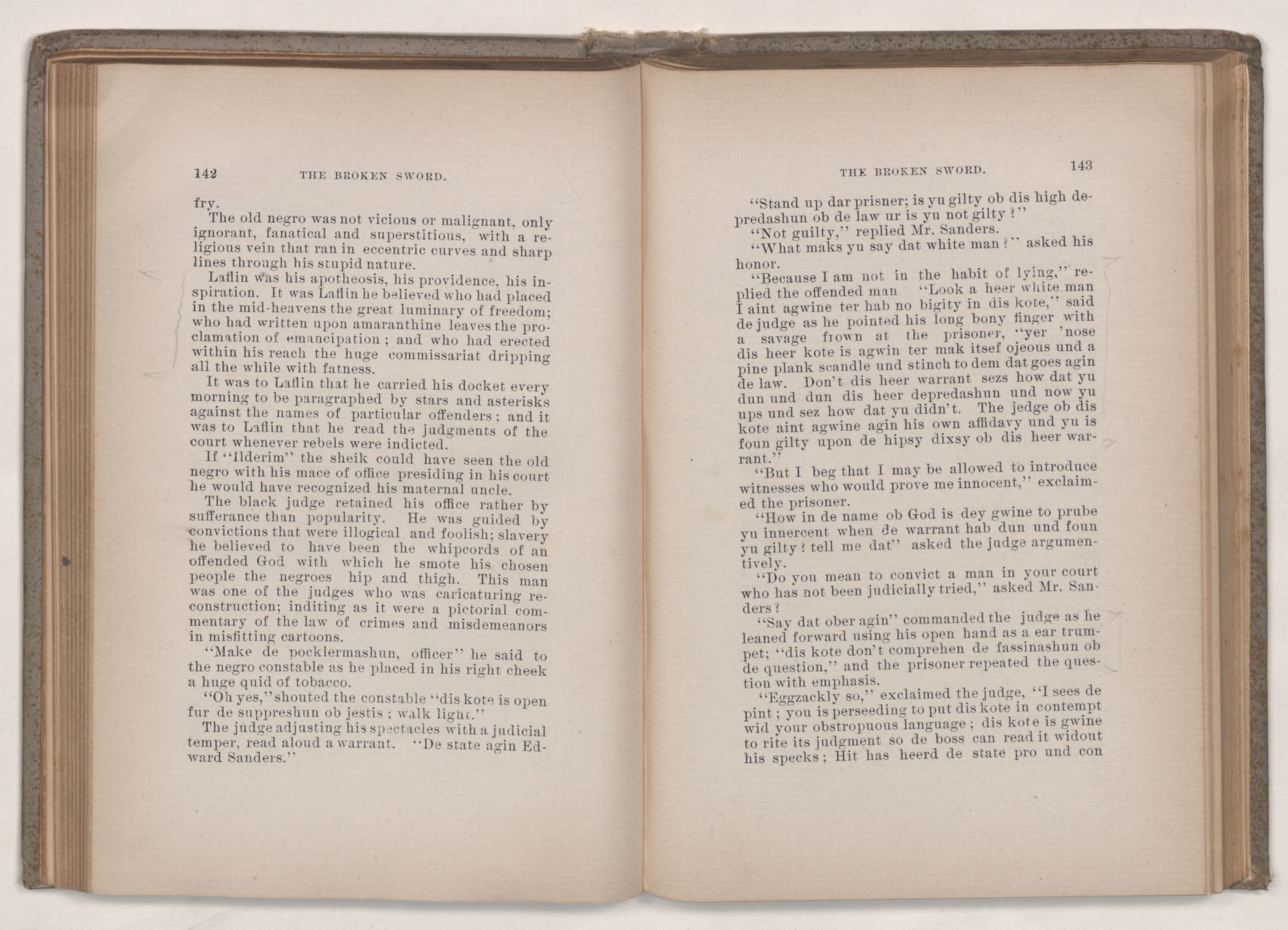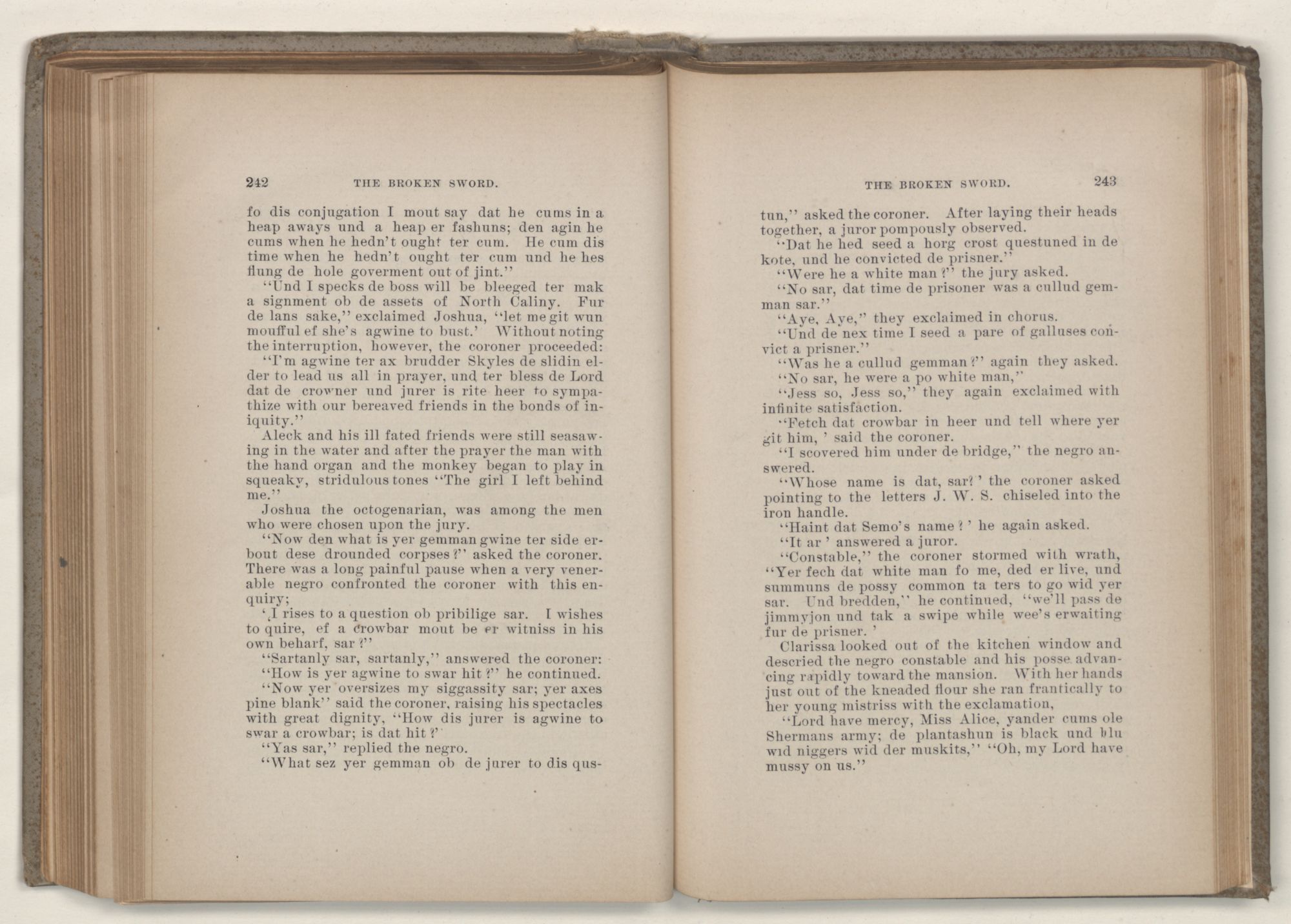 “Yu better ax wot is agwine ter cum ob me und yu. Ole marser is agwine away fust, yu heer my racket. I dun heerd deth er calling him. Ole marser walks rite cranked-sided now, wid dat wheezin in his chiss, und twixt dese franksized niggers, und dis outlandish konstrucshun, und ole missis dun und gon, ole marser is er pinin lak a dedded gum in de low ground.”