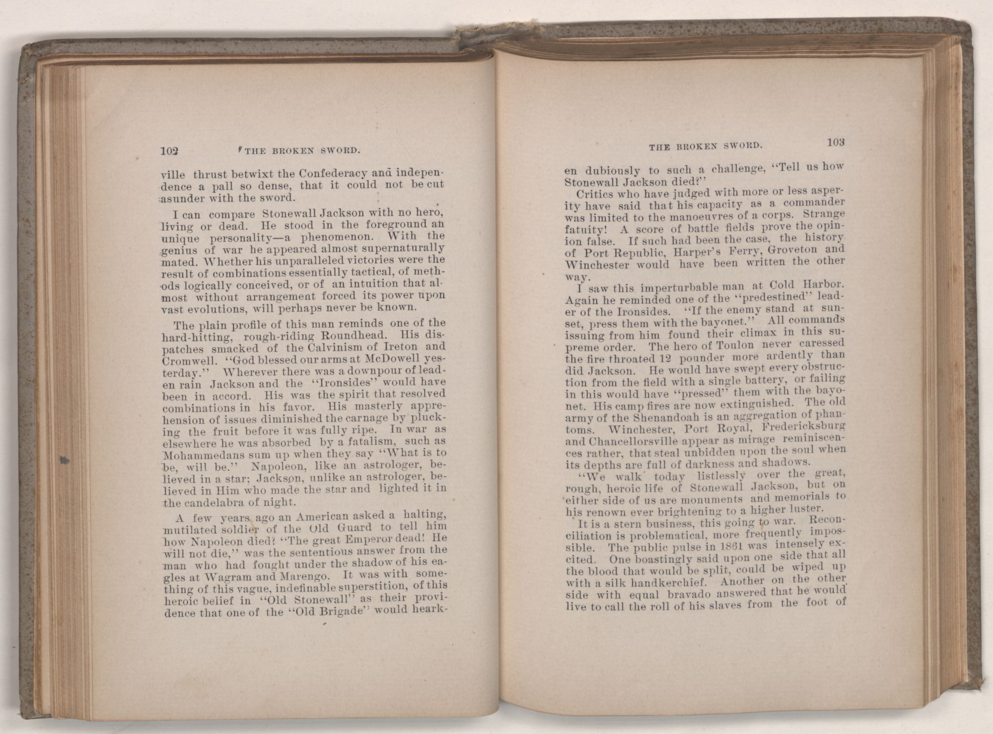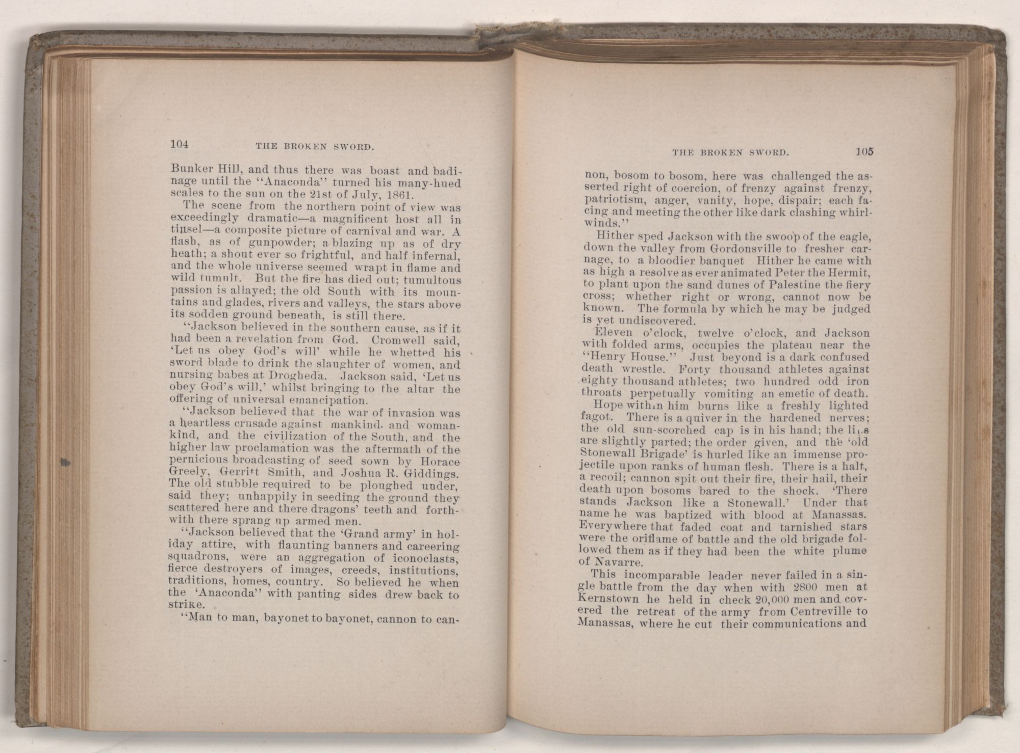 “Yes indeed,” he rejoined, “and my experience in that battle was inexpressibly sad. I cannot think of Manassas,” he resumed, “that I do not recall an incident full of pathos and glory. Without the mechanism of a regular army; with a currency as erratic as the proclamation money of the colonists, without experience or discipline, they had the