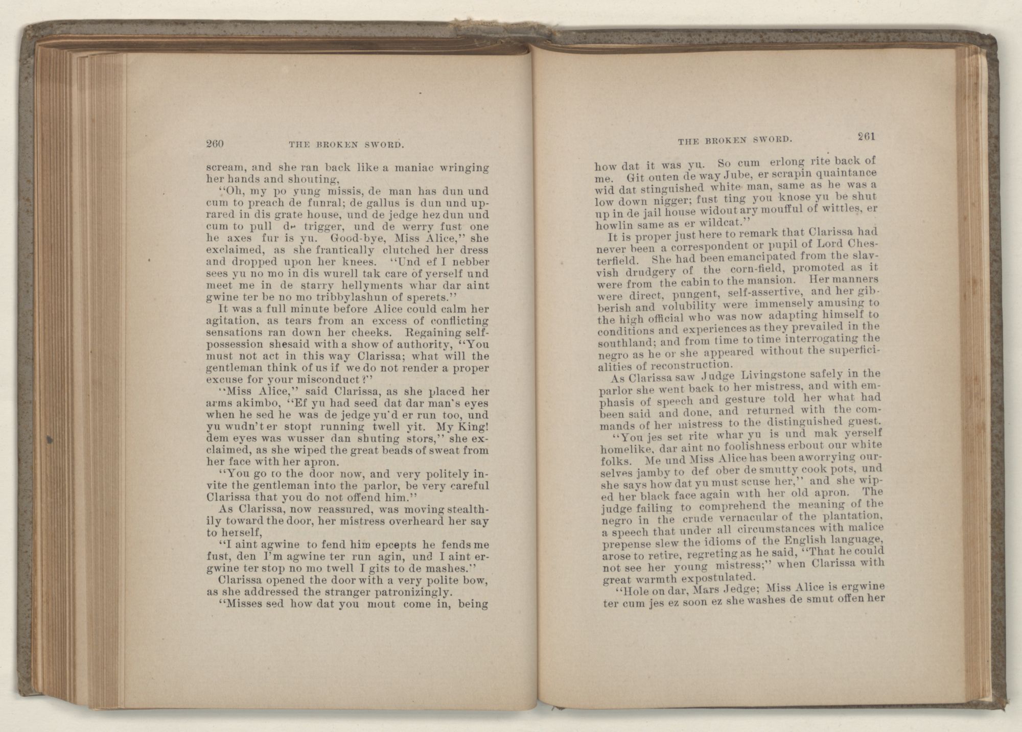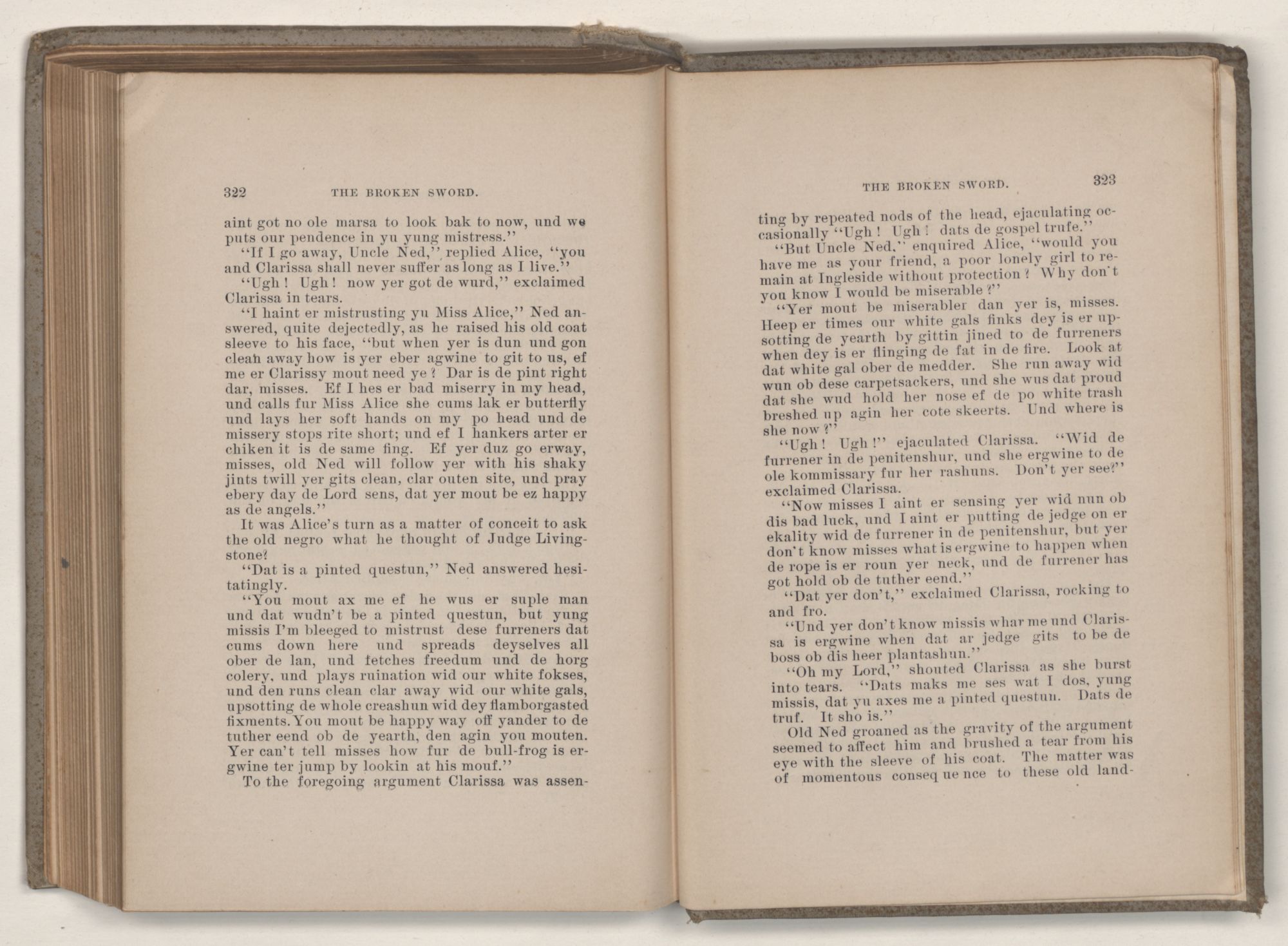 “Oh my Lord,” shouted Clarissa as she burst into tears. “Dats maks me ses wat I dos, yung missis, dat yu axes me a pinted questun. Dats de truf. It sho is.”