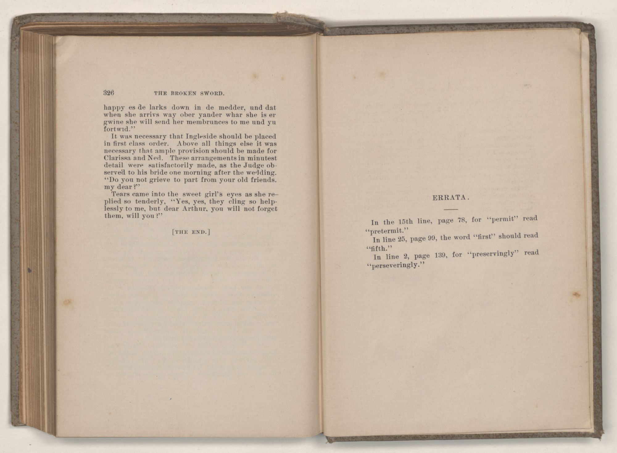 [THE END.]ERRATA.In the 15th line, page 78, for “permit” read “pretermit.”