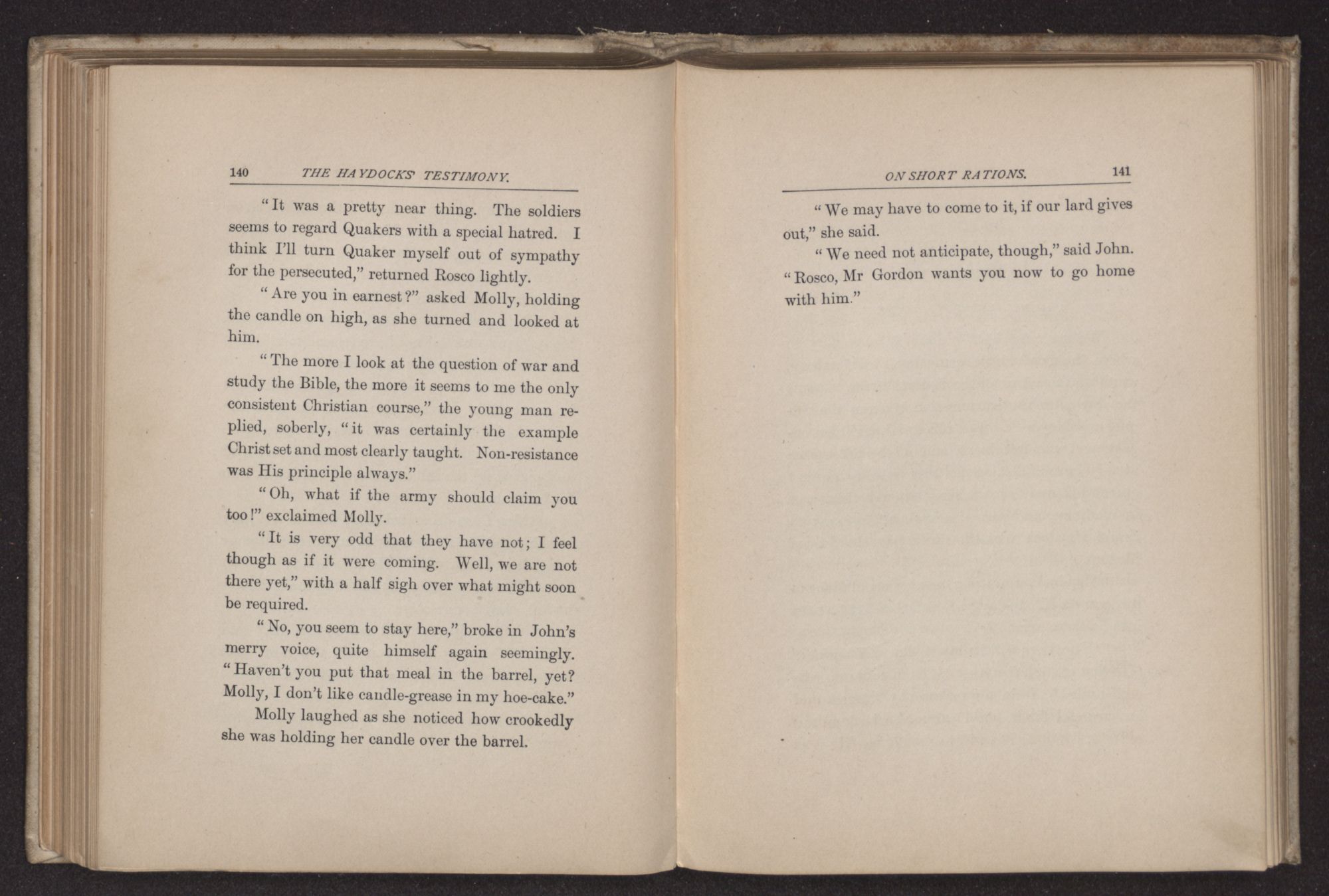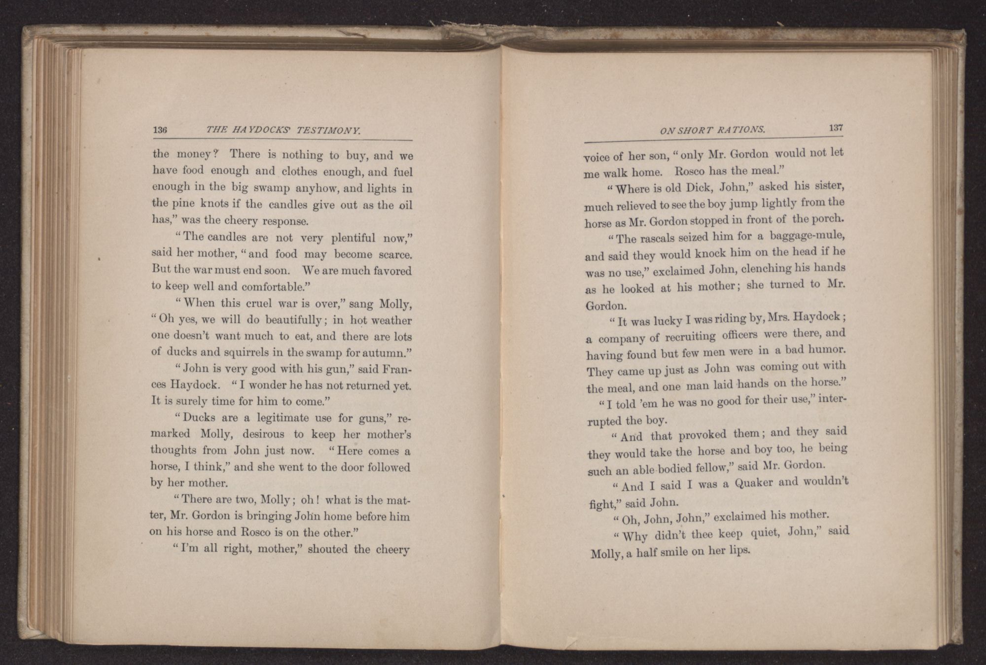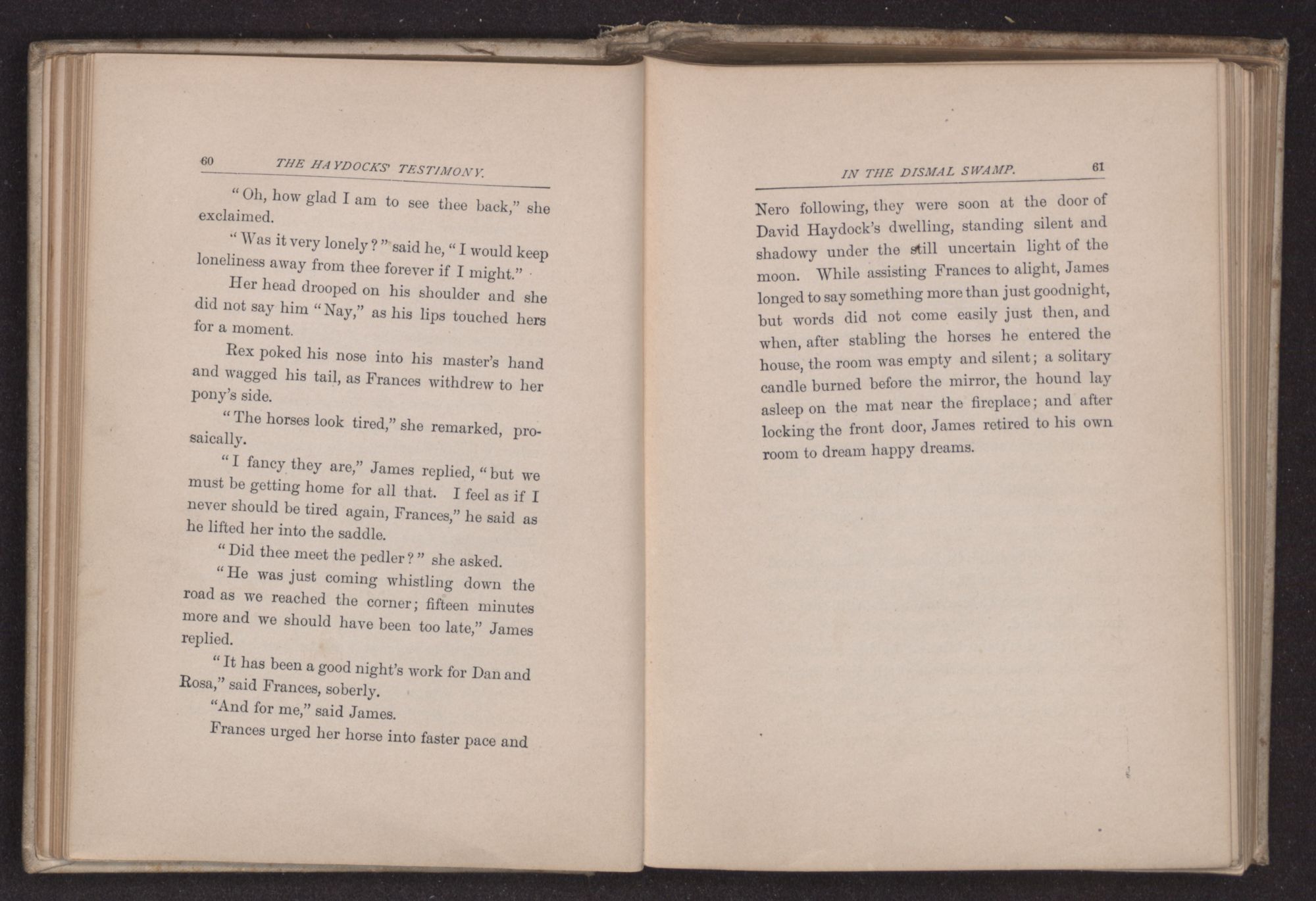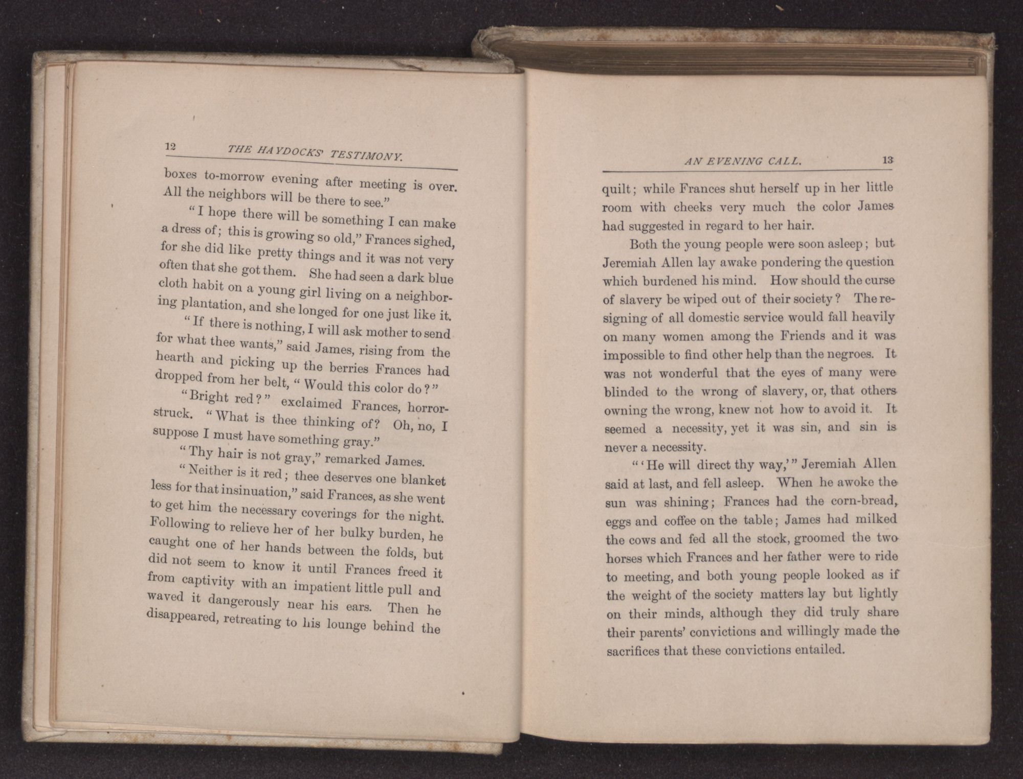 “Can thee take me in for the night?” asked James Haydock, for this was the young man's name. “Two traveling friends have come to Father's and Charles and I gave up our bed to them. Mother put Charles on the lounge in the