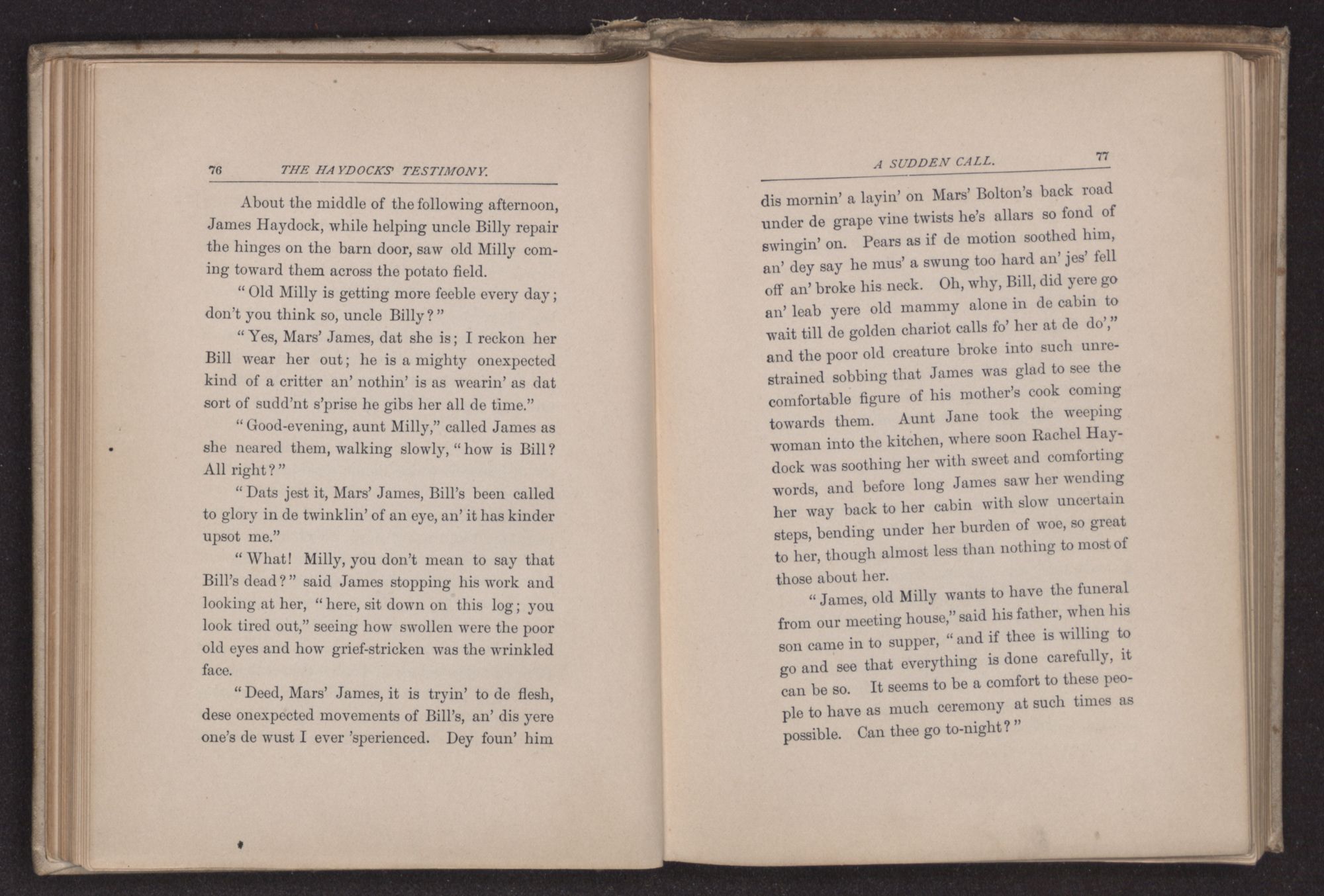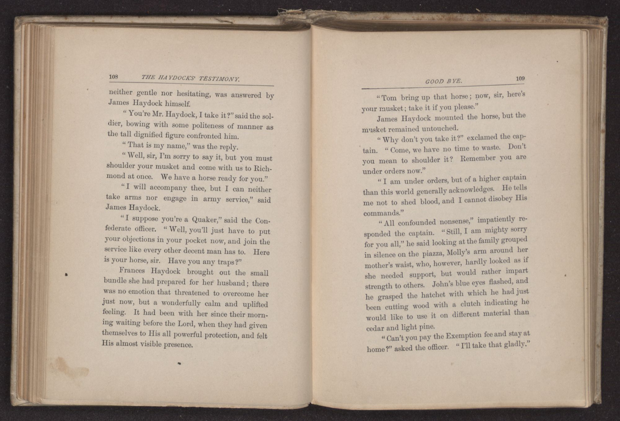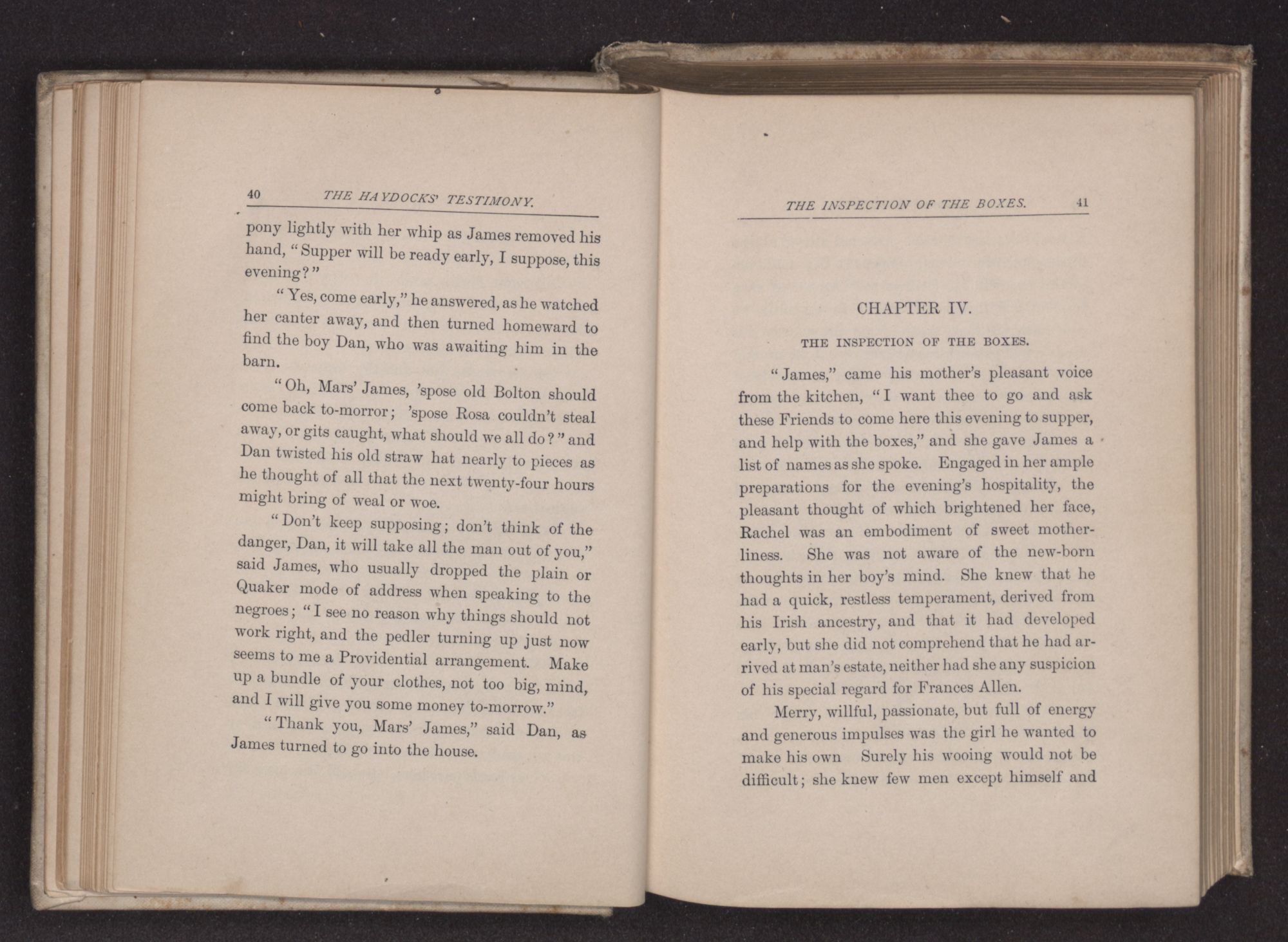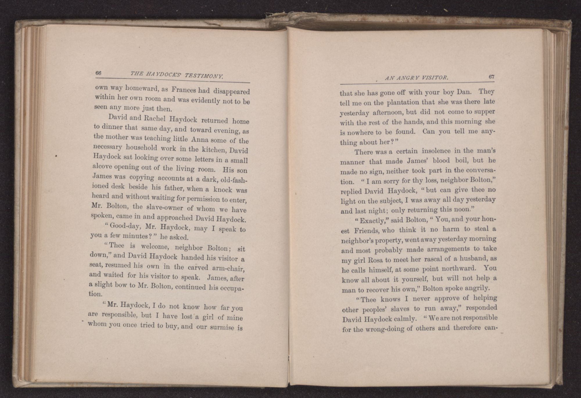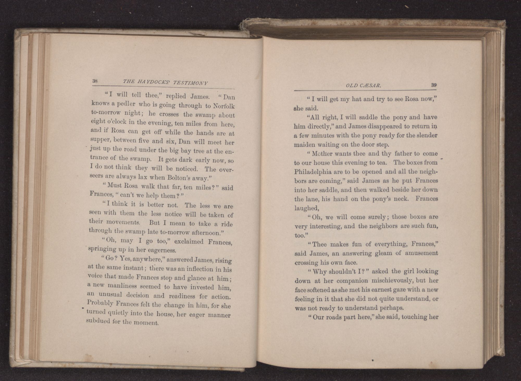 “Can thee take me in for the night?” asked James Haydock, for this was the young man's name. “Two traveling friends have come to Father's and Charles and I gave up our bed to them. Mother put Charles on the lounge in the