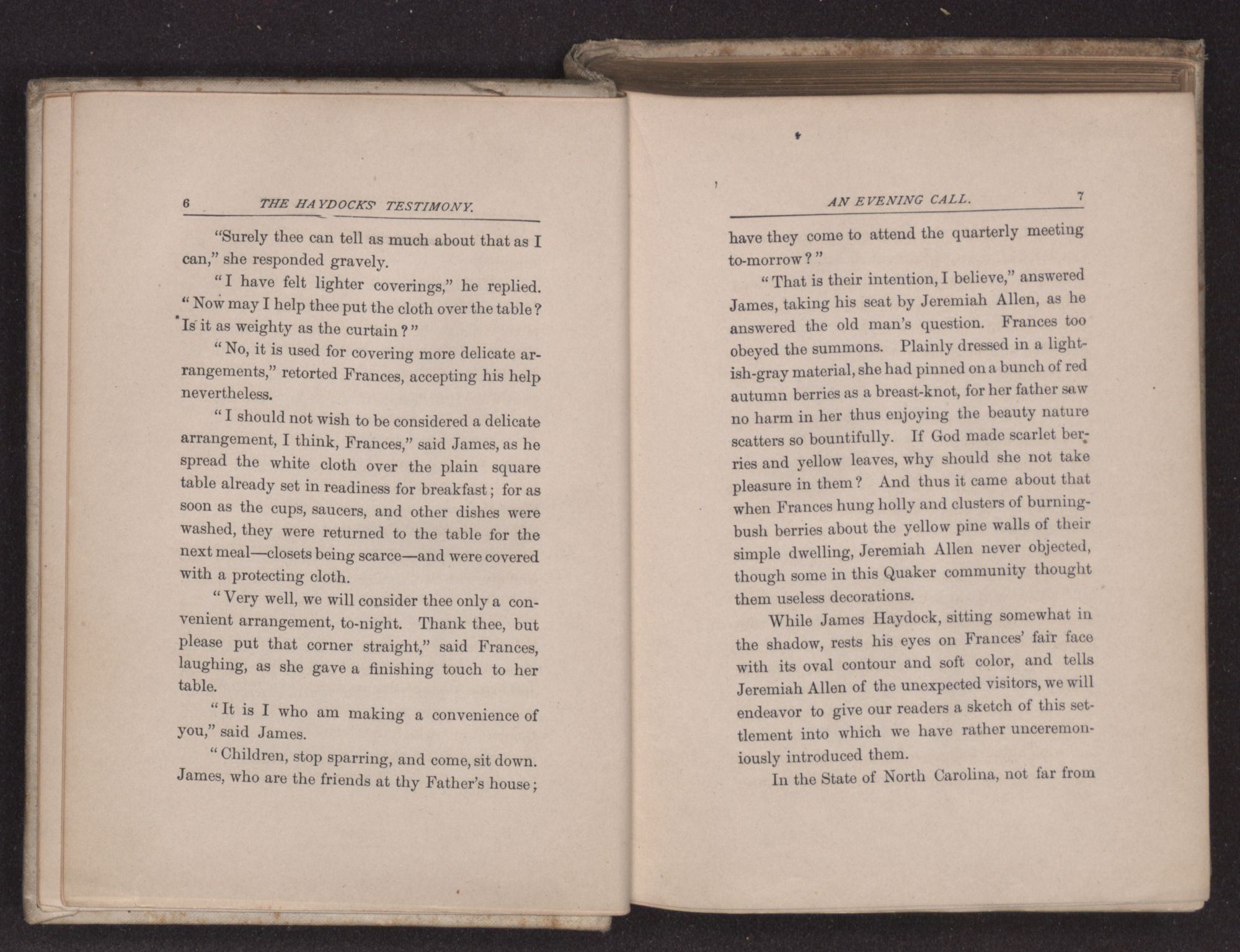 “I have felt lighter coverings,” he replied “Now may I help thee put the cloth over the table? Is it as weighty as the curtain?”