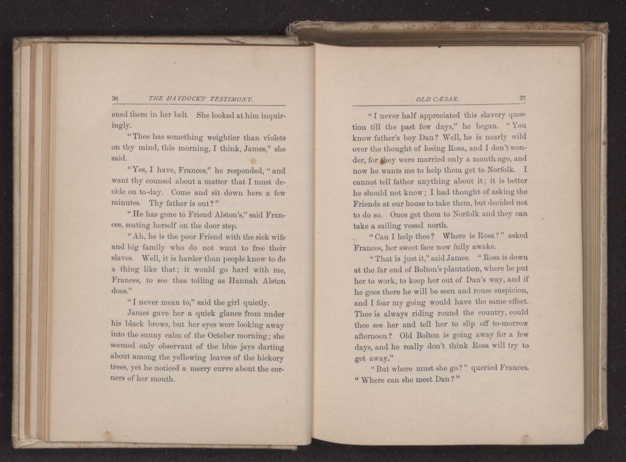“Thank thee, Rosco, the children and I were thinking of walking over this morning, it is such a beautiful day,” replied the Quakeress, rising from her green-cushioned rocking chair and laying aside the old volume from which she had been reading.