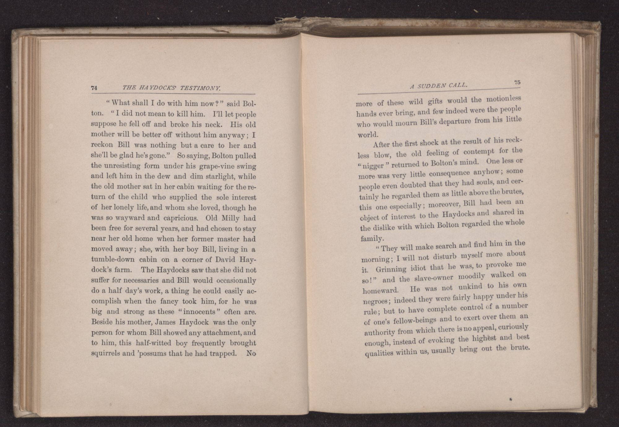 “Take your hand off Nero, he will stand,” said James, for the horse was impatiently shaking his head under the tightened rein. “See here, Dan, don't go to Bolton's to-morrow, keep round here and see me toward evening by the barn. I think I can help you get away.” The negro's mention of Jacob Pemberton had put an idea into