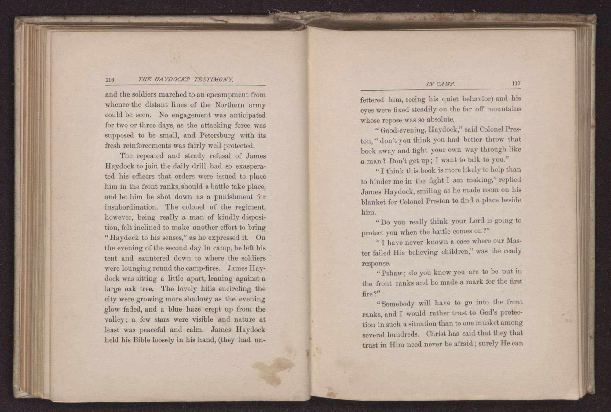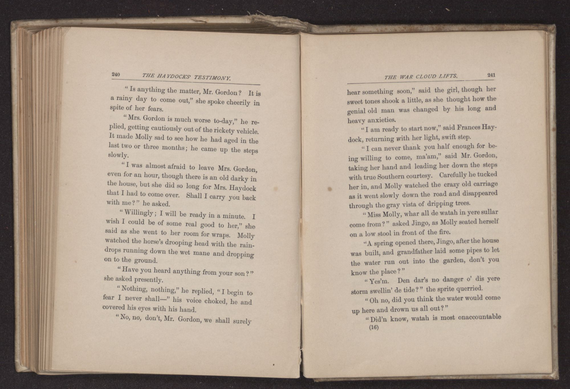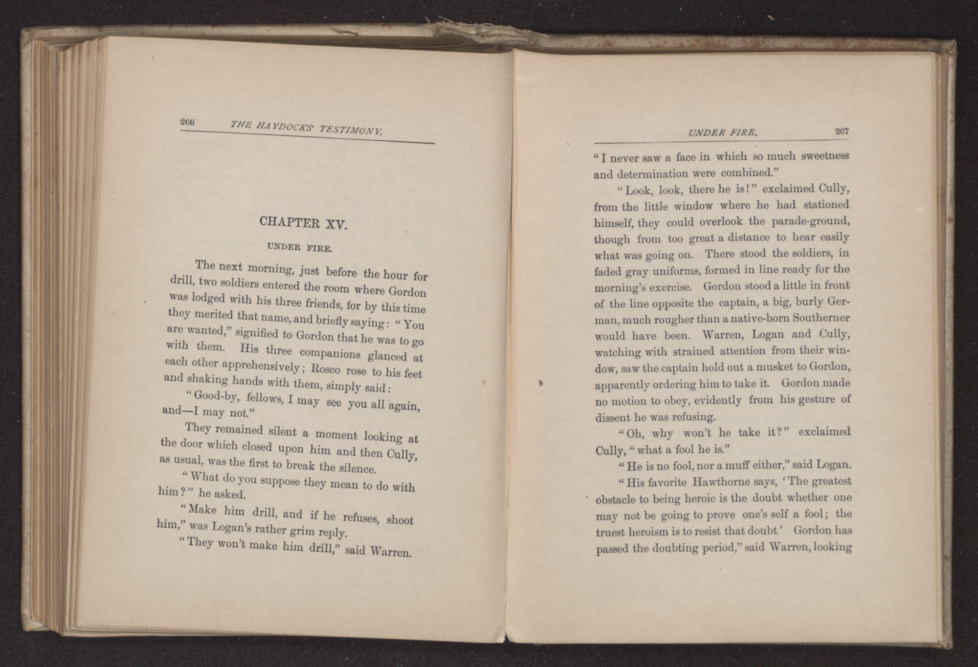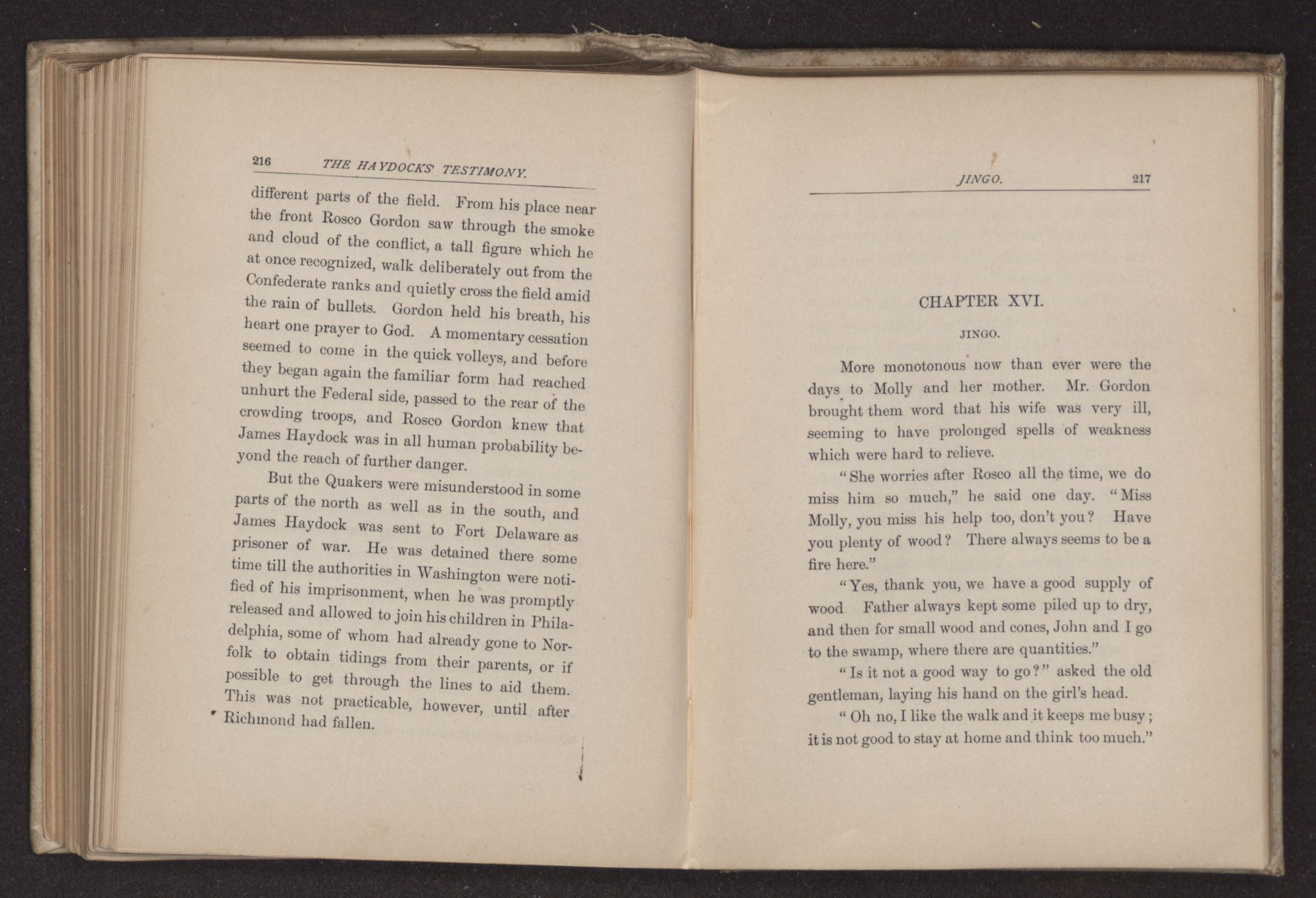 “You must have seen more actual warfare than I did, Mr. Haydock,” said Rosco Gordon, after tea, as he sat with the family on the front porch in the soft light of early evening.