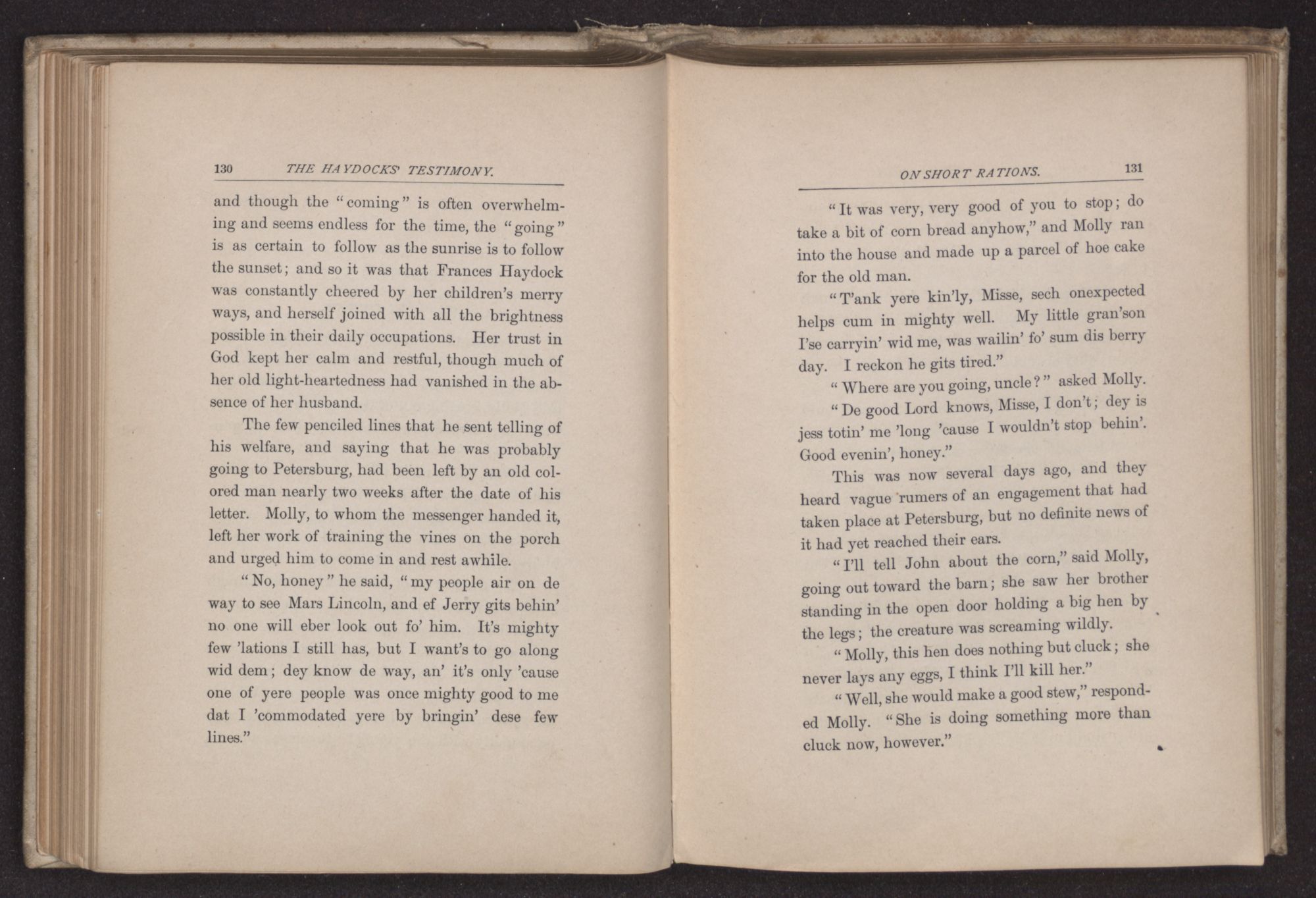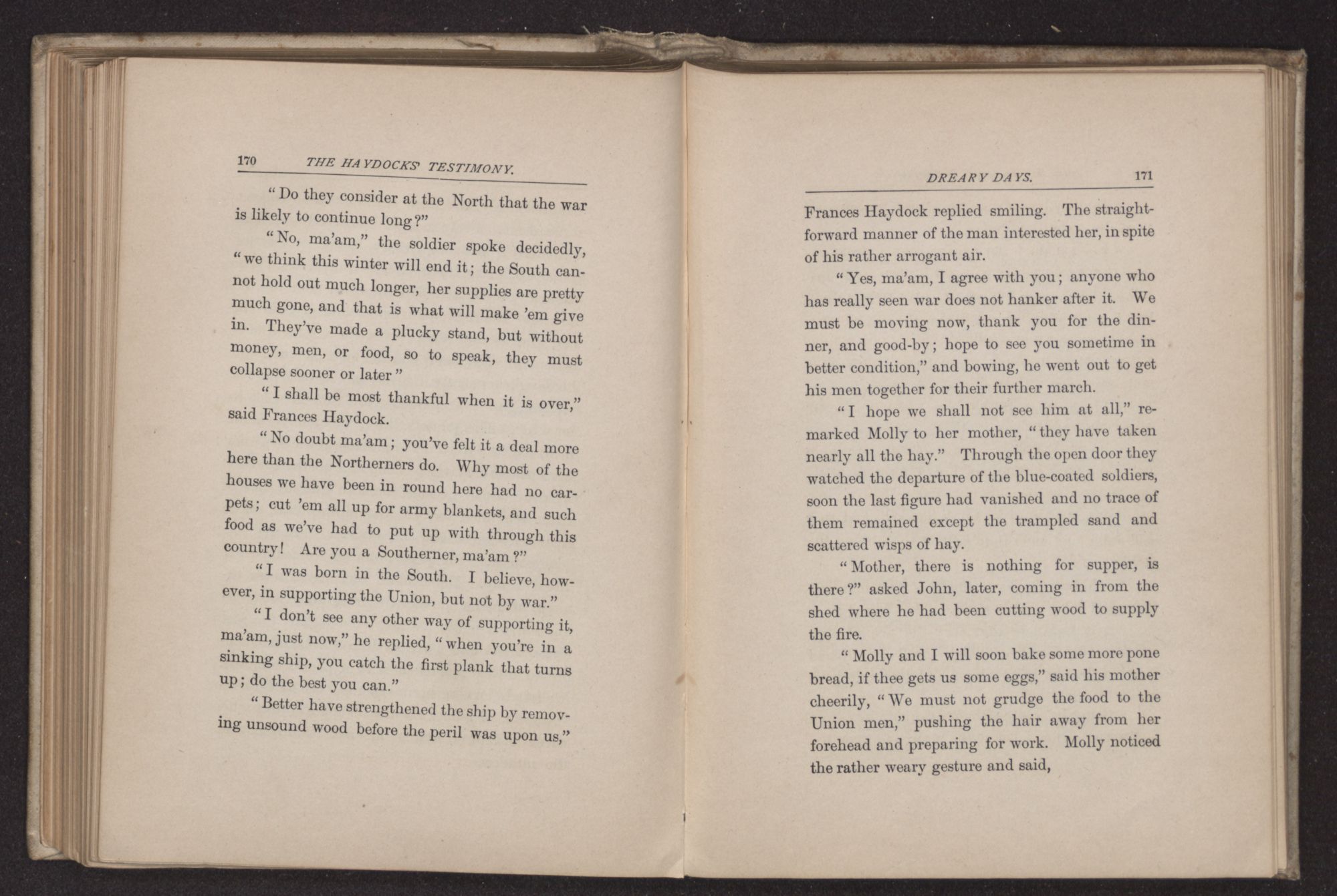 “Could he get through the lines as soon as the Southern army surrenders?” asked Molly.