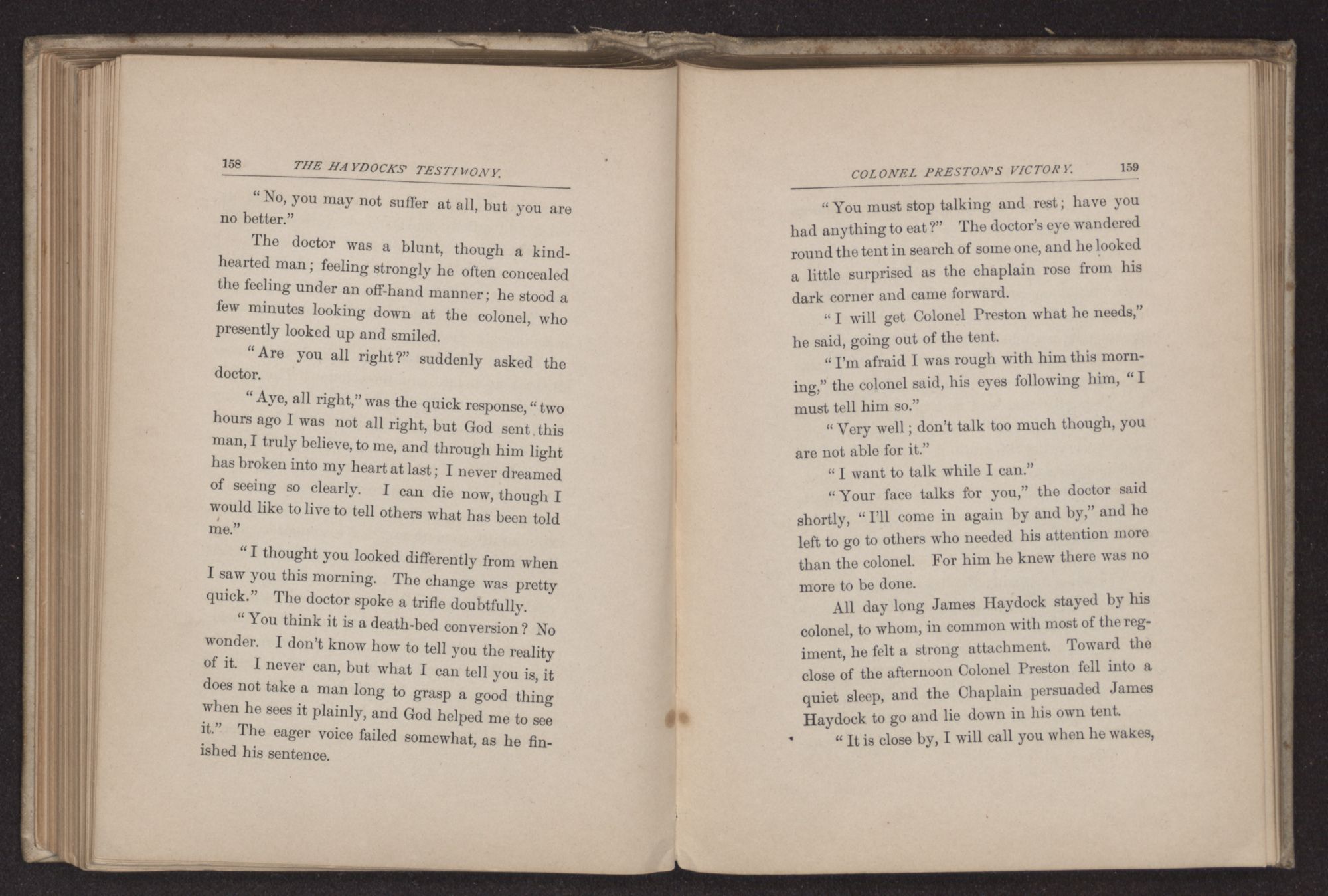 “Entirely,” said the older man, then after a pause he continued. “I helped to carry one young fellow to the hospital tent; he was bearing his suffering bravely, but his hands were clenched and his hair wet with perspiration. He asked the doctor if he could do nothing for him, and when told only death could relieve his pain, he turned