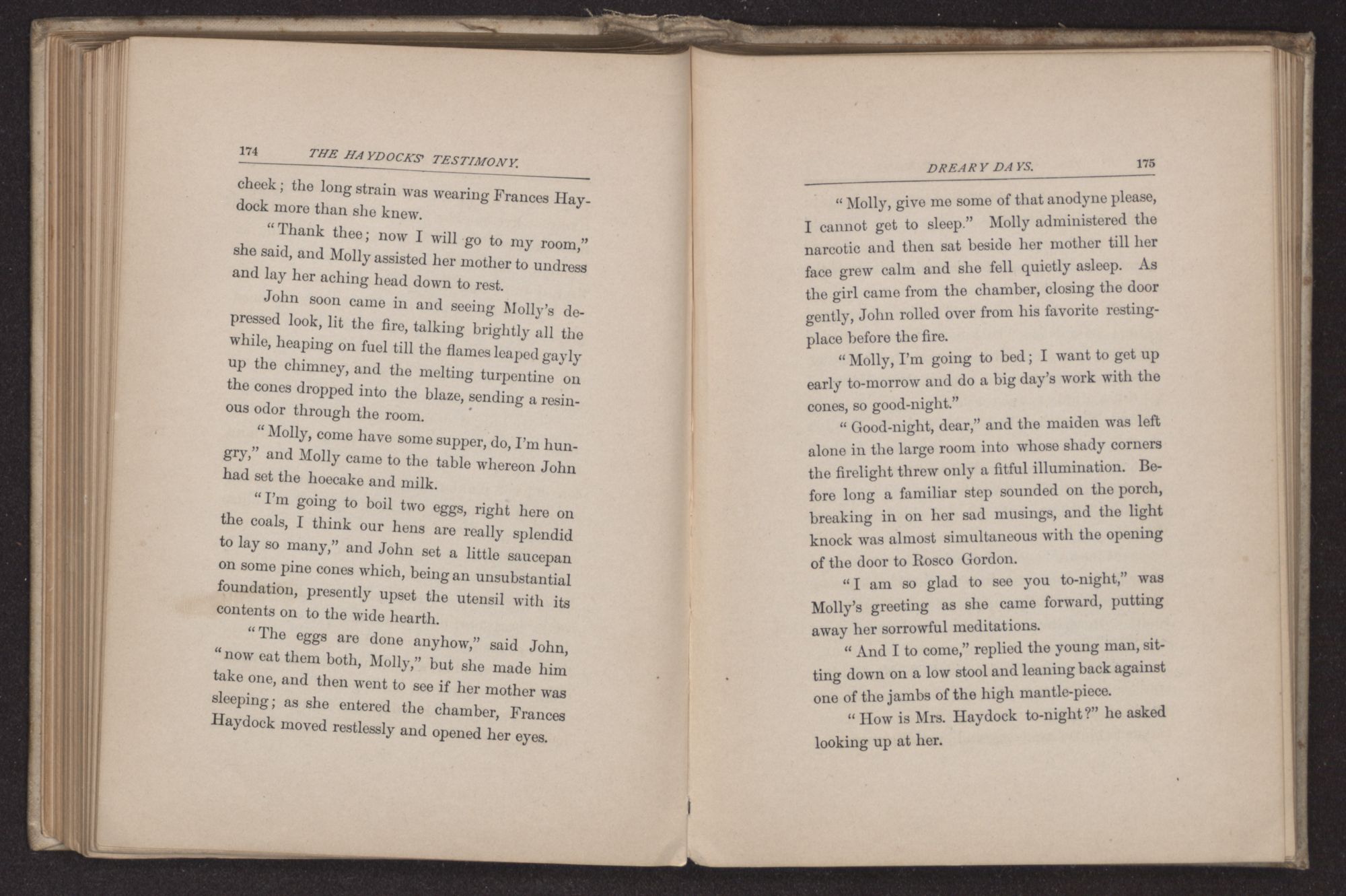 “I must go home, I think,” said Rosco, “mother will be wanting me, though she is wonderfully better. Good-night, Mrs. Haydock, I cannot tell you how glad I am to see Mr. Haydock back again.”