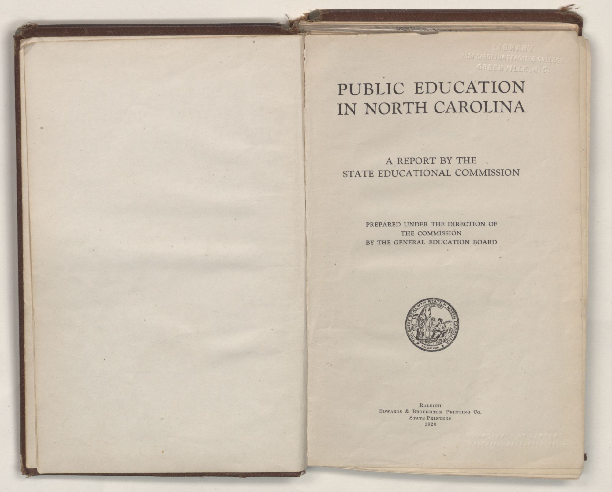 PUBLIC EDUCATION IN NORTH CAROLINAA REPORT BY THE STATE EDUCATIONAL COMMISSION PREPARED UNDER THE DIRECTION OF THE COMMISSION BY THE GENERAL EDUCATION BOARD THE GREAT SEAL OF THE STATE OF NORTH CAROLINA.