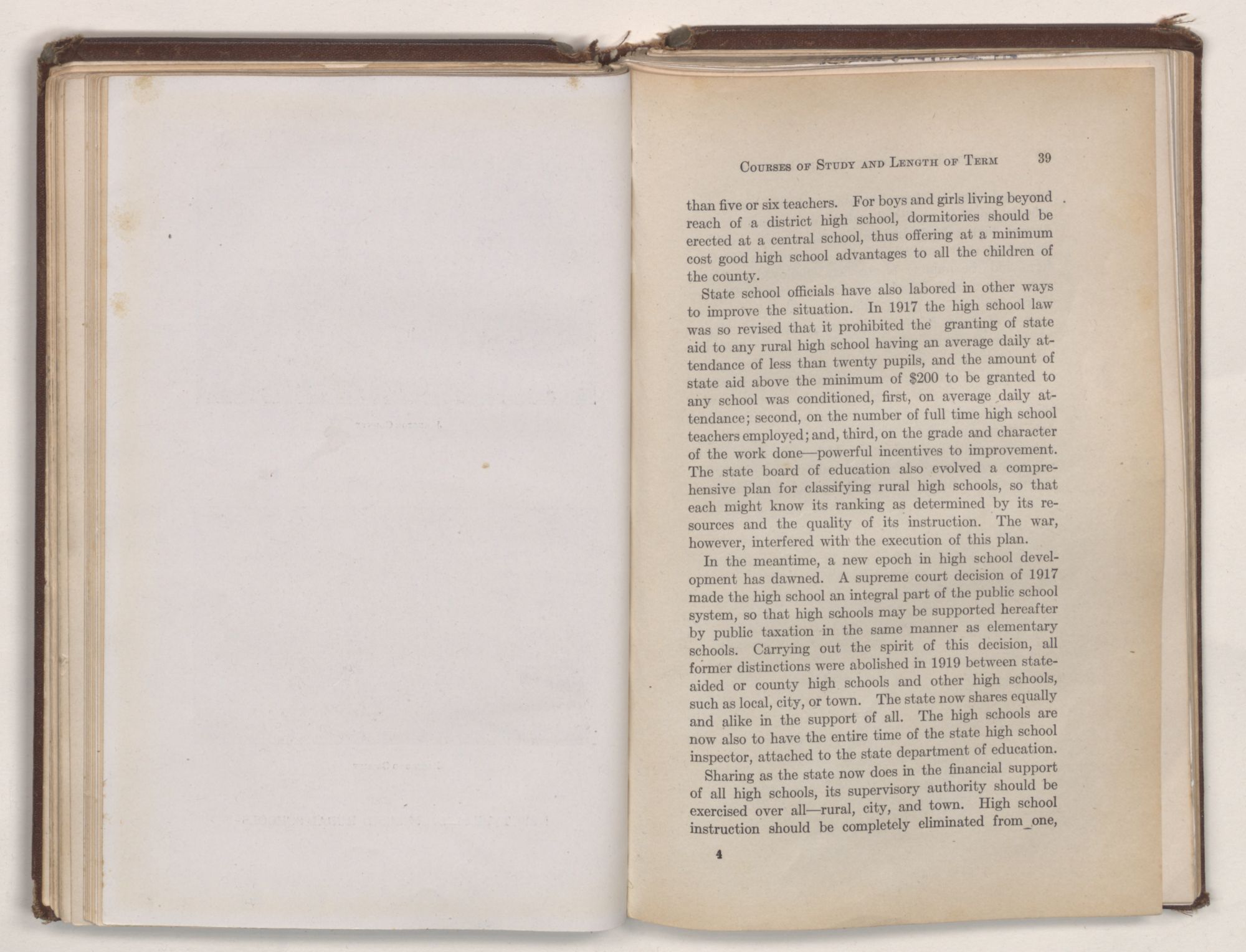 1 There were, in 1917-1918, 225 public high schools attempting four year courses, but only 104 of these at most could be called standard high schools.to prepare for teaching. Such other teacher training institutions as the state should maintain for the proper preparation of the remaining 1,600 white elementary teachers must for the present necessarily be of lower grade, that is, admit students who have had less than a standard four year high school course.