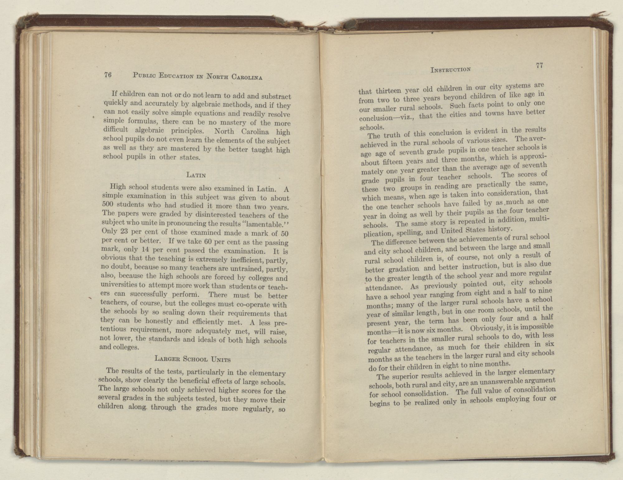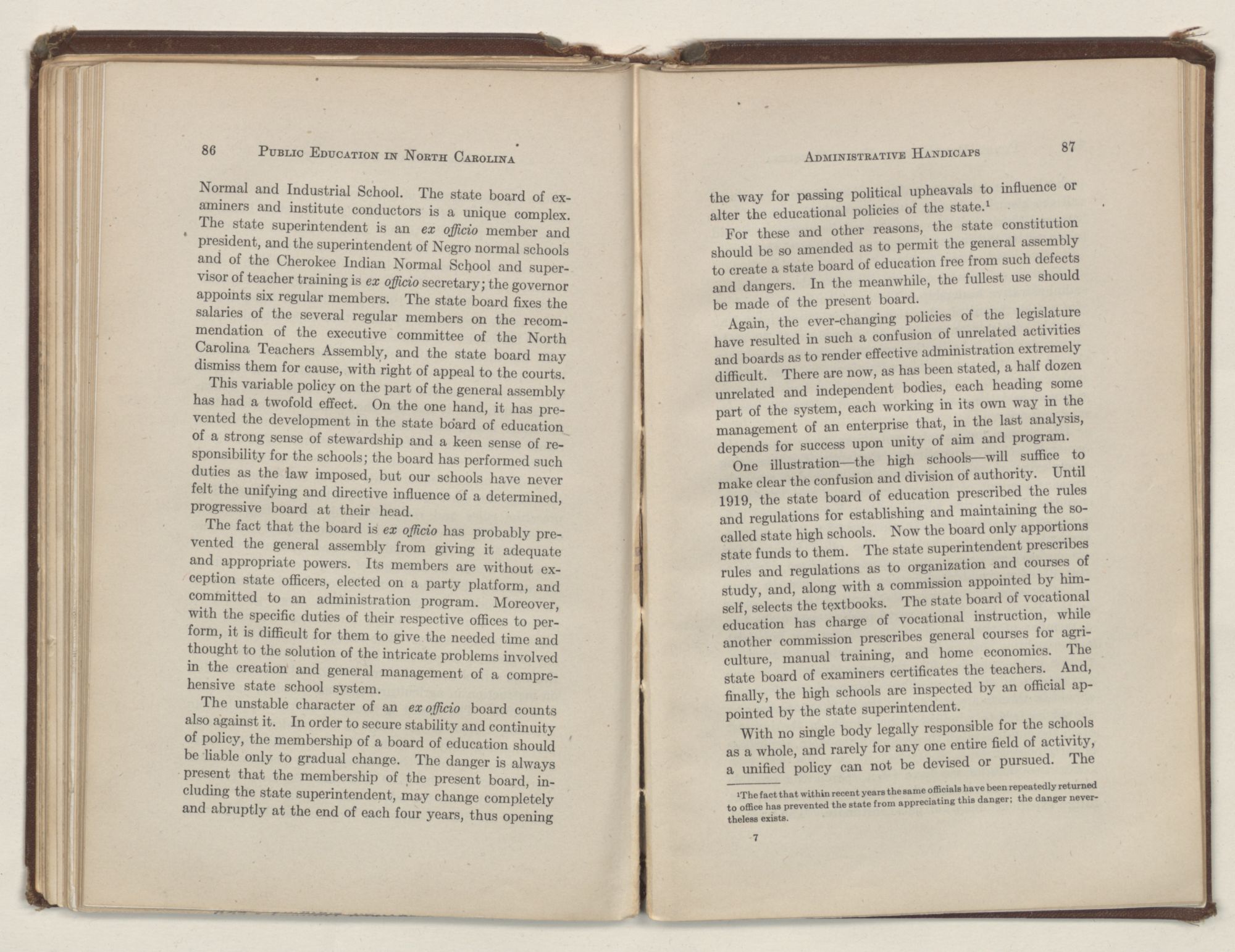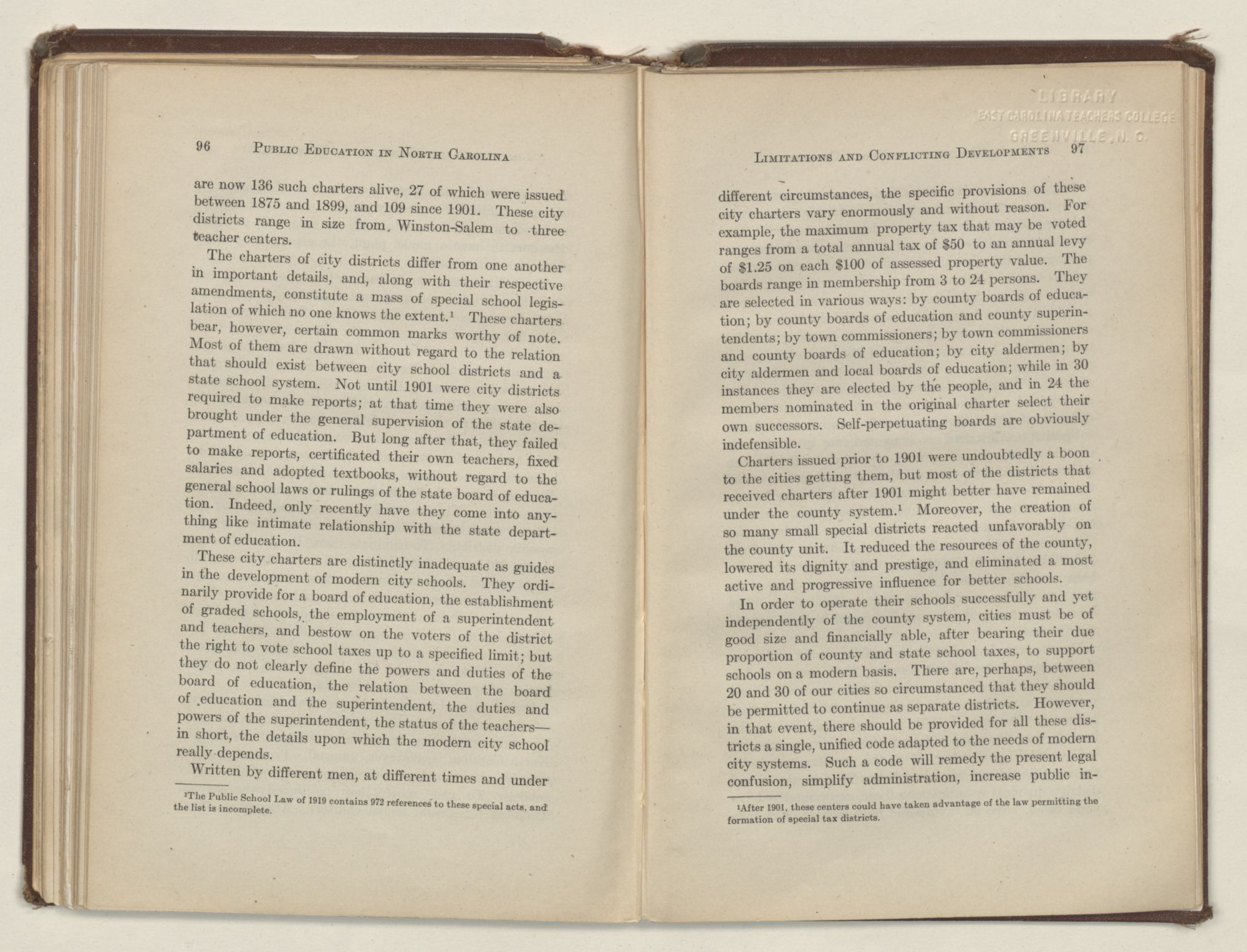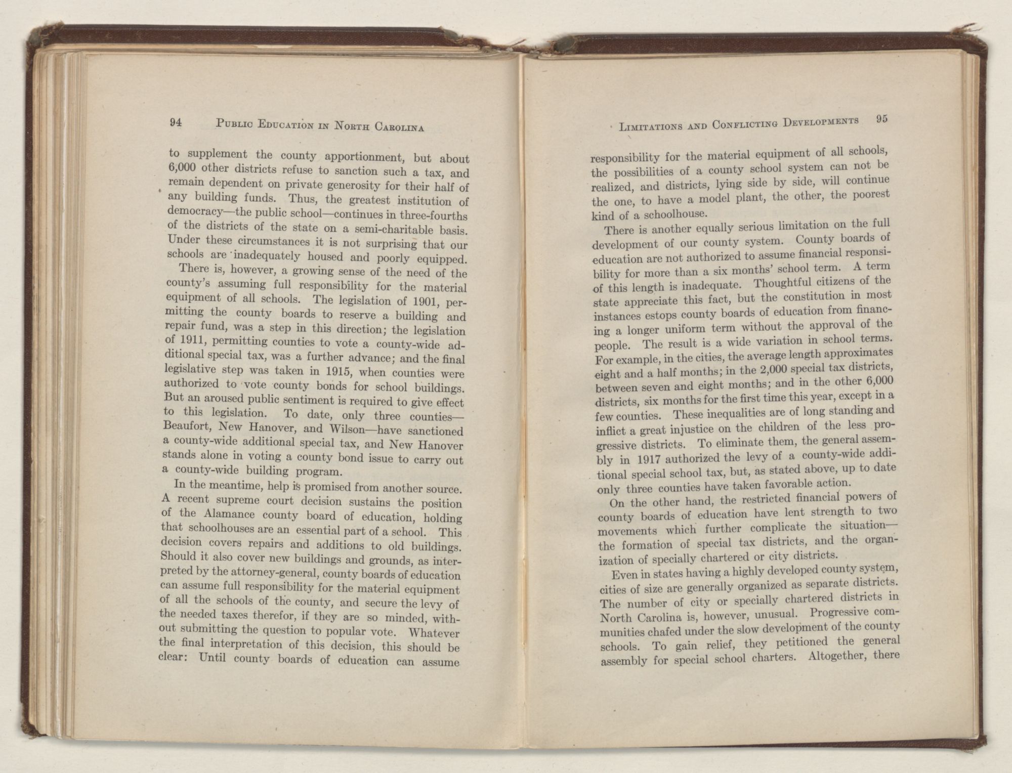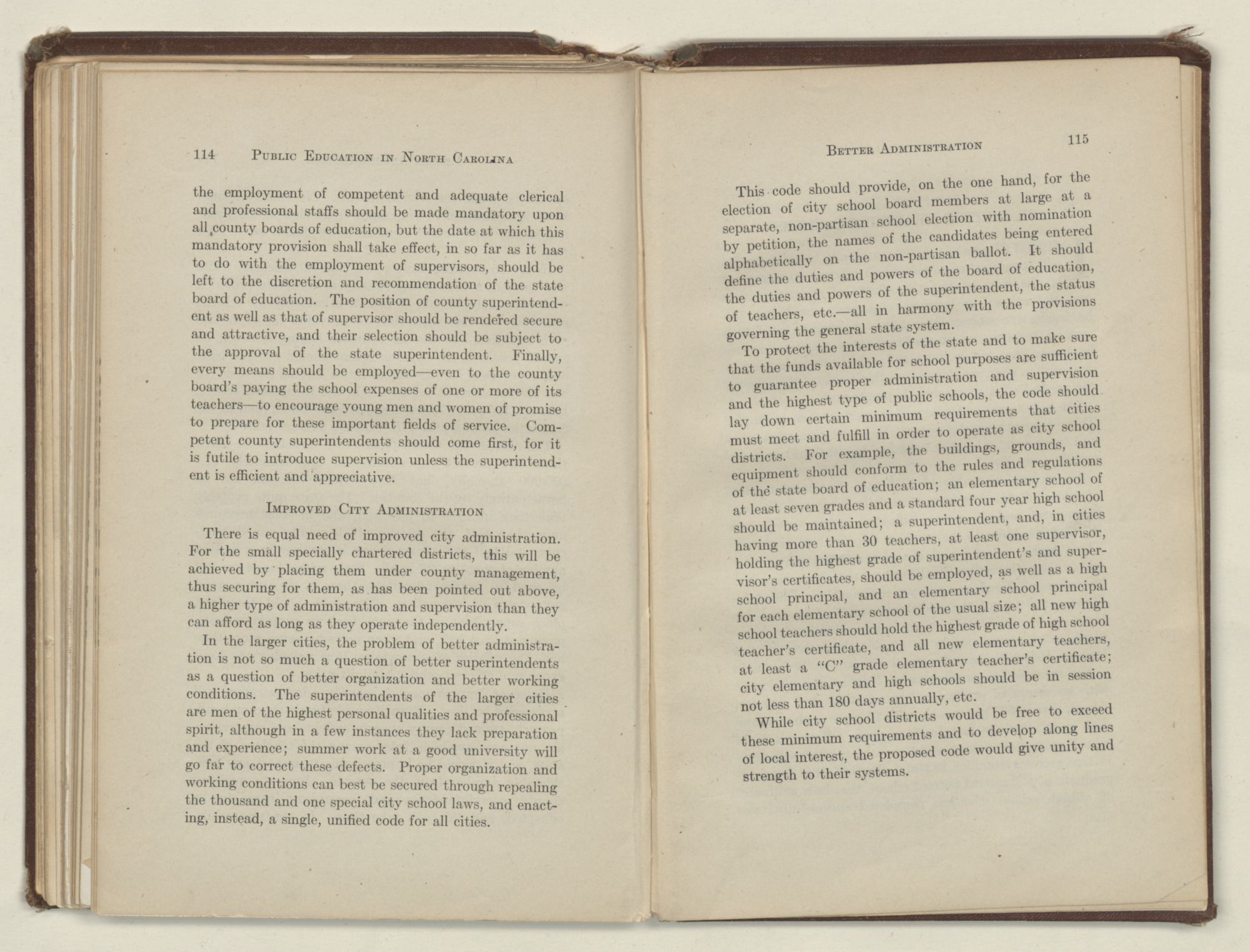 The State of North Carolina is a unit. In the long run what is best for the whole state will prove to have been best for its component parts. For many years, general state-wide improvement could hardly have been effected; separate steps had therefore to be taken—a step in advance here, another there. There has been so much special legislation that the state is, educationally, broken up in ways that practically prevent harmonious or uniform state-wide progress. In consequence, our present conditions are irregular and at times unfair. The time has come when, without unduly disturbing what has been anywhere accomplished, conditions should be established which will make it possible not only for progressive communities to advance still further, but for backward communities to join them at the front. Are the people of North Carolina so in earnest that a combined movement of this kind is practicable?