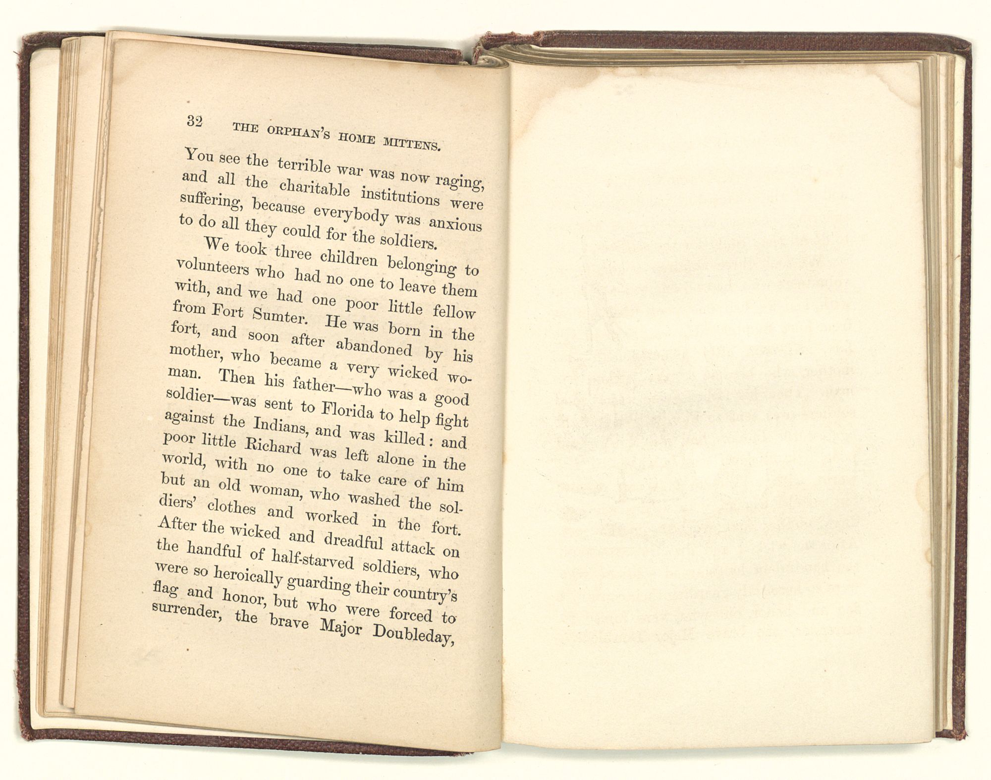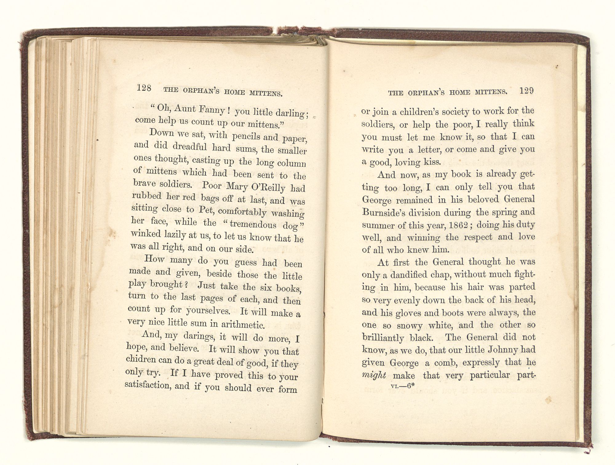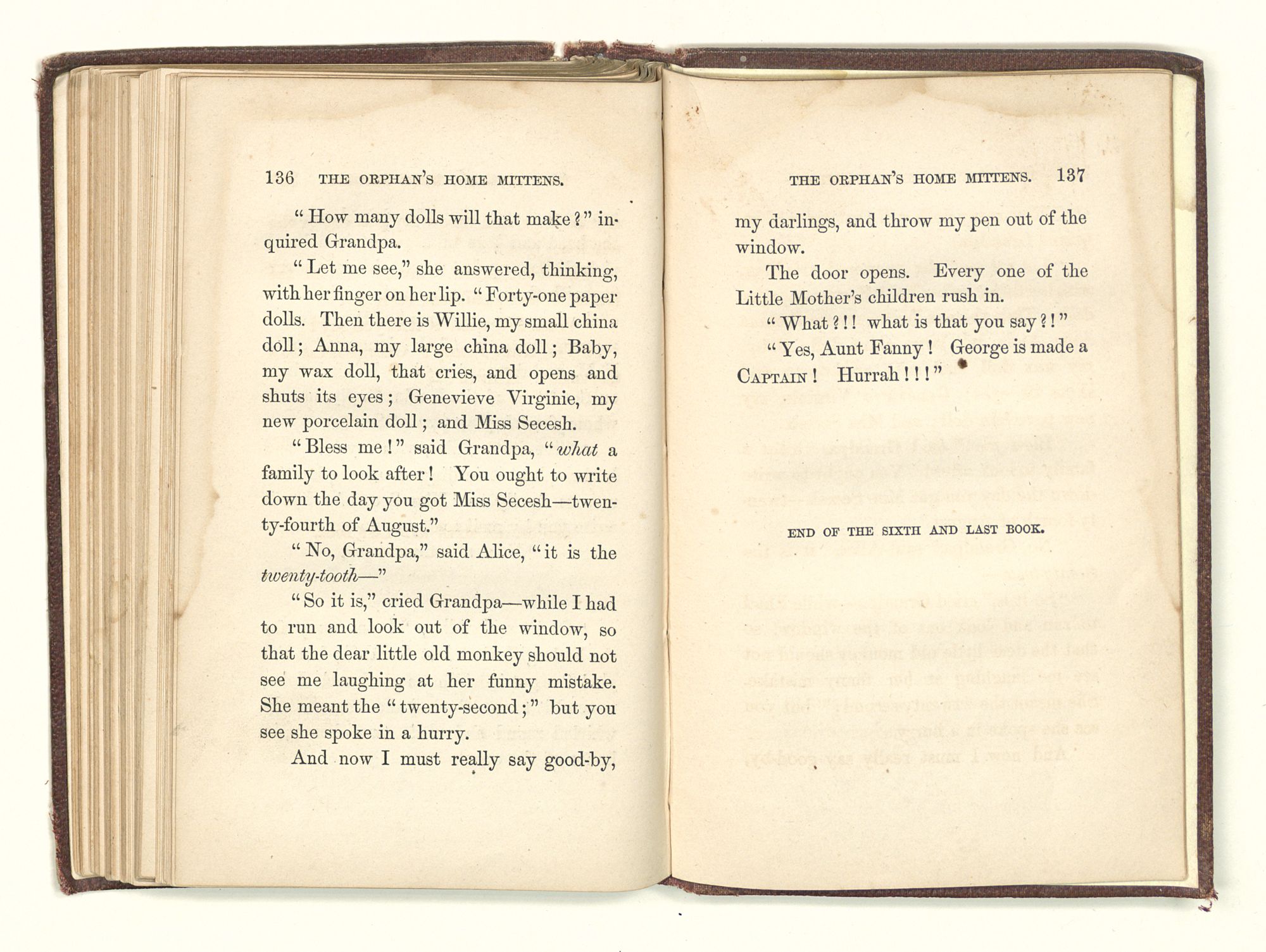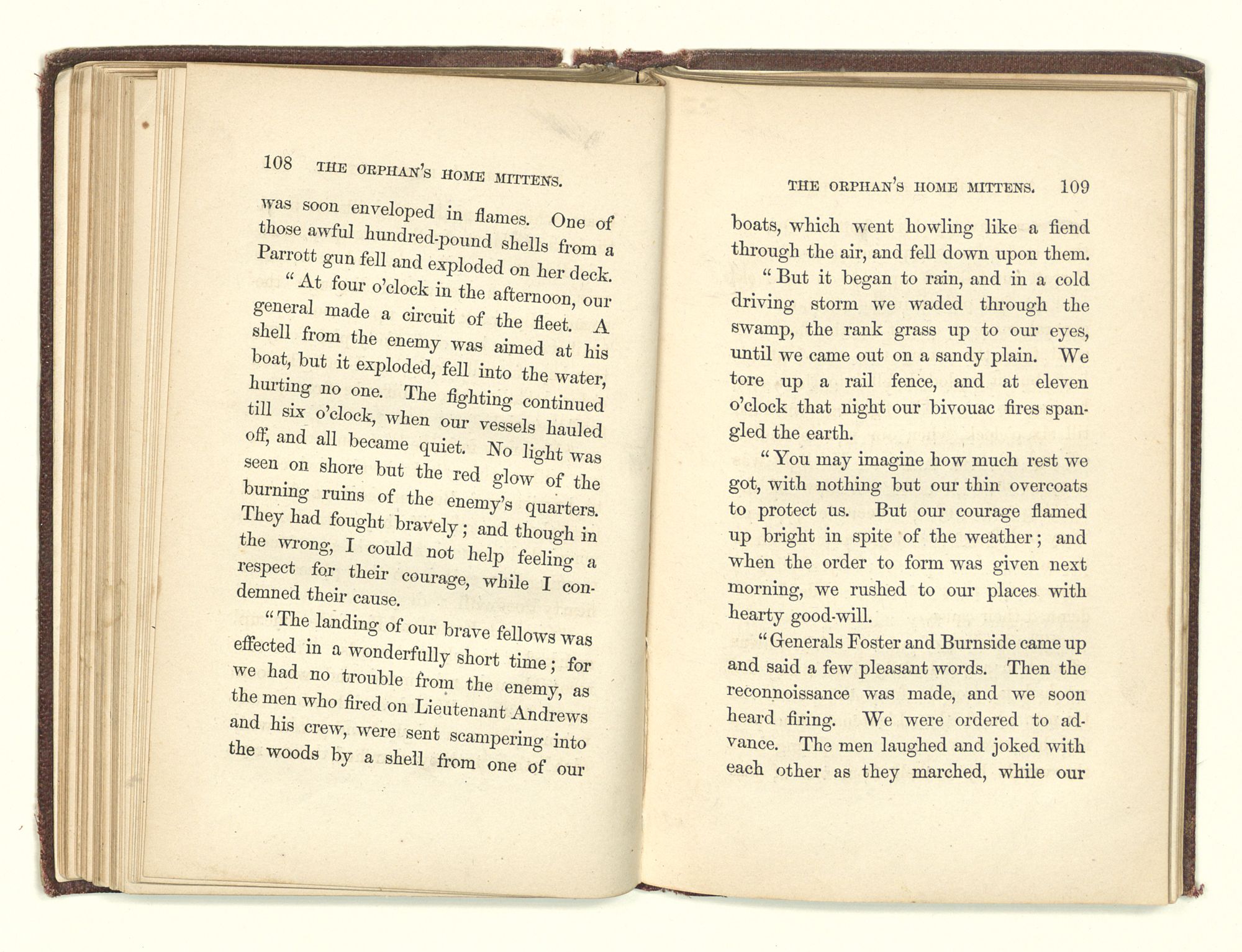 THE ORPHAN'S HOME MITTENS; AND GEORGE'S ACCOUNT OF THE BATTLE OF ROANOKE ISLAND. BEING THE SIXTH AND LAST BOOK OF THE SERIES.BYAUNT FANNY,AUTHOR OF THE SIX NIGHTCAP BOOKS, ETC.NEW YORK:D. APPLETON AND COMPANY,443 & 445 BROADWAY.LONDON: 16 LITTLE BRITAIN.1864