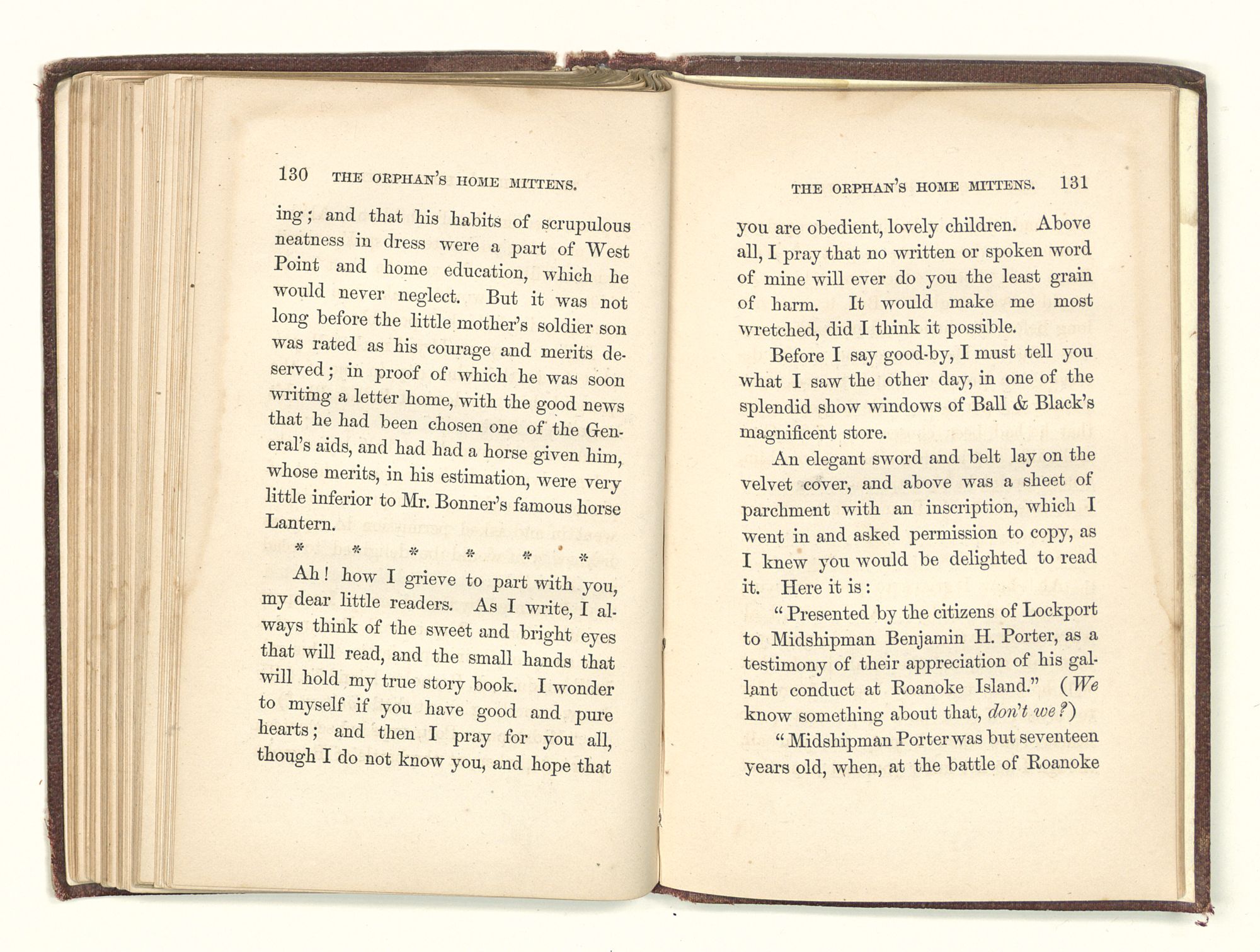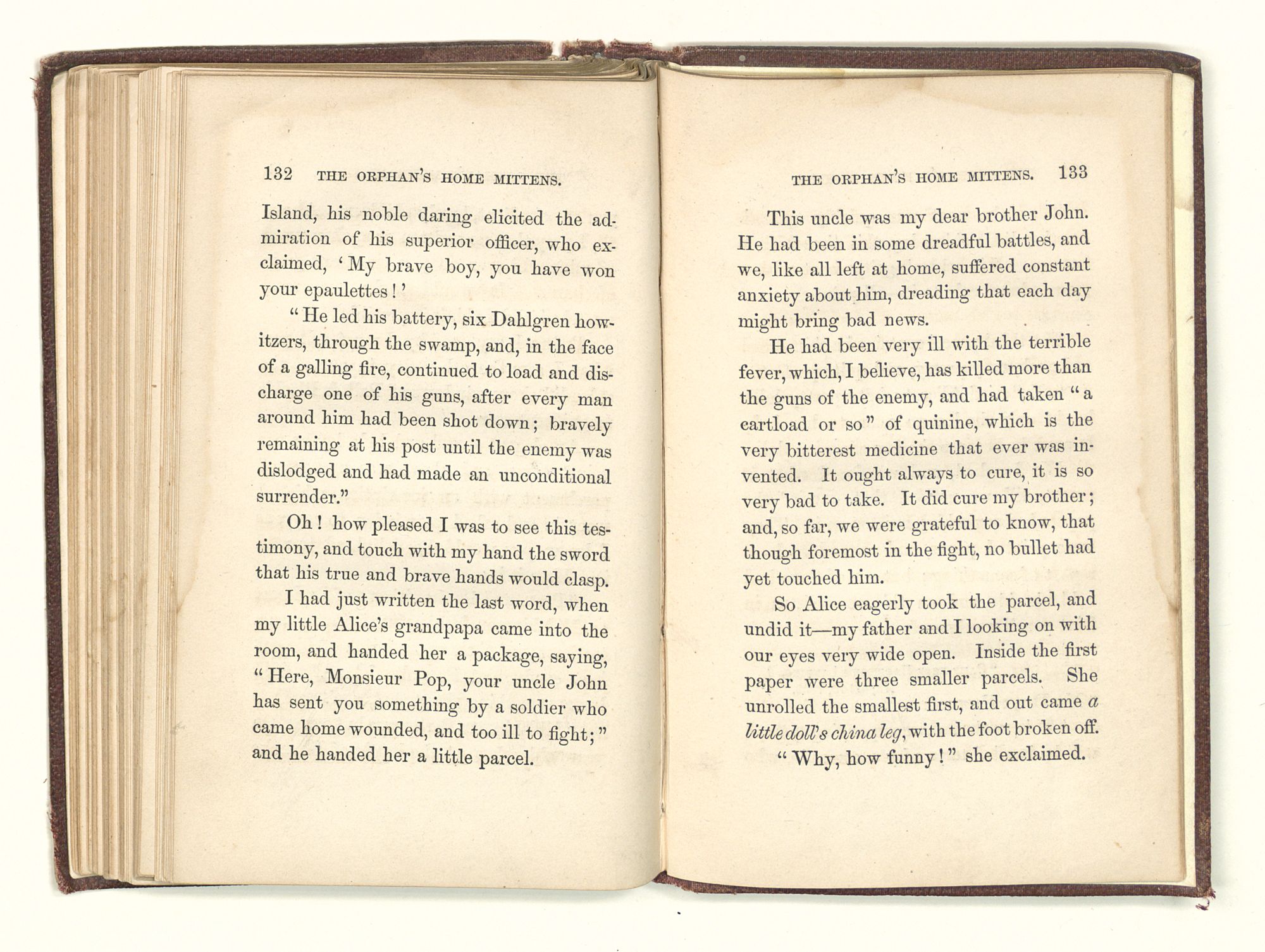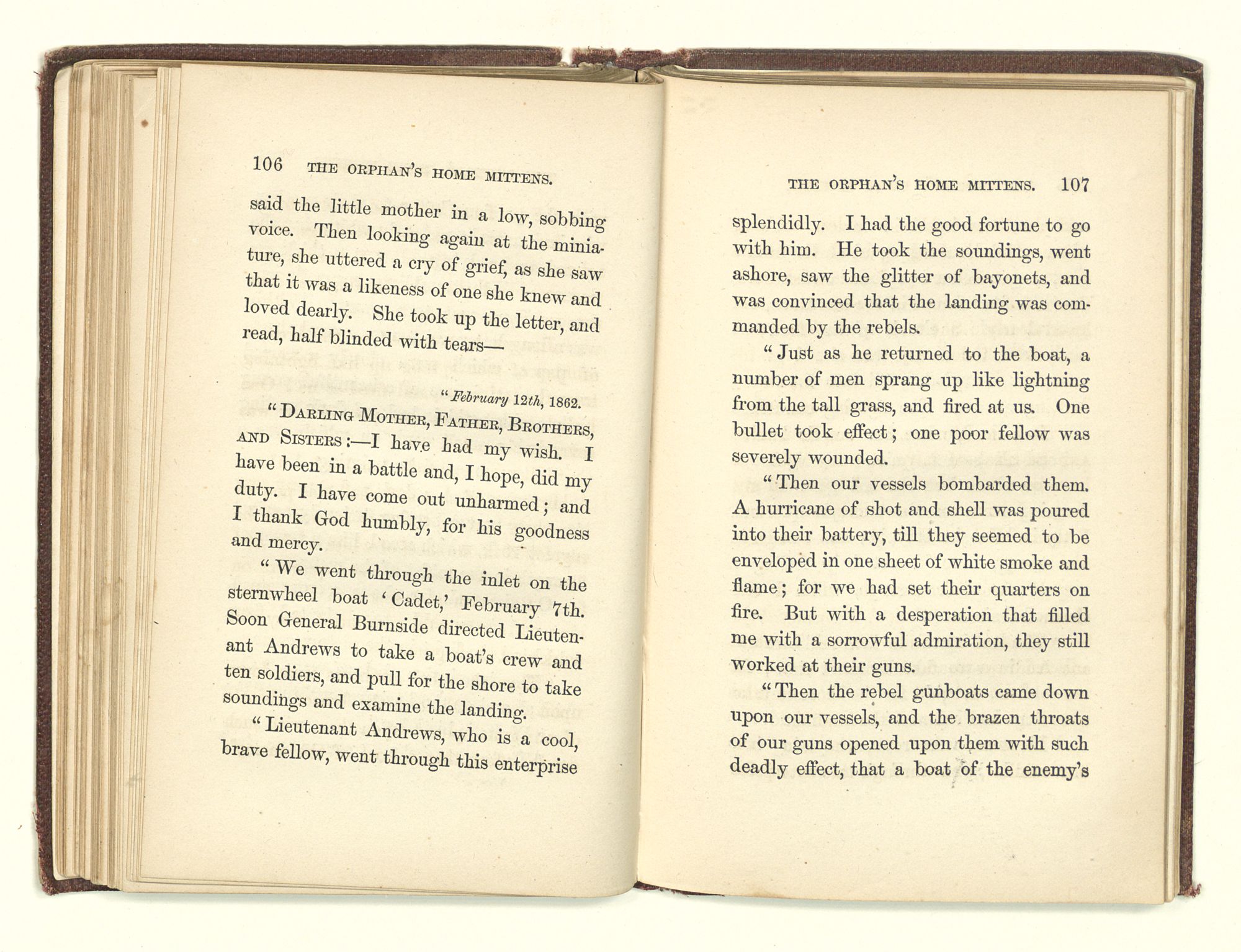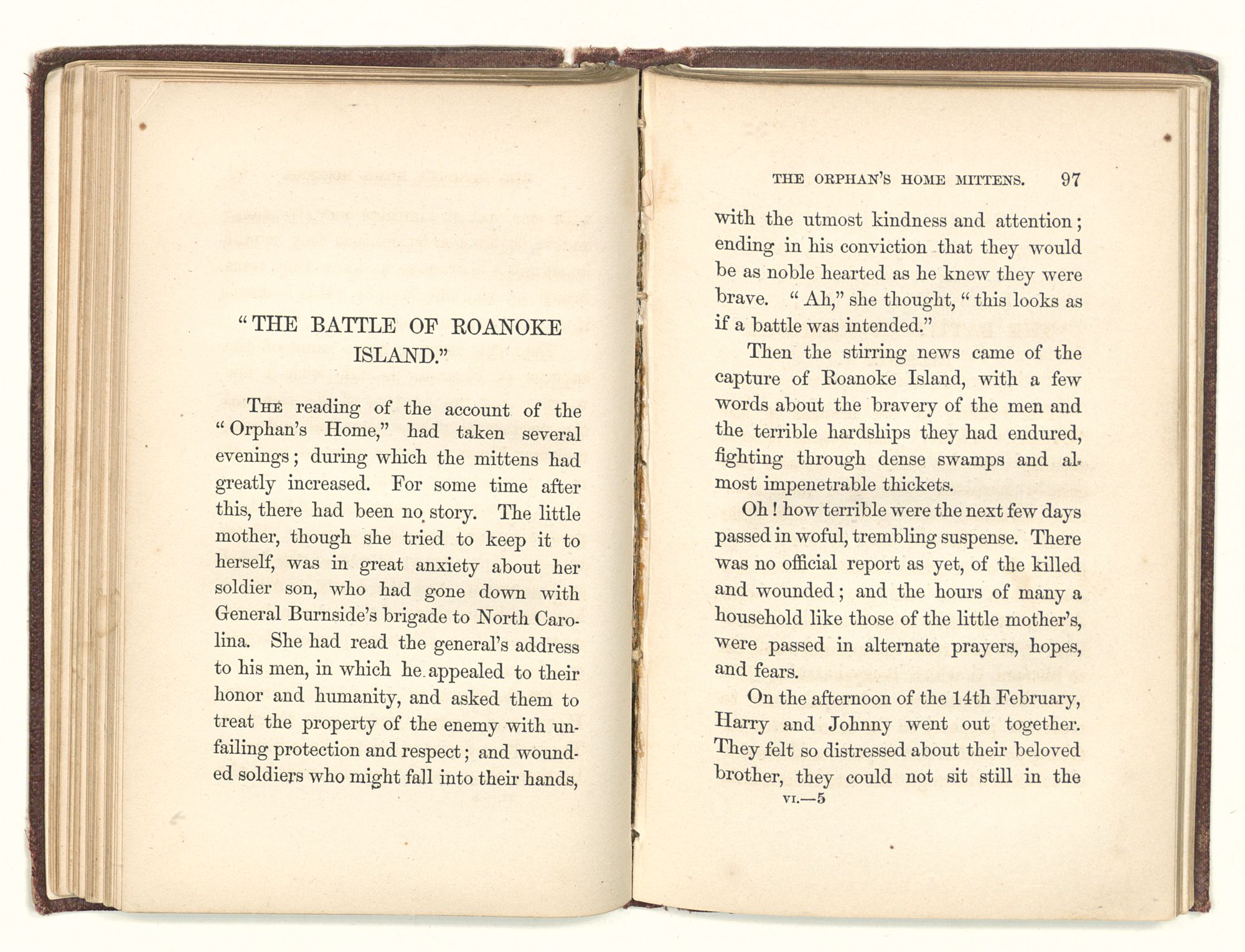 THE ORPHAN'S HOME MITTENS; AND GEORGE'S ACCOUNT OF THE BATTLE OF ROANOKE ISLAND. BEING THE SIXTH AND LAST BOOK OF THE SERIES.BYAUNT FANNY,AUTHOR OF THE SIX NIGHTCAP BOOKS, ETC.NEW YORK:D. APPLETON AND COMPANY,443 & 445 BROADWAY.LONDON: 16 LITTLE BRITAIN.1864