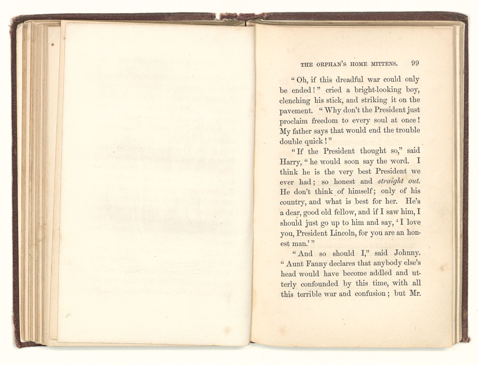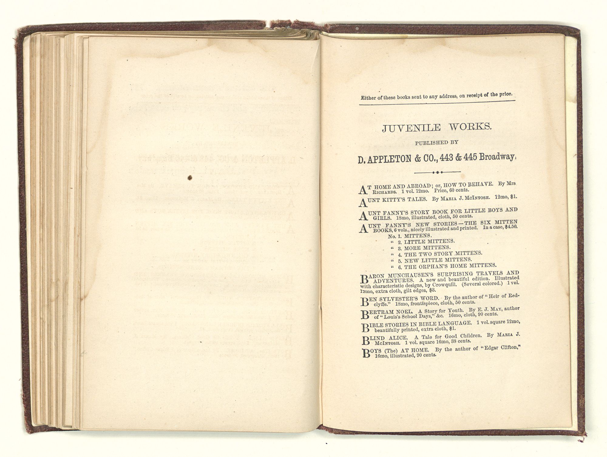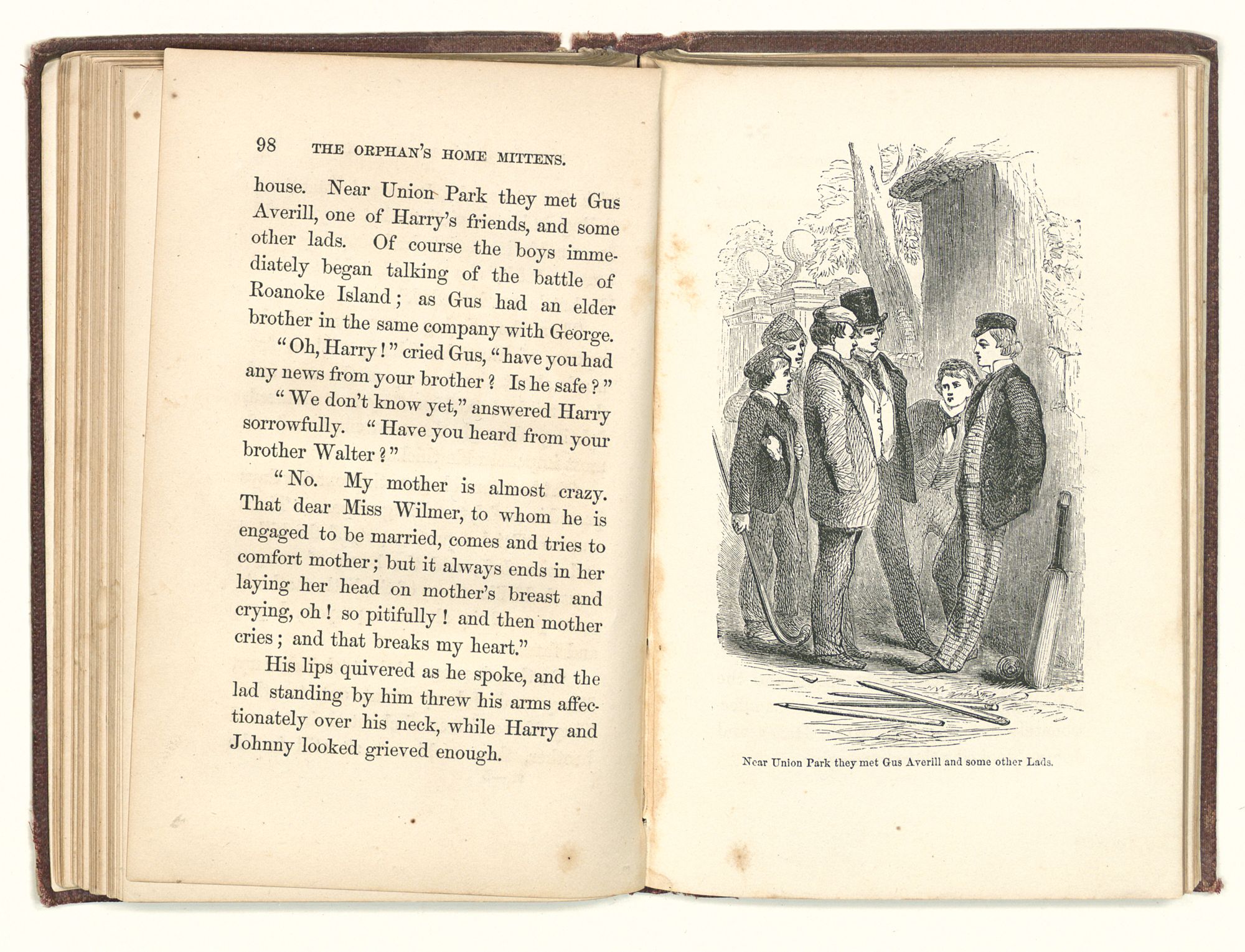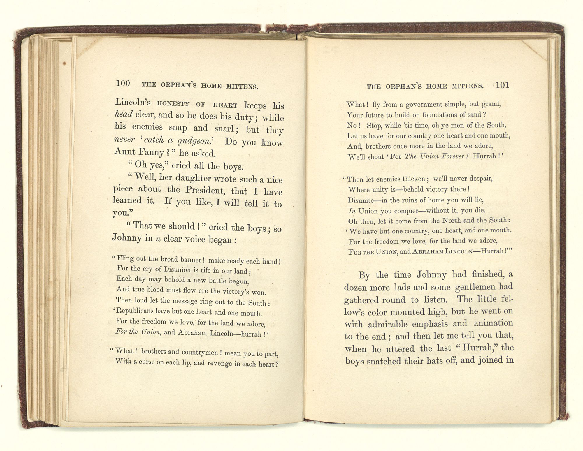 THE ORPHAN'S HOME MITTENS; AND GEORGE'S ACCOUNT OF THE BATTLE OF ROANOKE ISLAND. BEING THE SIXTH AND LAST BOOK OF THE SERIES.BYAUNT FANNY,AUTHOR OF THE SIX NIGHTCAP BOOKS, ETC.NEW YORK:D. APPLETON AND COMPANY,443 & 445 BROADWAY.LONDON: 16 LITTLE BRITAIN.1864