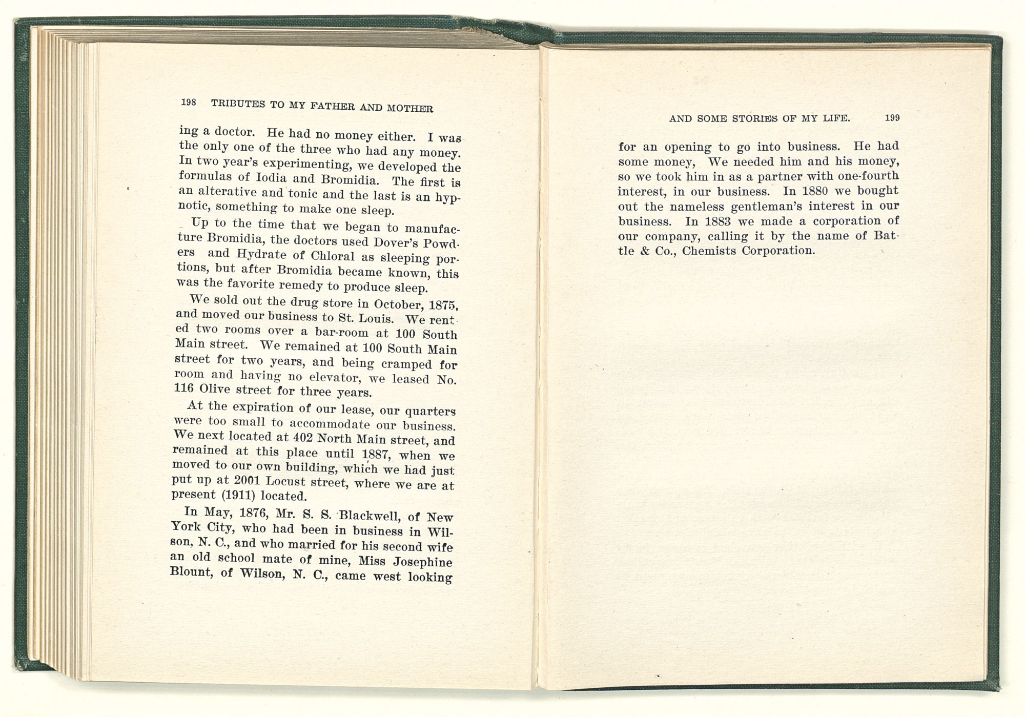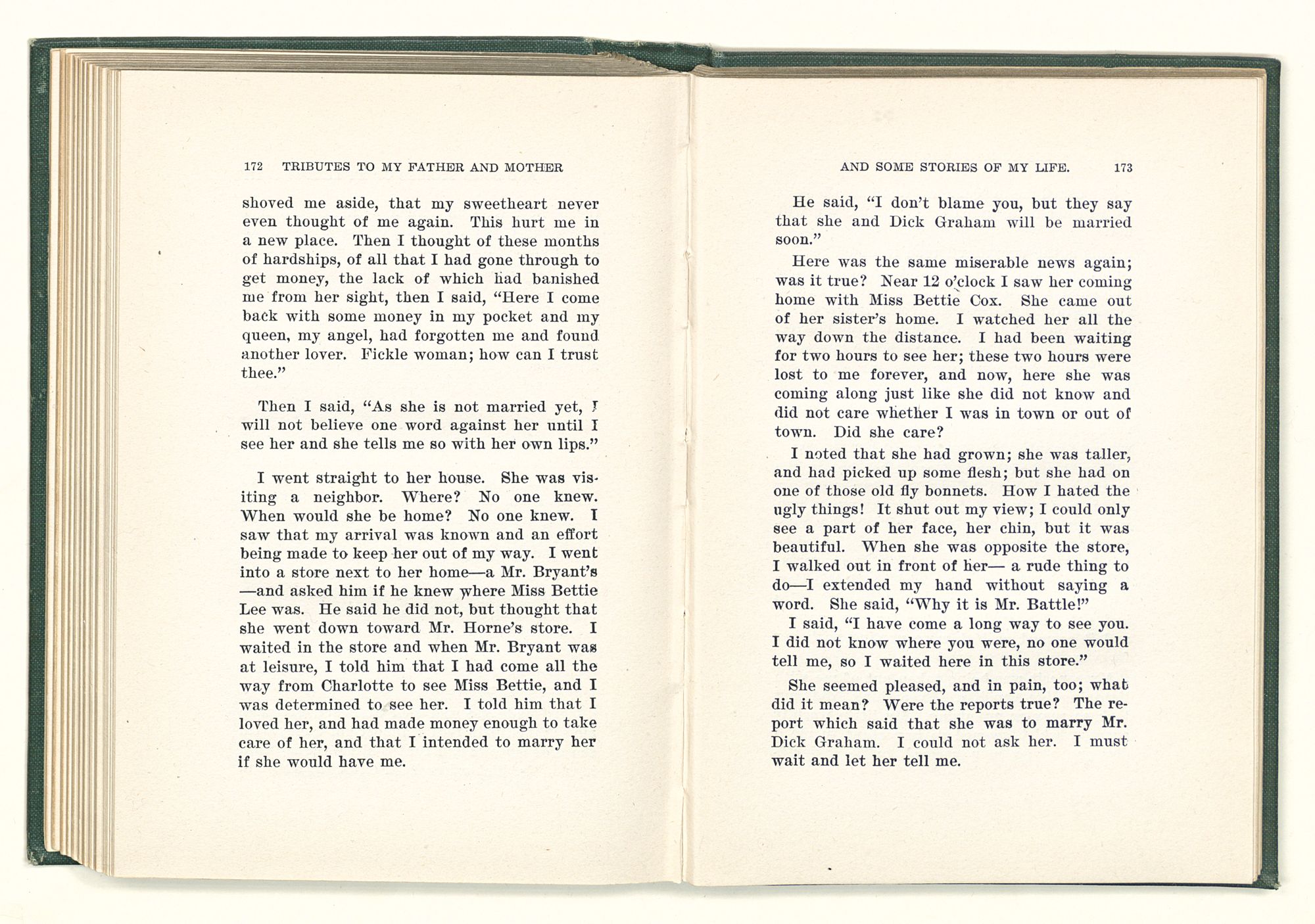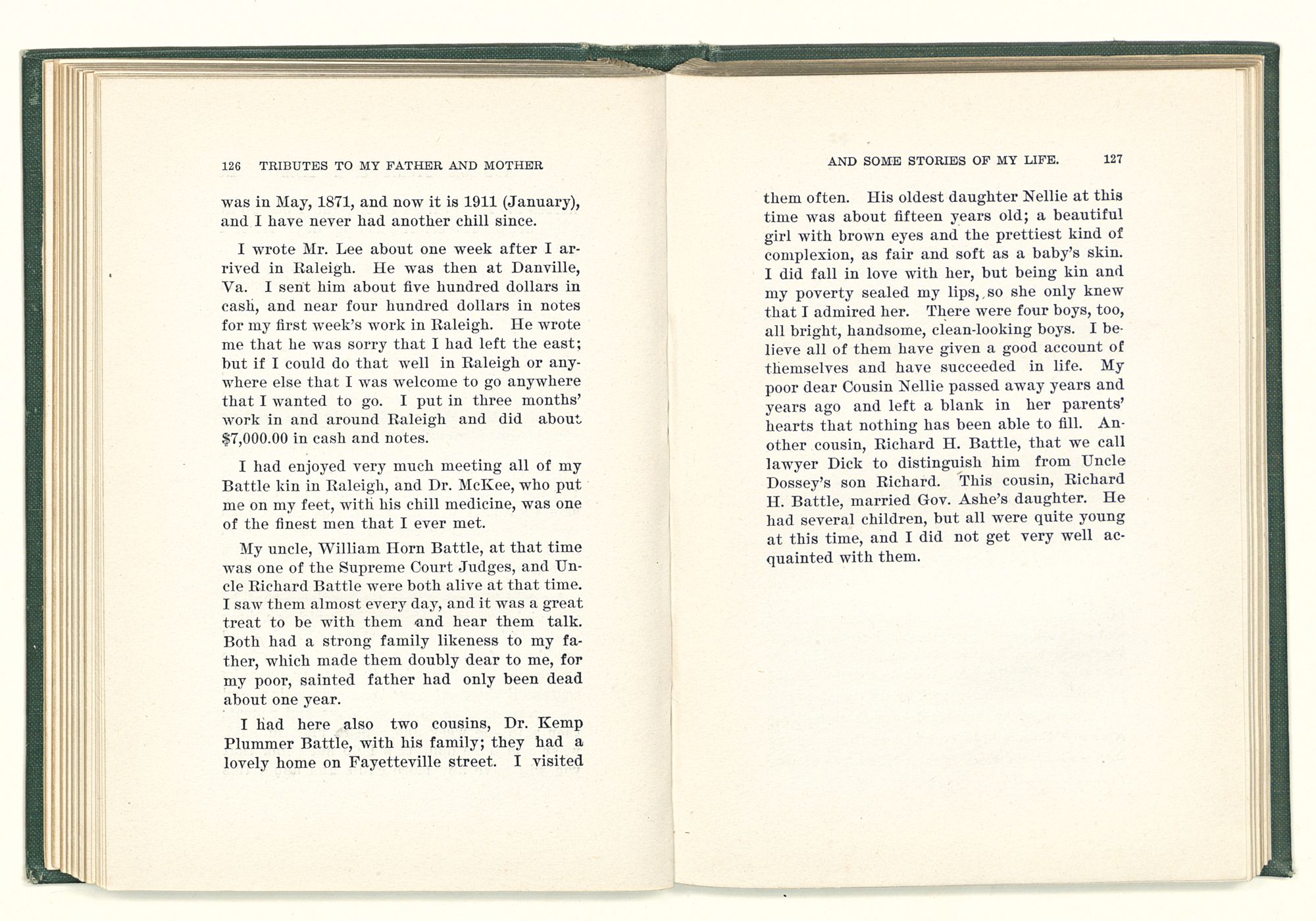 Tributes to my father and mother and some stories of my life / Jesse Mercer Battle. St. Louis, Mo. Mangan Press, 1911. 230 p. ;20 cm.
