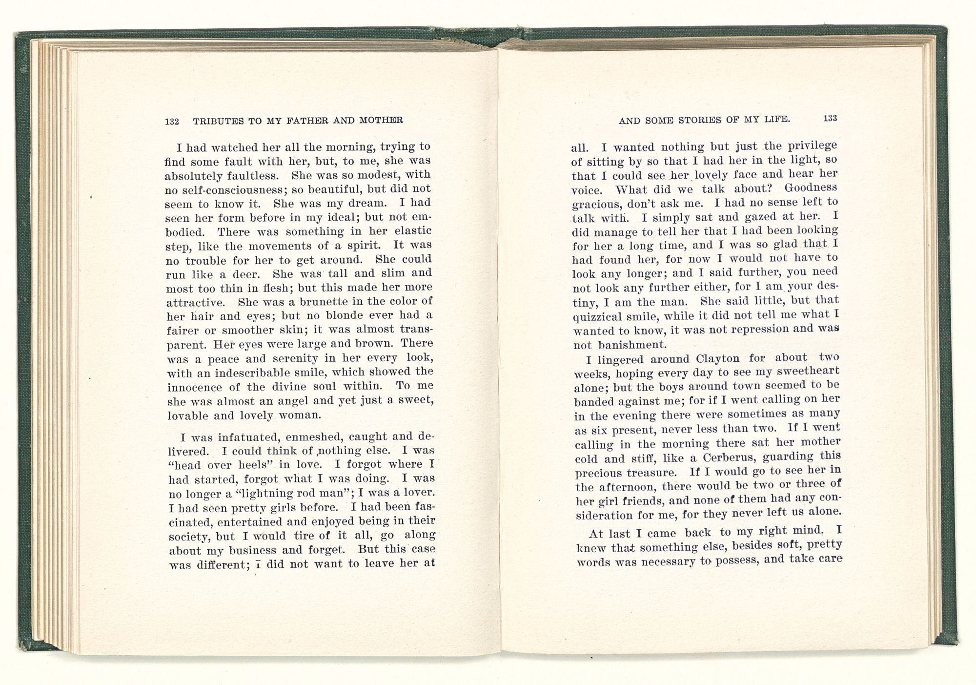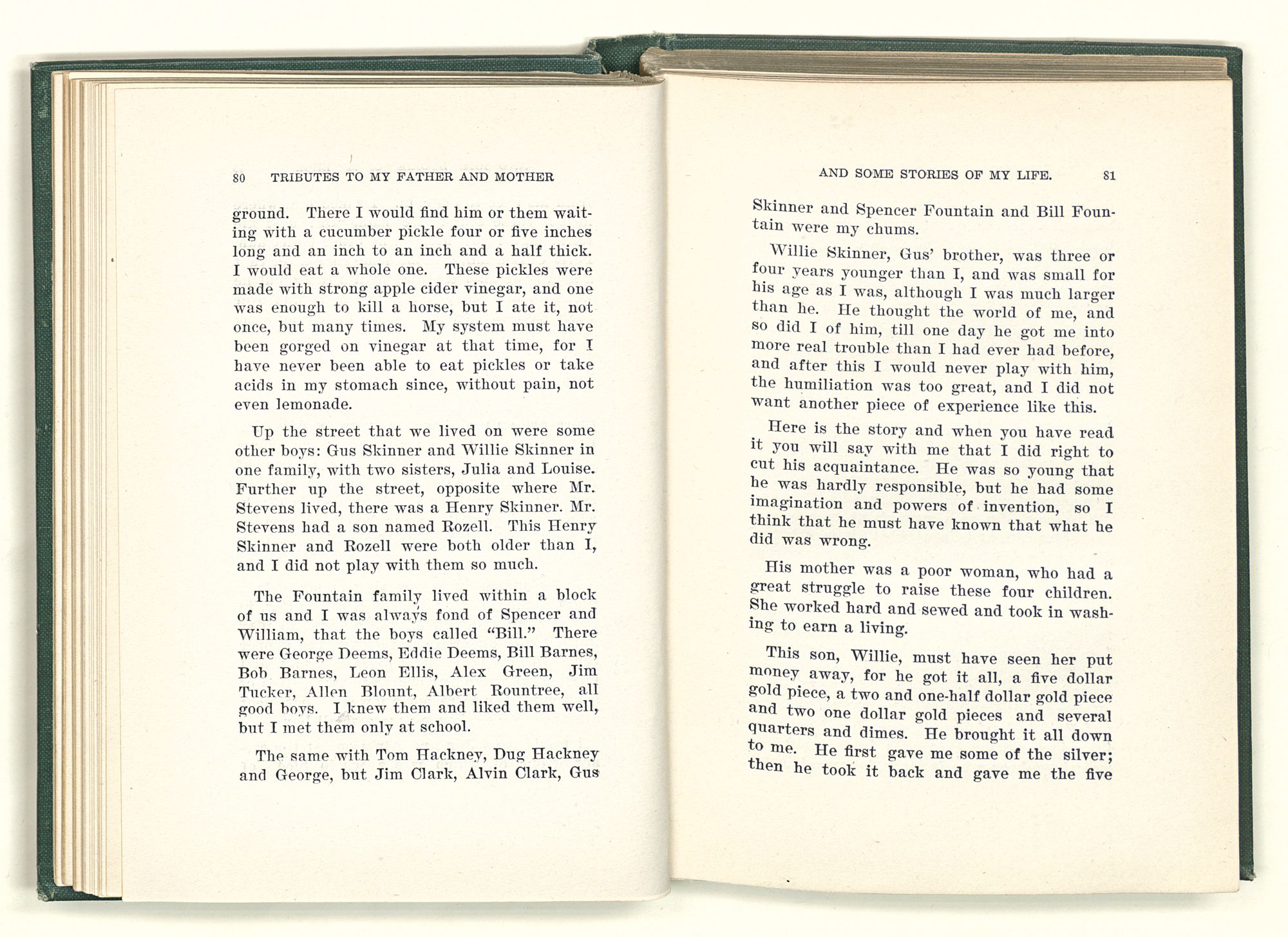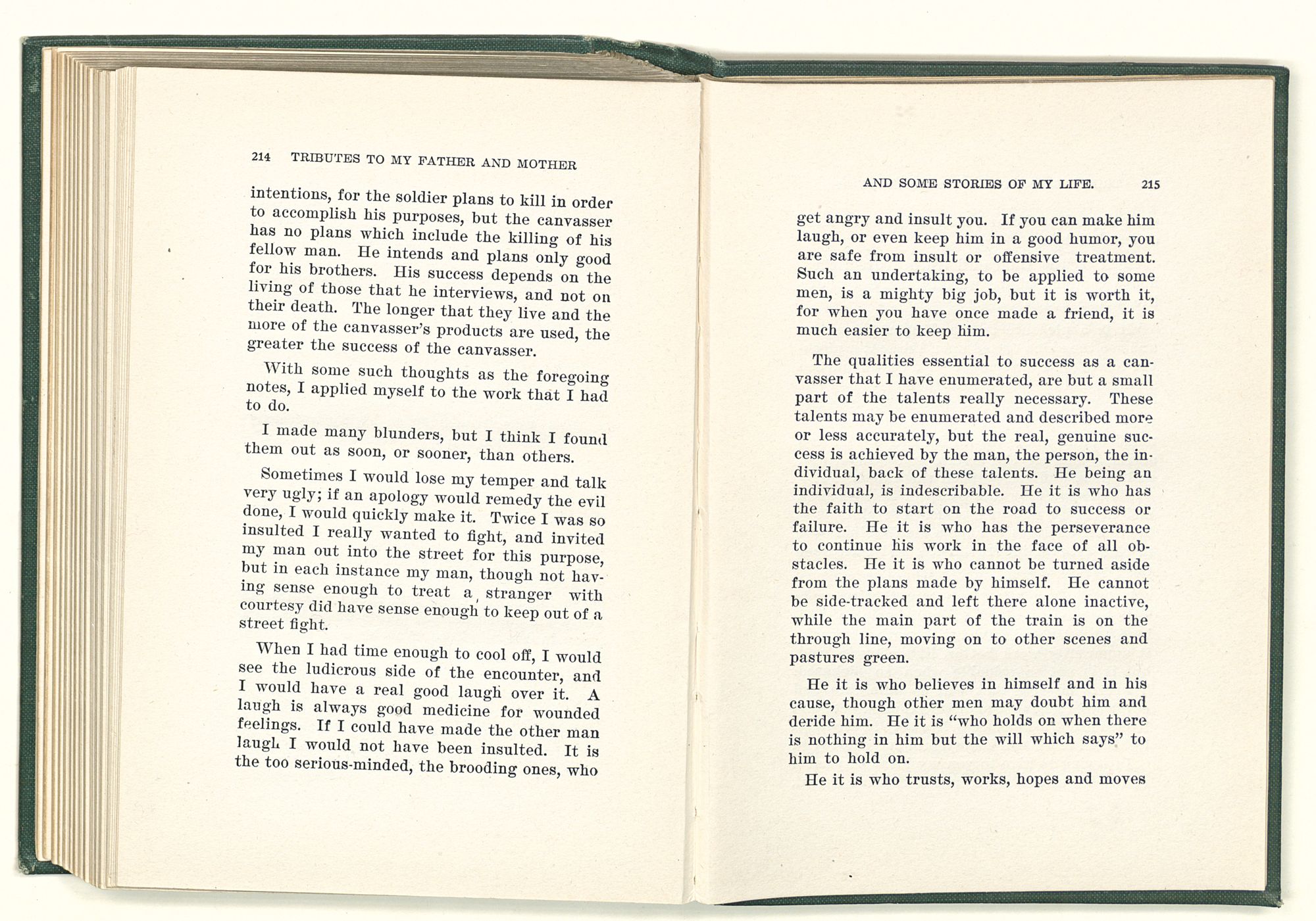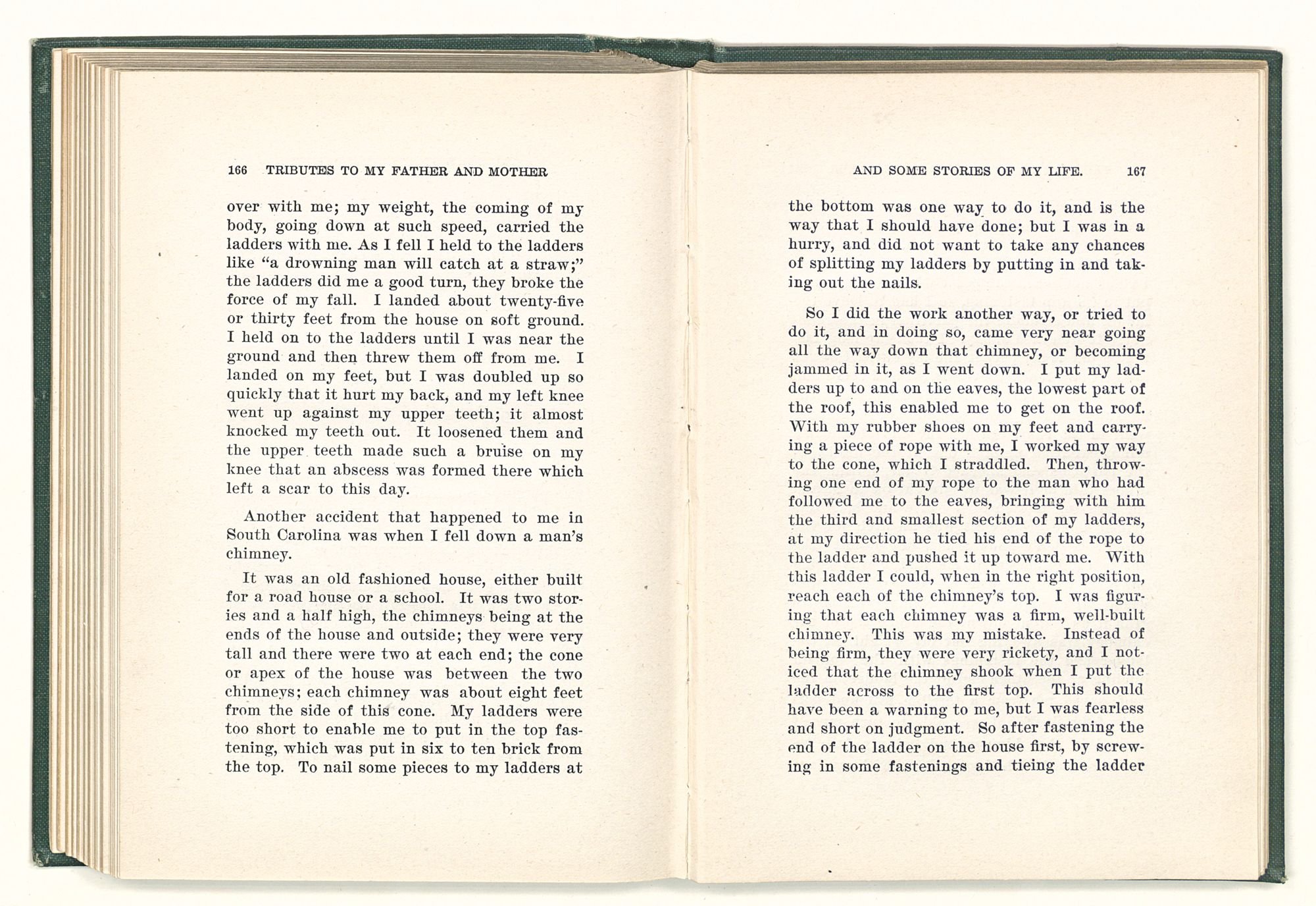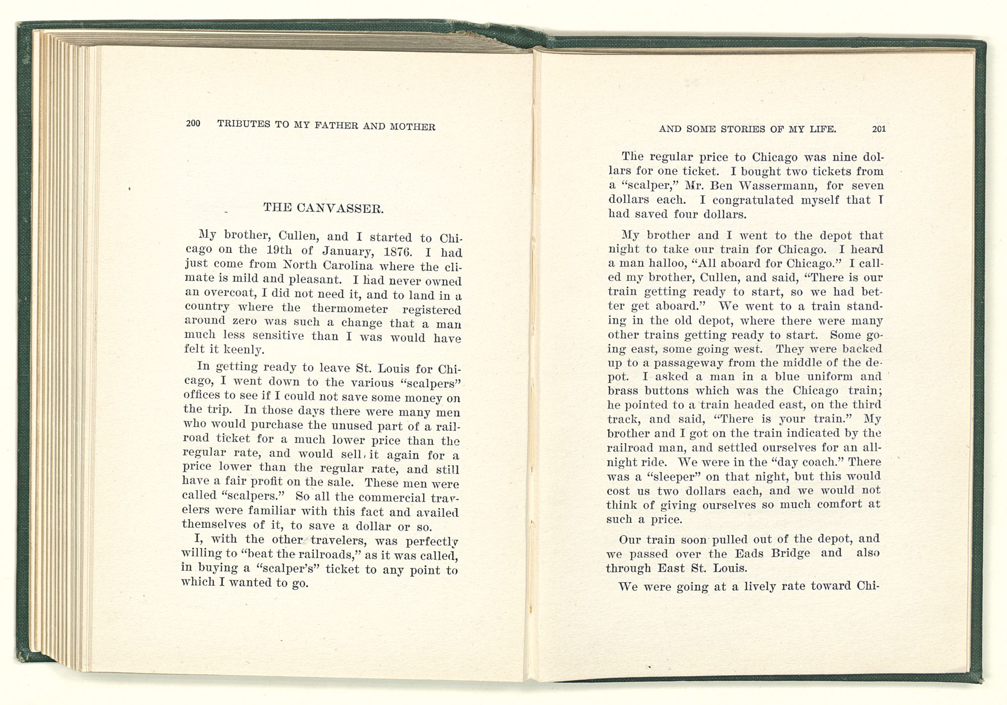 given the money to build a church in a section of the state where there was none, and had bought the old saddle for a very small price and borrowed a horse to do his missionary work with; and when his journey was finished, he had returned the horse and brought the old saddle home on his back to use at some future time. He put his name on the back of some man's note as an endorsement, and when the note came due, the man did not have the money to pay with, and my father was asked to pay, but he did not have the money either, and said so, but that he would pay when he got the money. The man who held the note asked my father why he put his name on a note when he had no money, my father, in his guilelessness said he did it because he had been asked to do so. This answer so enraged the holder of the note that he slapped my father's face, and my father deliberately turned his other cheek and said to the man, “You may slap the other cheek if you want to.” I have known many good men, but I have never seen another one as good as my father. He was accessible to rich and poor alike. There was nothing that he possessed that he would not give away if some one would ask him for it. There was never a minute, night or day that he would reserve for himself or family, all his time was at the disposal of any one that would come and ask