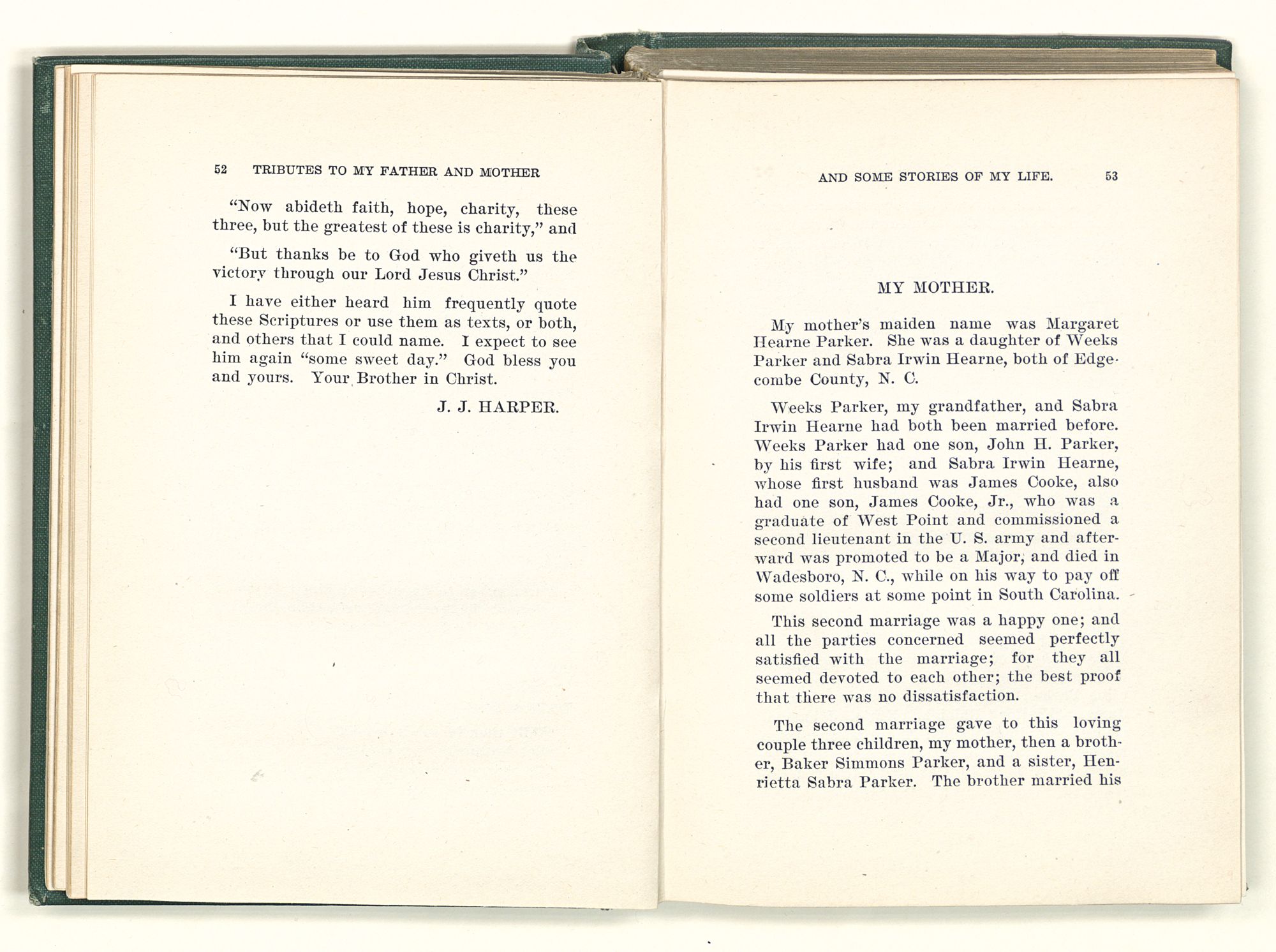 “On the seventh of January, 1830, he married Miss Margaret Hearne Parker, of Edgecombe County, N. C.