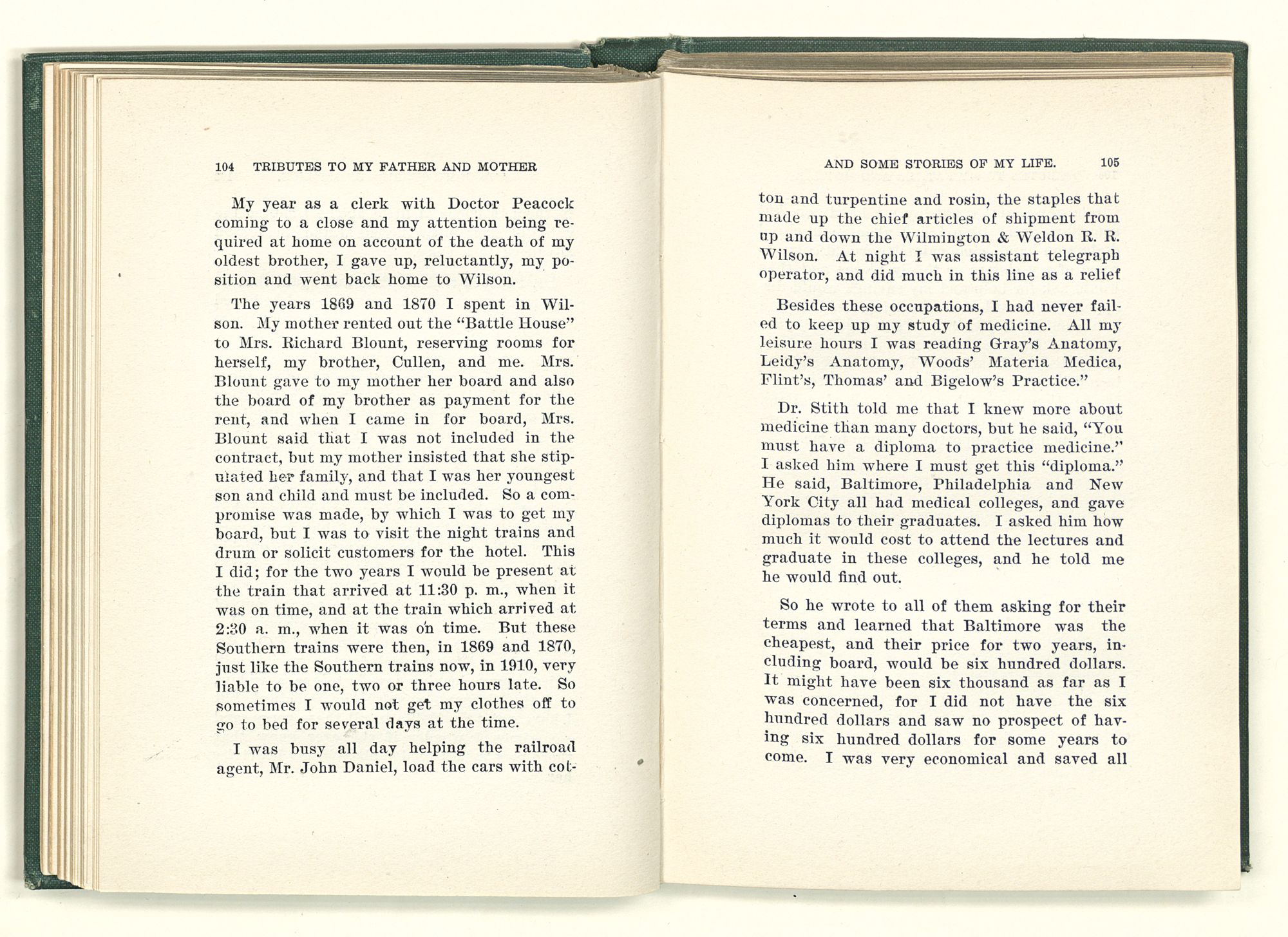 Dr. Barrett took right hold of the case and after making a thorough examination called Dr. Larew and myself into the other room. I report what he said from memory. He said, “Mr. Battle, as you are in the medical line, I treat you as a doctor.”