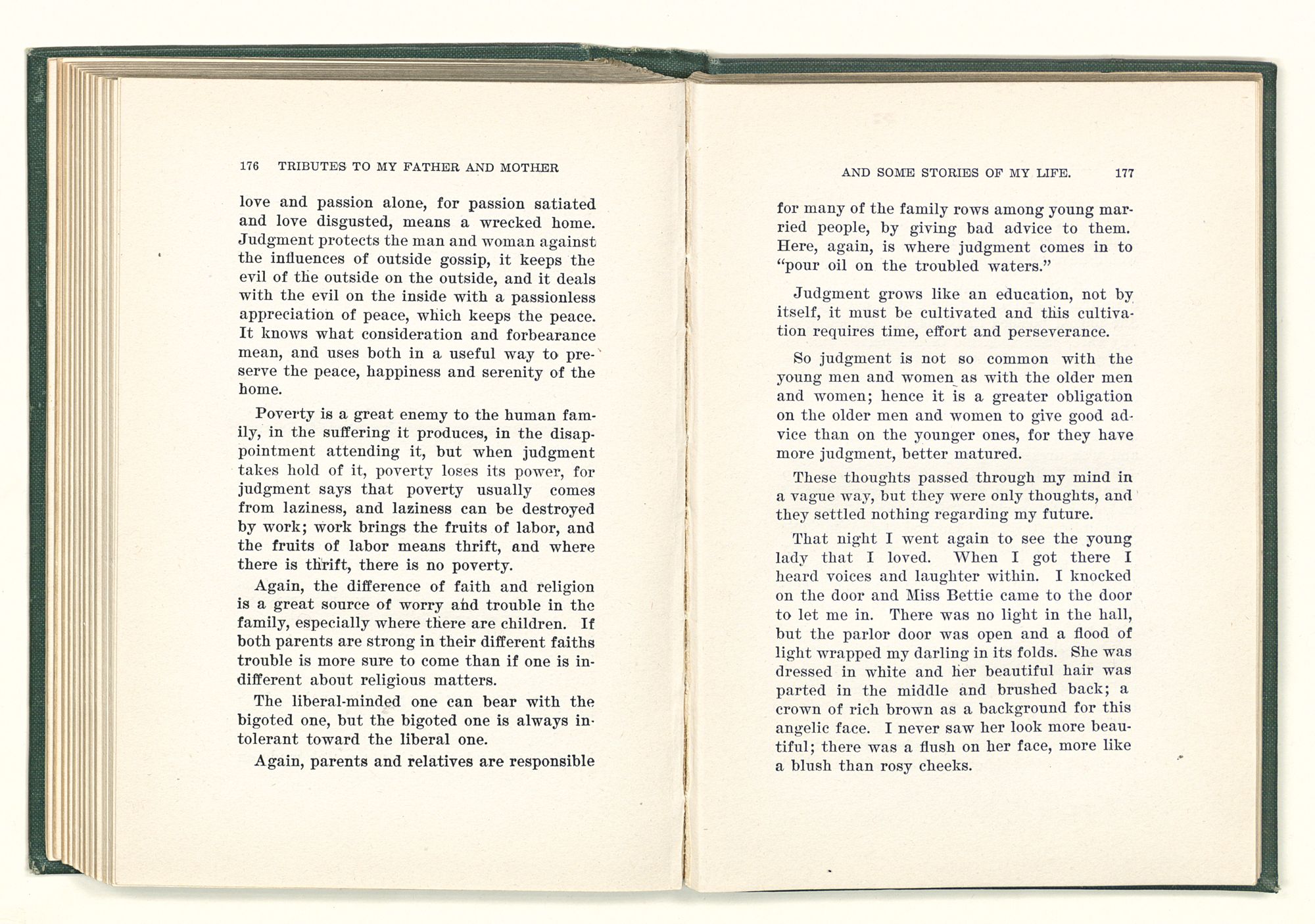 He said that the greatest trouble with the whole human family who had any religion at all, was that man was expected to know all, without time to learn, and expected to do all without time to do it in. He said no one was born grown; that he was a child first, then youth, then man, then age—then death. He said that a child was only a child and that he could learn only a little at the time; that judgment and the ability to see came only with maturer years. That some children could learn much faster than others; that these bright ones, by persistent effort became the wise men and women of the world, and they in their turn to a large extent the fathers and mothers of the bright ones of the next generation. That the intelligence of the fathers and mothers, provided better food, better clothes, better surroundings, better apportunities for their children, and the children when grown were so equipped that with the same desire for progress would give to their own children the same advantages and opportunities.
